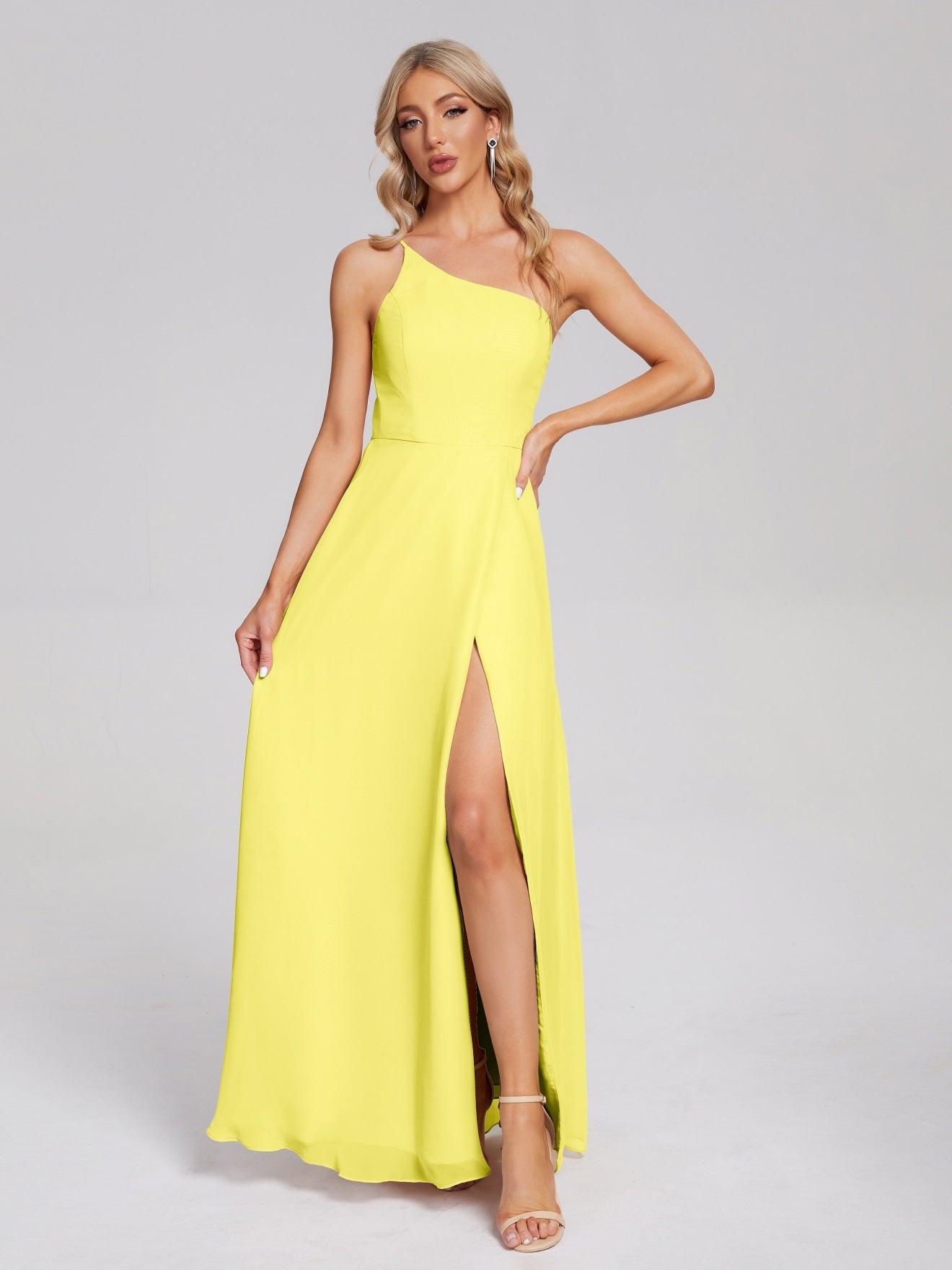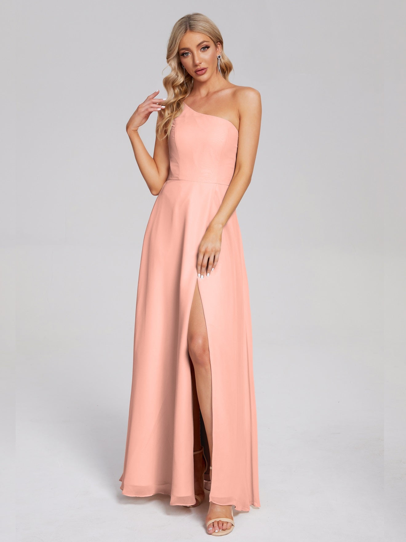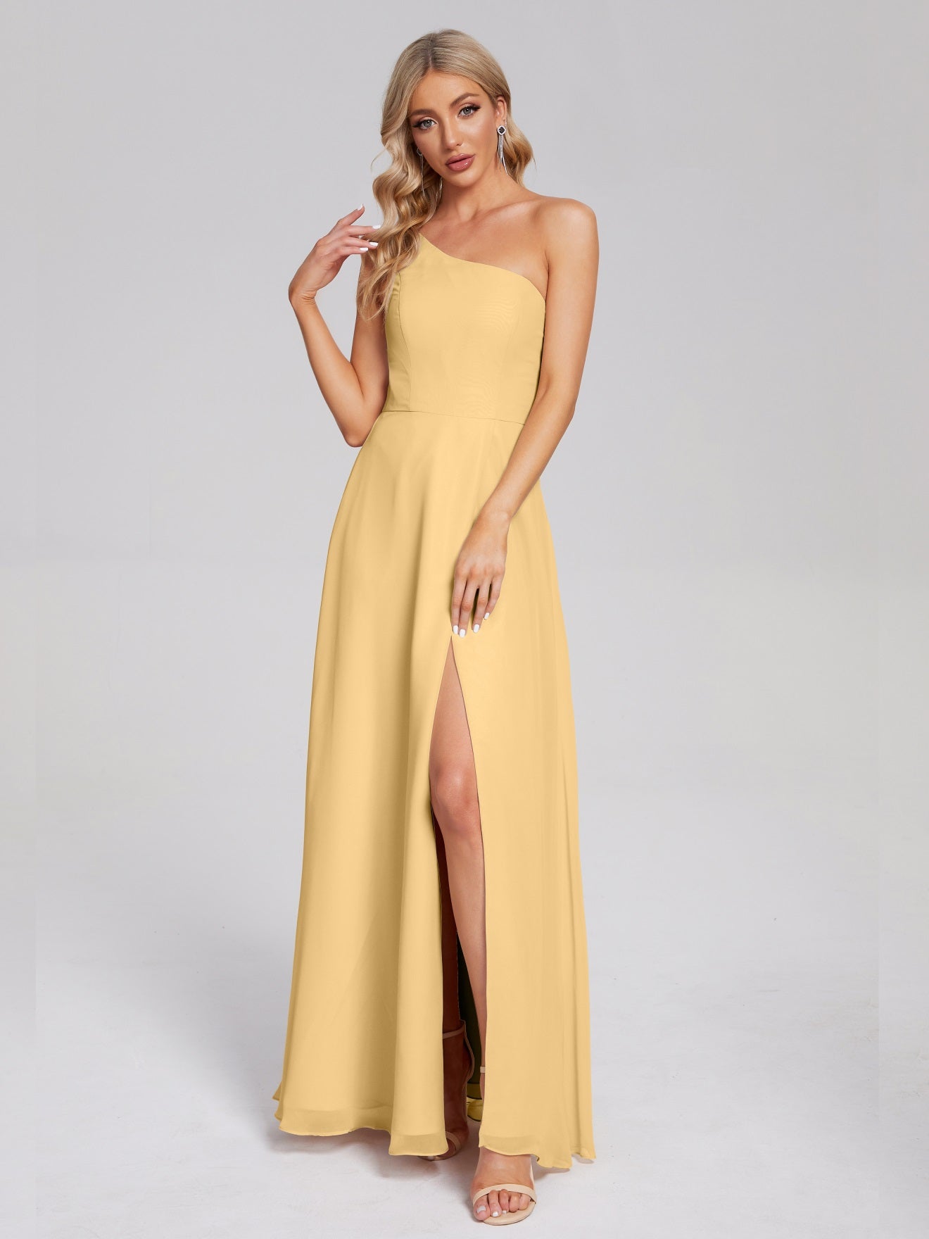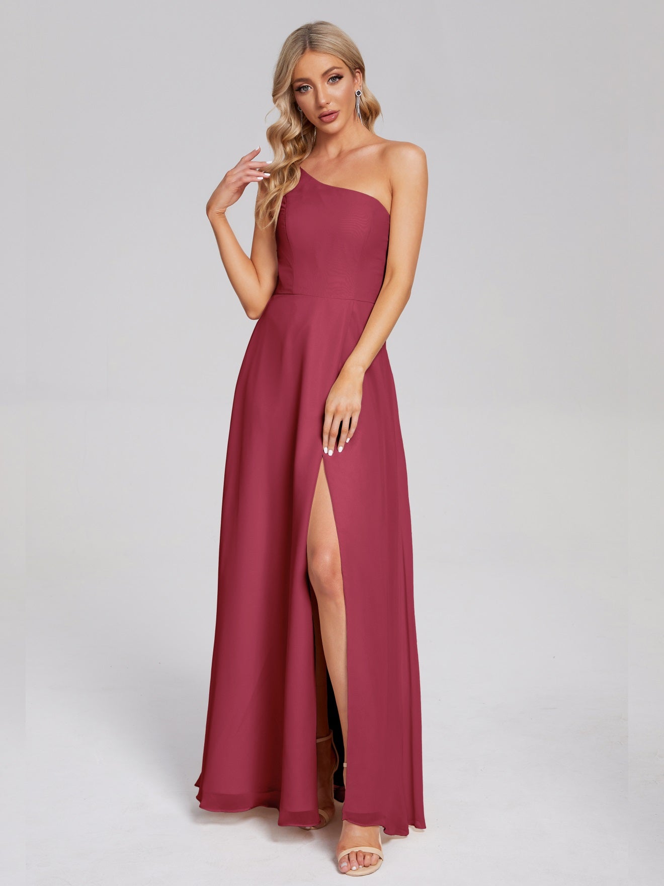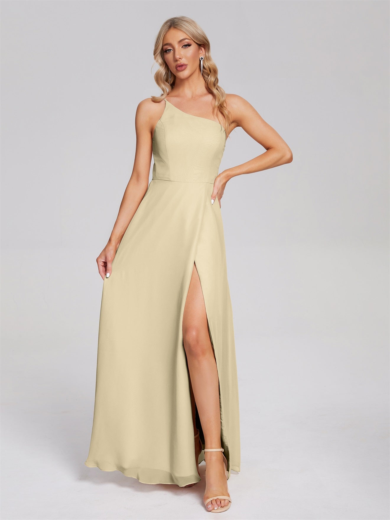 Talia Aufgeschlitzt Ein-Schulter-Einzelne Chiffon Brautjungfernkleider