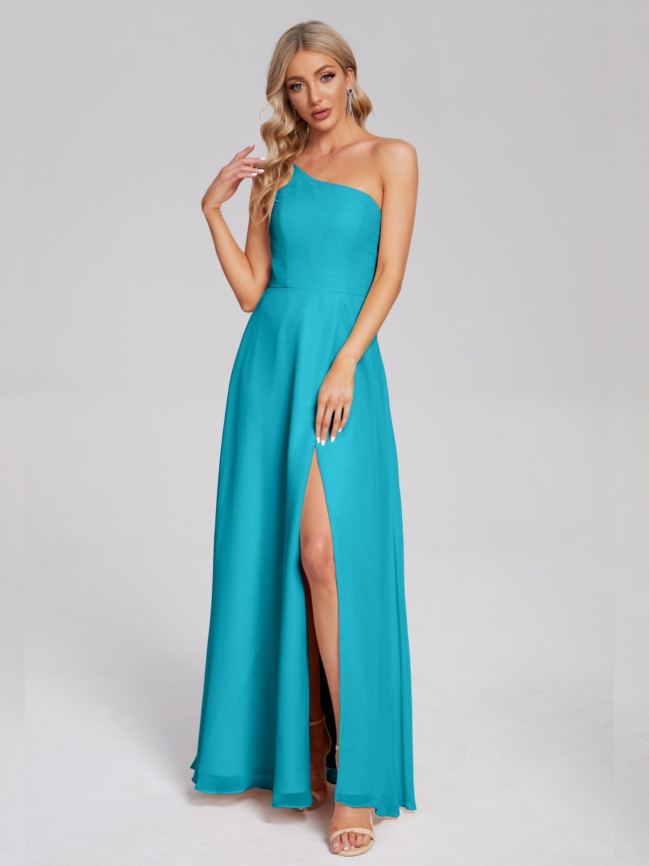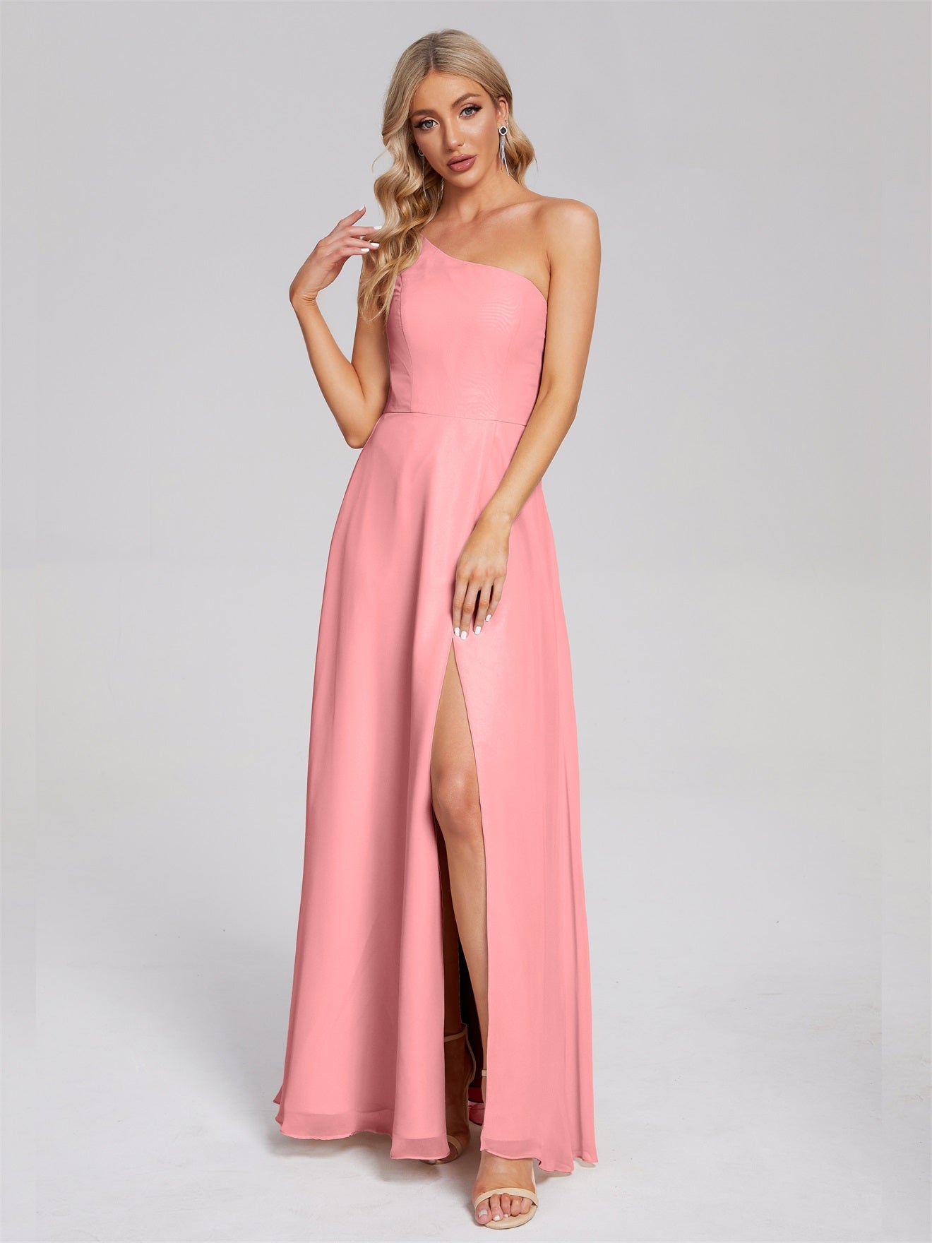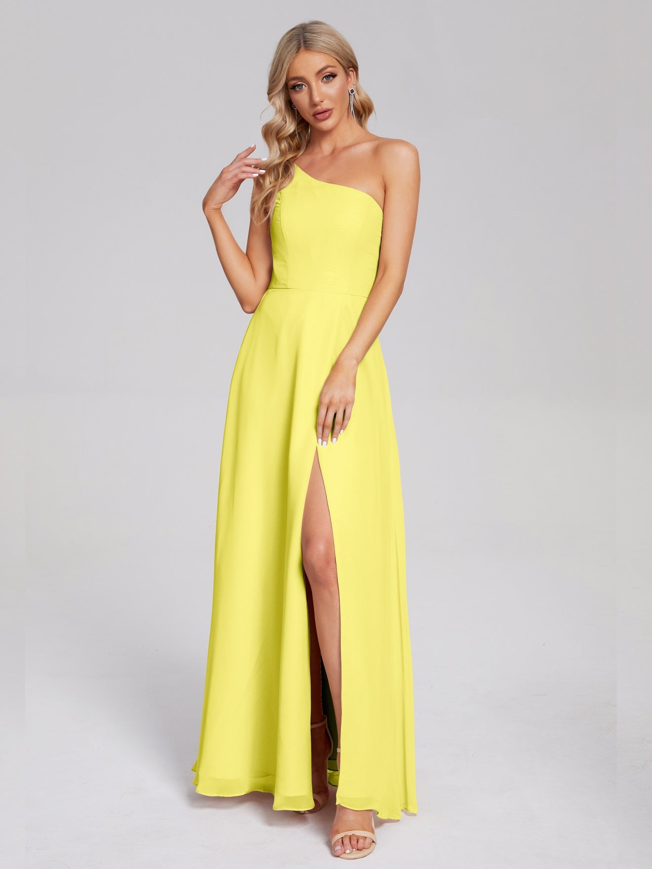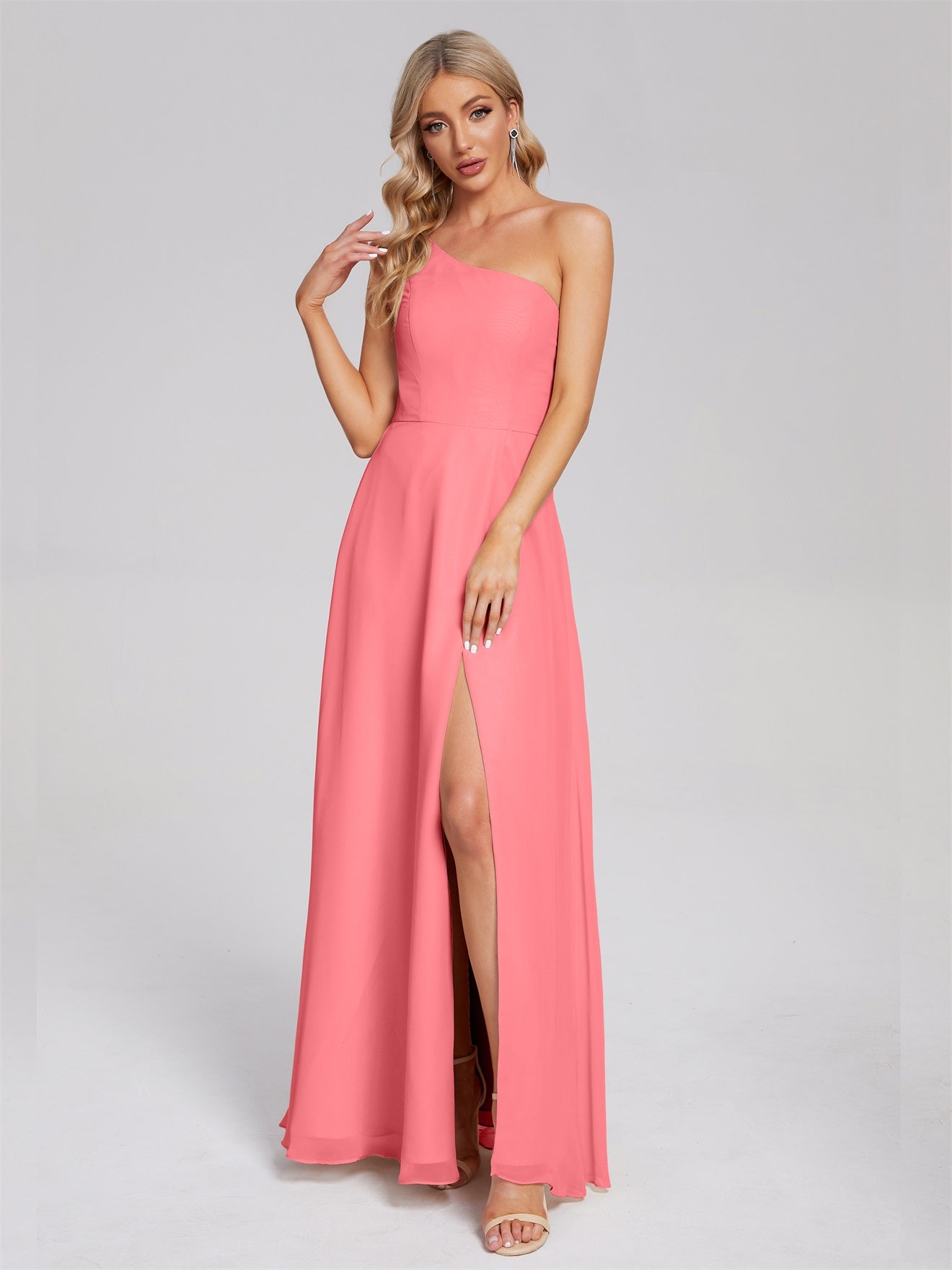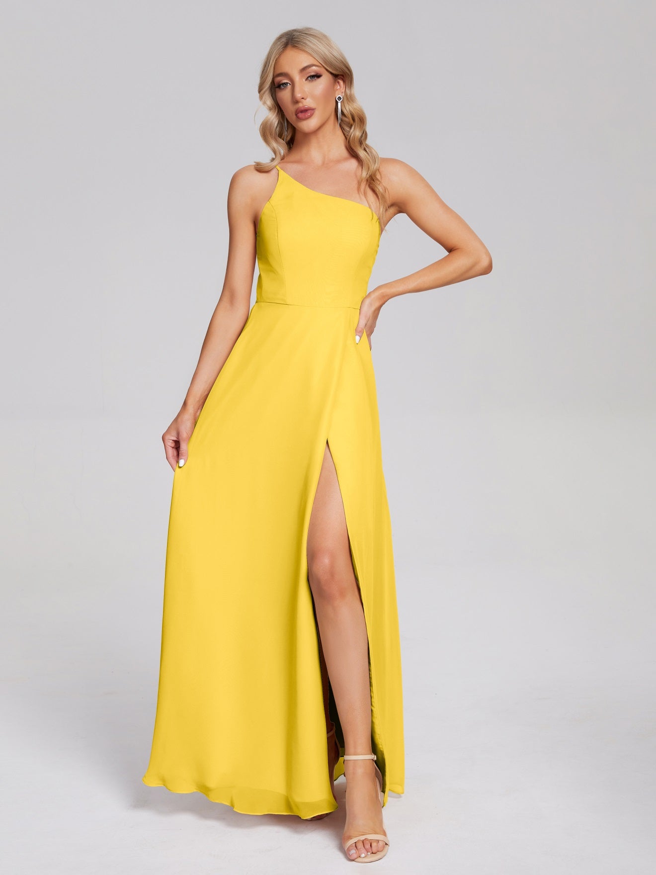 Talia Aufgeschlitzt Ein-Schulter-Einzelne Chiffon Brautjungfernkleider