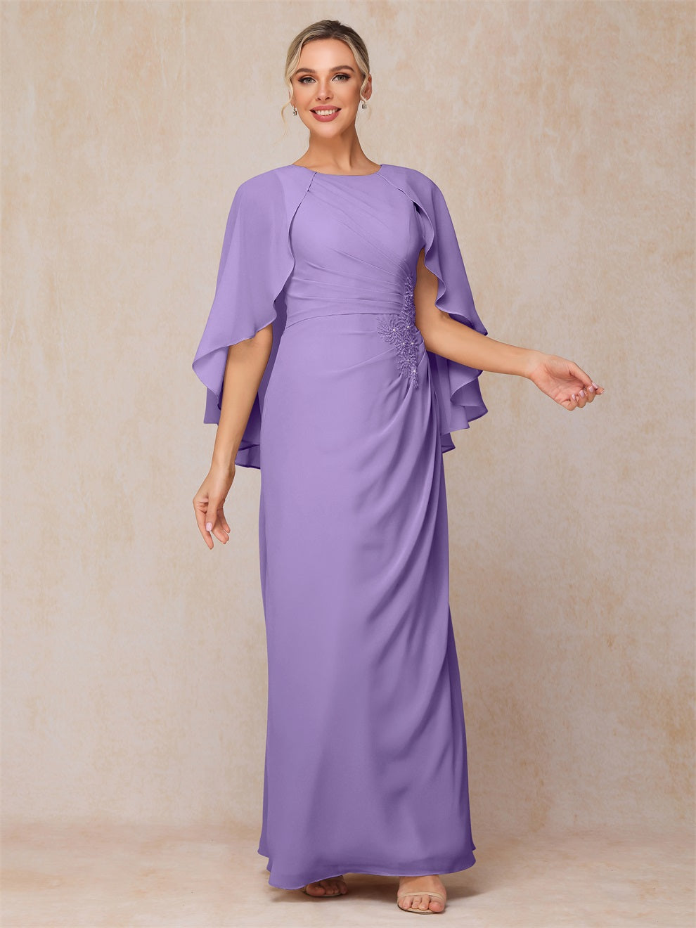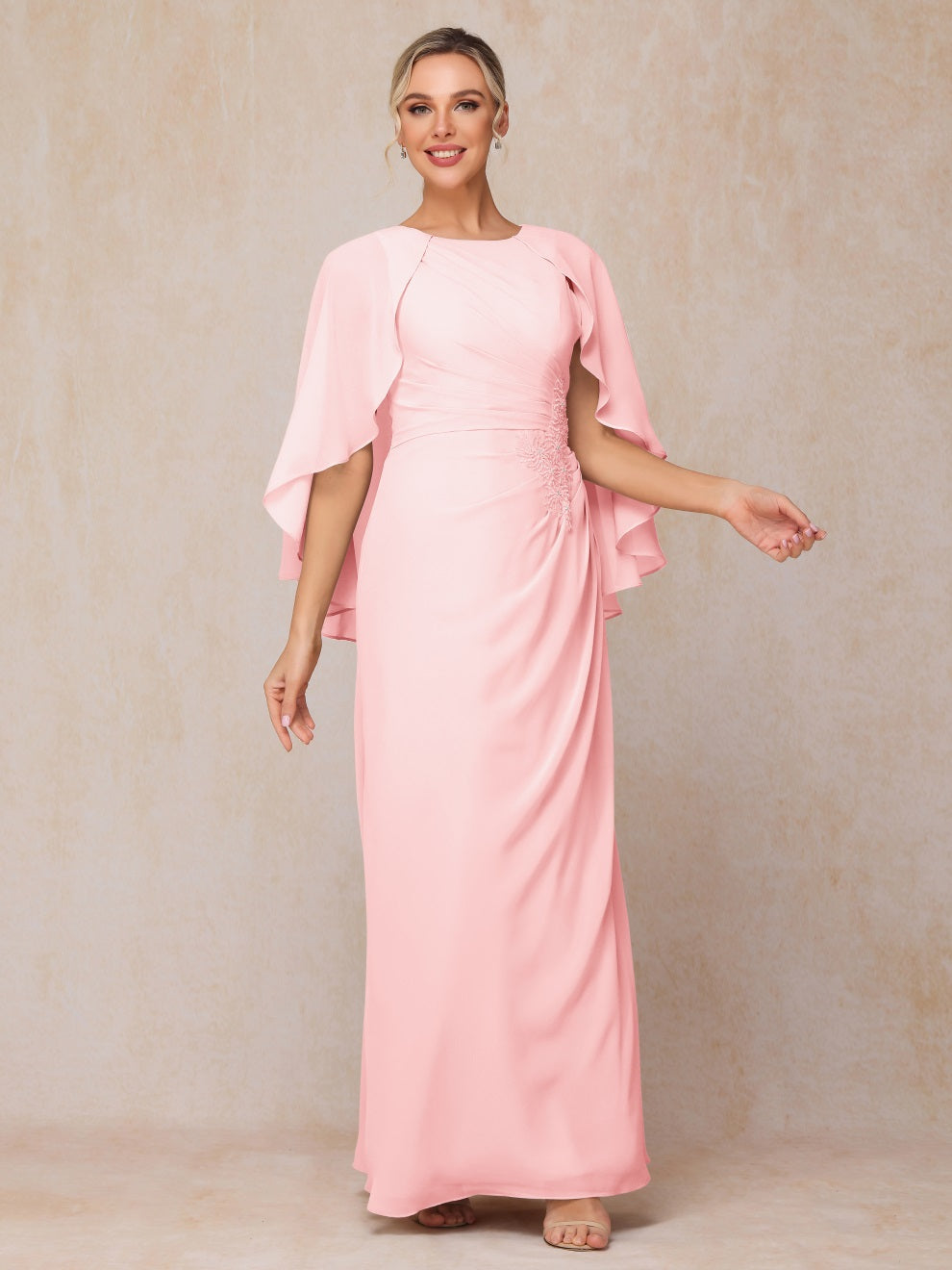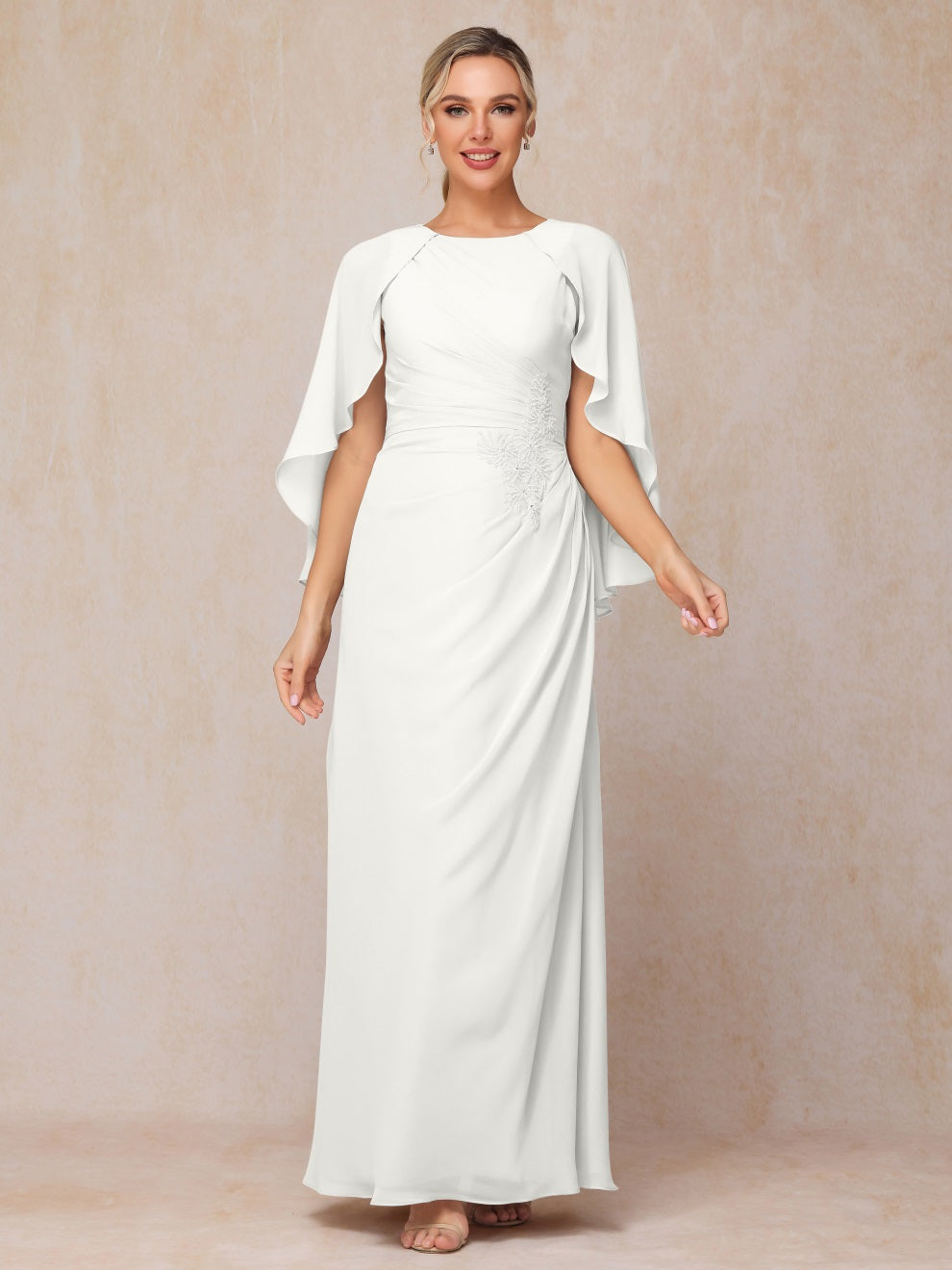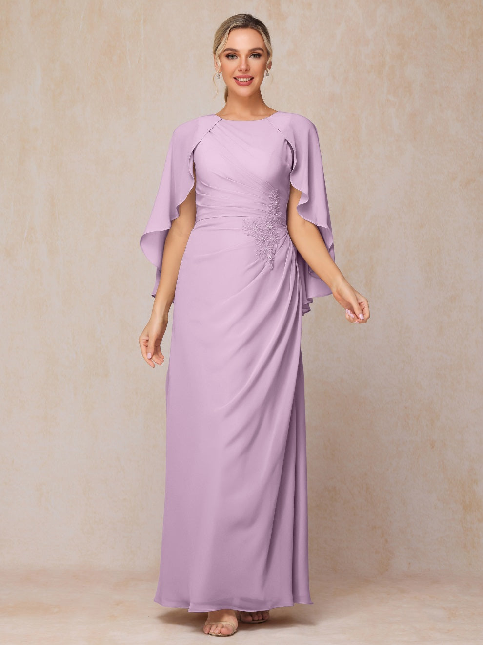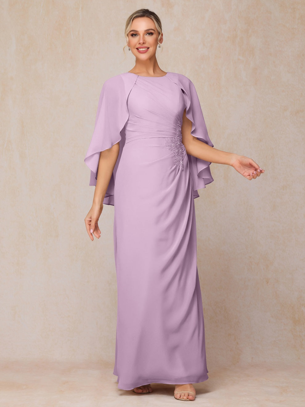 Trapezförmig Bootsausschnitt Chiffon Brautmutterkleider mit Spitze verziert mit Umhang