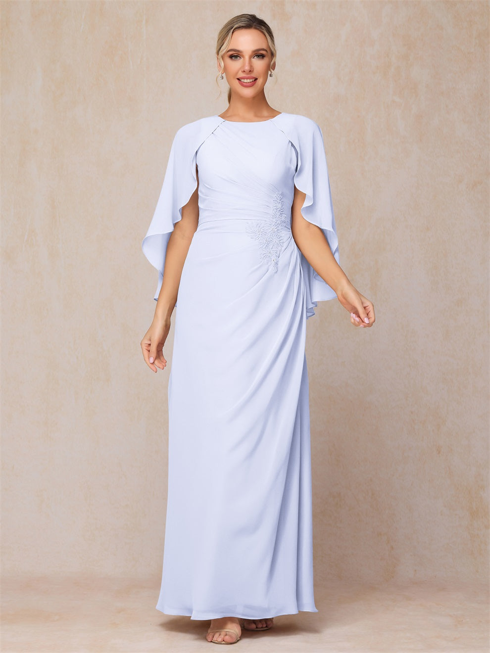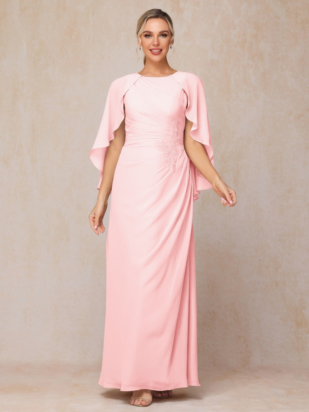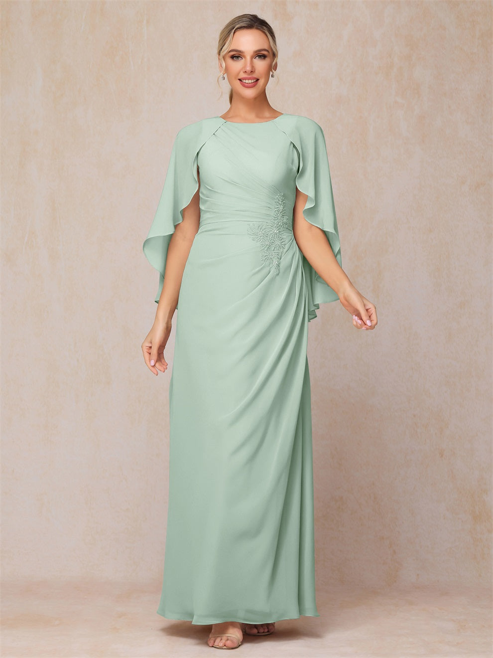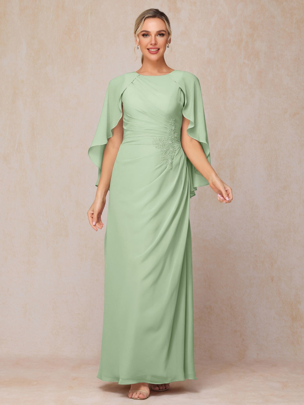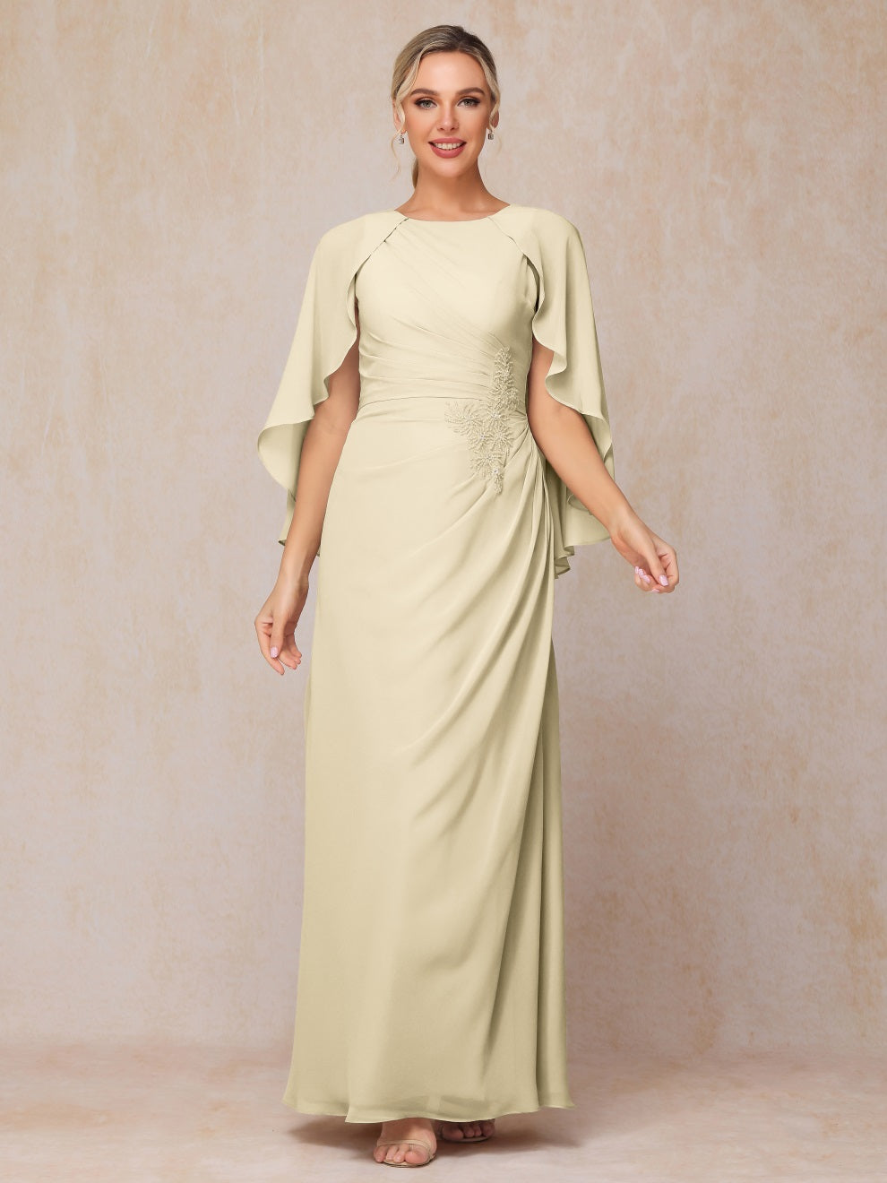 Trapezförmig Bootsausschnitt Chiffon Brautmutterkleider mit Spitze verziert mit Umhang