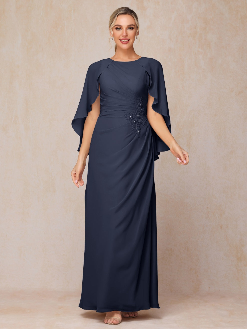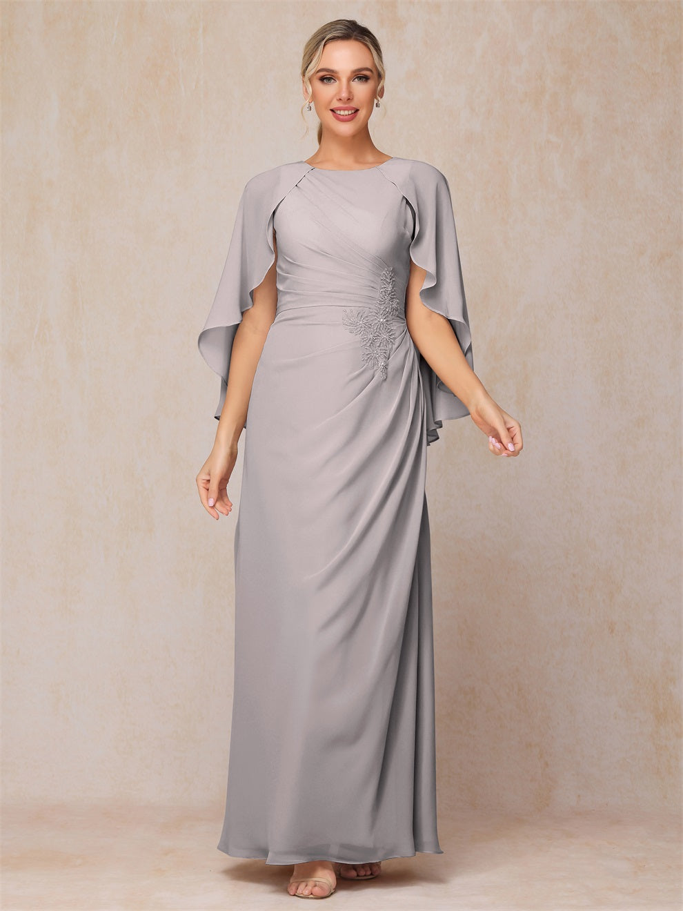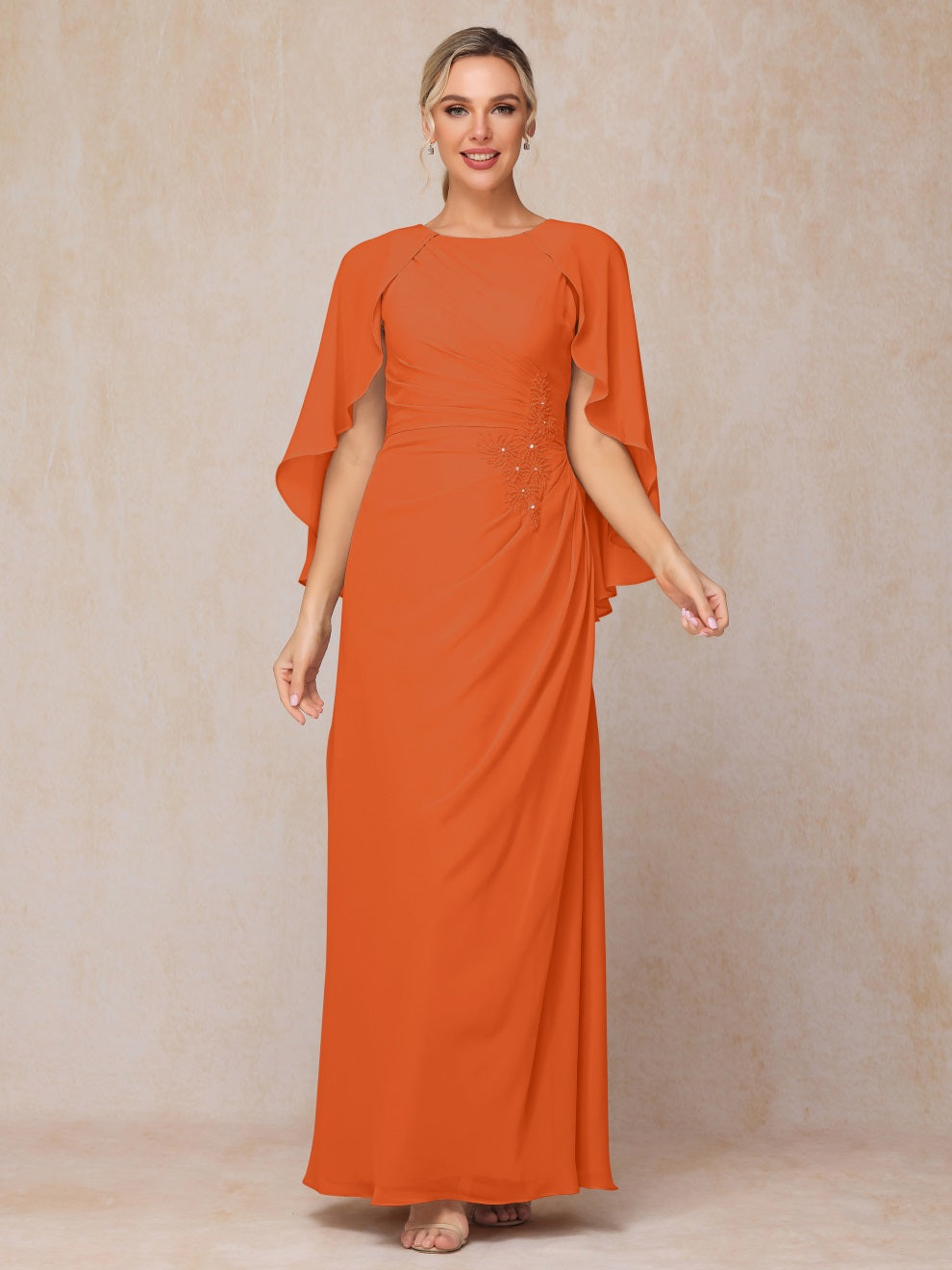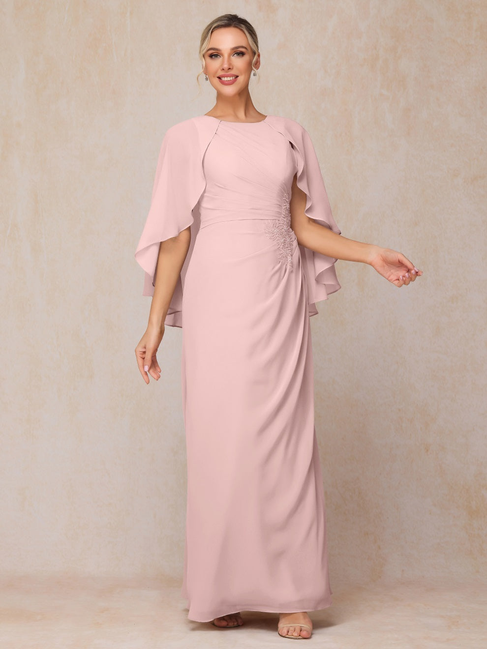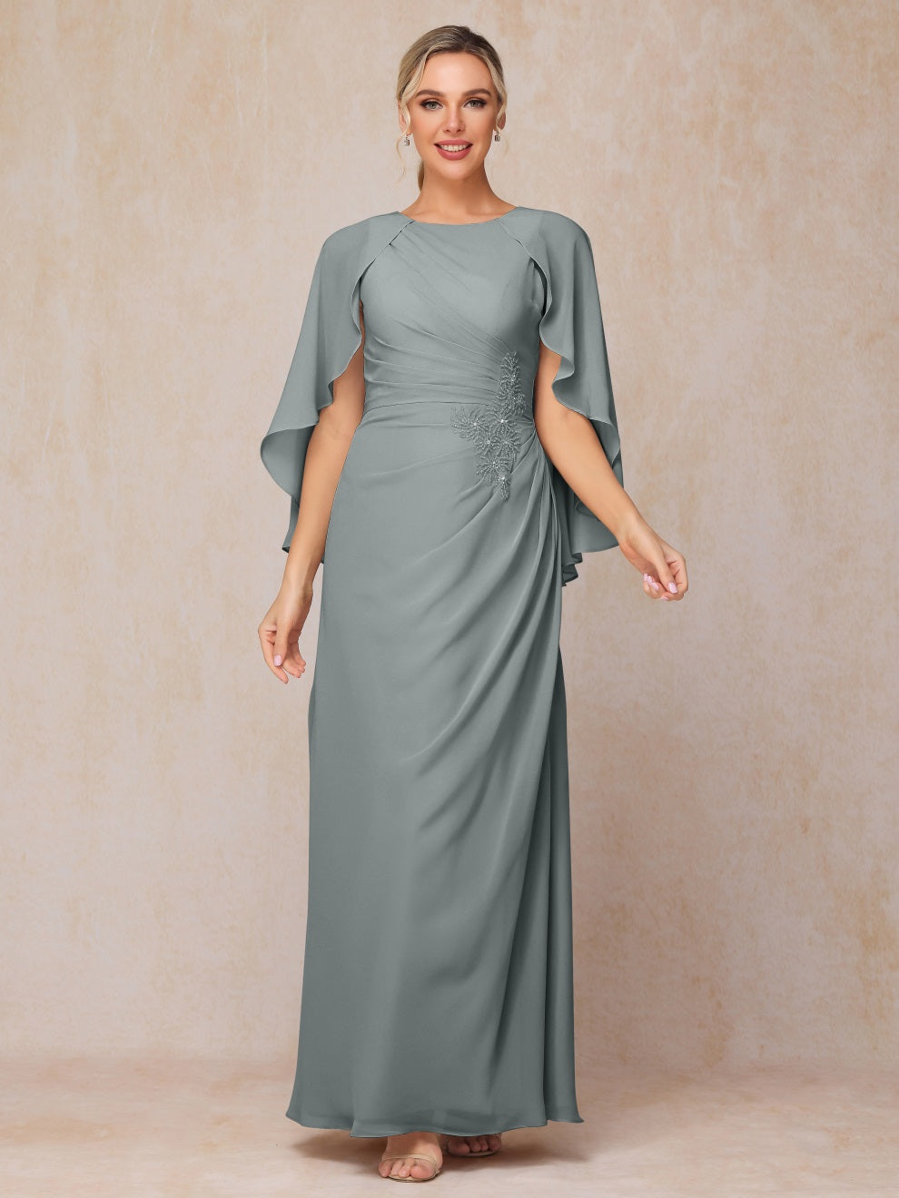 Trapezförmig Bootsausschnitt Chiffon Brautmutterkleider mit Spitze verziert mit Umhang