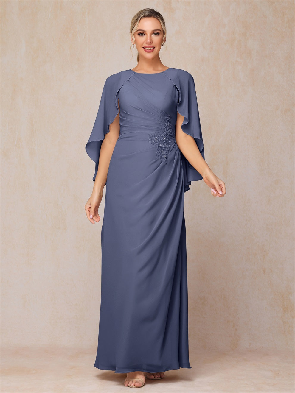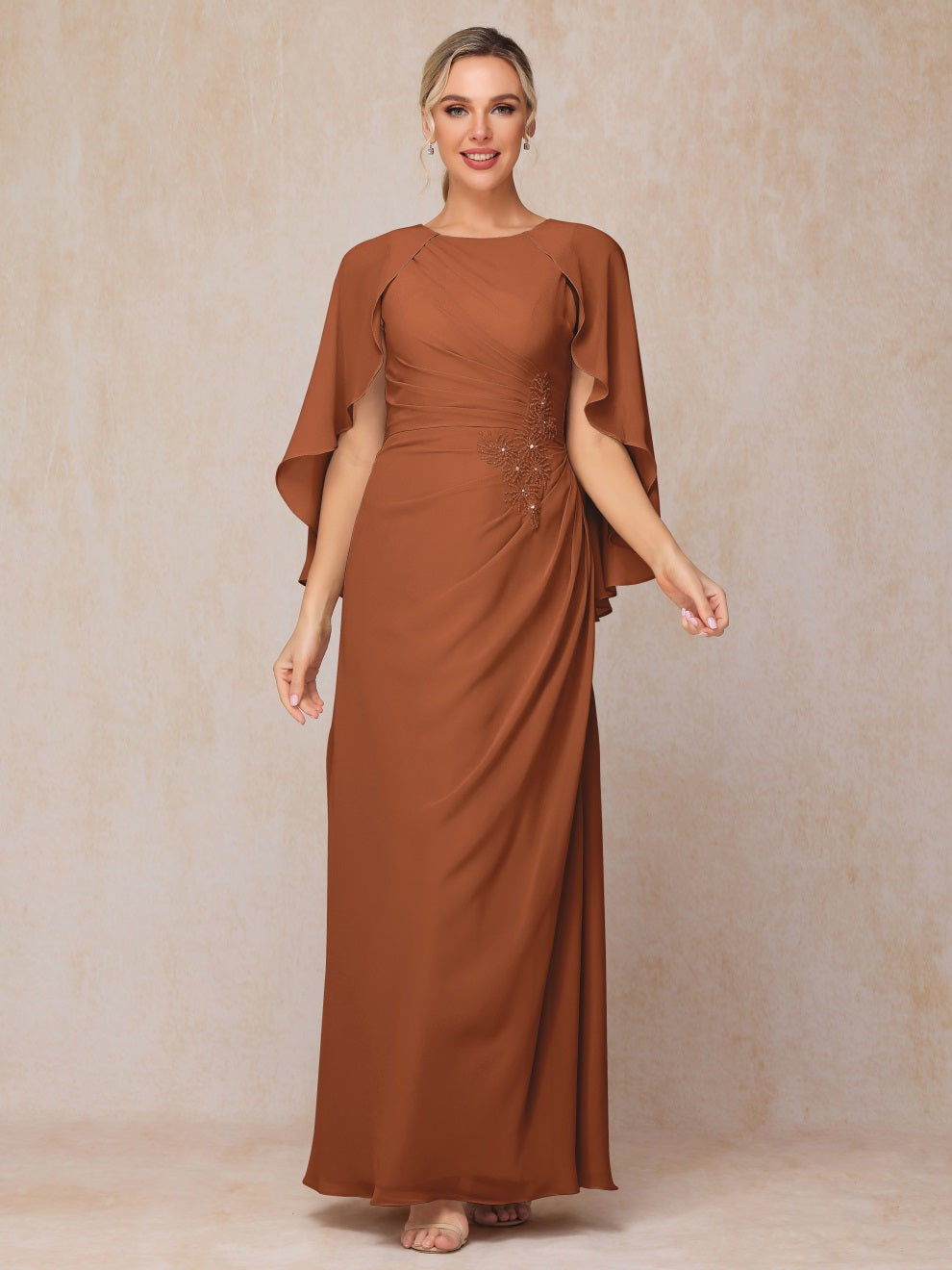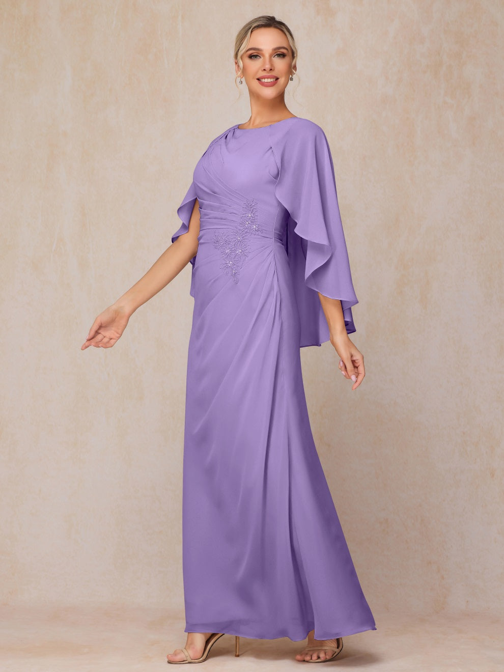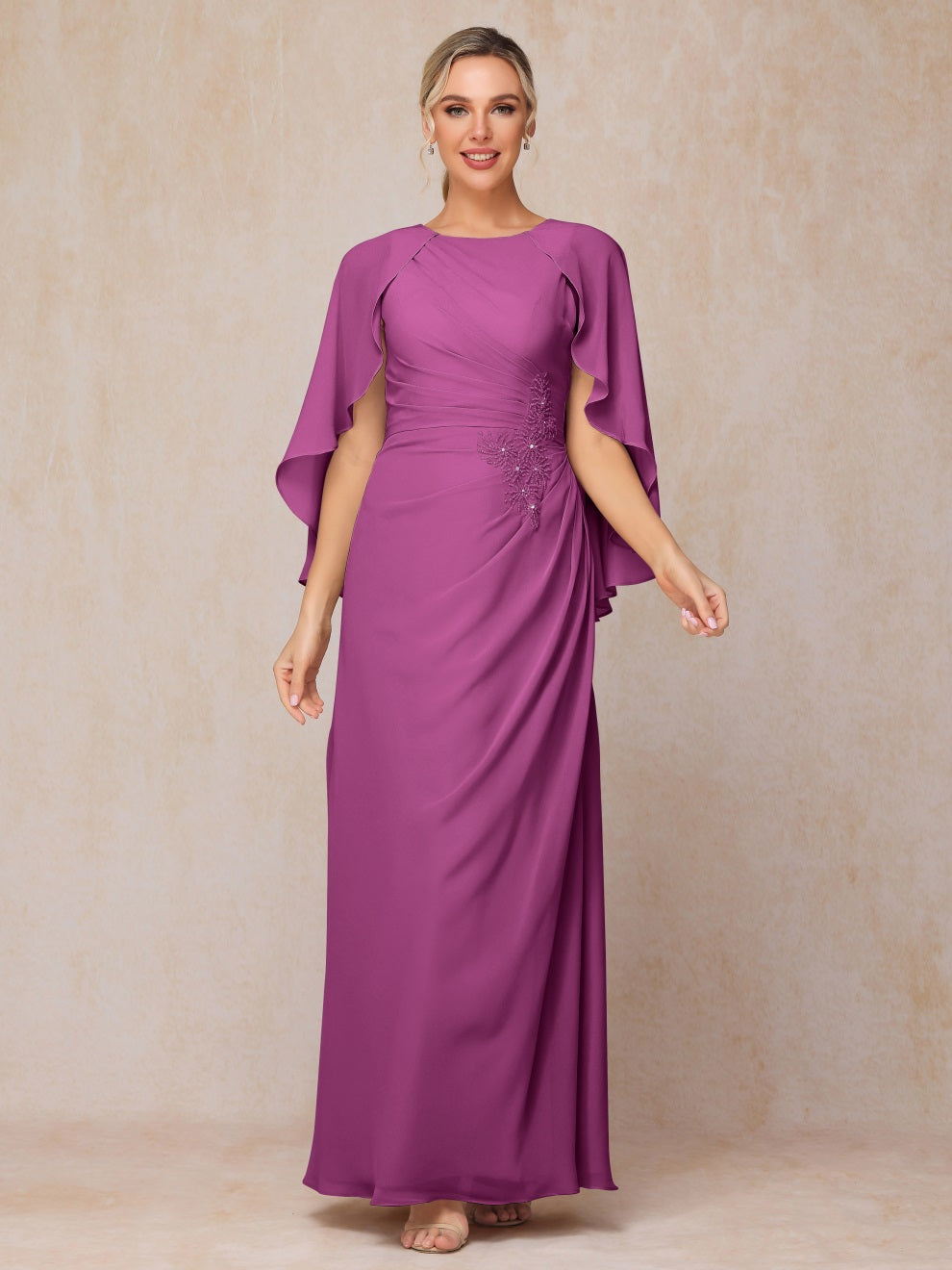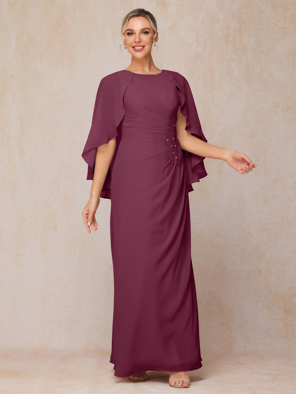Trapezförmig Bootsausschnitt Chiffon Brautmutterkleider mit Spitze verziert mit Umhang
