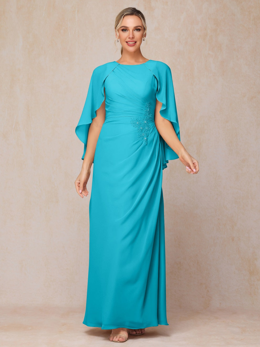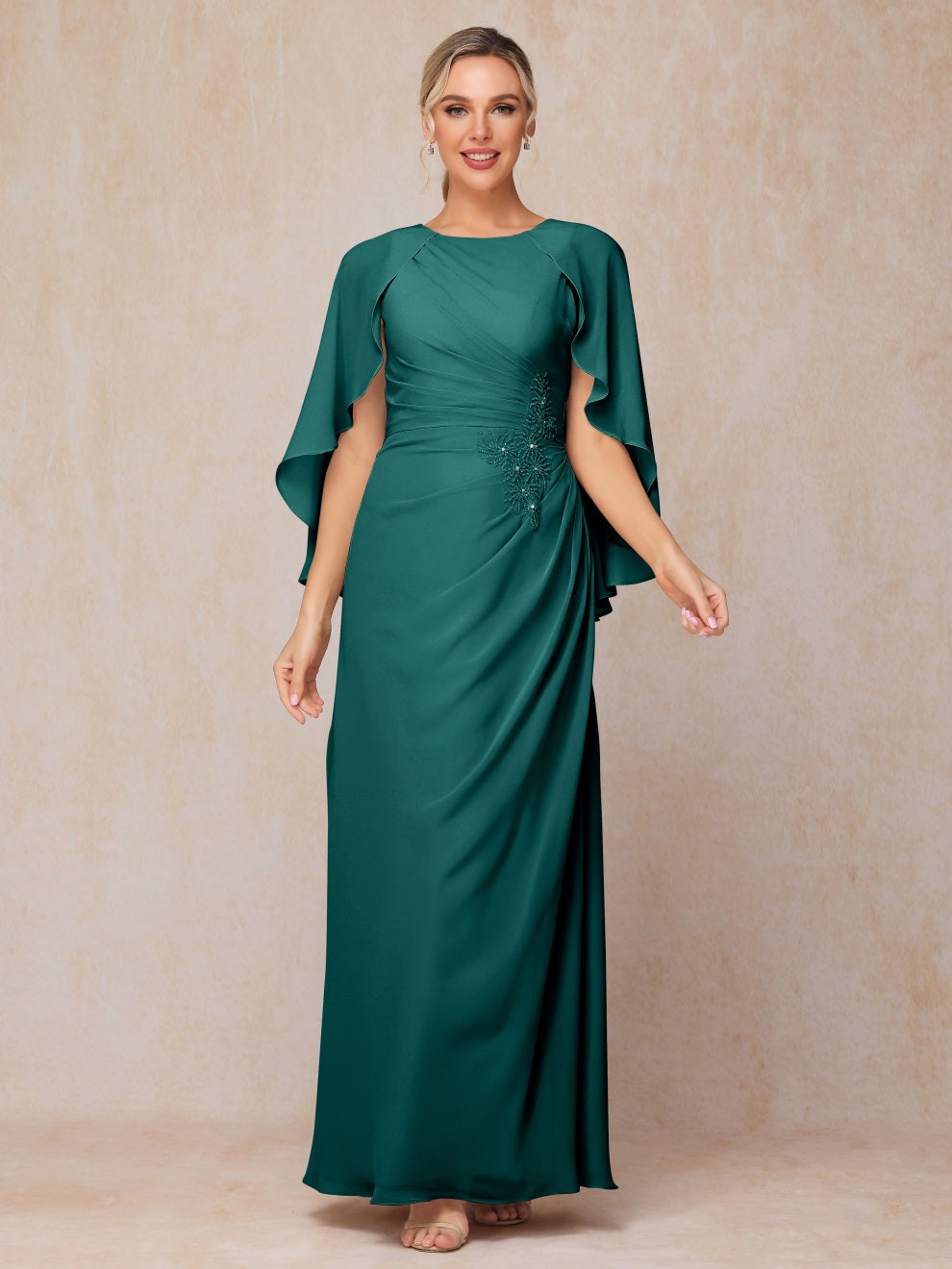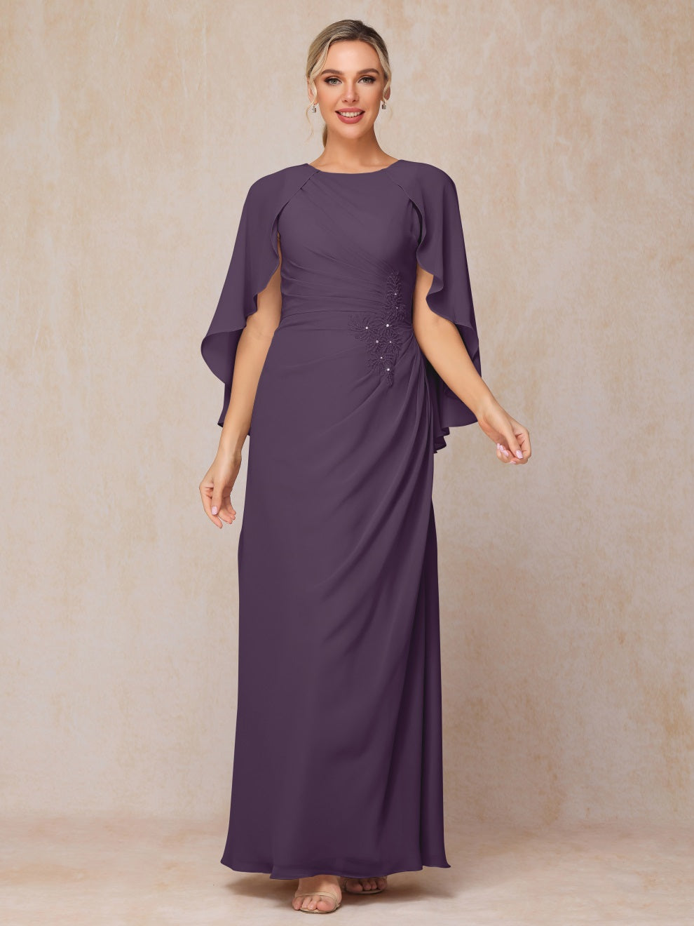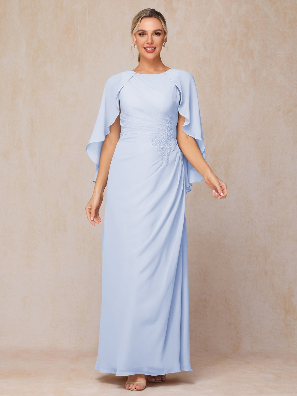 Trapezförmig Bootsausschnitt Chiffon Brautmutterkleider mit Spitze verziert mit Umhang