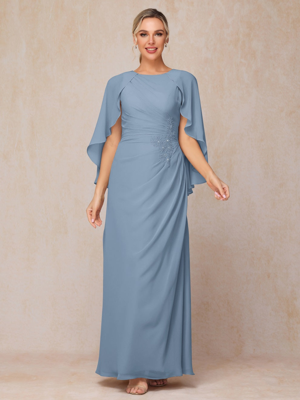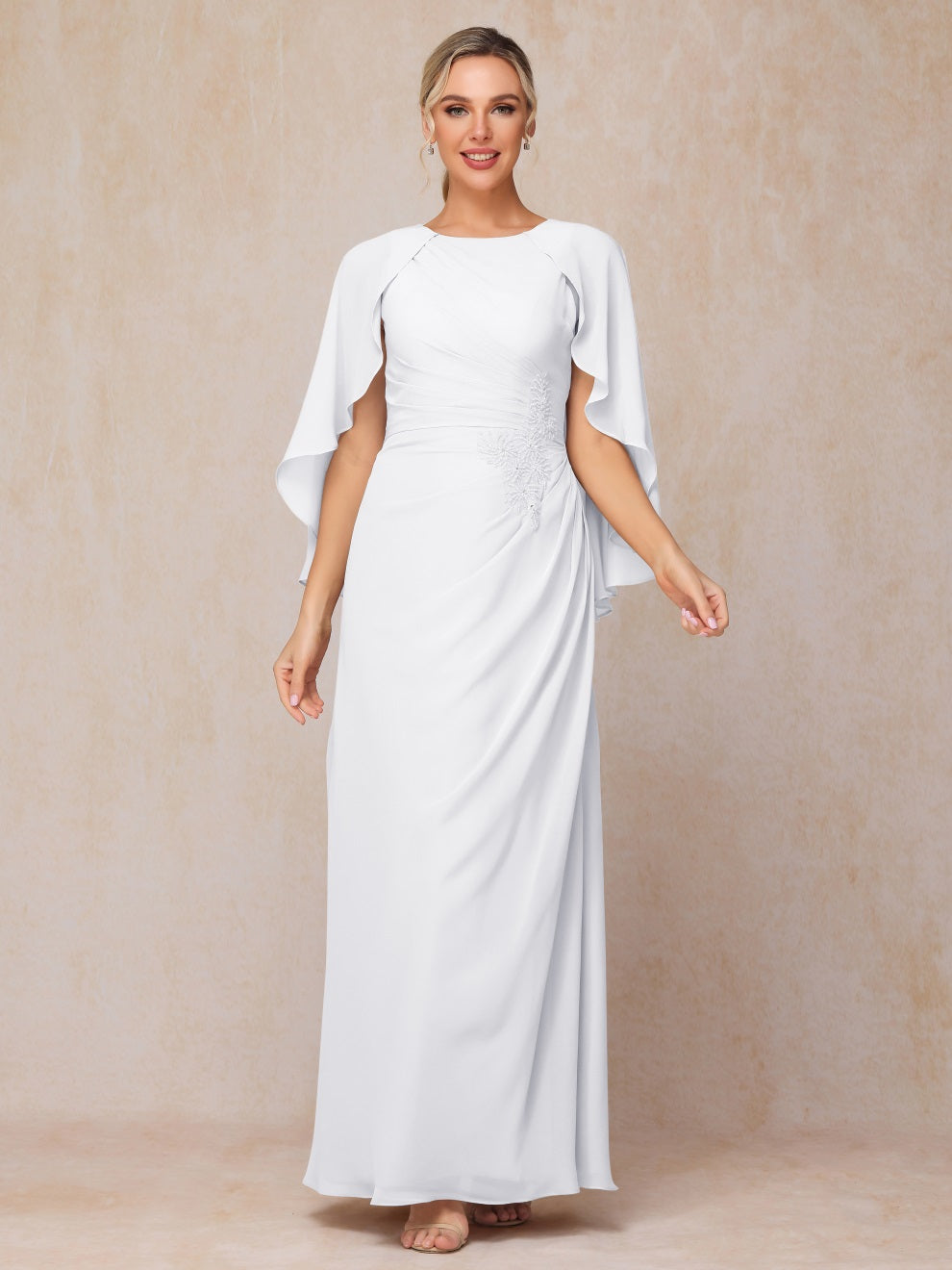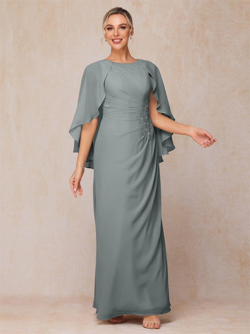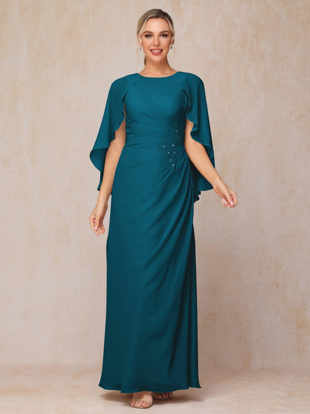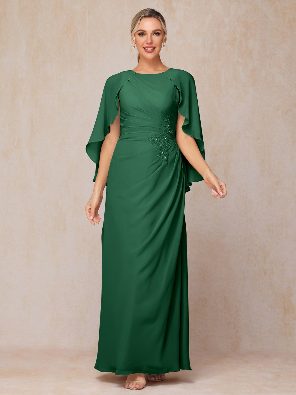 Trapezförmig Bootsausschnitt Chiffon Brautmutterkleider mit Spitze verziert mit Umhang