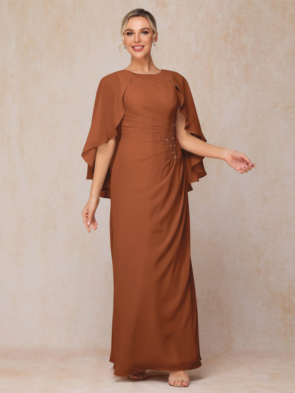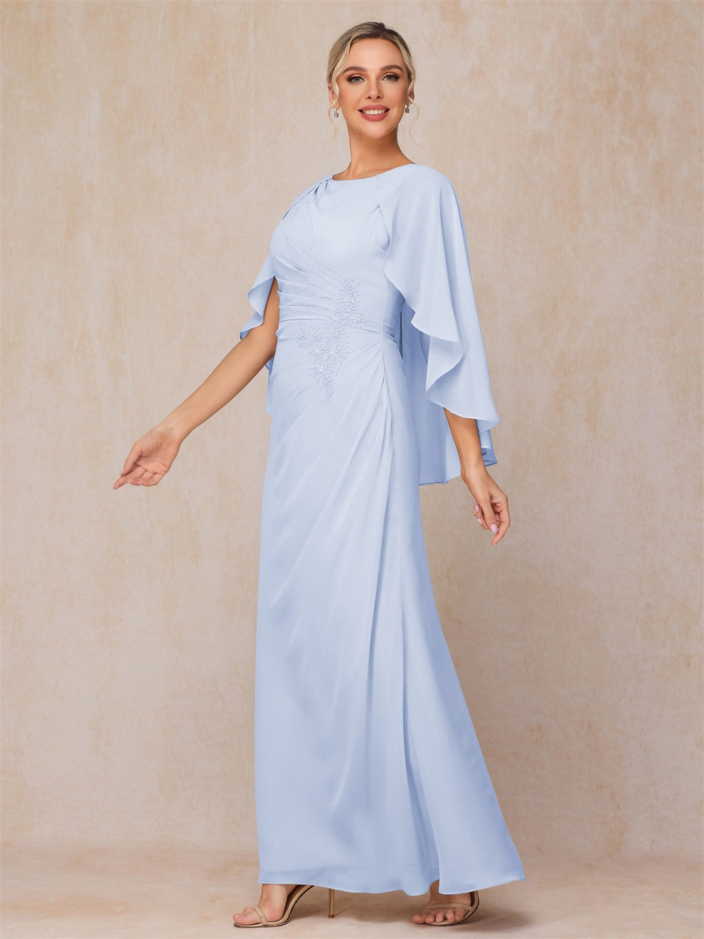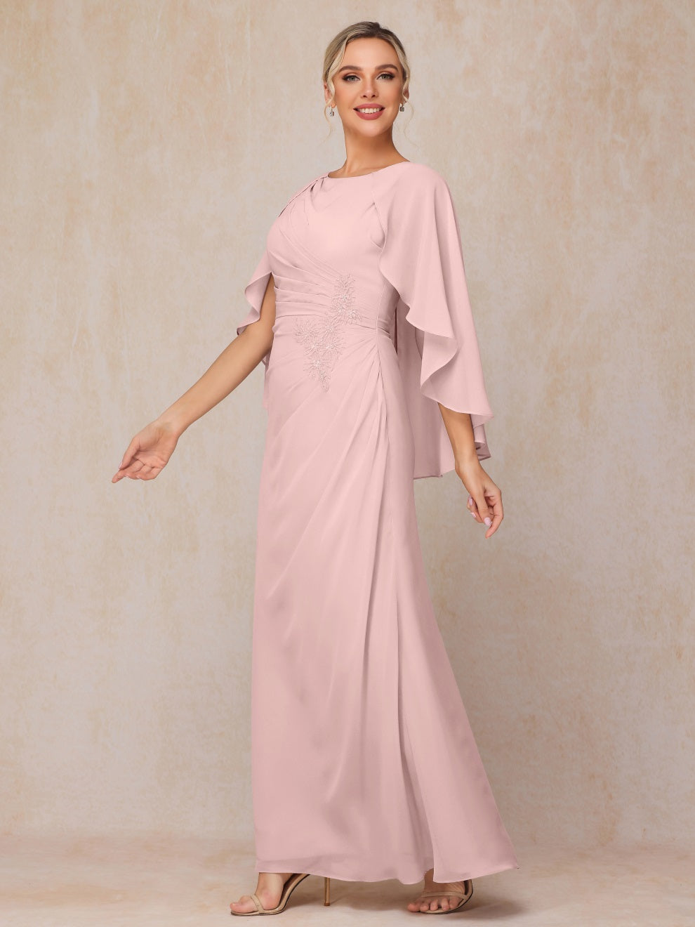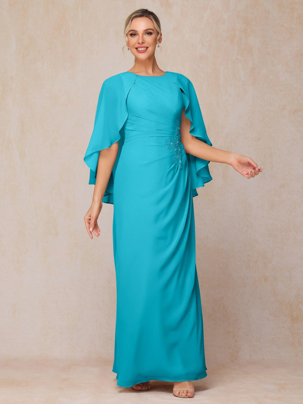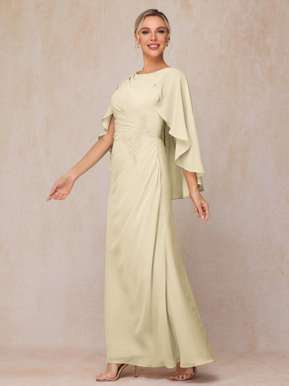 Trapezförmig Bootsausschnitt Chiffon Brautmutterkleider mit Spitze verziert mit Umhang