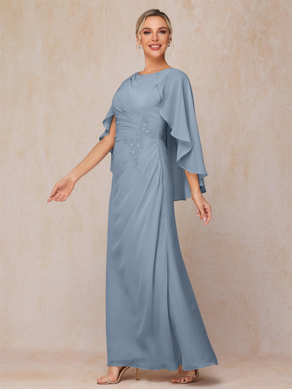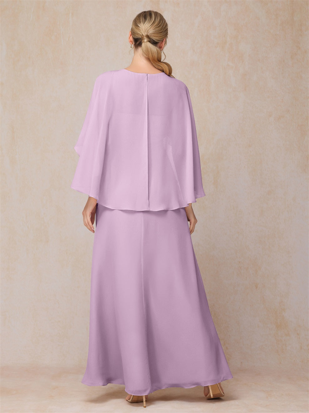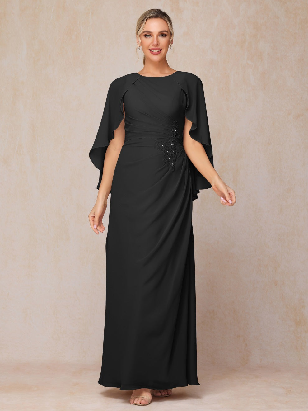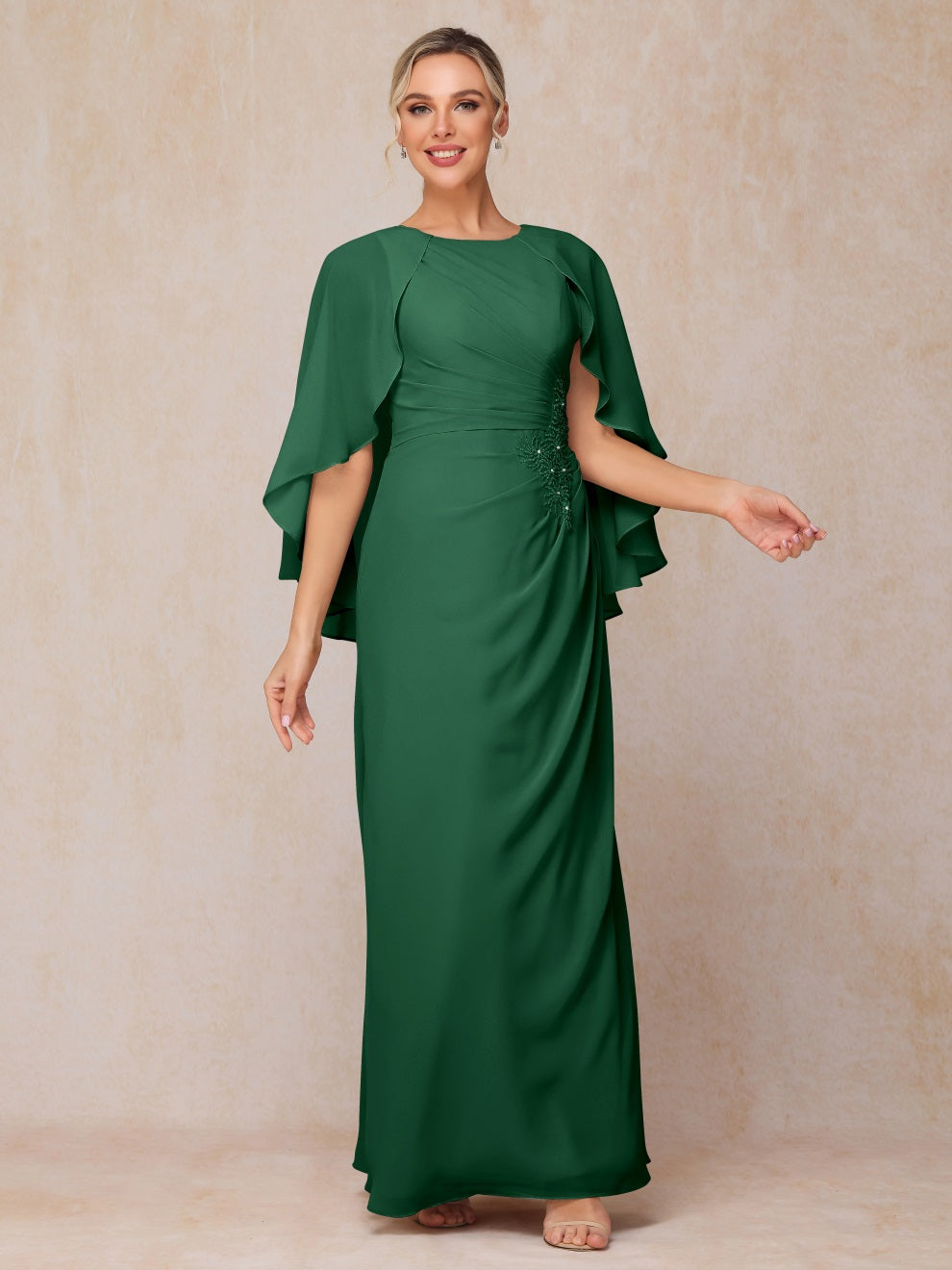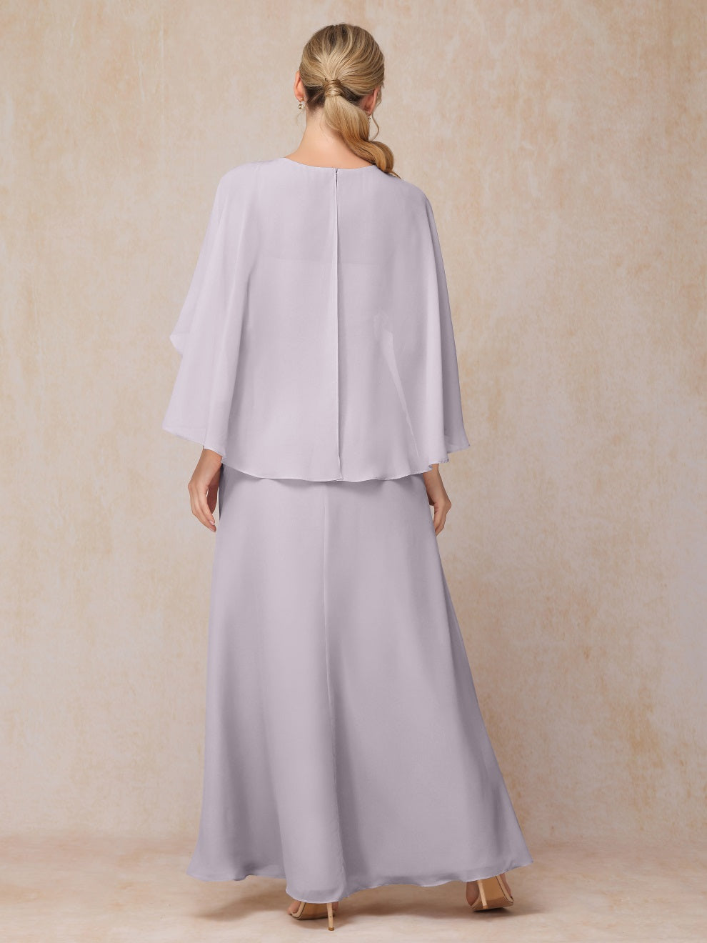 Trapezförmig Bootsausschnitt Chiffon Brautmutterkleider mit Spitze verziert mit Umhang