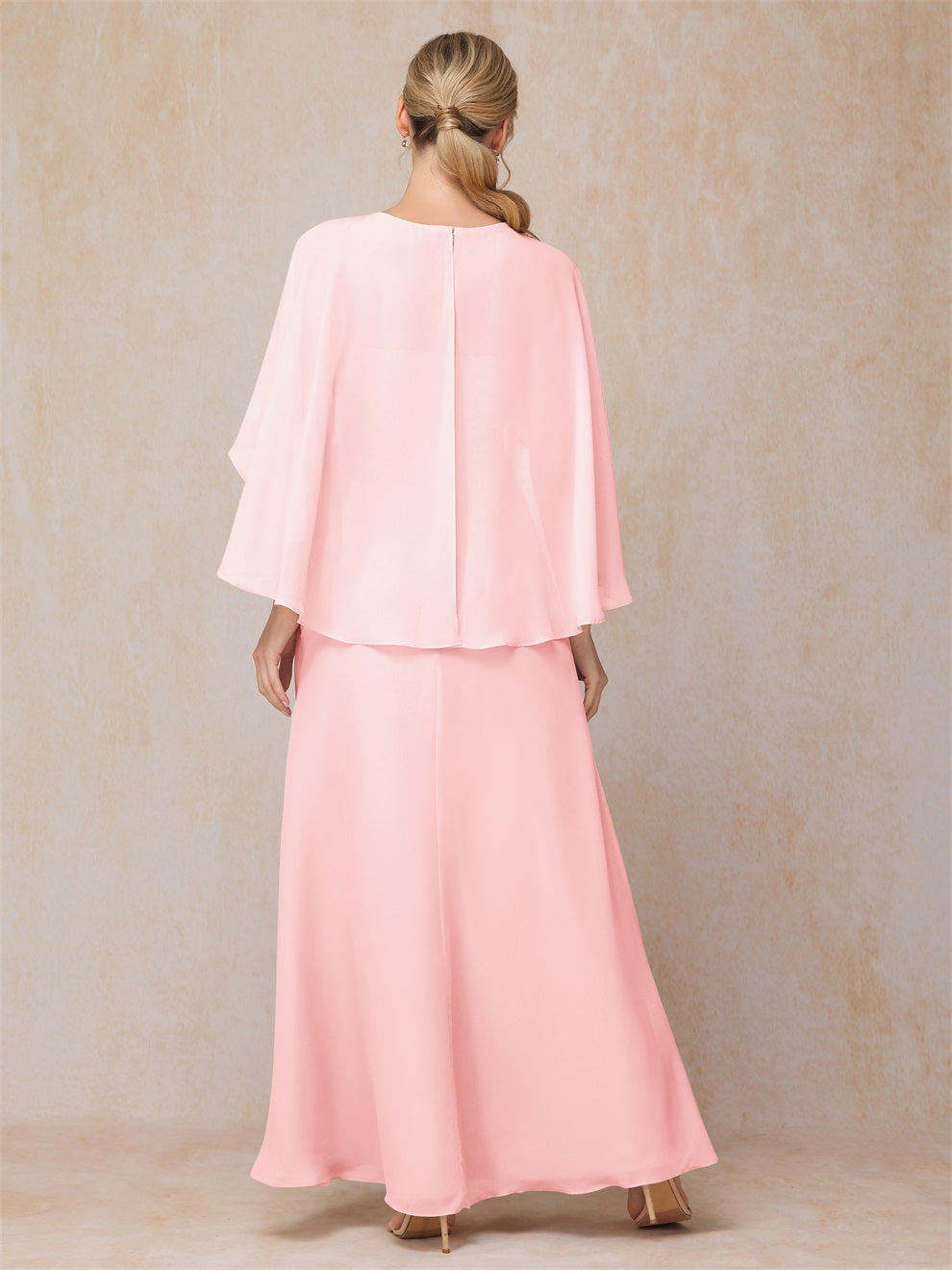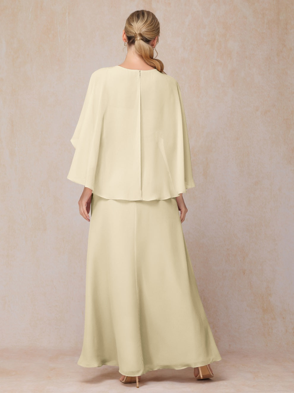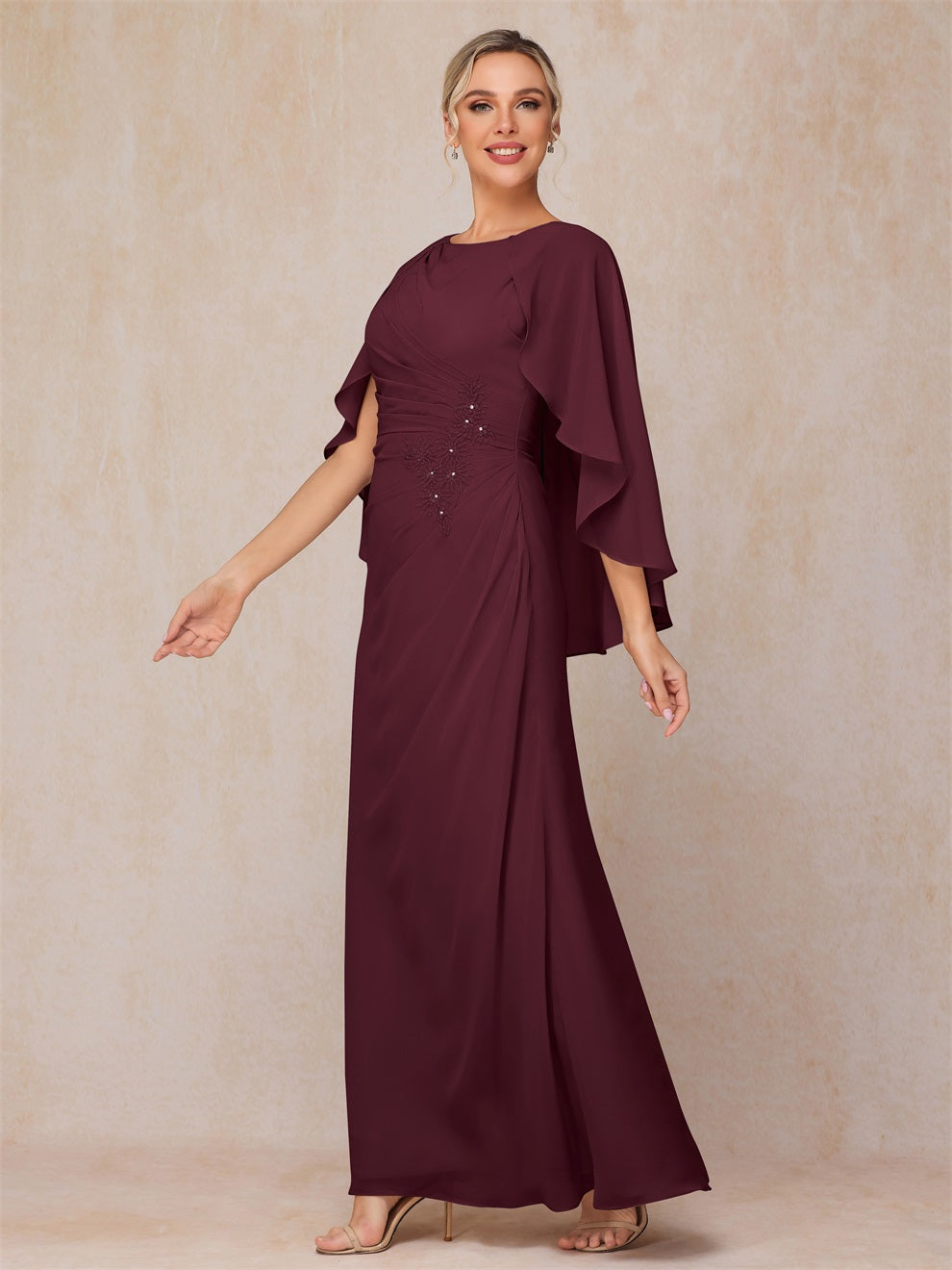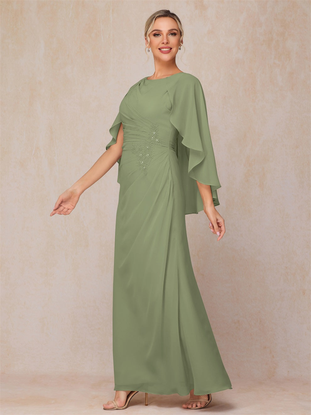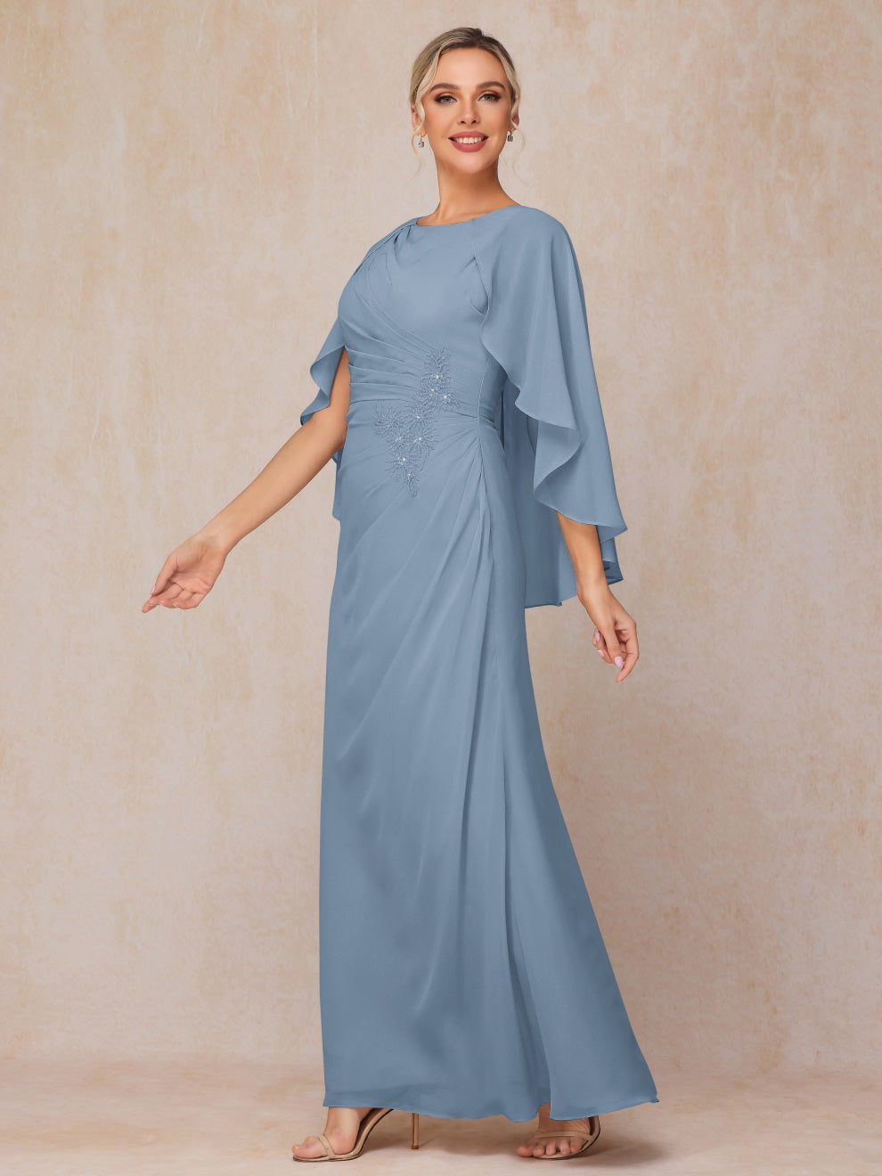 Trapezförmig Bootsausschnitt Chiffon Brautmutterkleider mit Spitze verziert mit Umhang