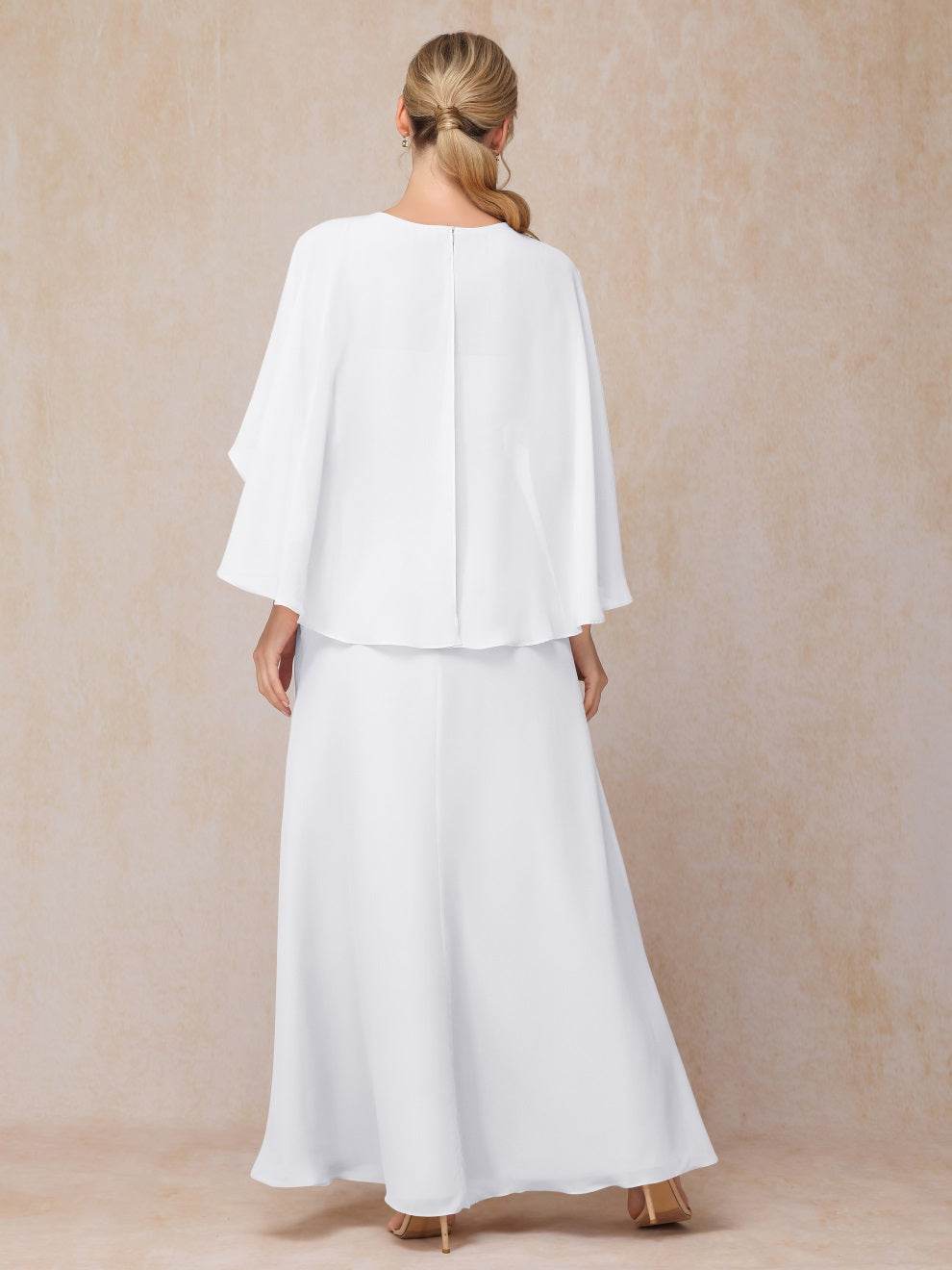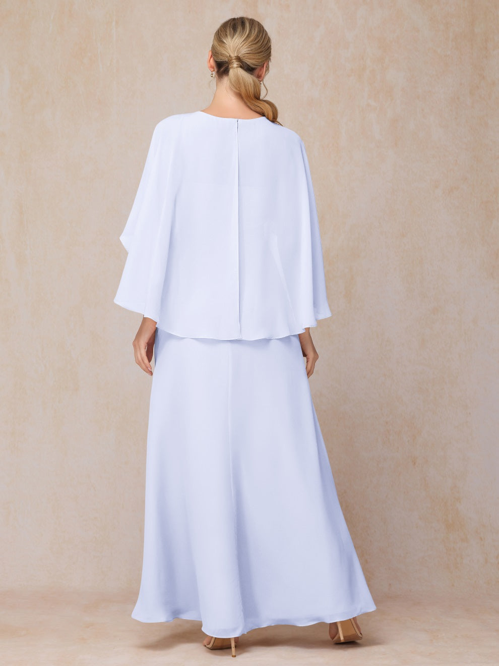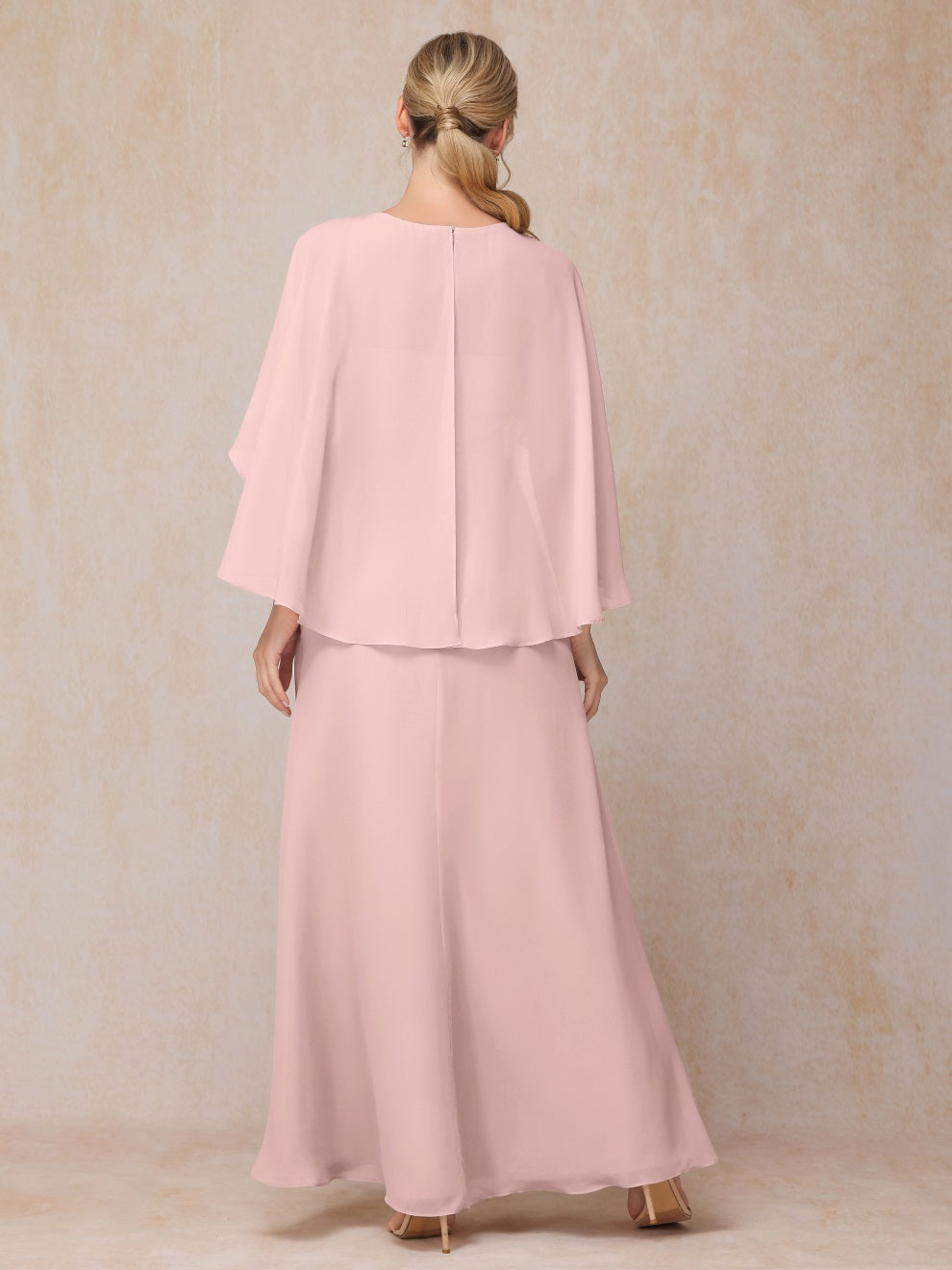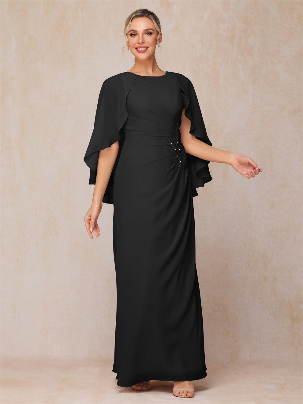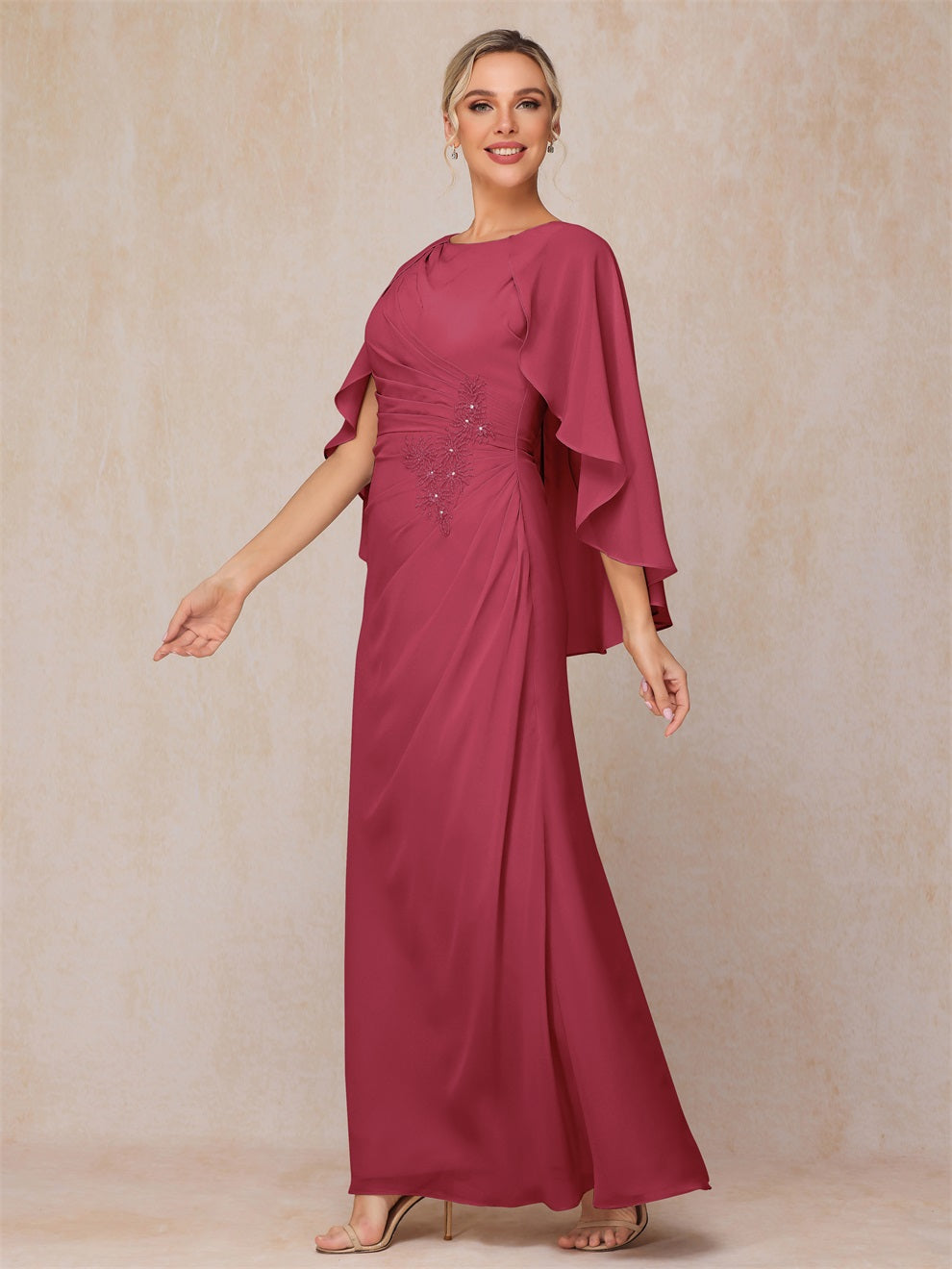 Trapezförmig Bootsausschnitt Chiffon Brautmutterkleider mit Spitze verziert mit Umhang