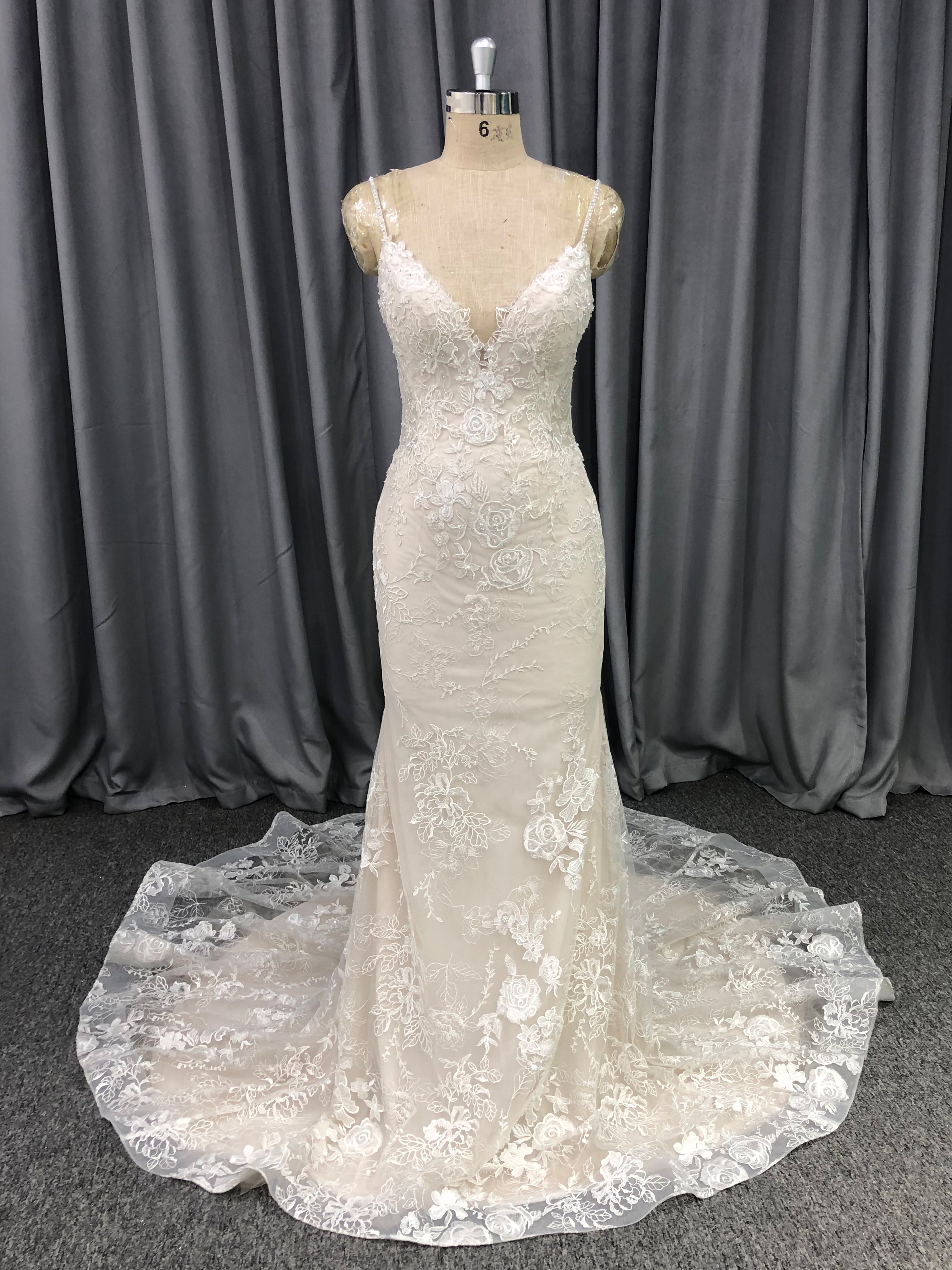 Trompete/Mermaid Spaghetti-Träger Hof-Schleppe Spitze Brautkleider