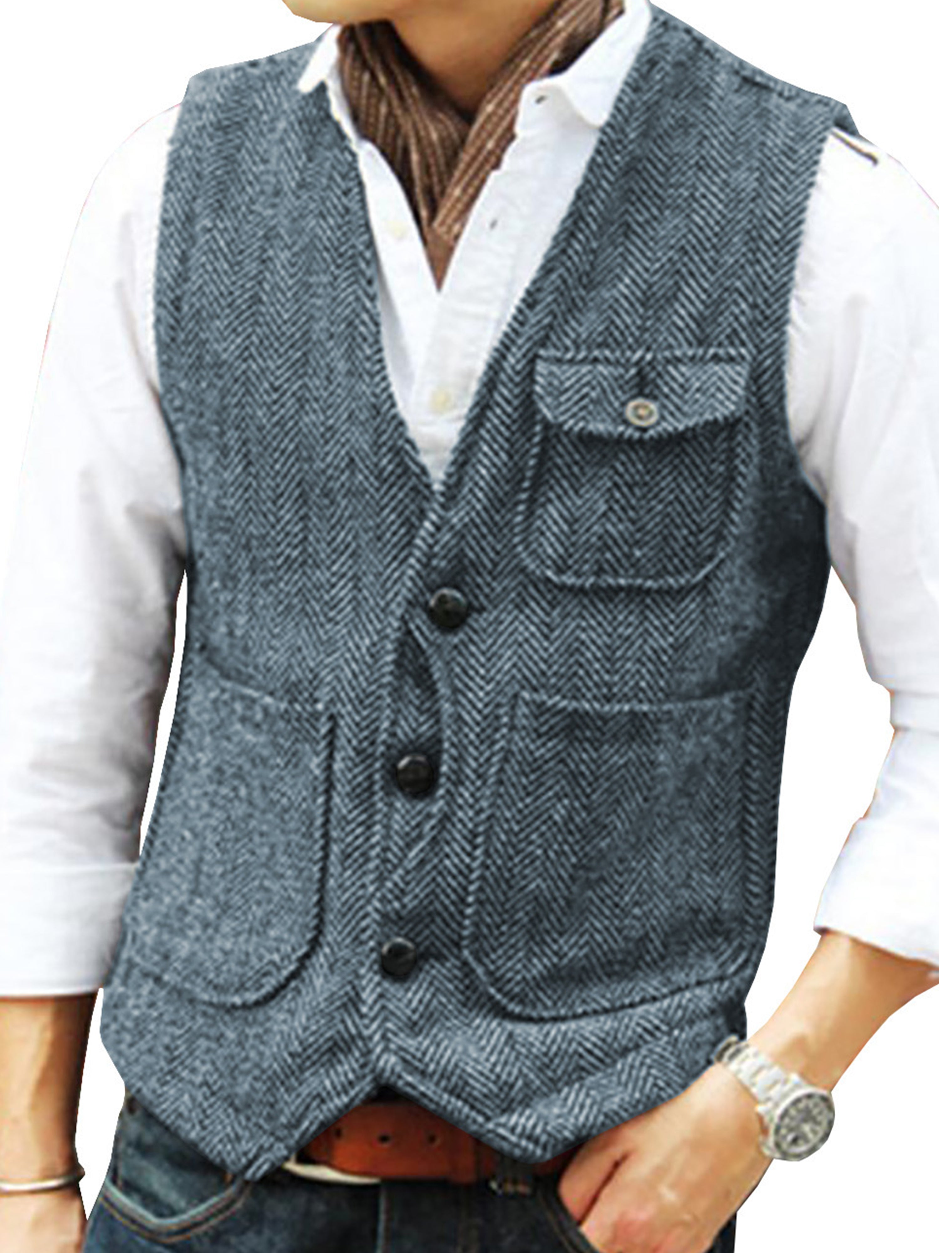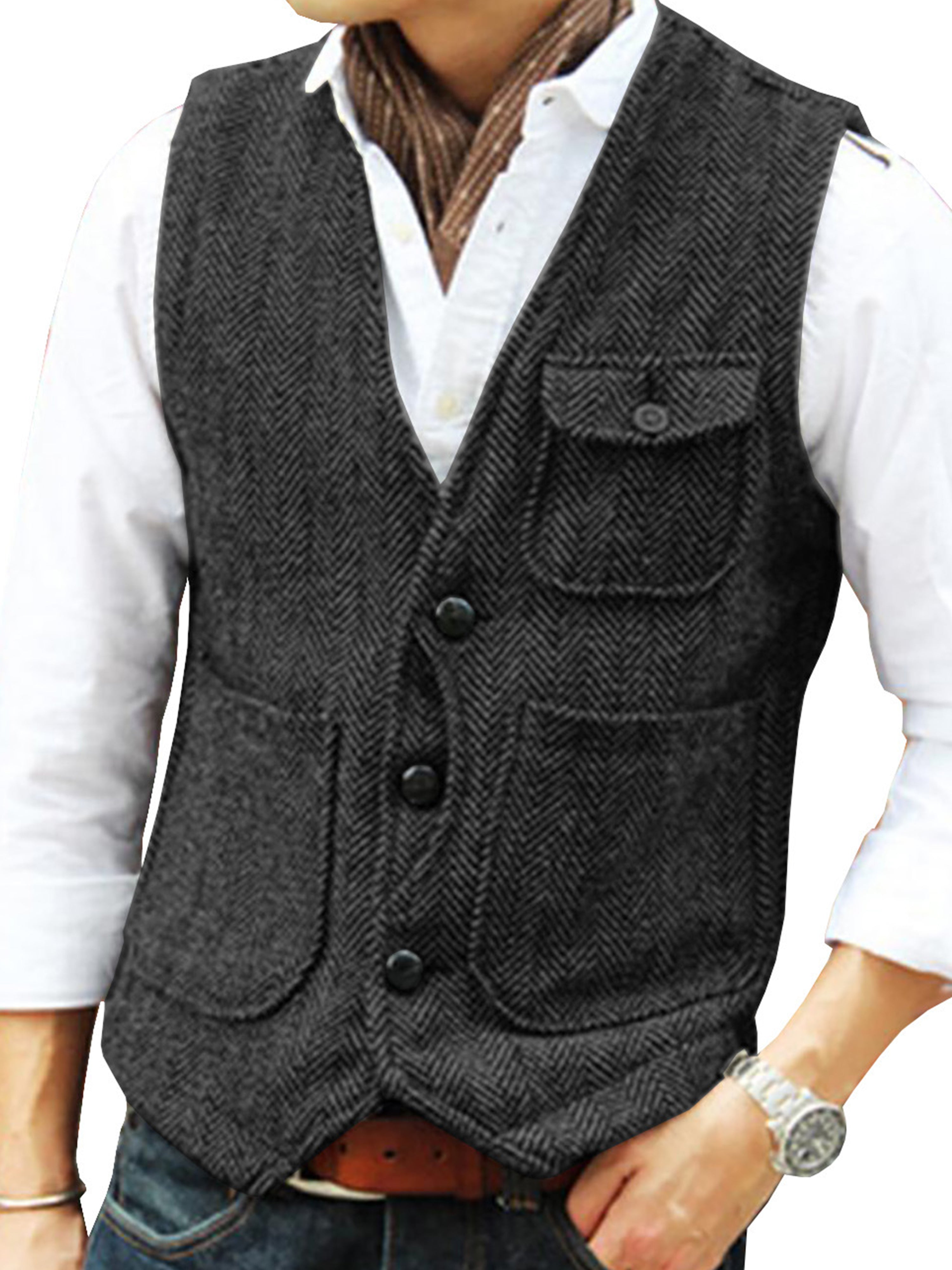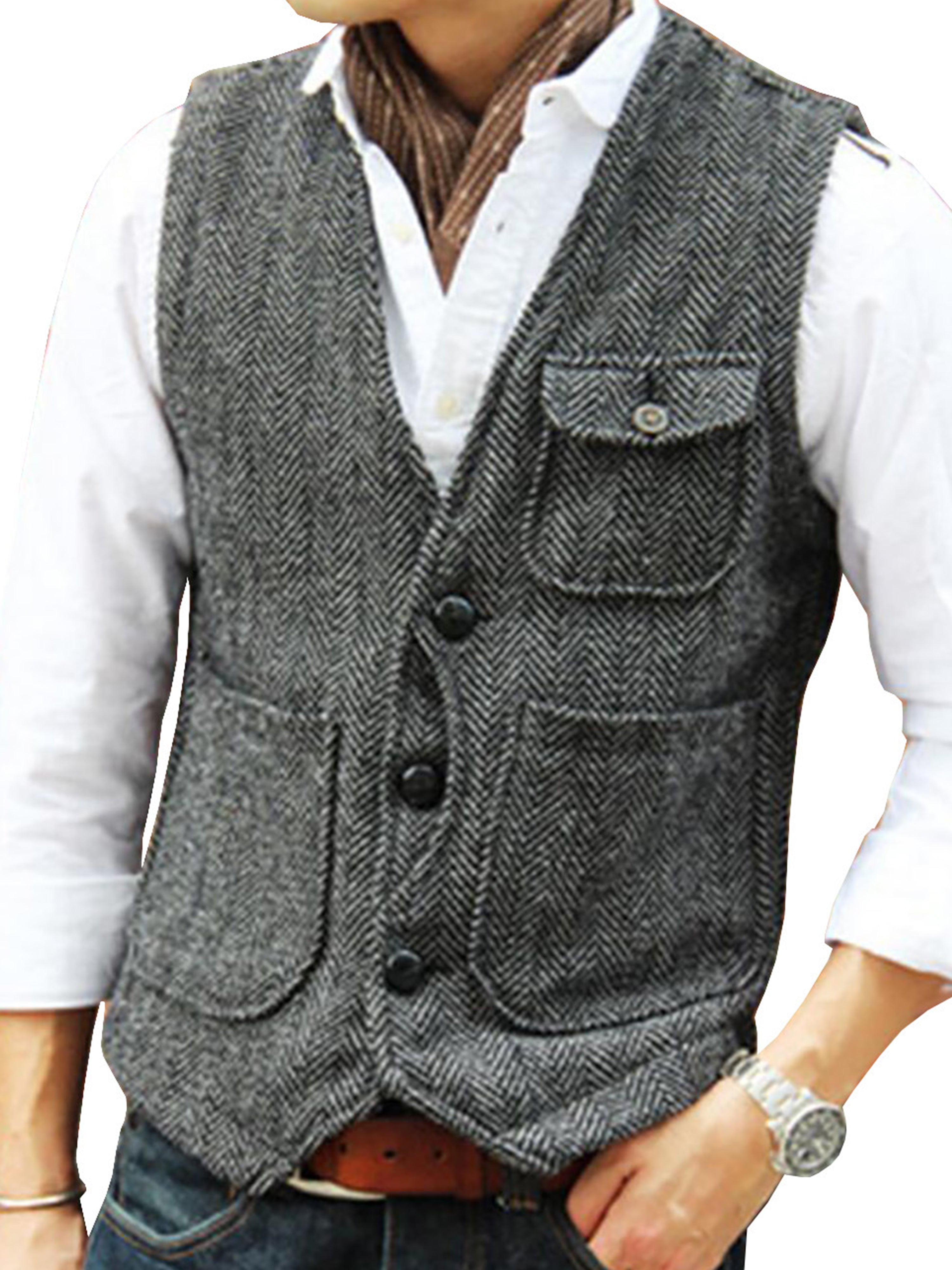 Tweed Suit Herren Anzug V-Ausschnitt Weste