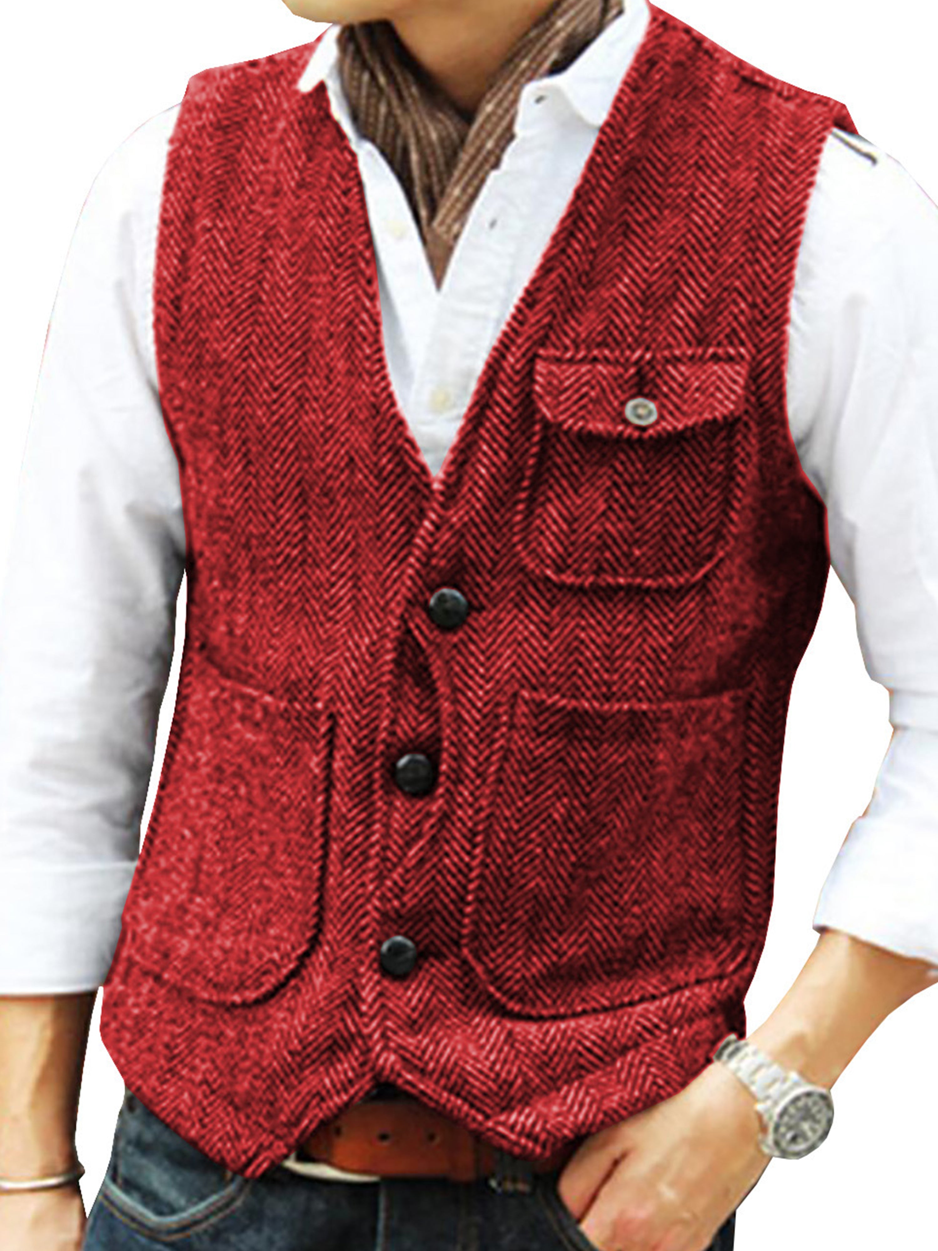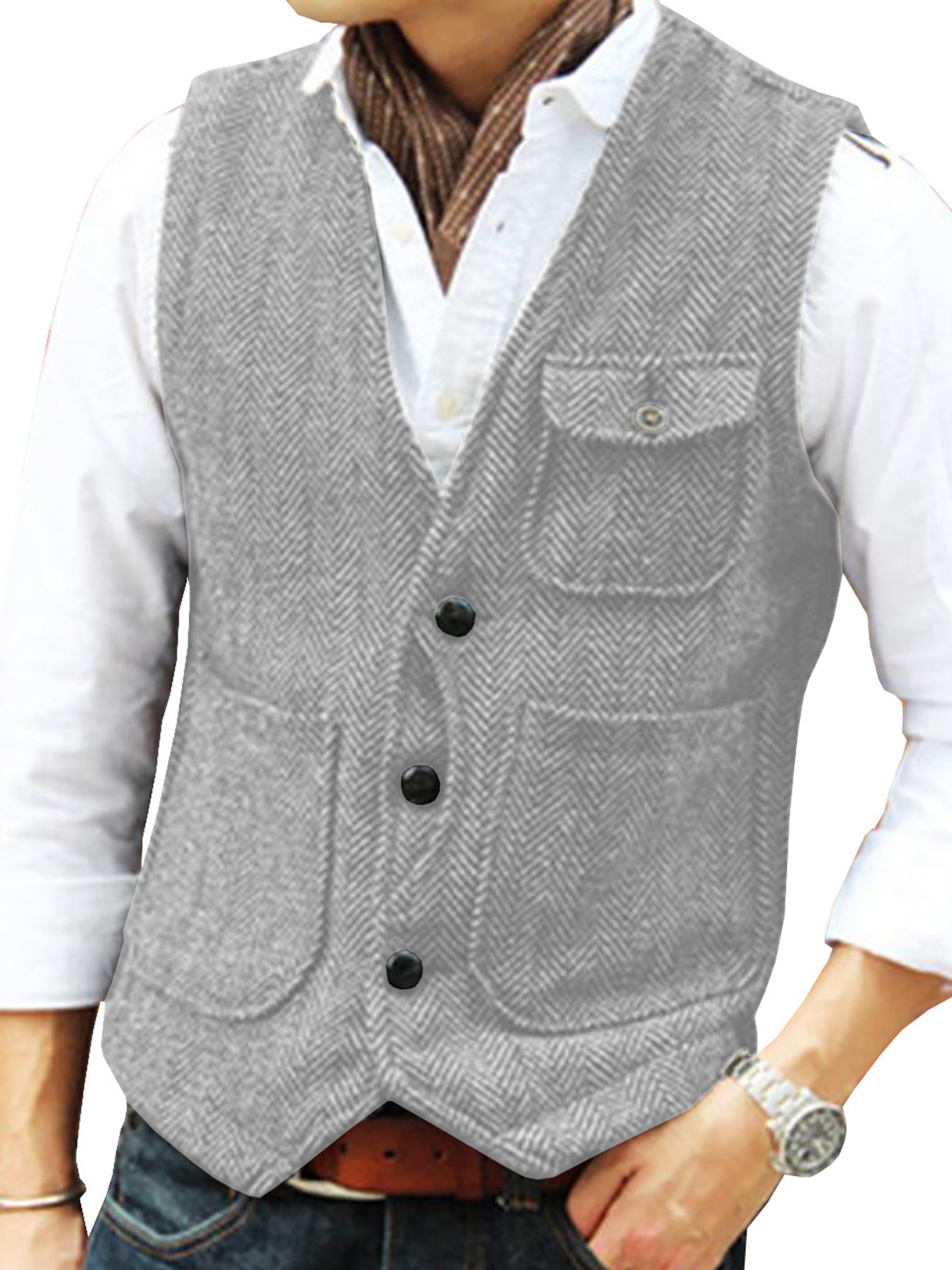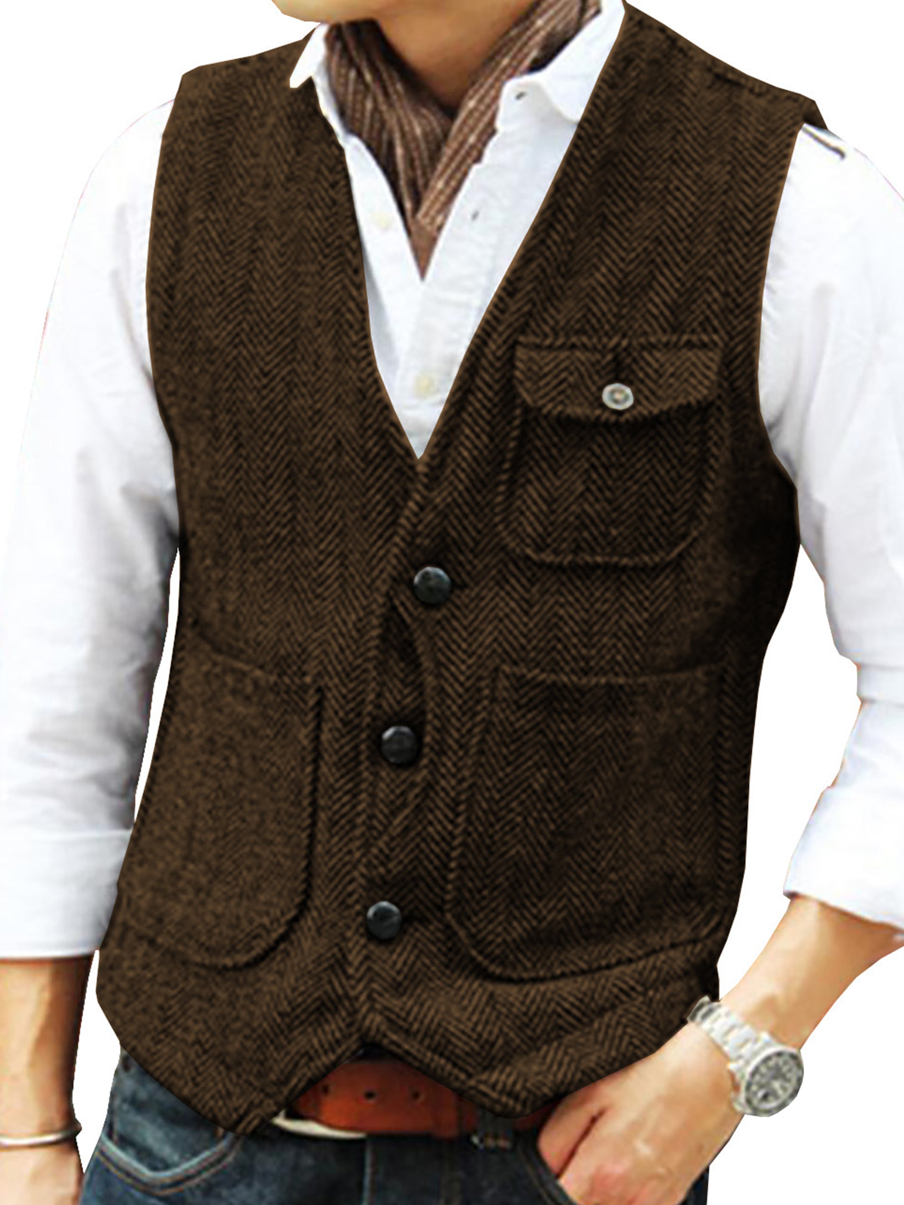 Tweed Suit Herren Anzug V-Ausschnitt Weste