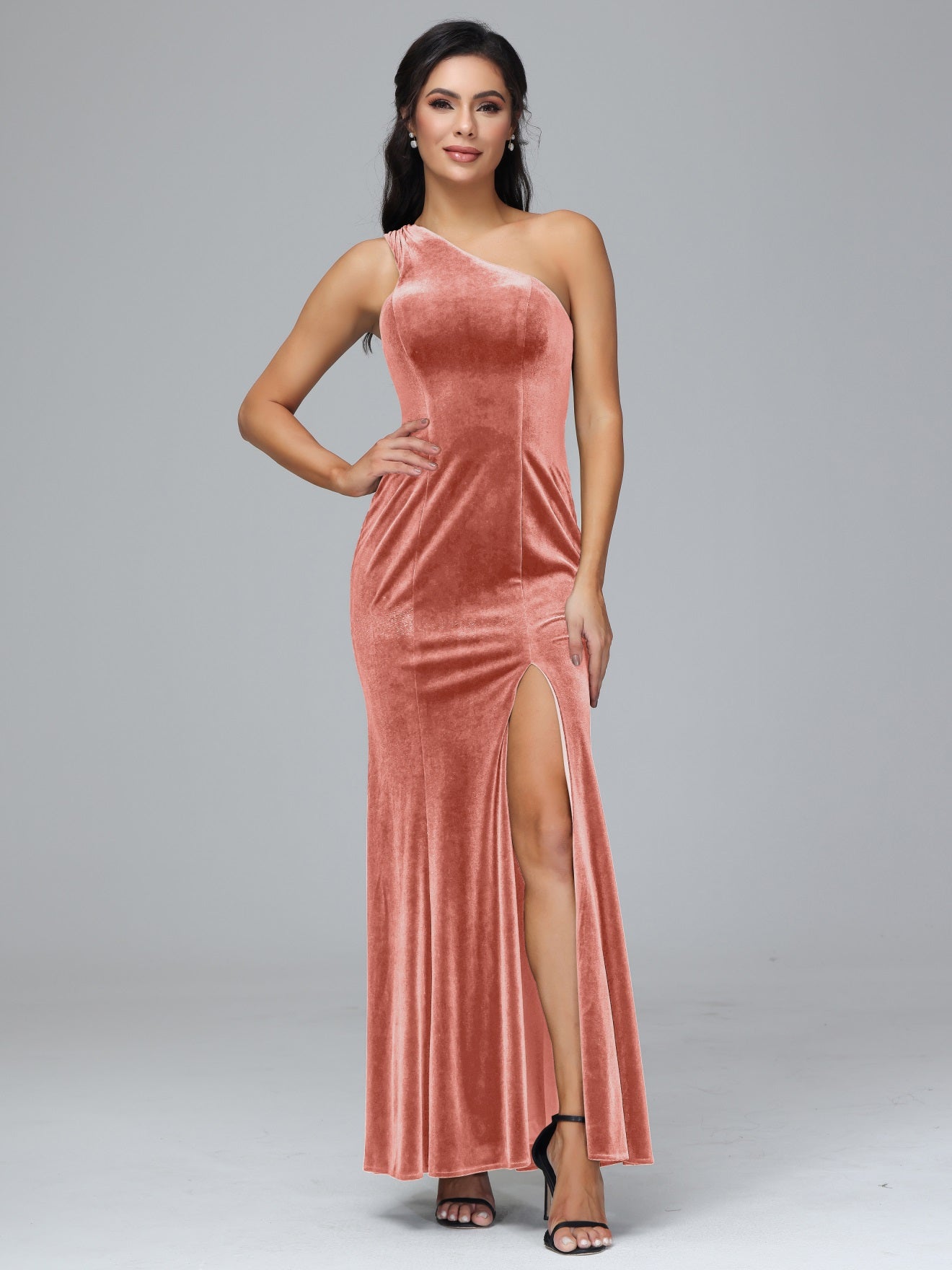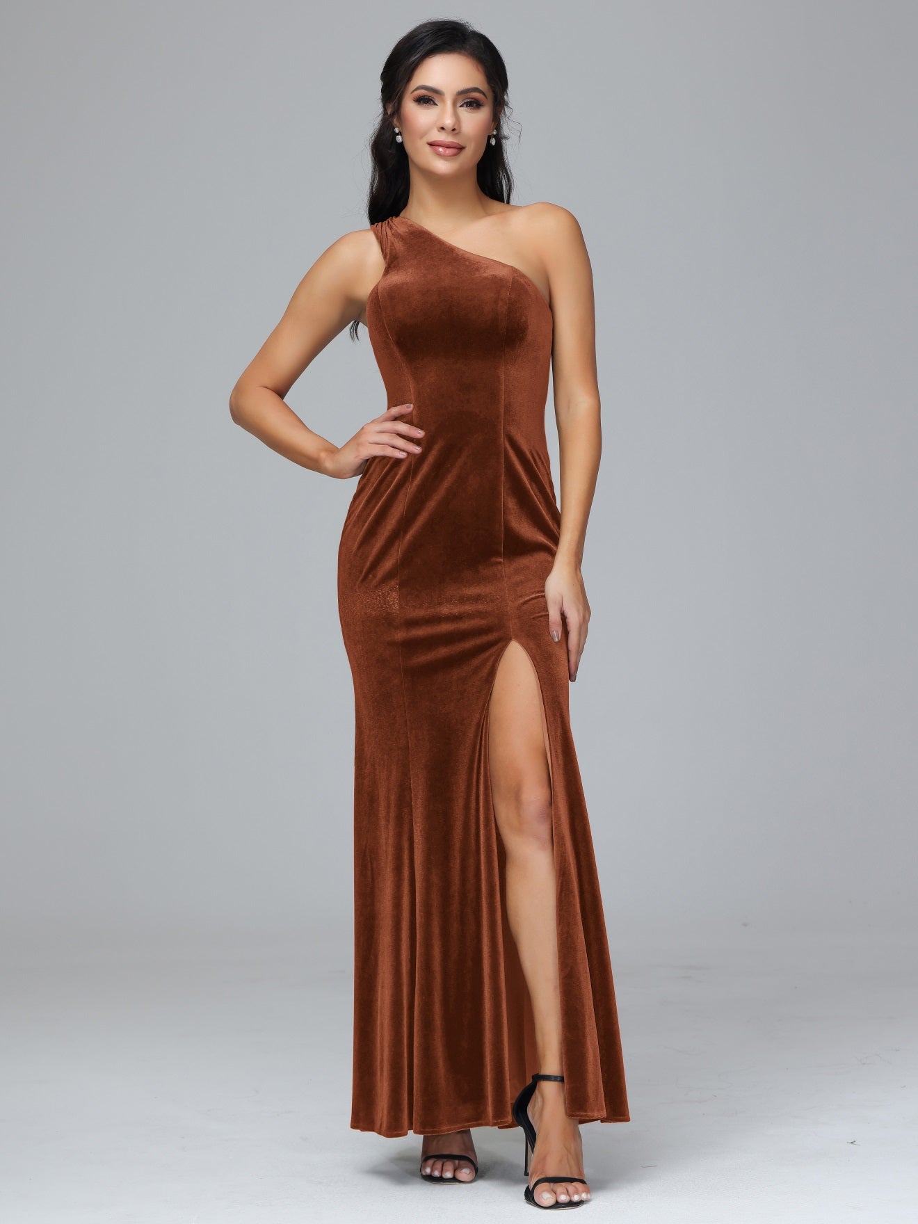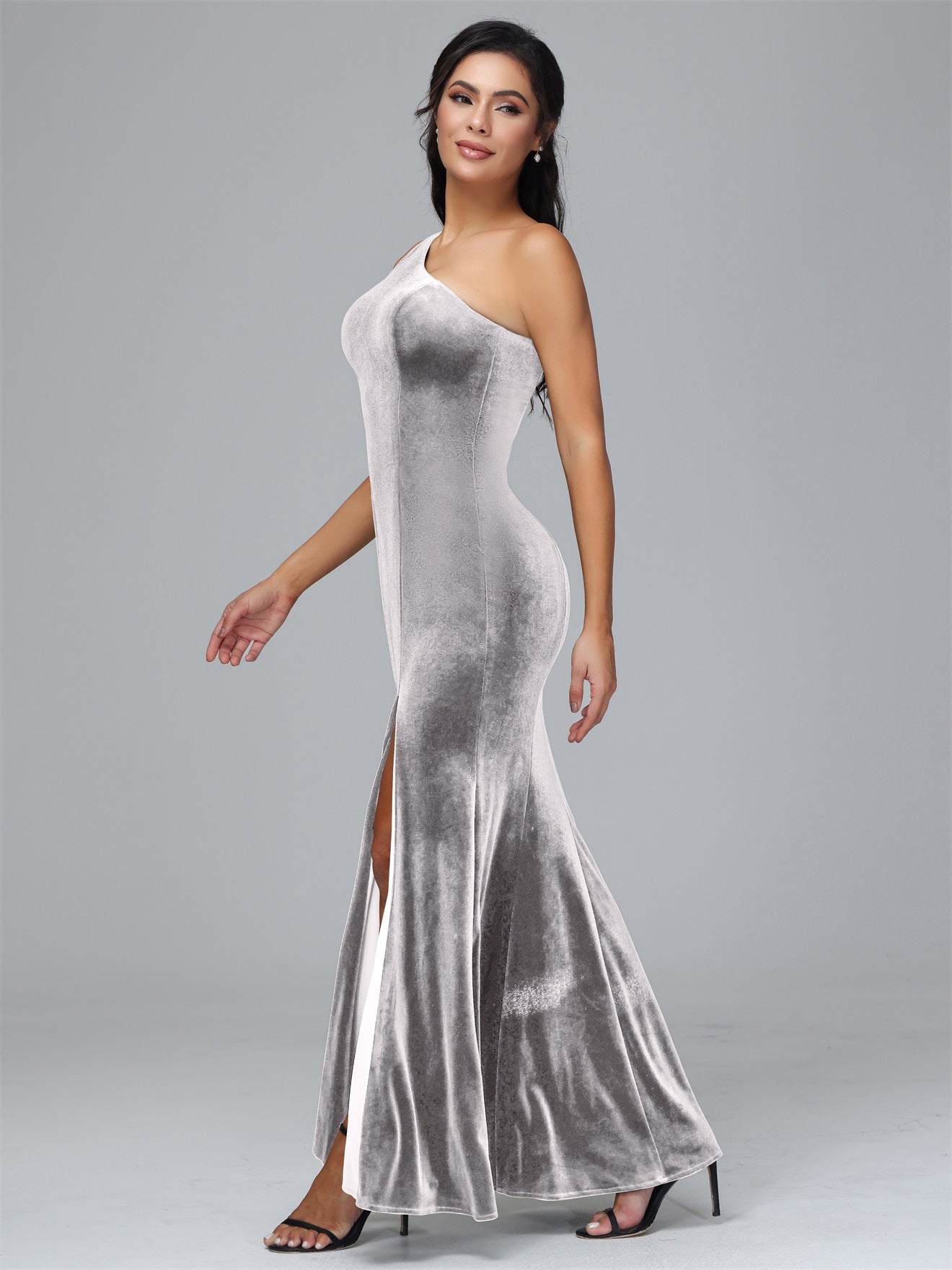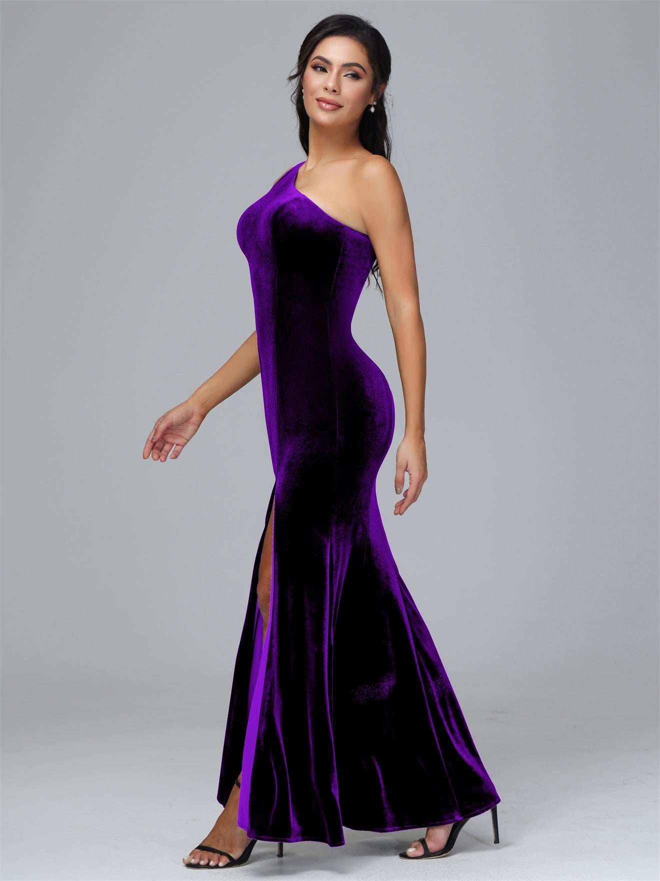 Übergröße Eine Schulter Geschlitzte Samt Brautjungfernkleider