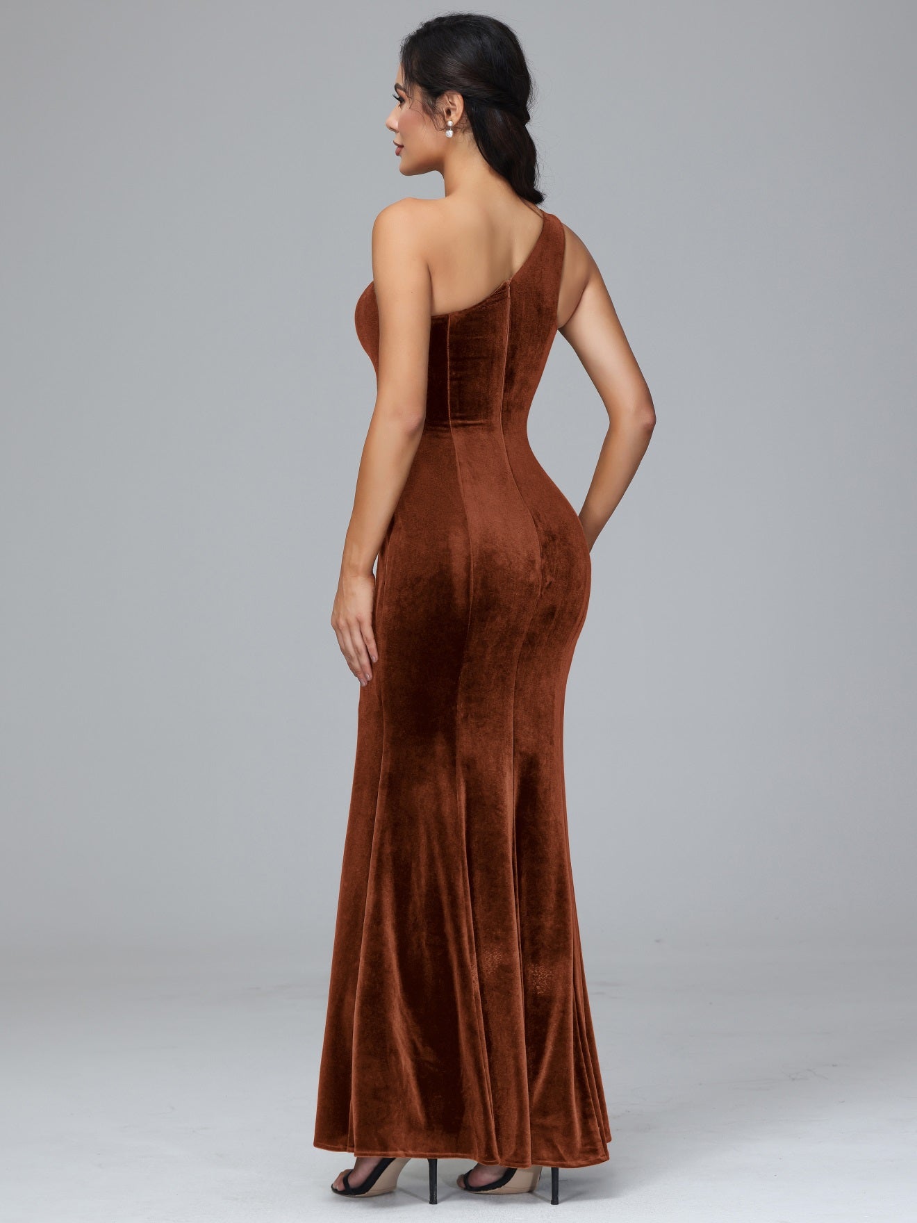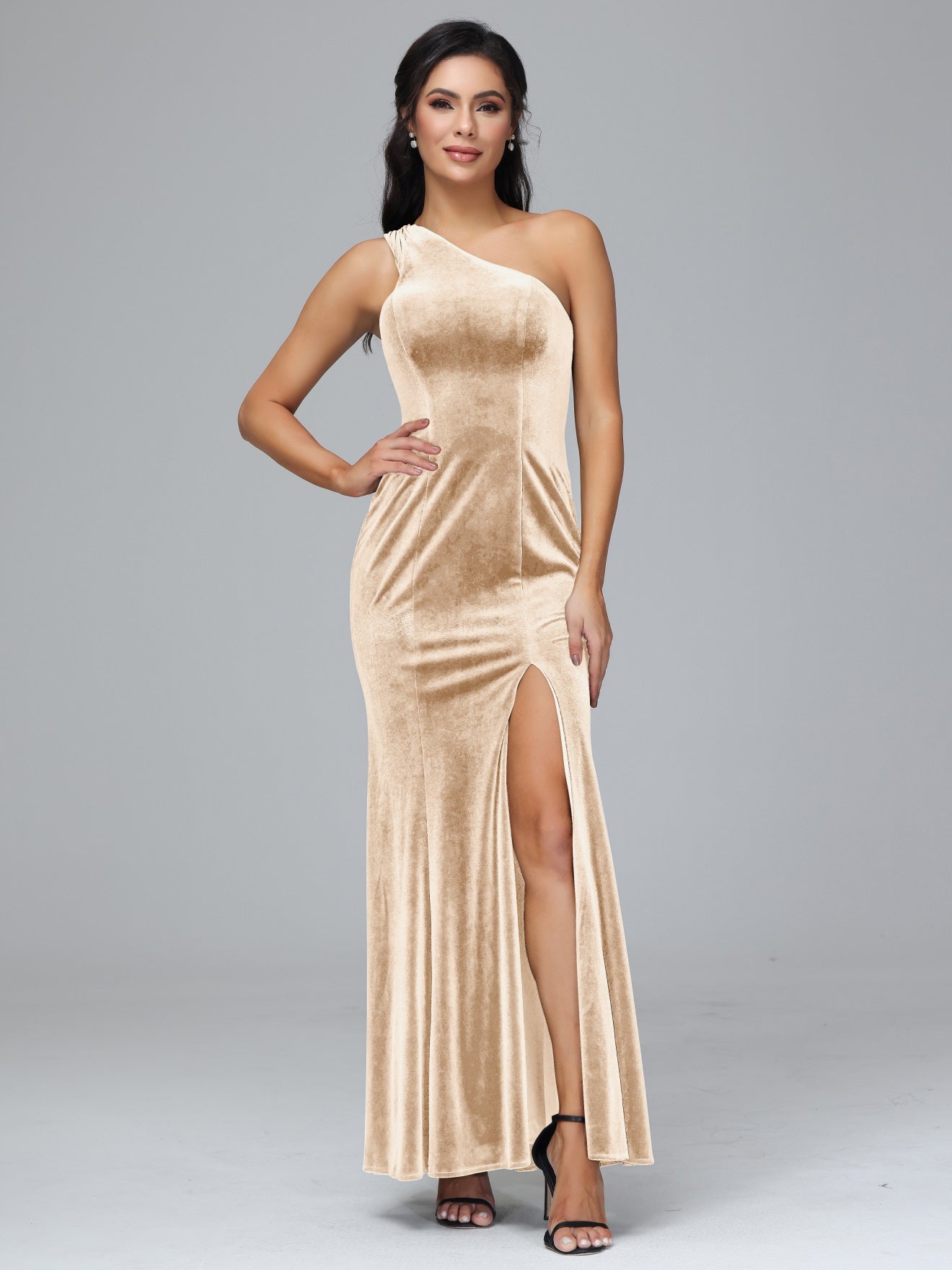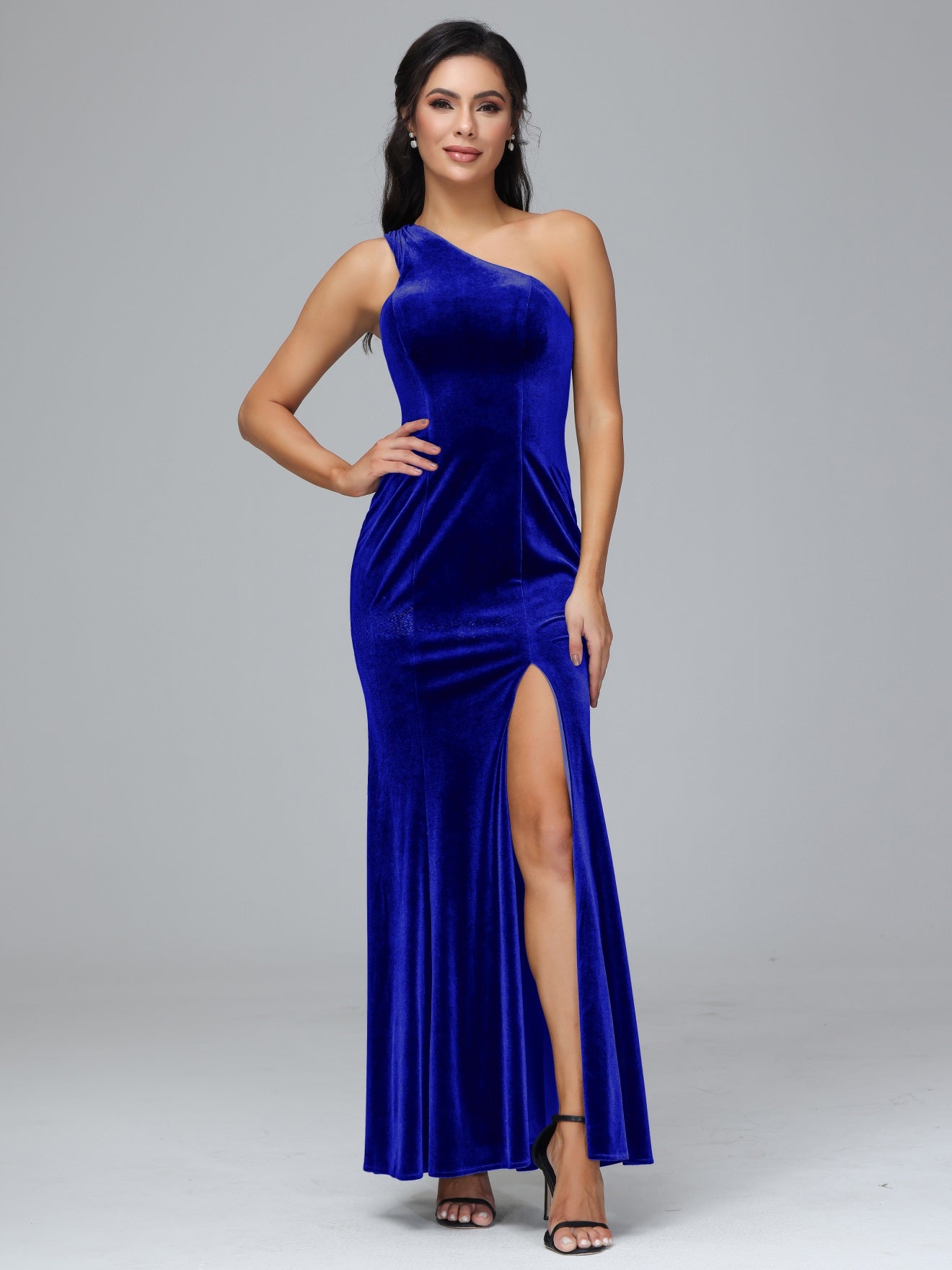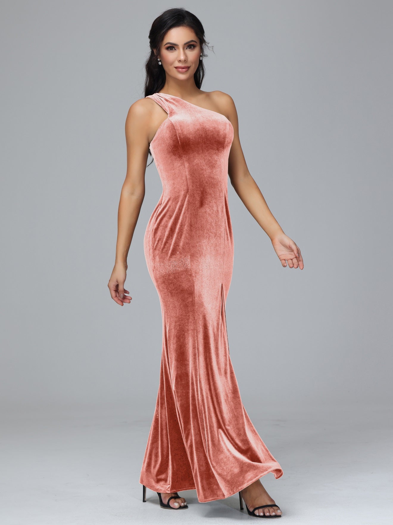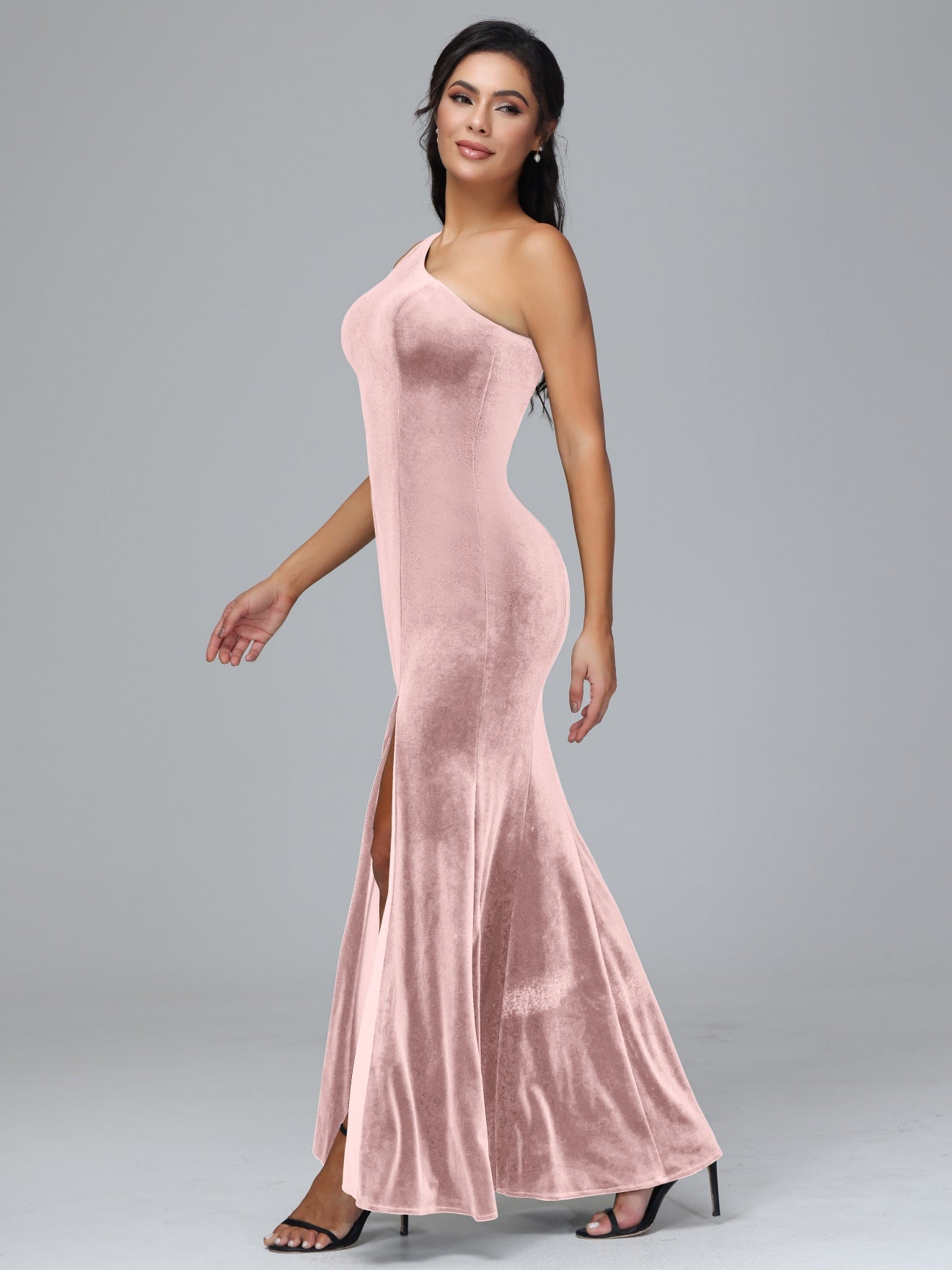 Übergröße Eine Schulter Geschlitzte Samt Brautjungfernkleider