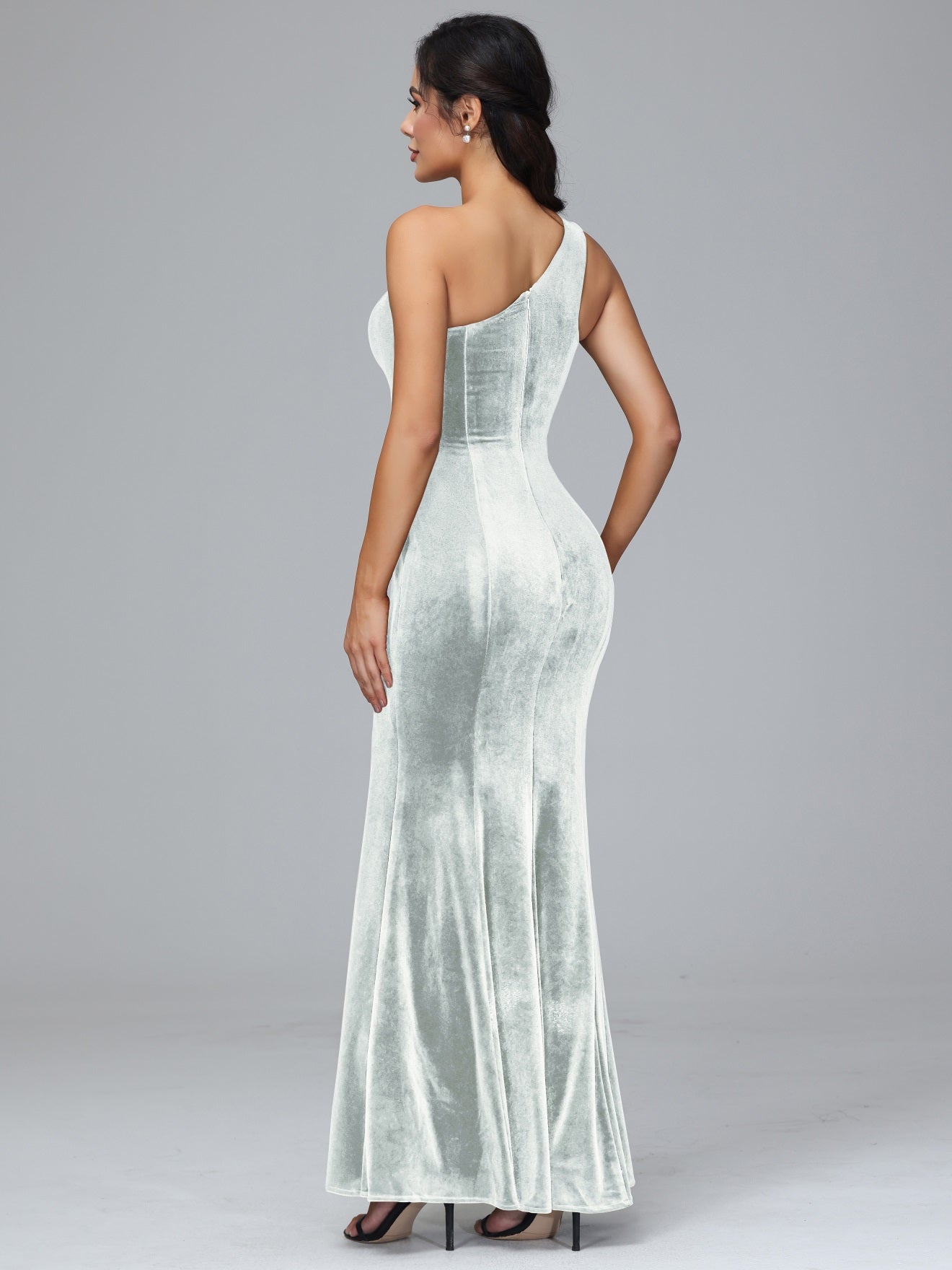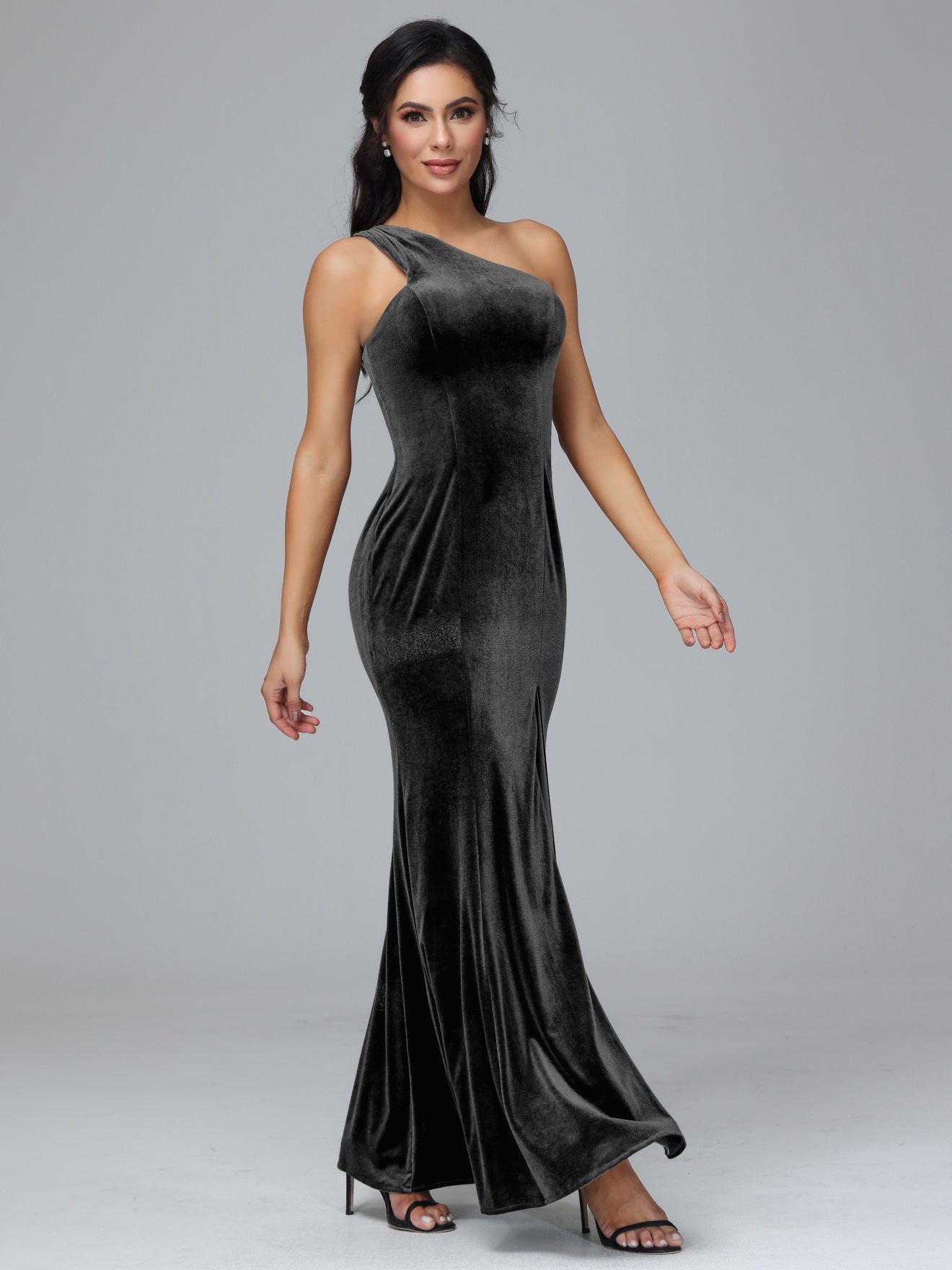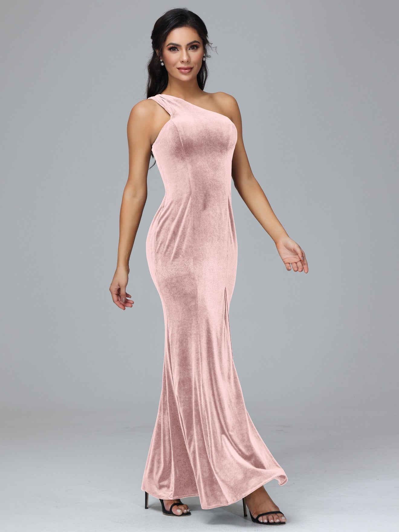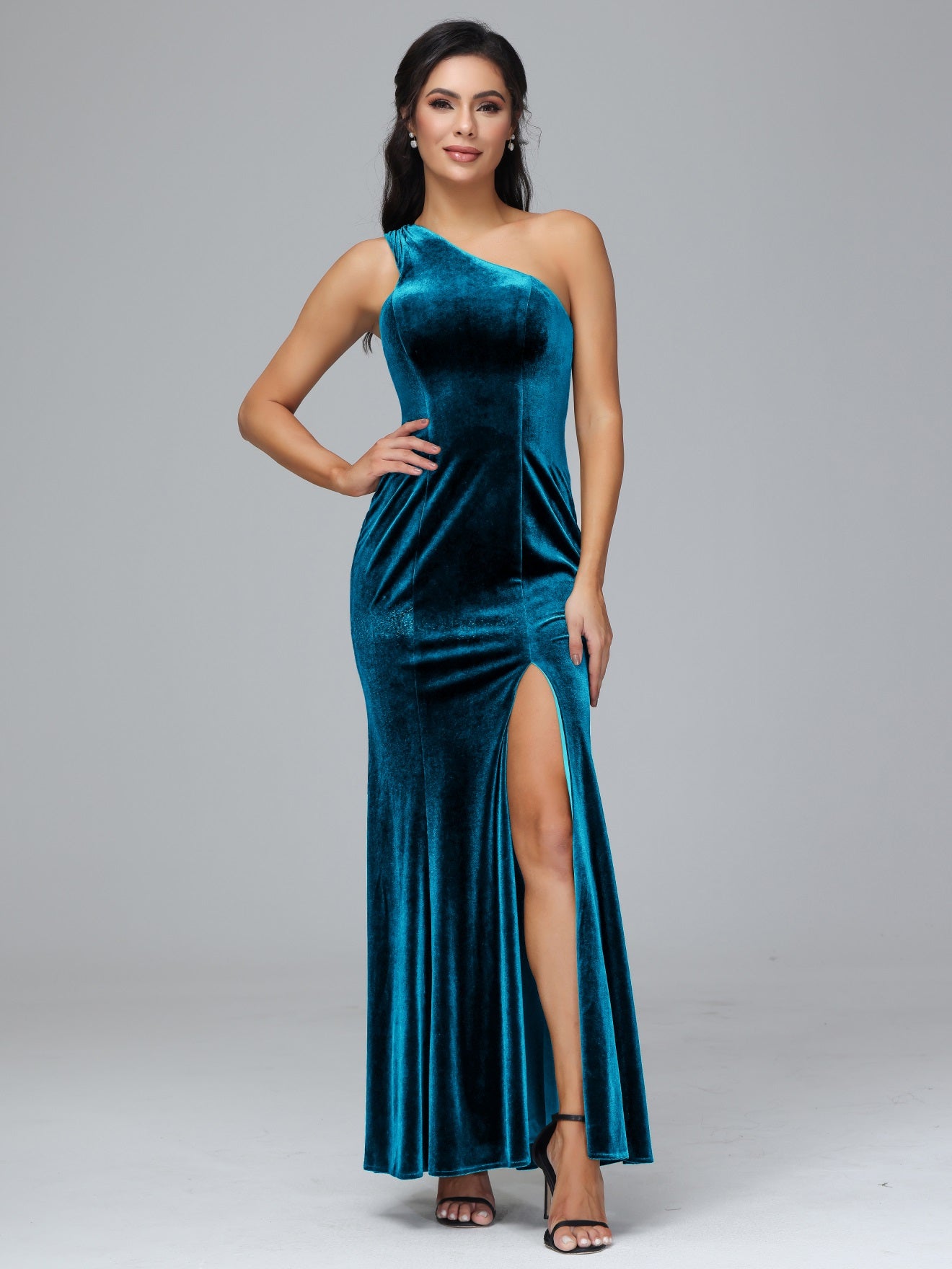 Übergröße Eine Schulter Geschlitzte Samt Brautjungfernkleider