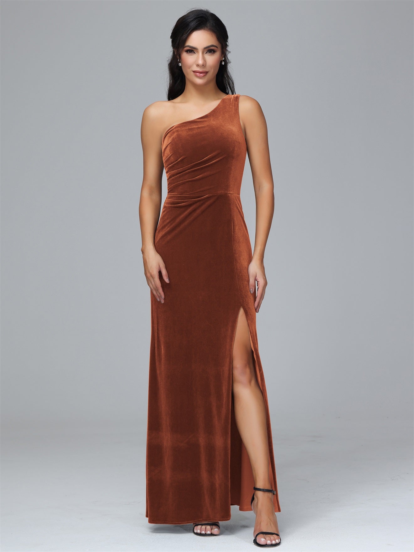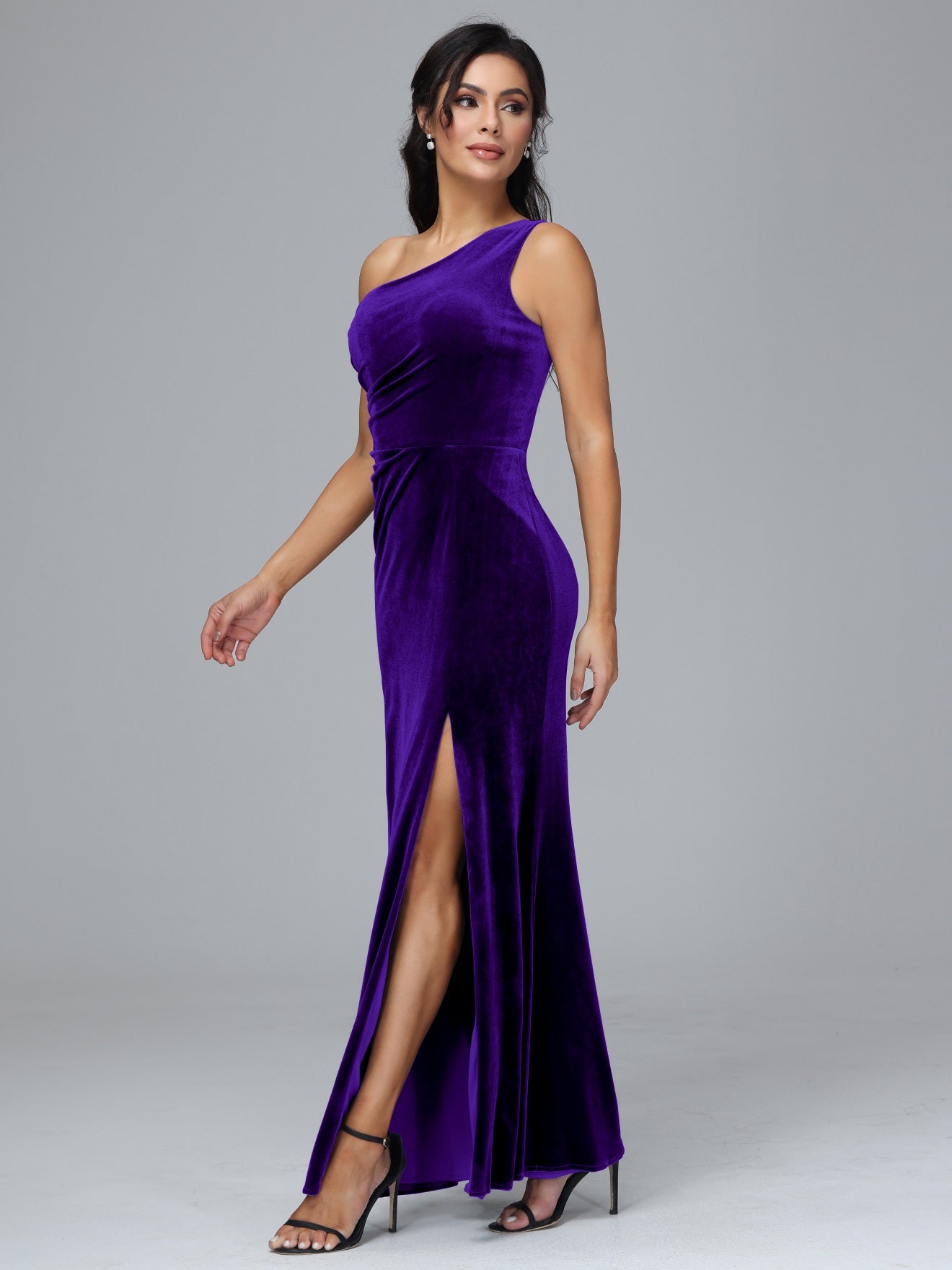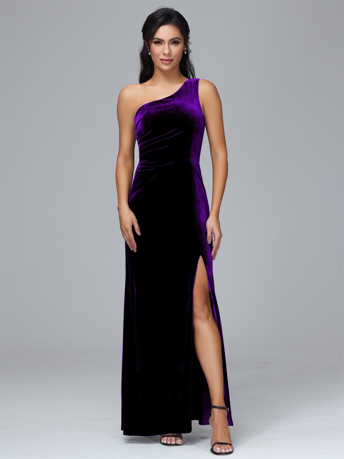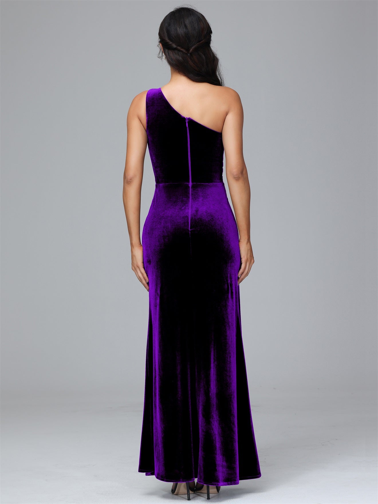 Übergröße Einfache Ein-Schulter Geschlitzt Samt Brautjungfernkleider