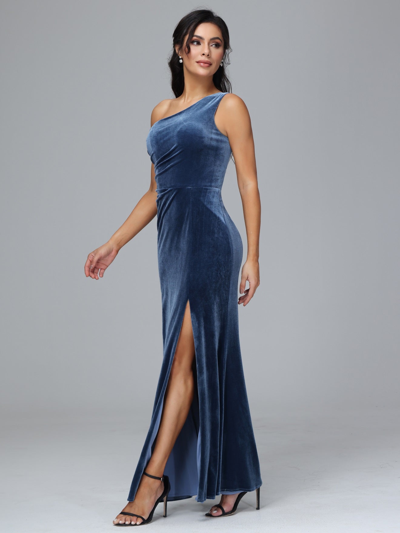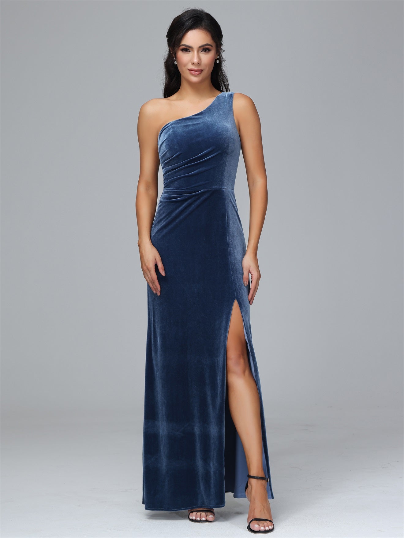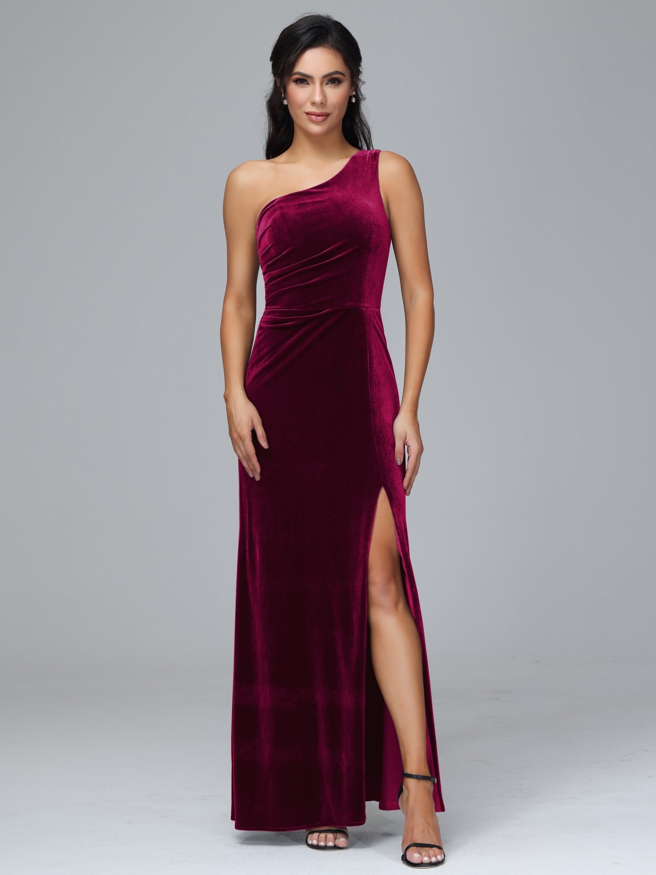 Übergröße Einfache Ein-Schulter Geschlitzt Samt Brautjungfernkleider