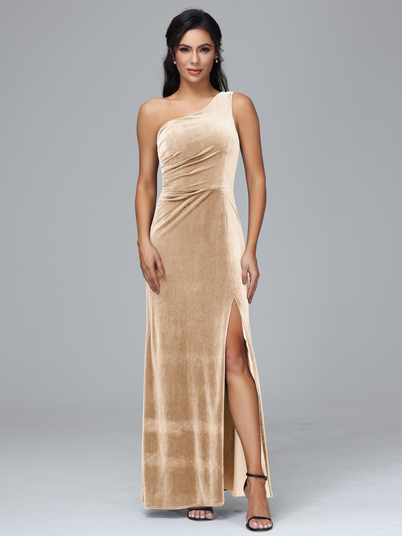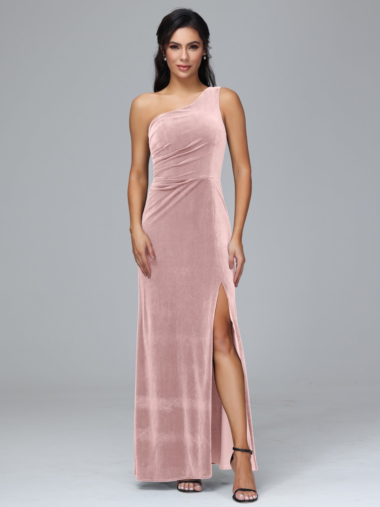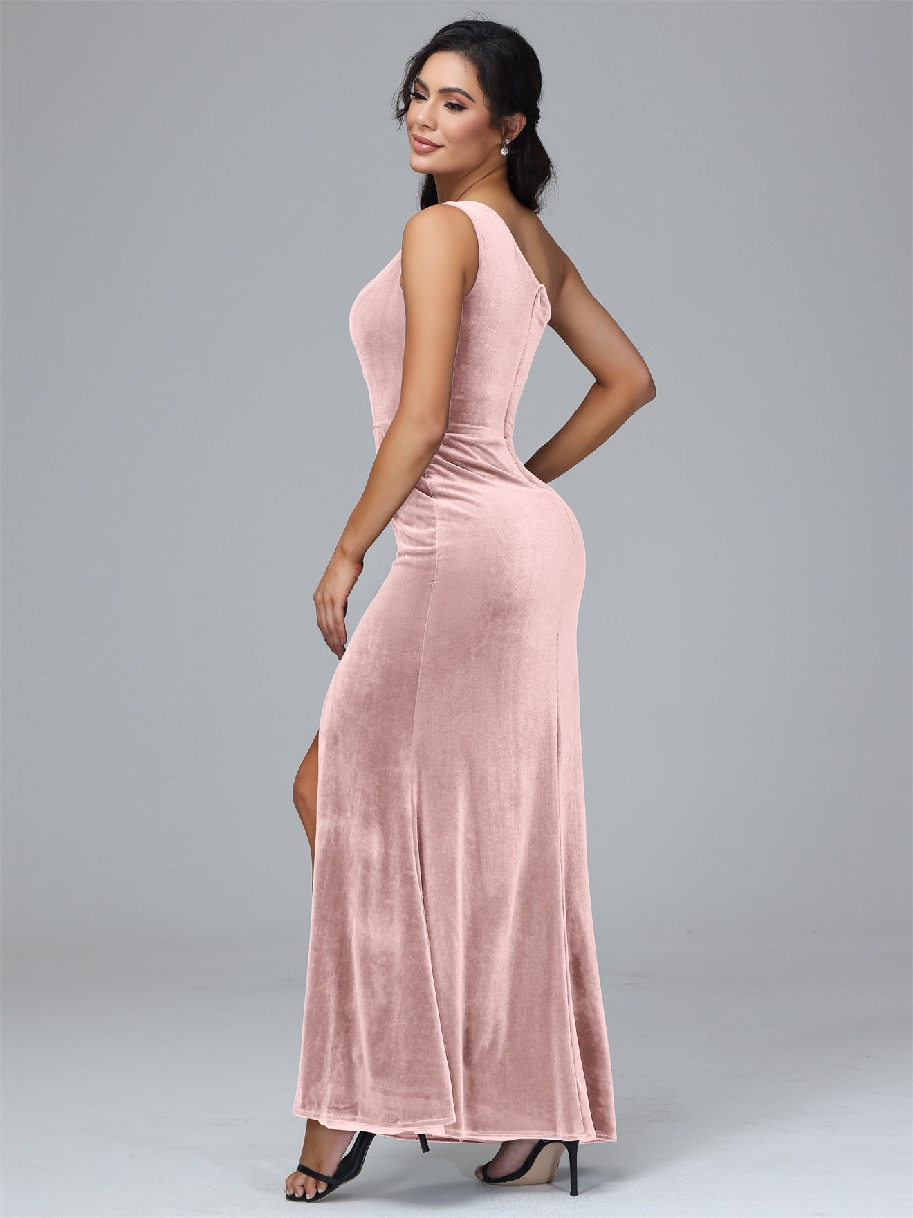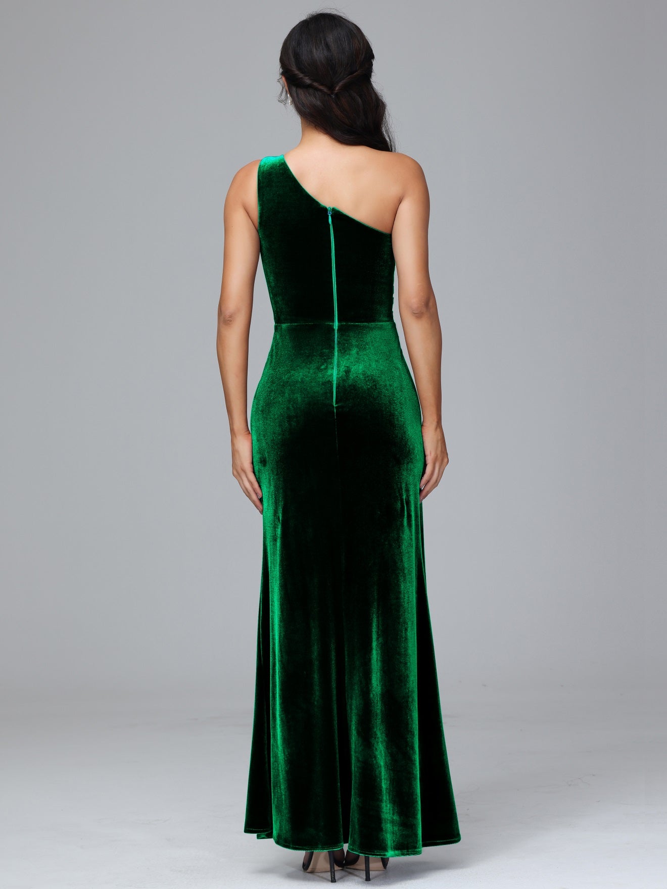 Übergröße Einfache Ein-Schulter Geschlitzt Samt Brautjungfernkleider
