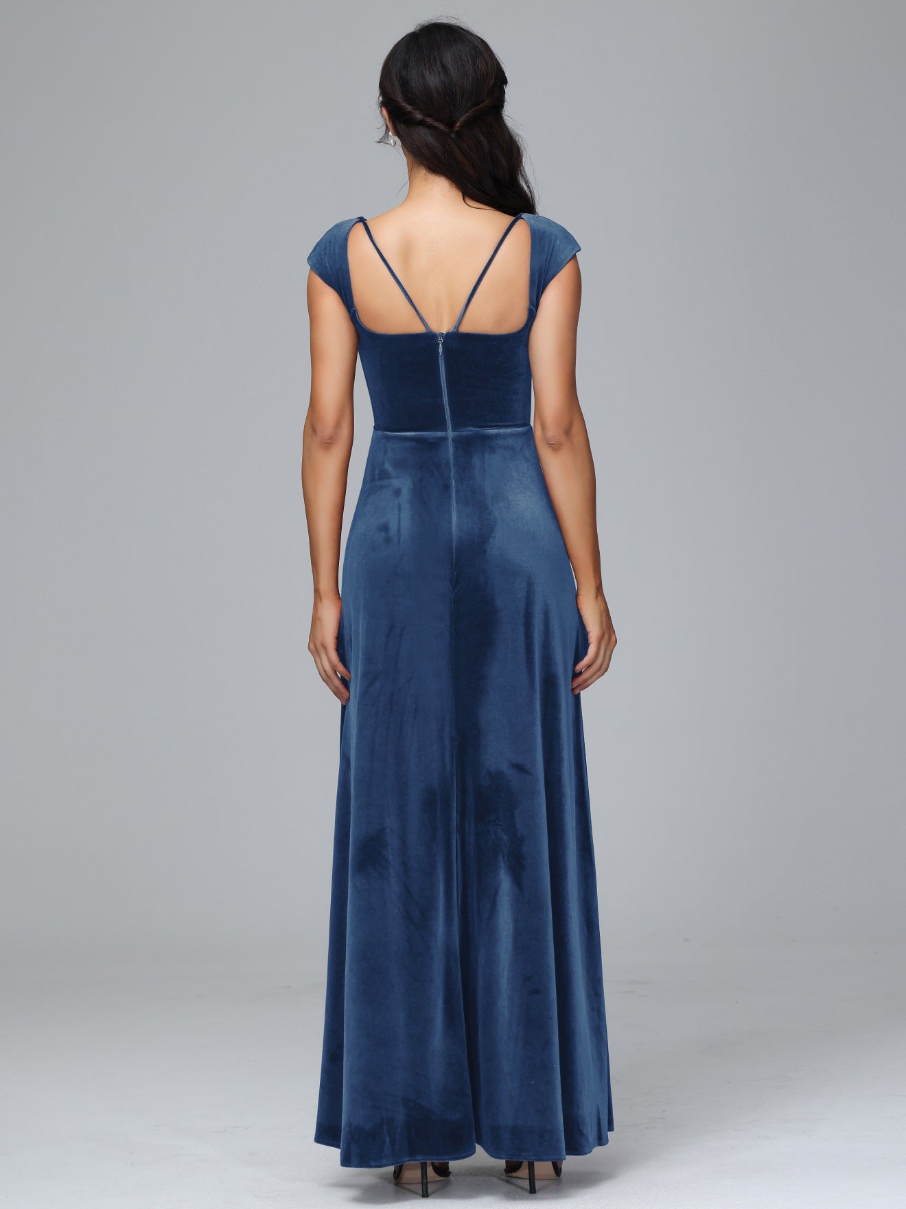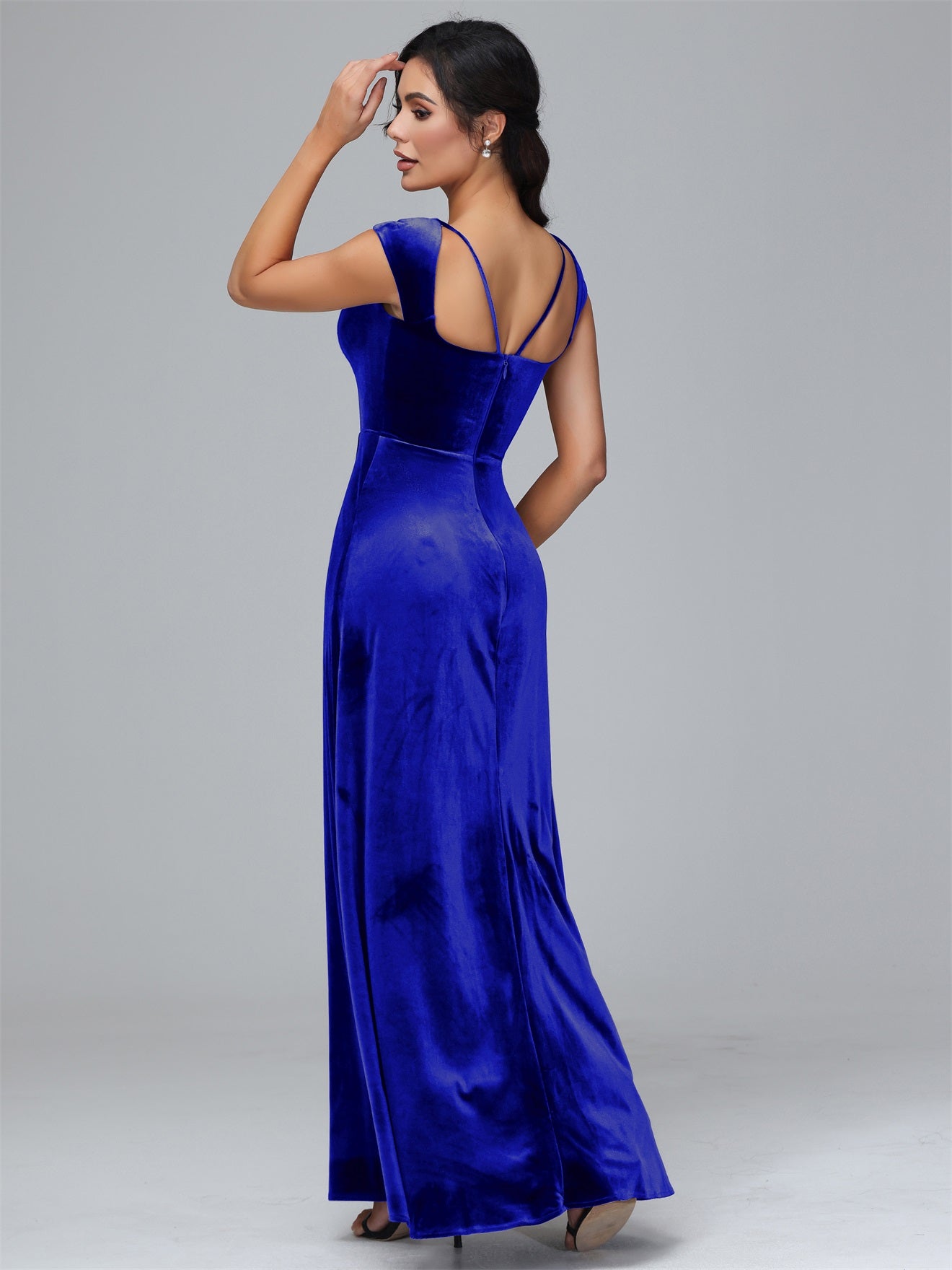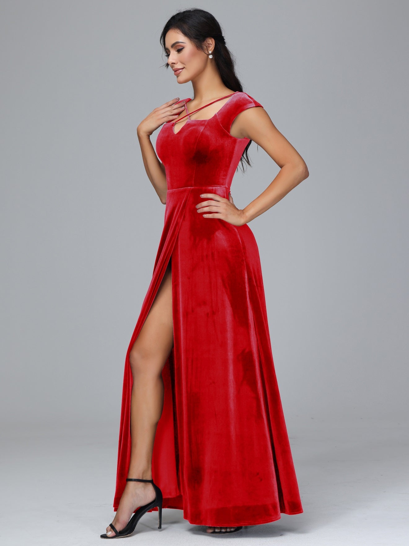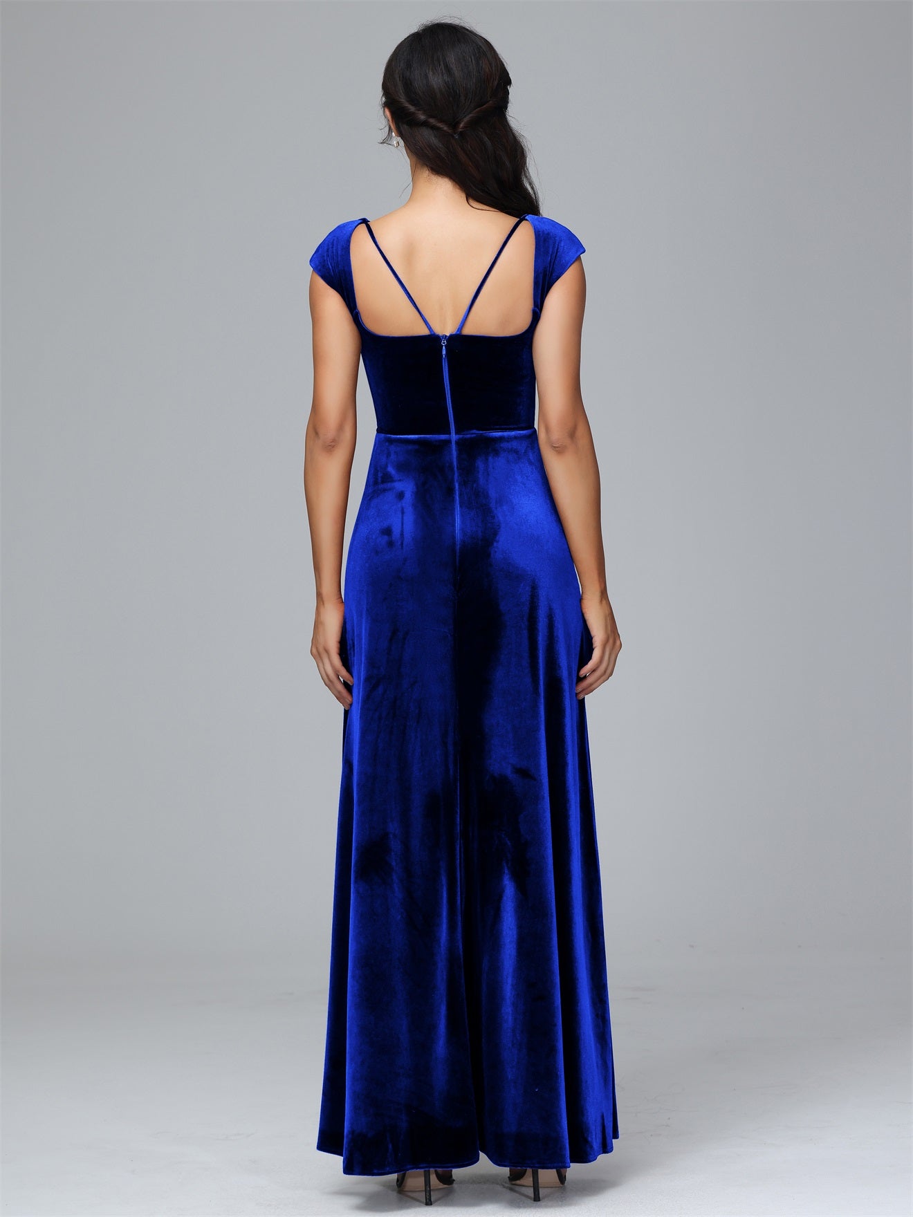 Übergröße Geschlitzter quadratischer Ausschnitt Samt mit Ärmeln Brautjungfernkleider