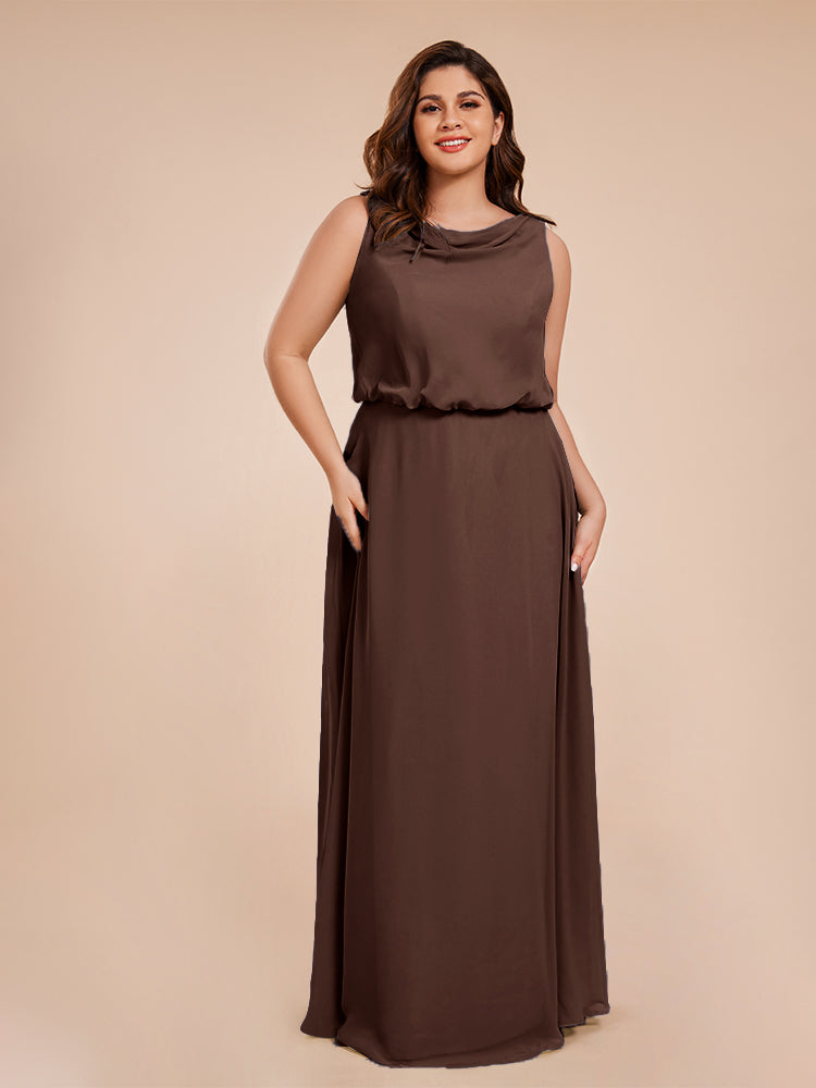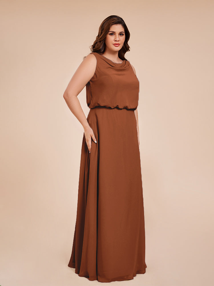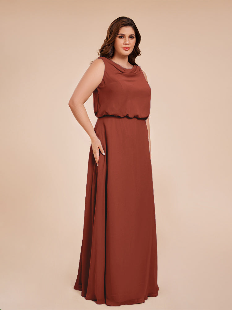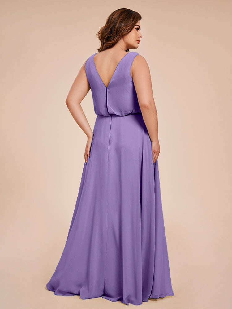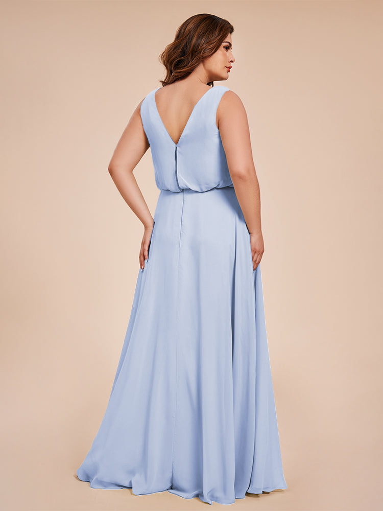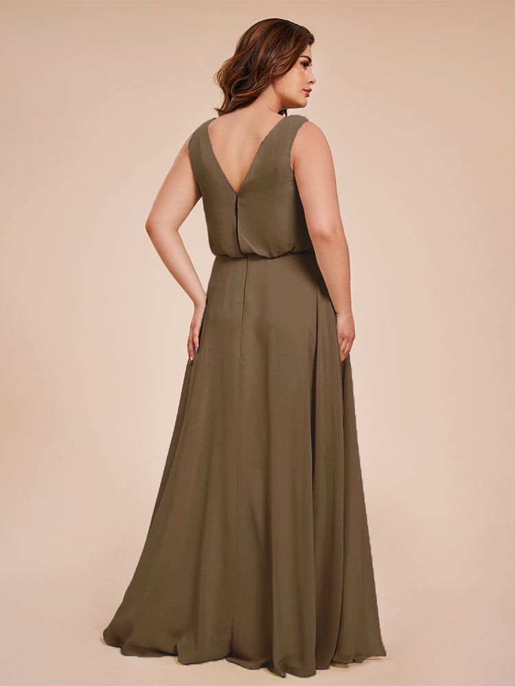 Übergröße Layla Etui-Säule Bodenlange Kapuze V-Ausschnitt Chiffon Lange Brautjungfernkleider