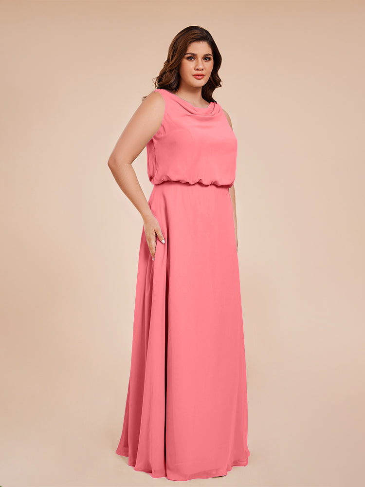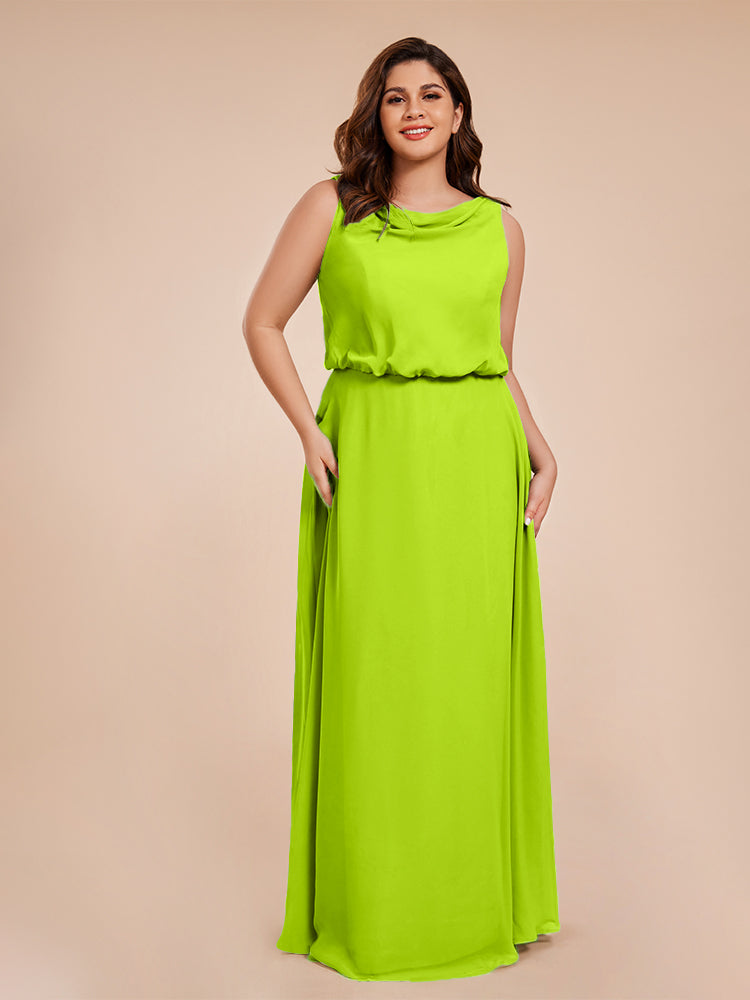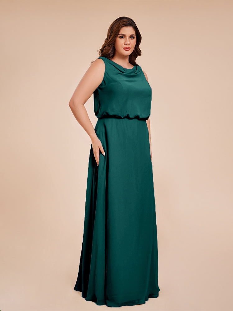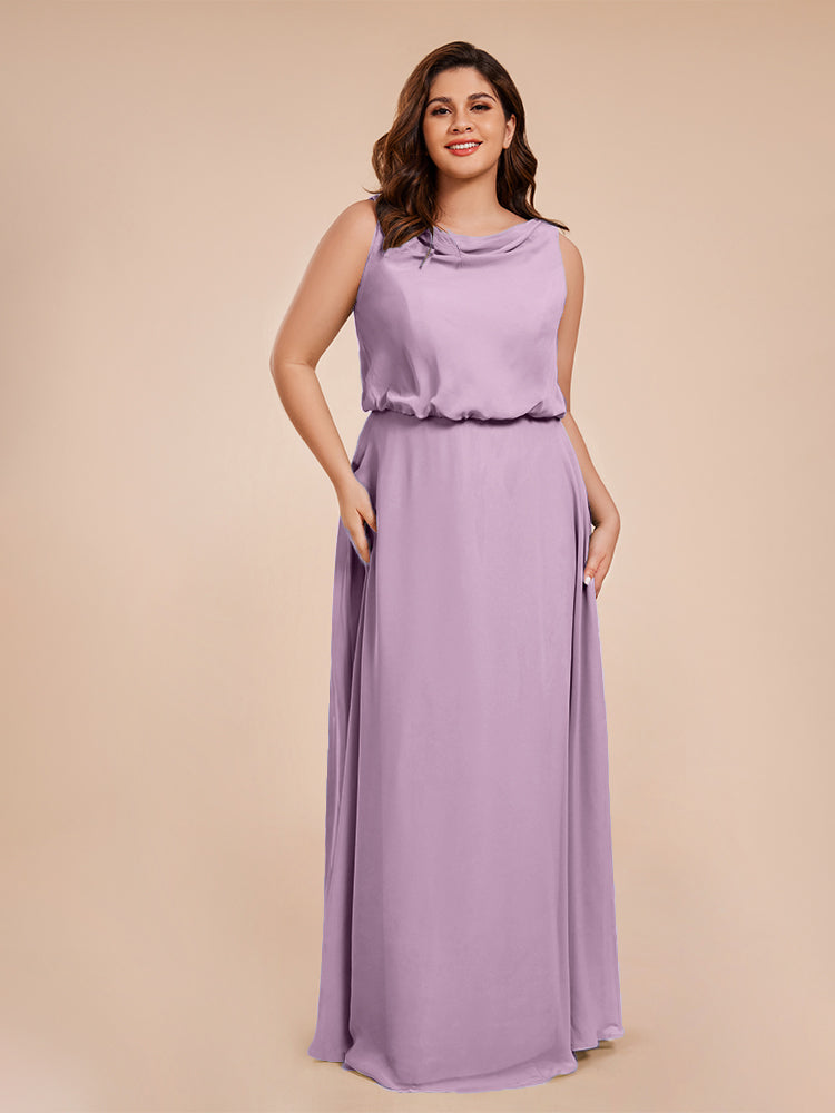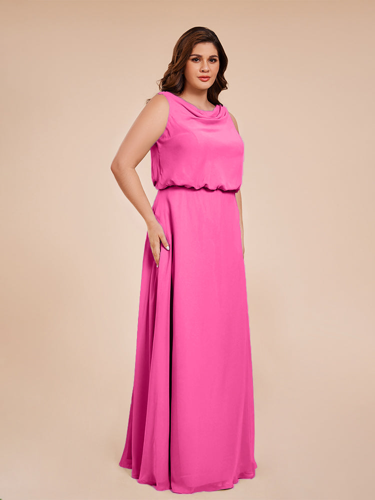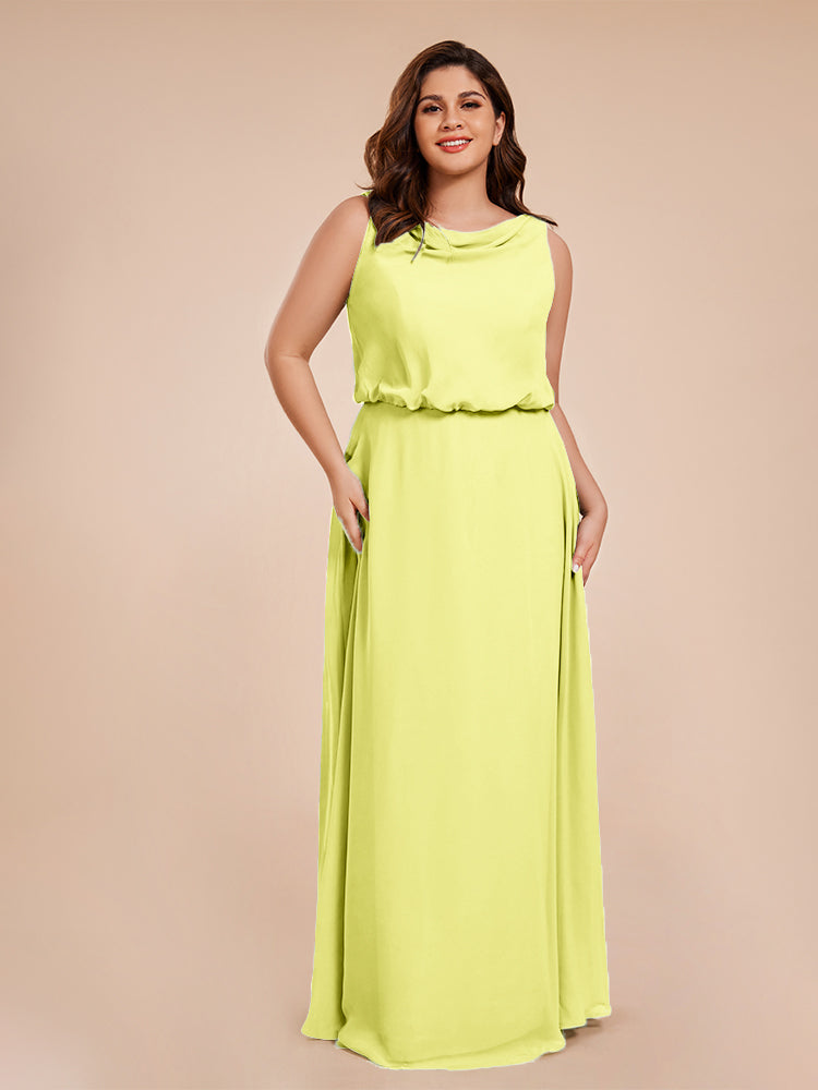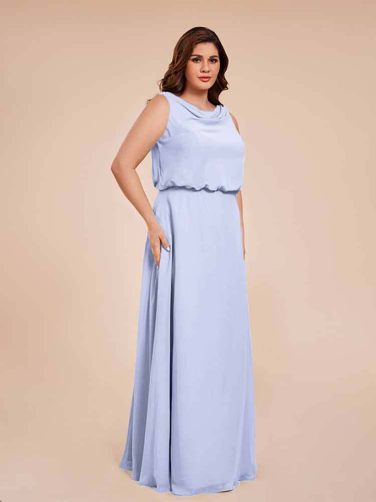 Übergröße Layla Etui-Säule Bodenlange Kapuze V-Ausschnitt Chiffon Lange Brautjungfernkleider