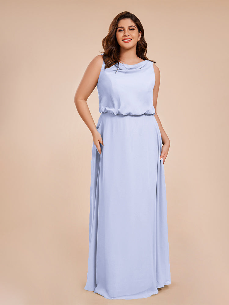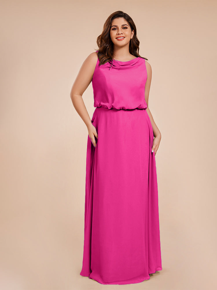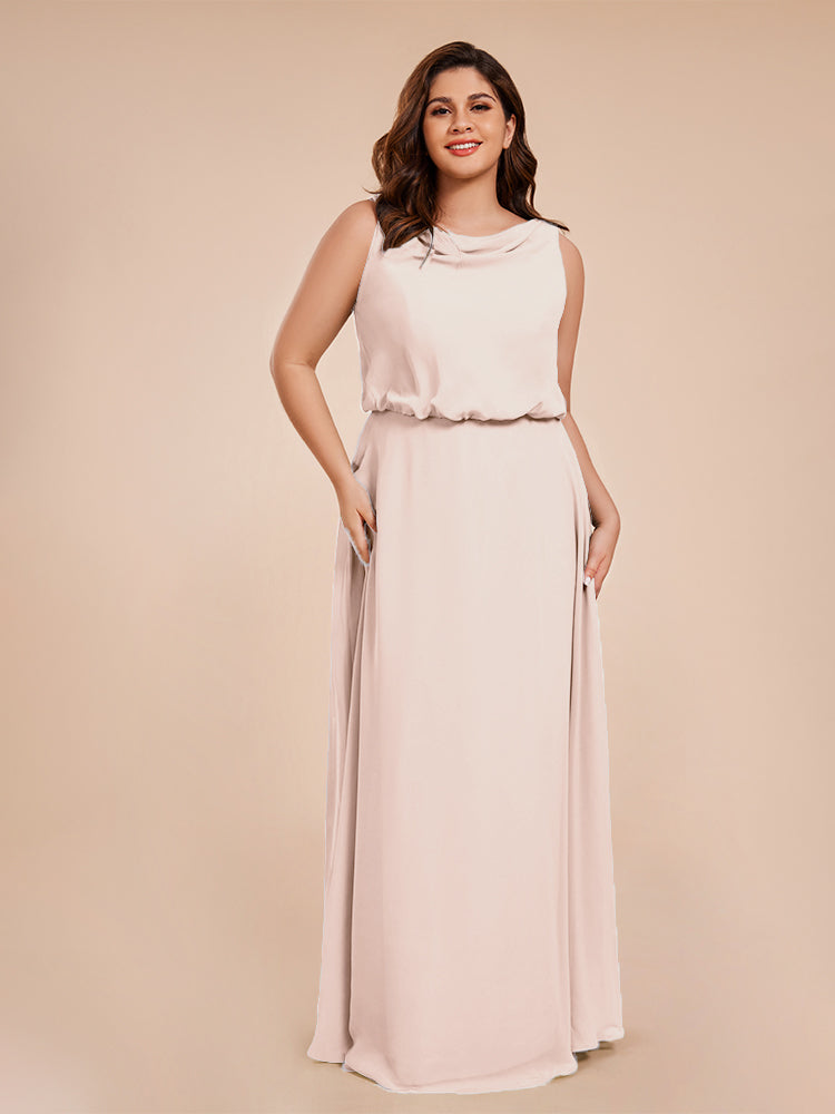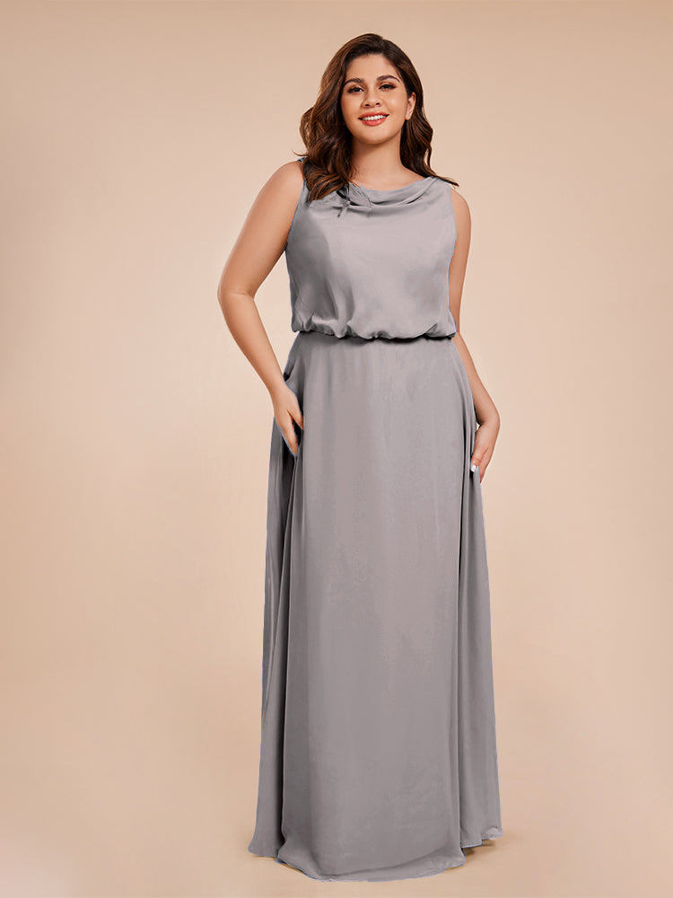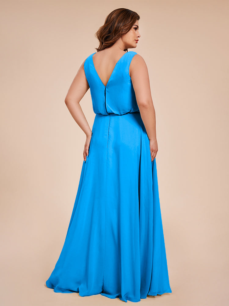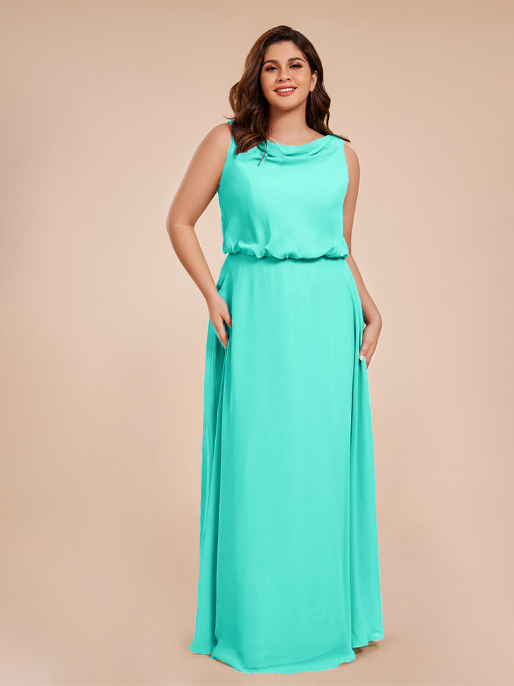 Übergröße Layla Etui-Säule Bodenlange Kapuze V-Ausschnitt Chiffon Lange Brautjungfernkleider