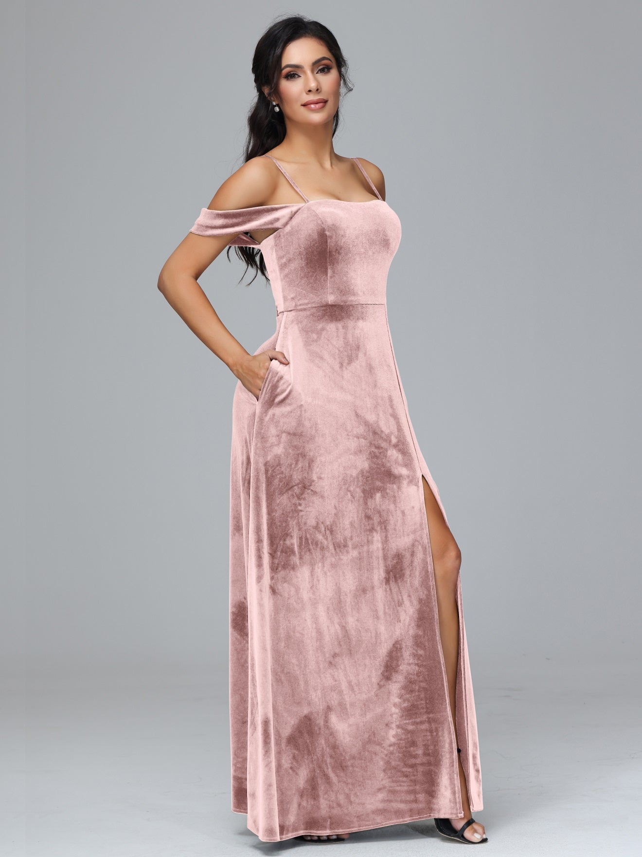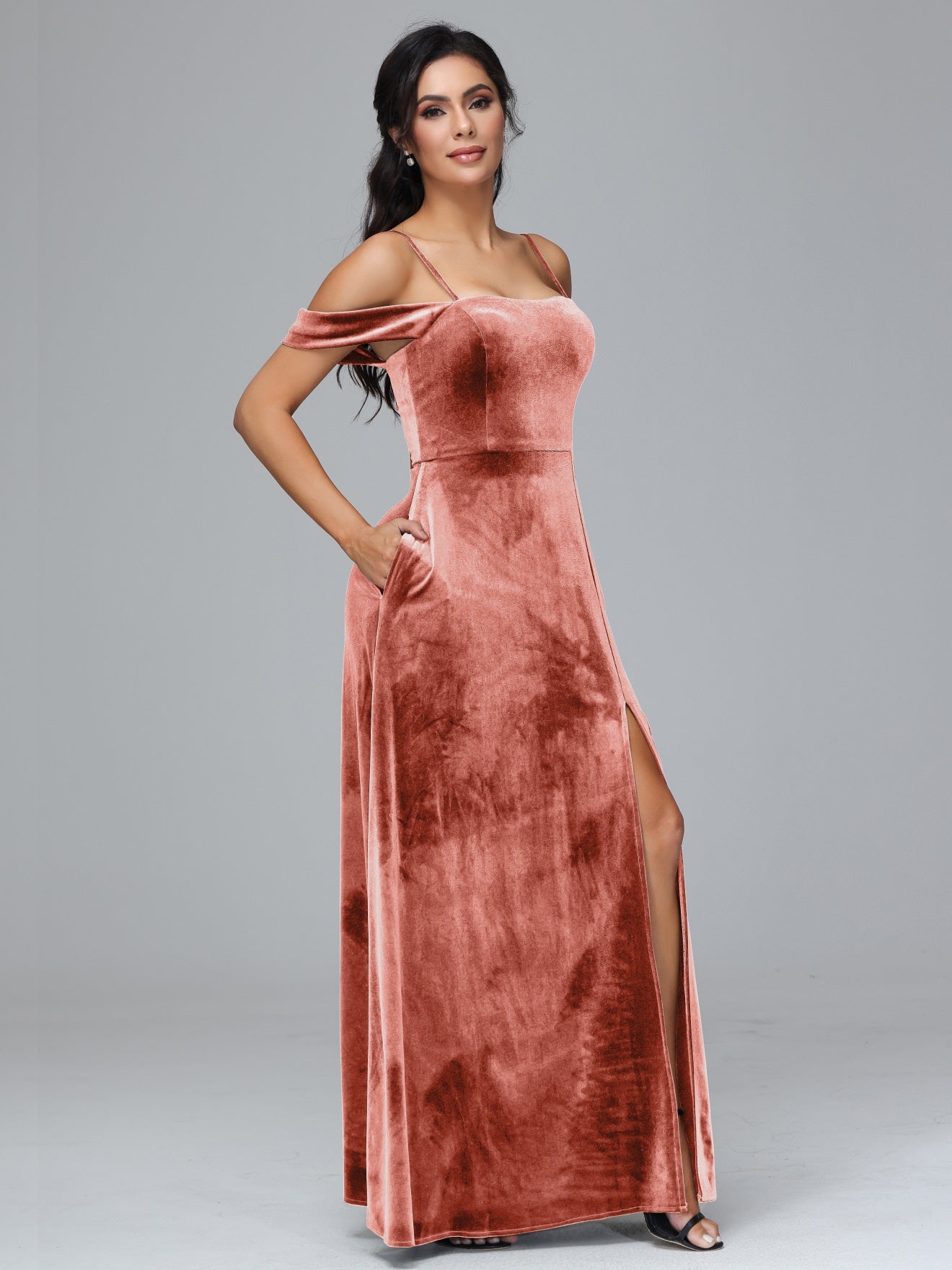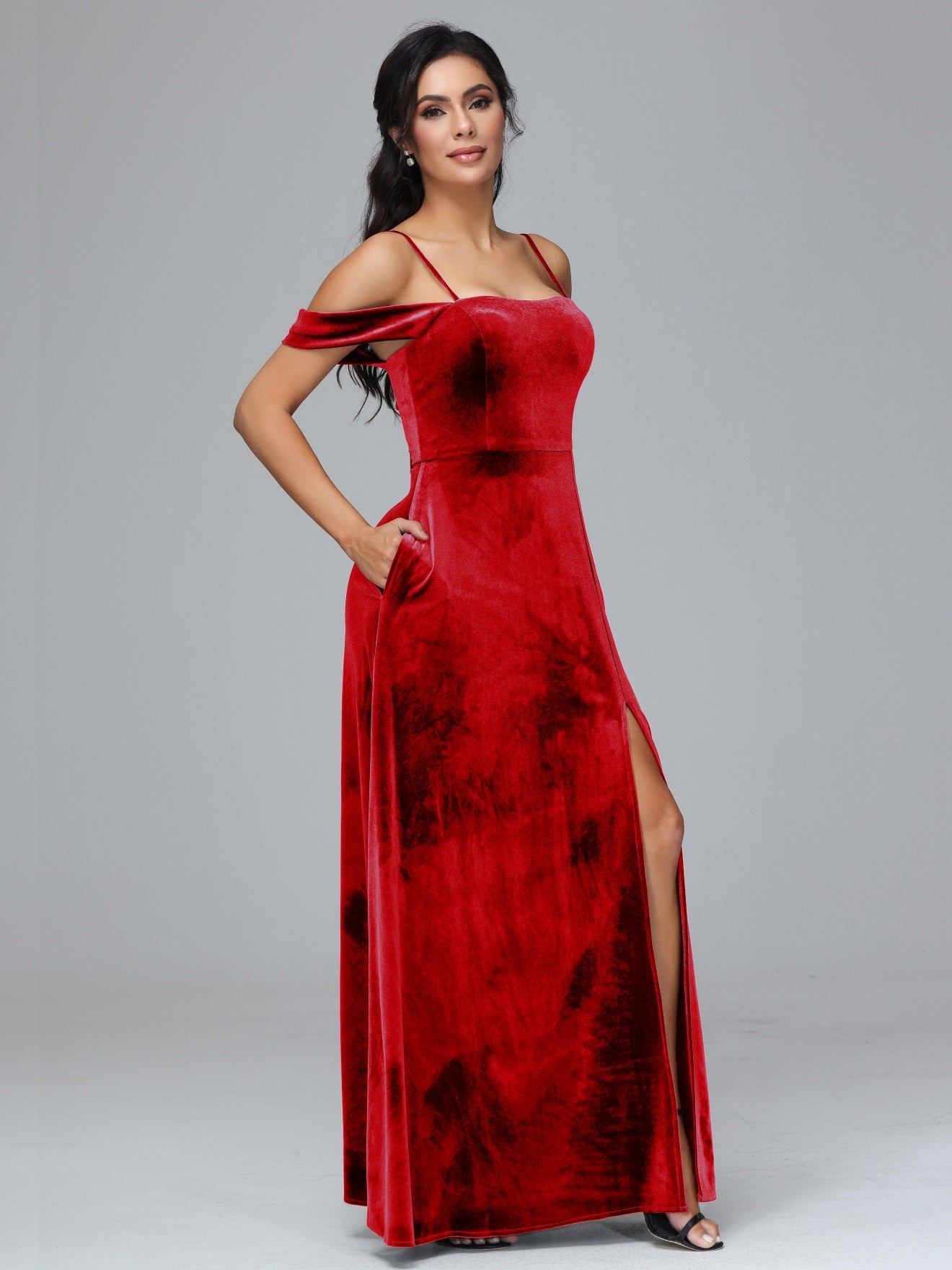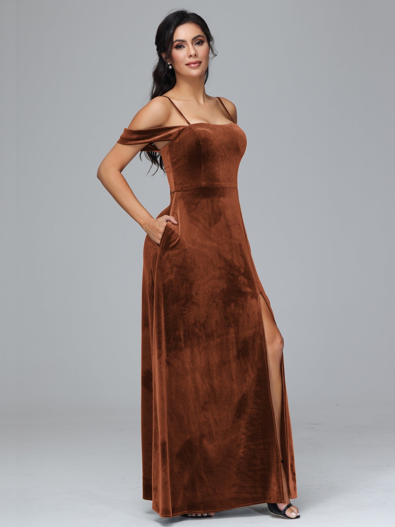 Übergröße Startseite Kalt Geschlitzte Velours Brautjungfernkleider