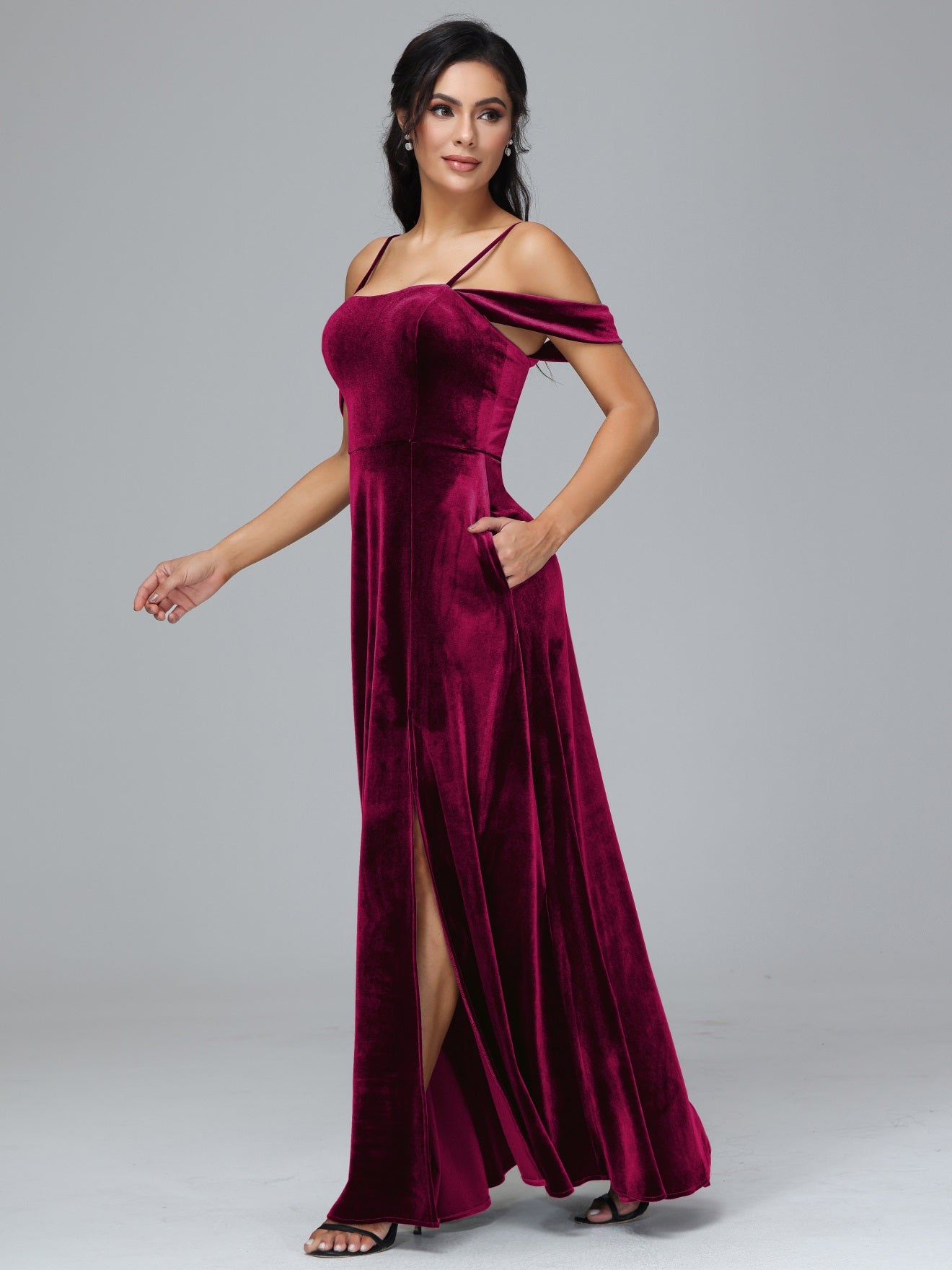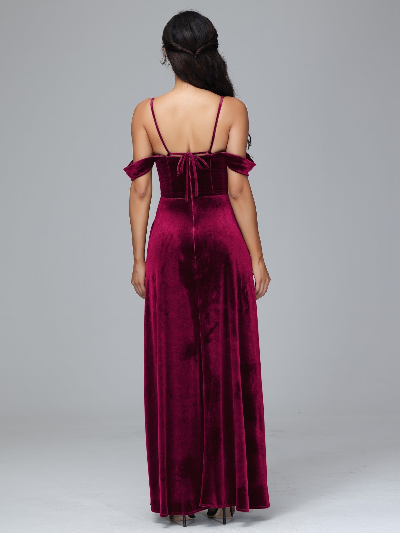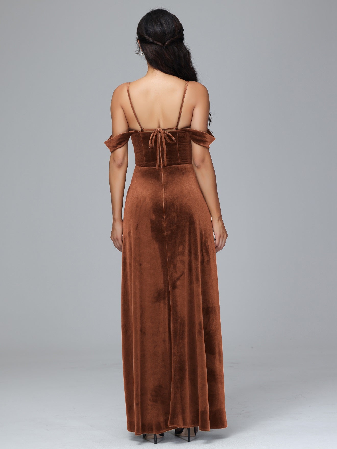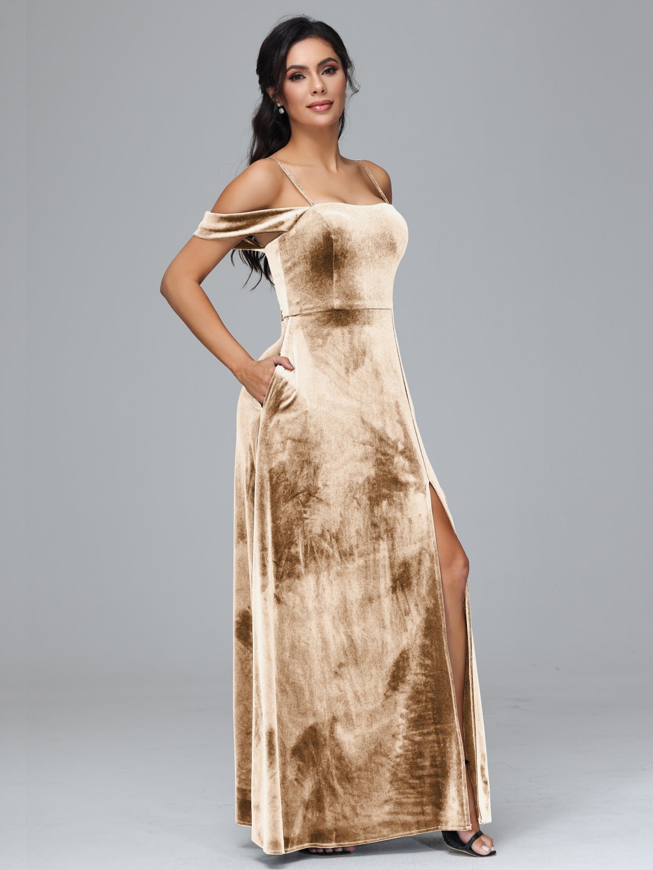 Übergröße Startseite Kalt Geschlitzte Velours Brautjungfernkleider