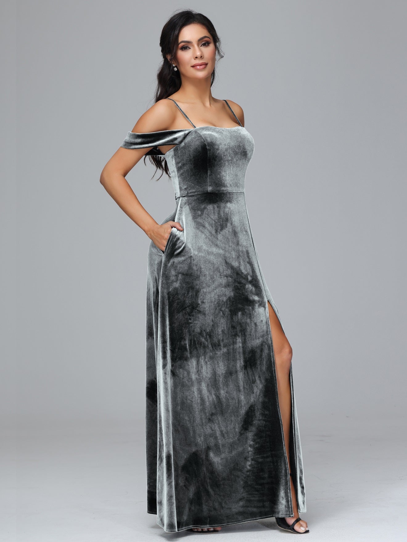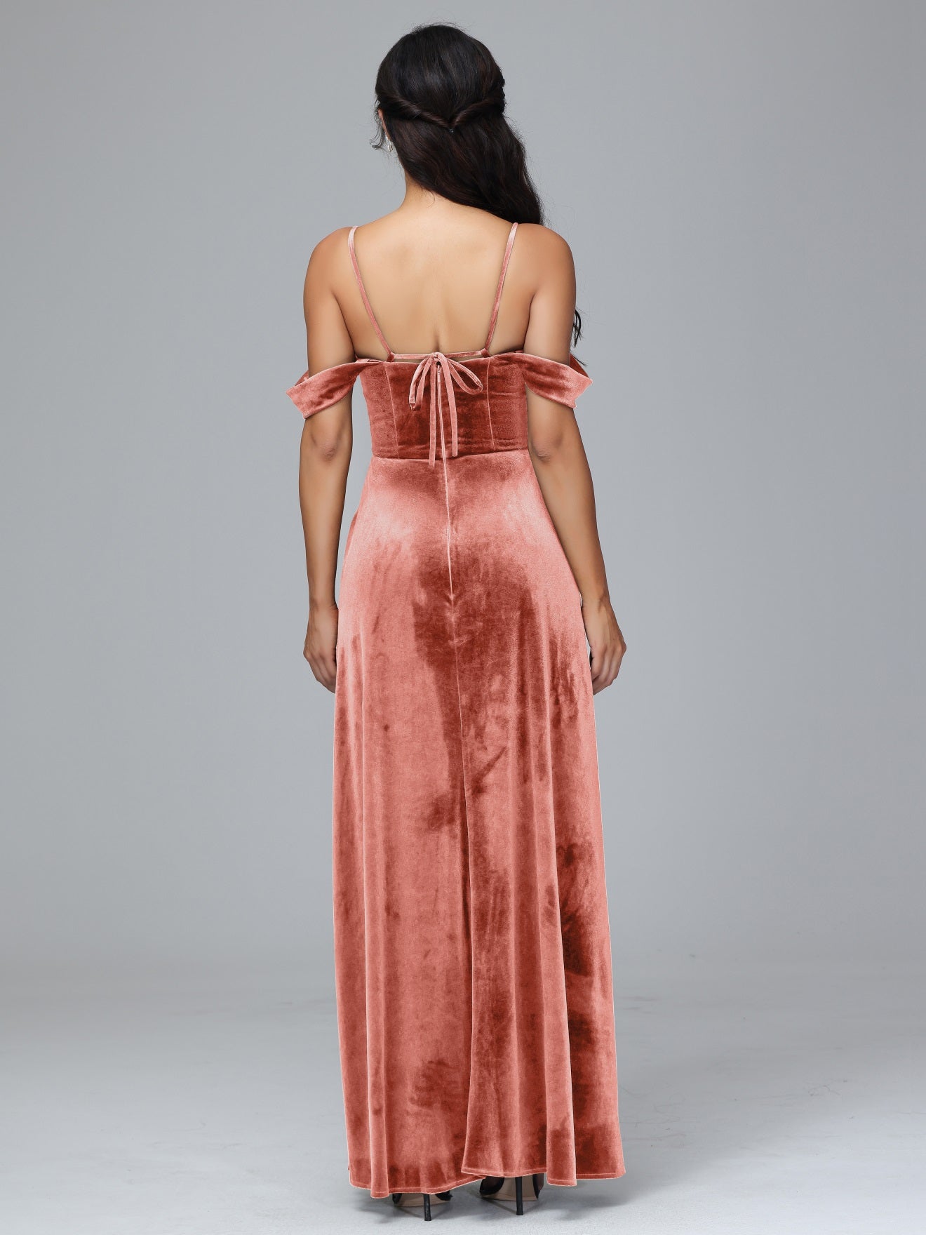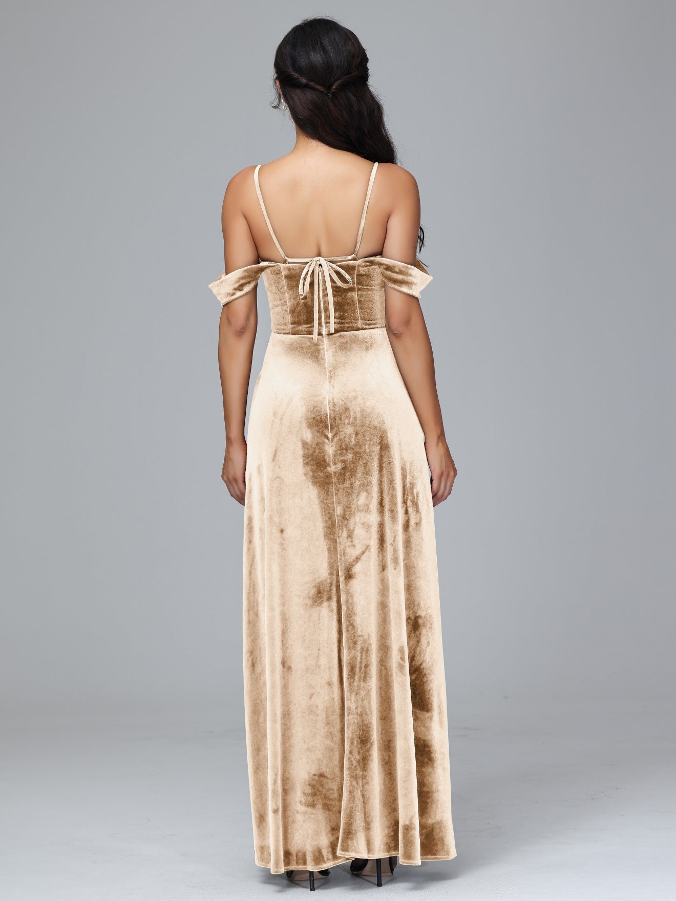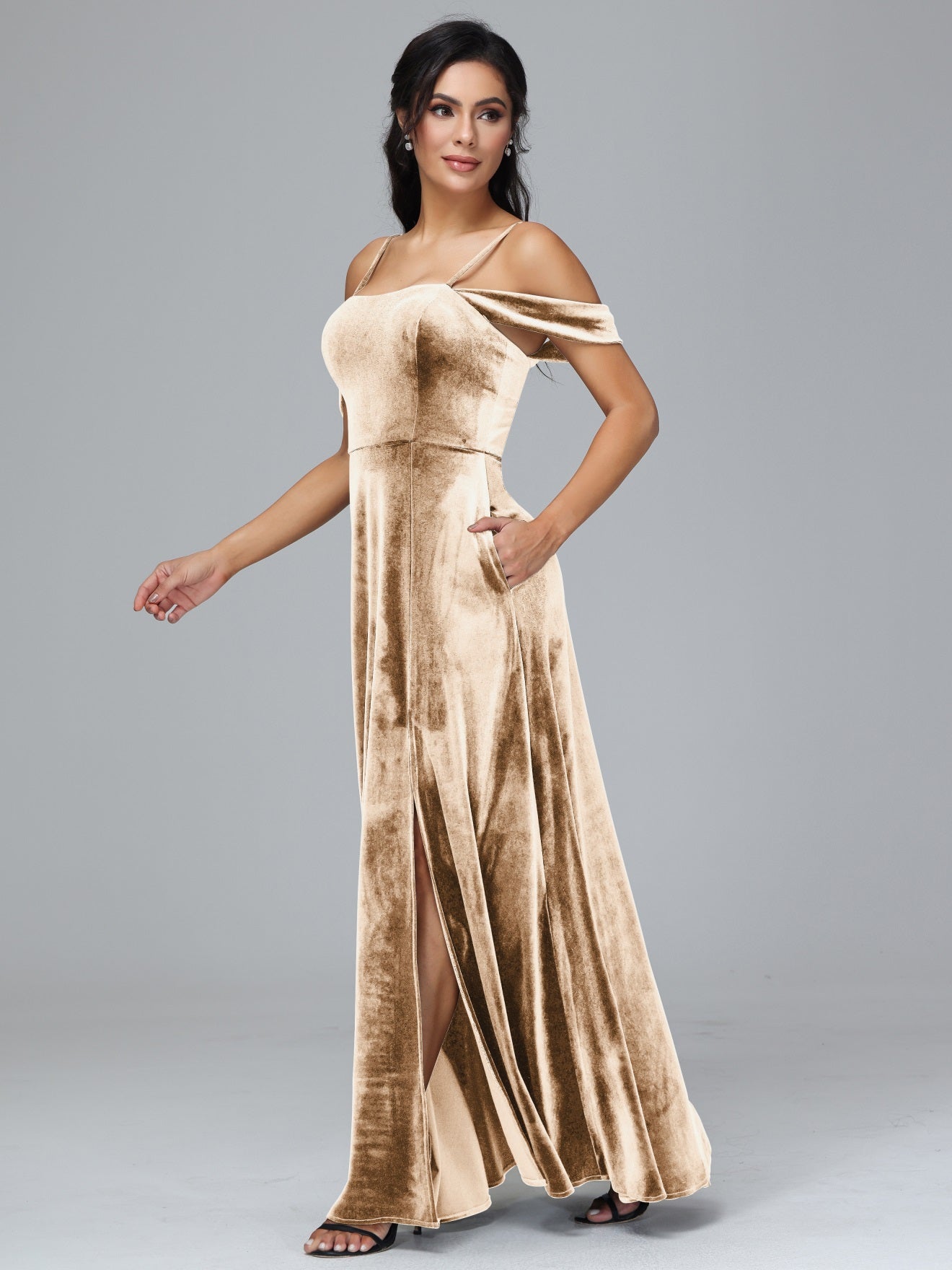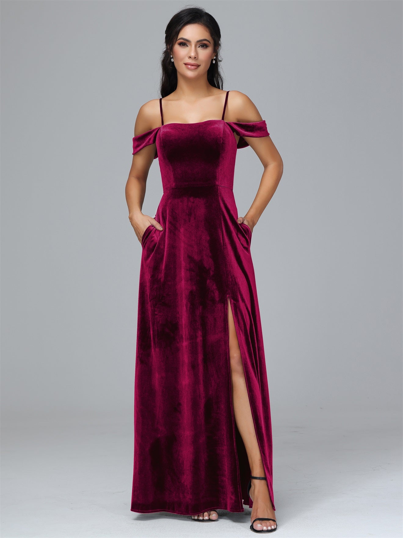Übergröße Startseite Kalt Geschlitzte Velours Brautjungfernkleider