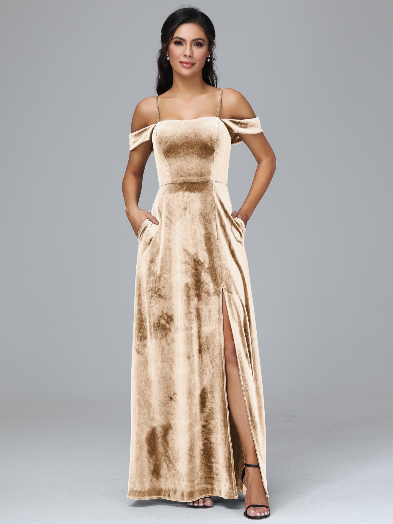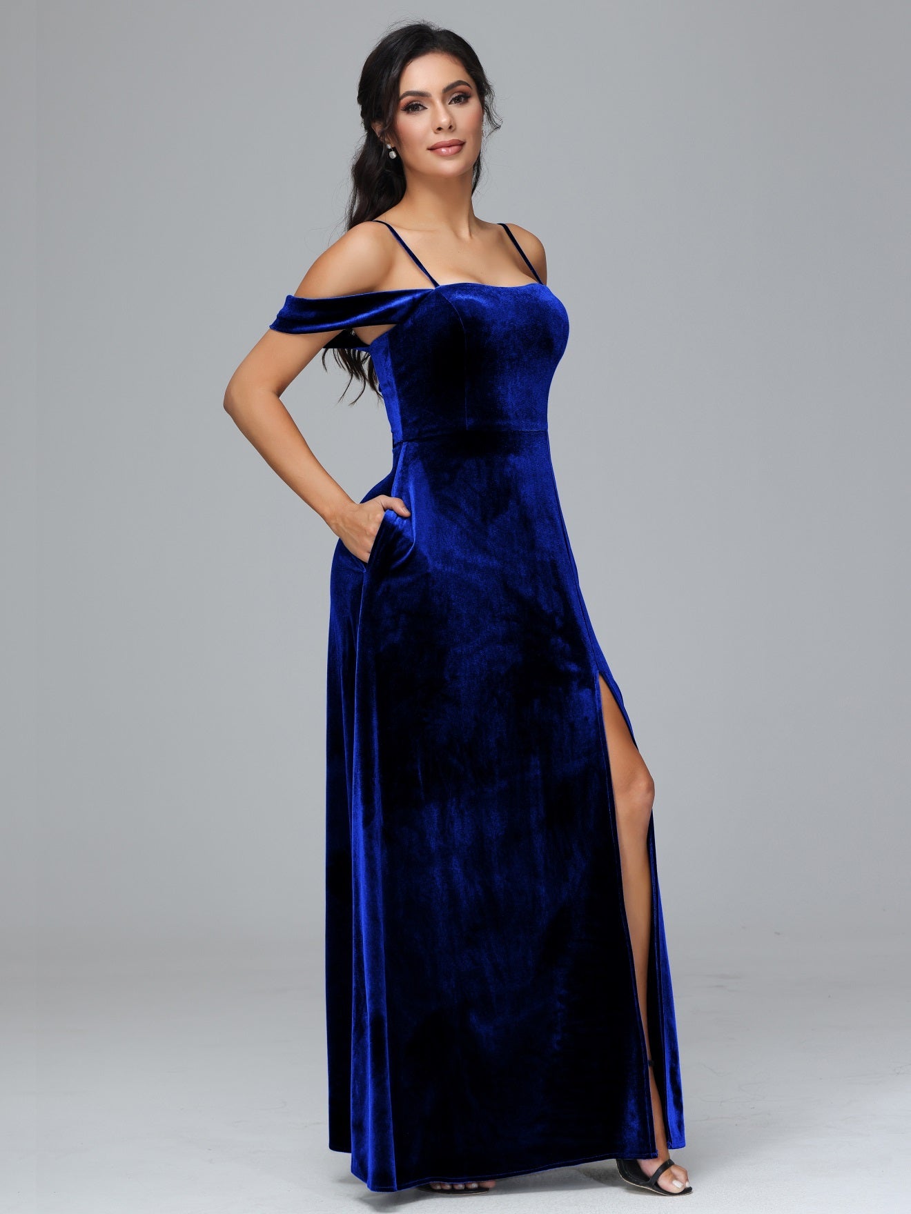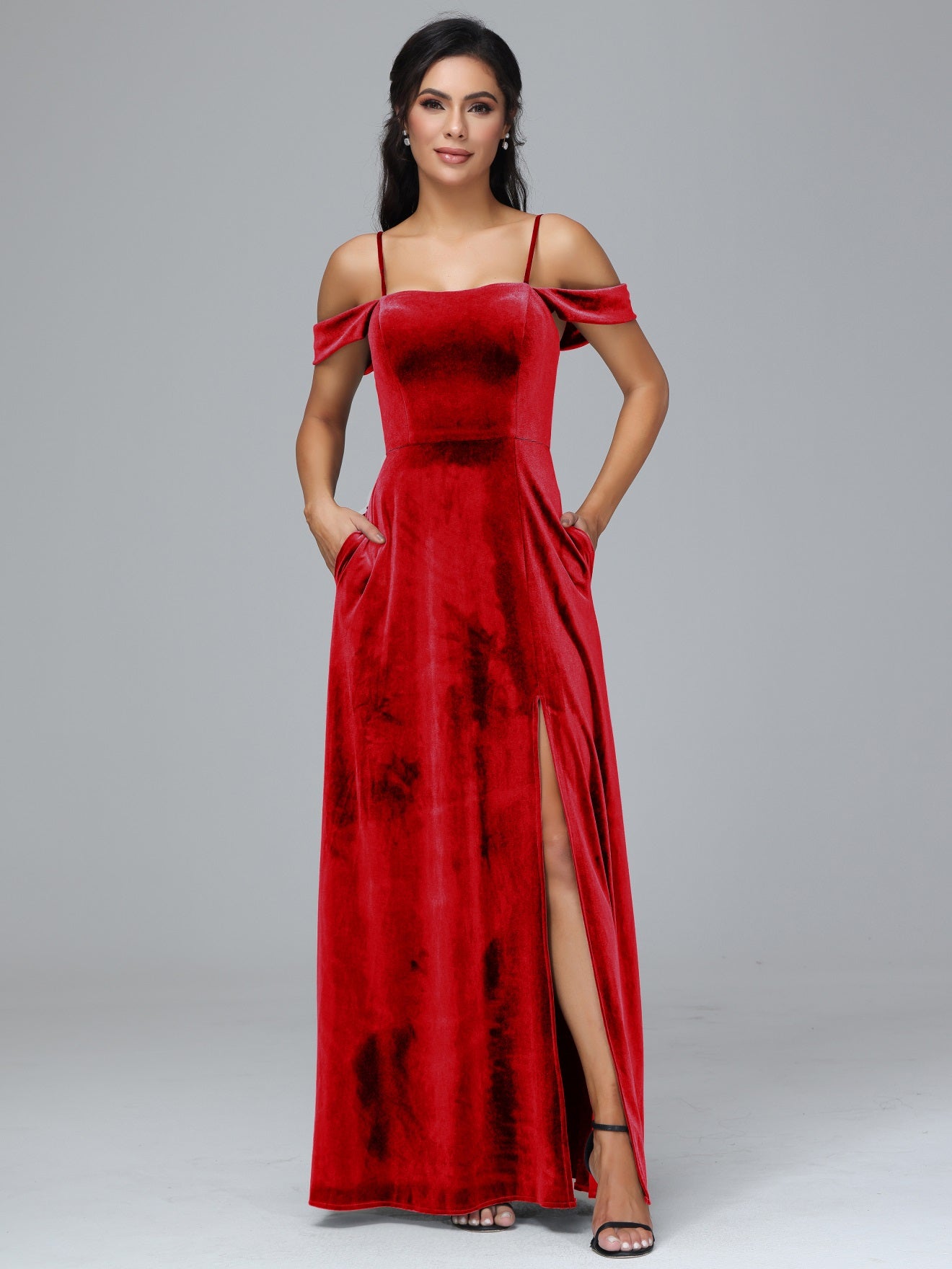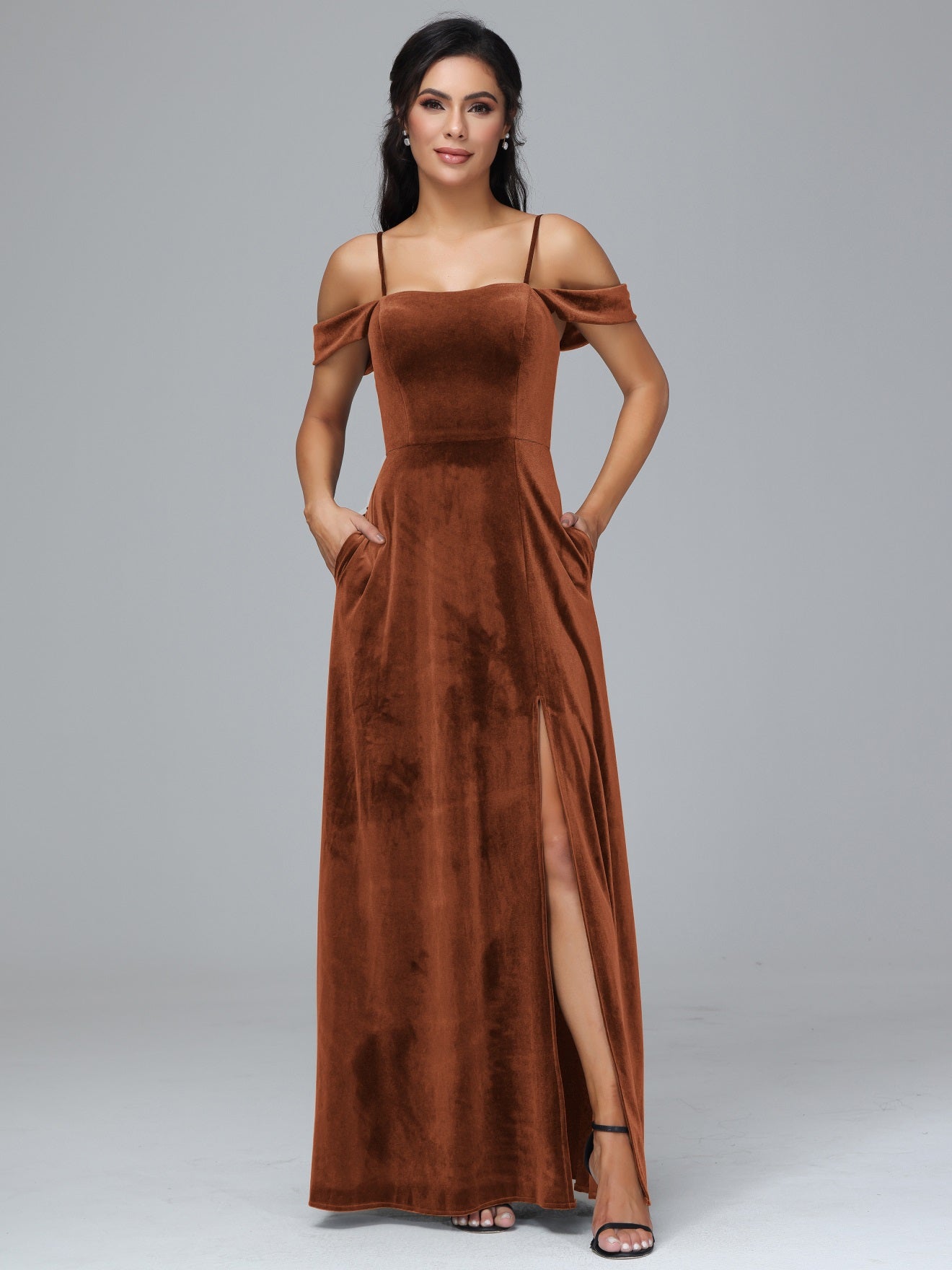 Übergröße Startseite Kalt Geschlitzte Velours Brautjungfernkleider