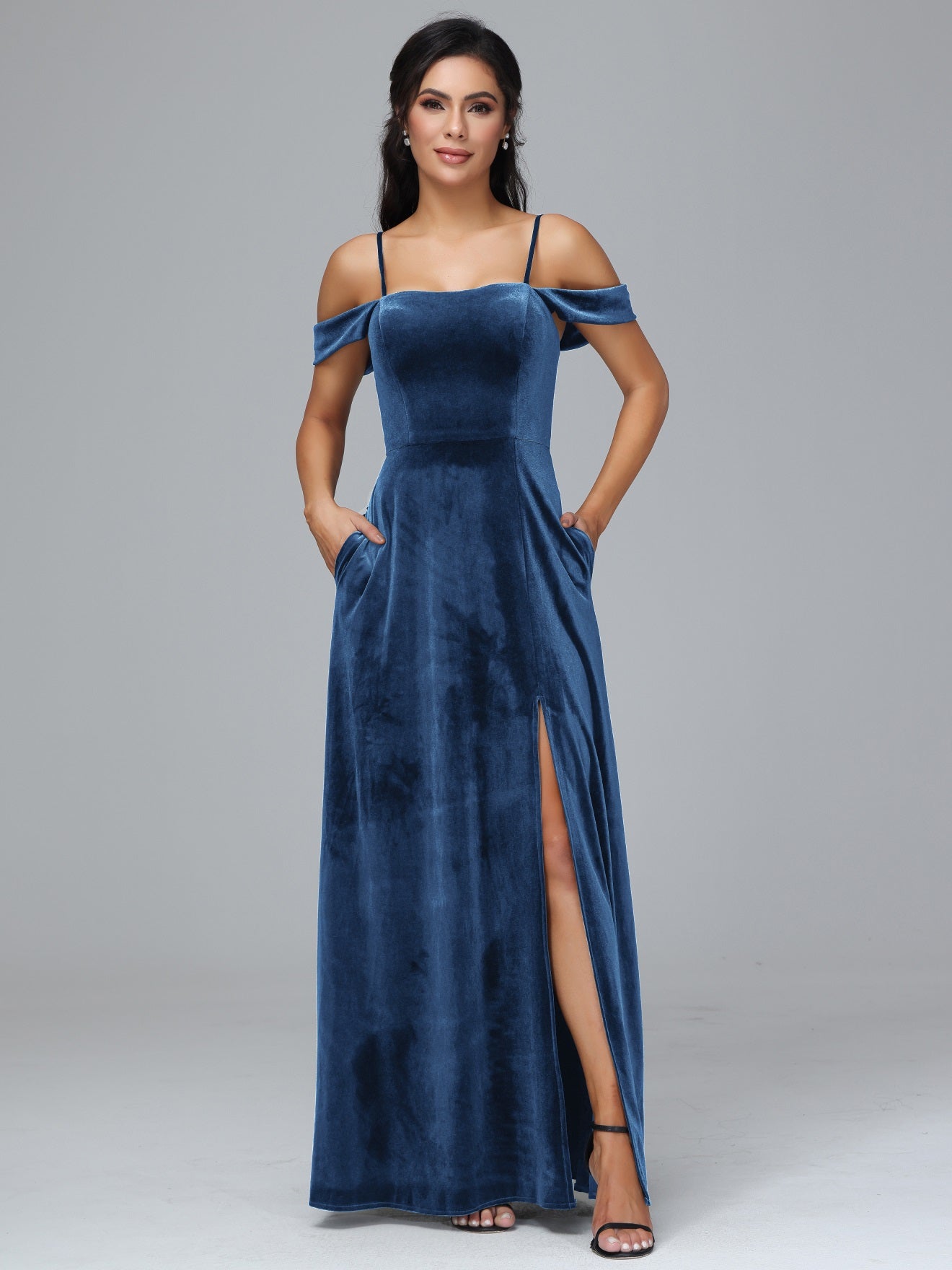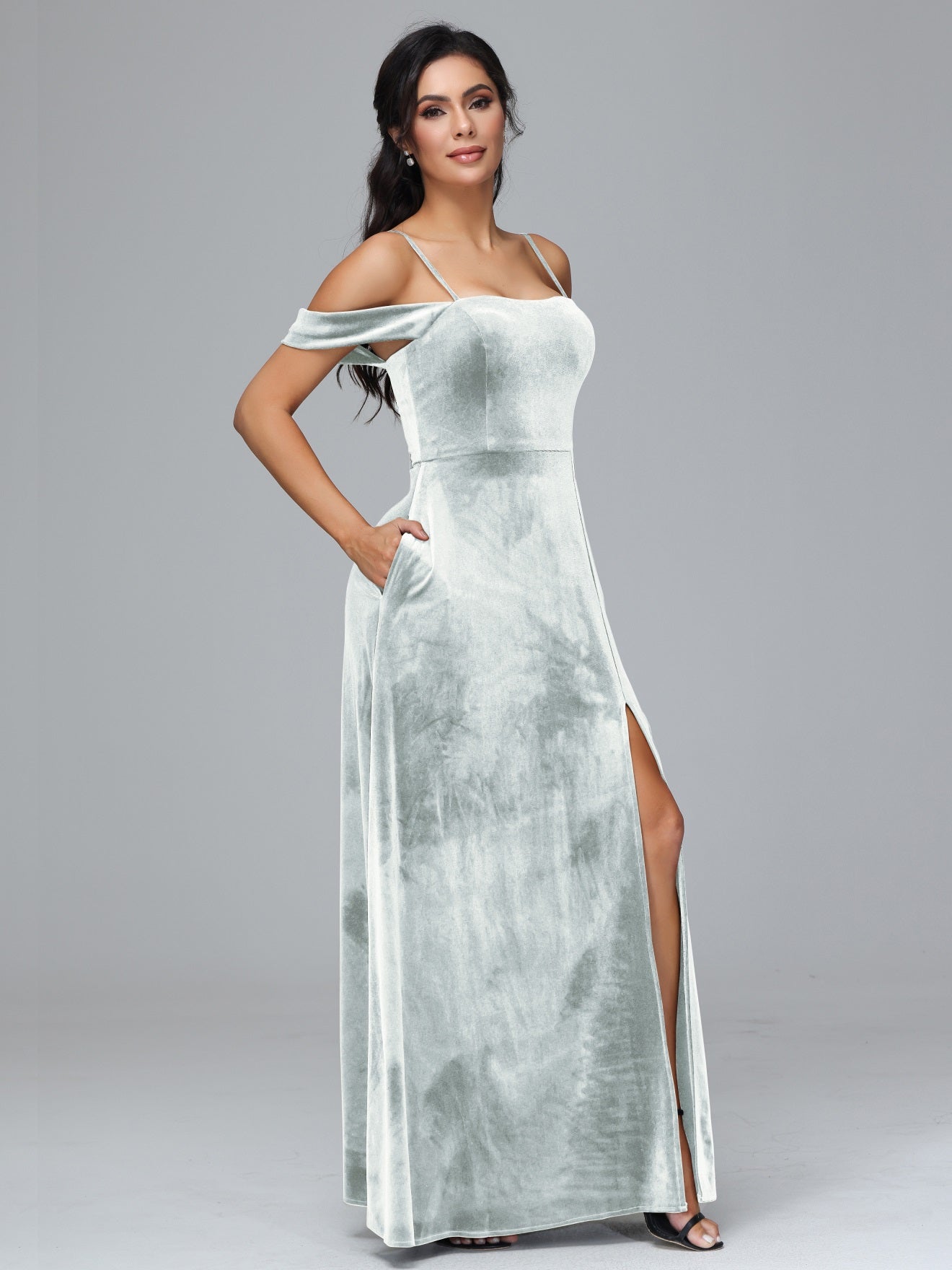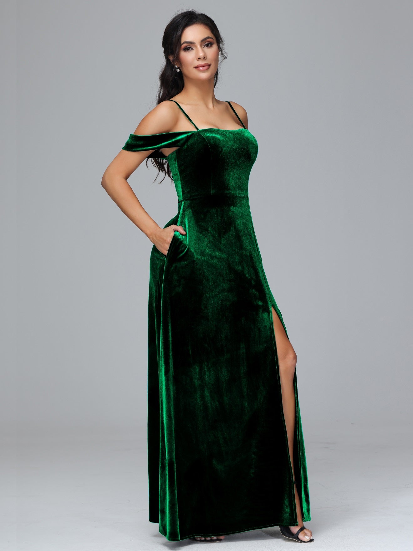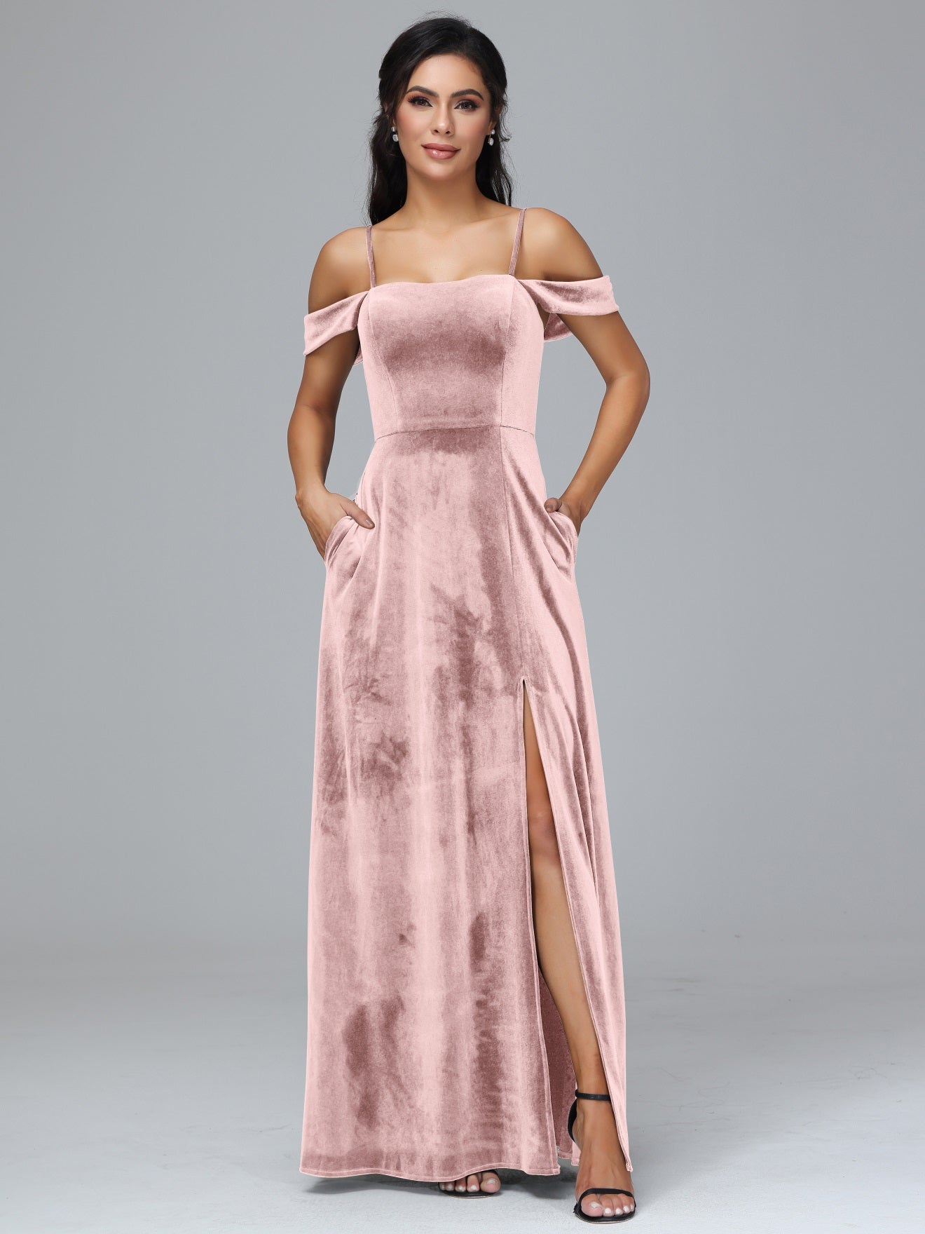 Übergröße Startseite Kalt Geschlitzte Velours Brautjungfernkleider
