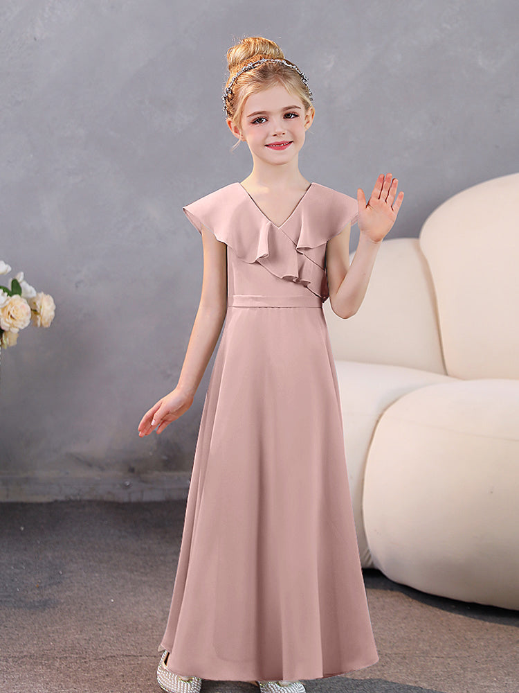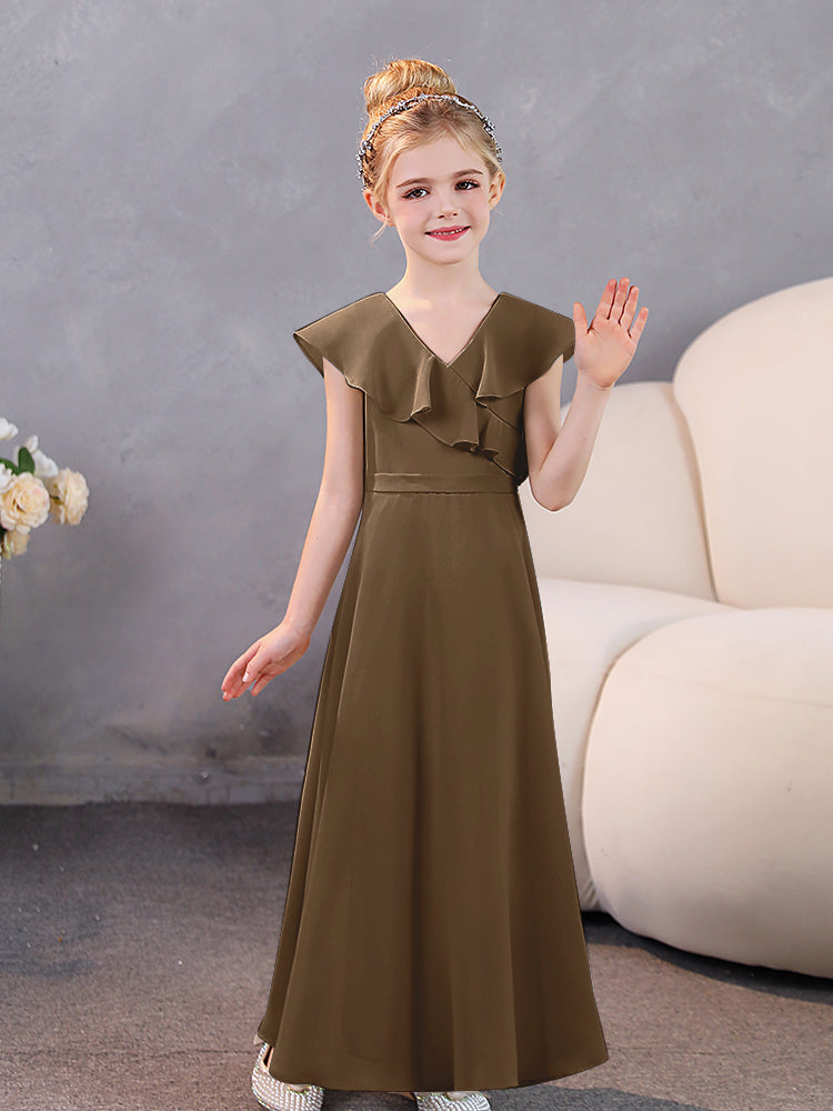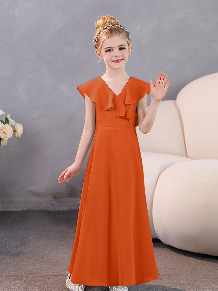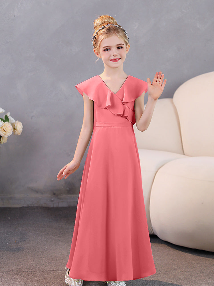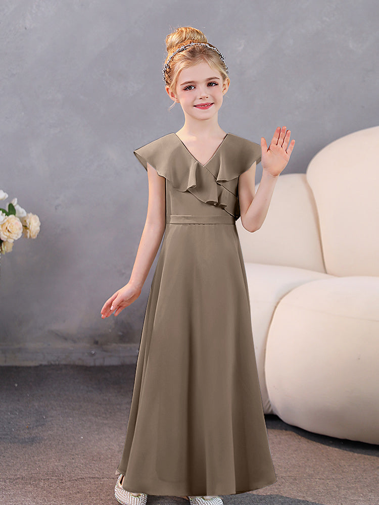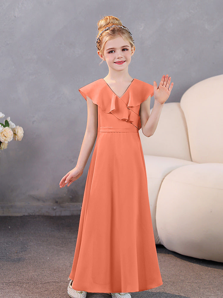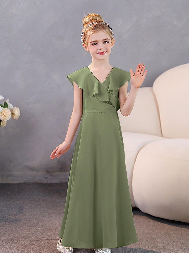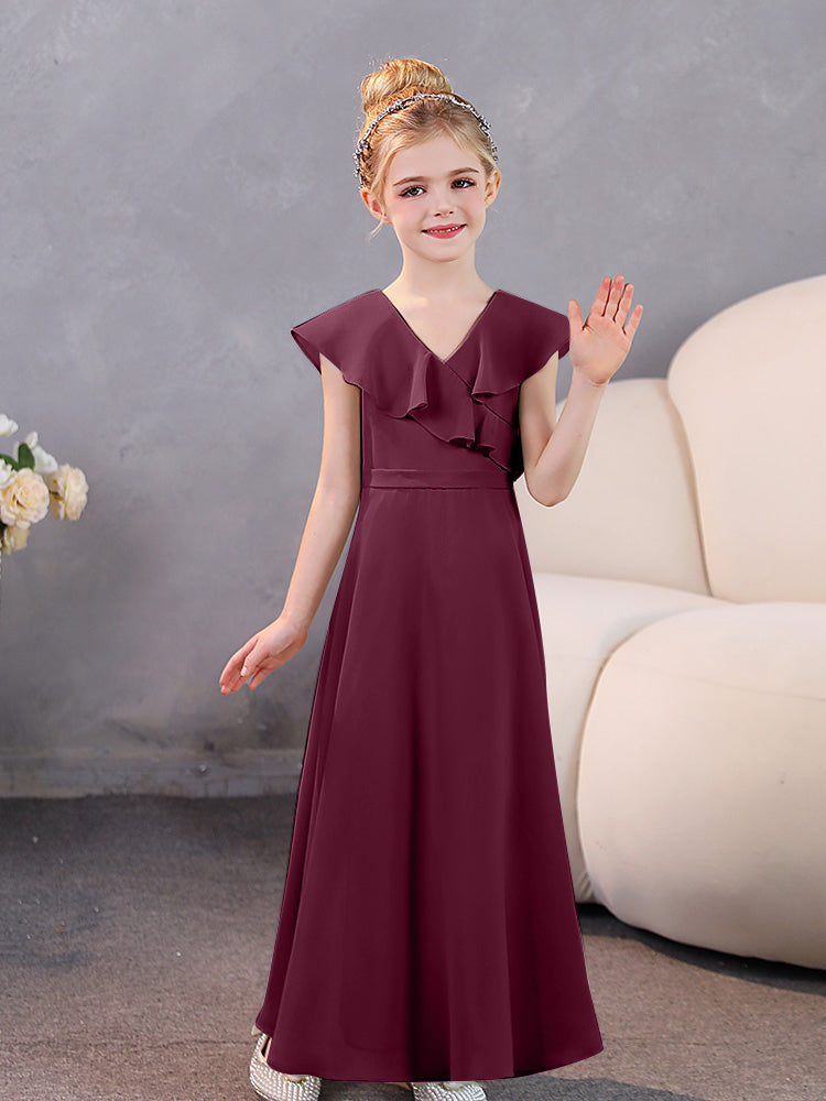 V-Ausschnitt Rüschen Chiffon Junior Brautjungfernkleider