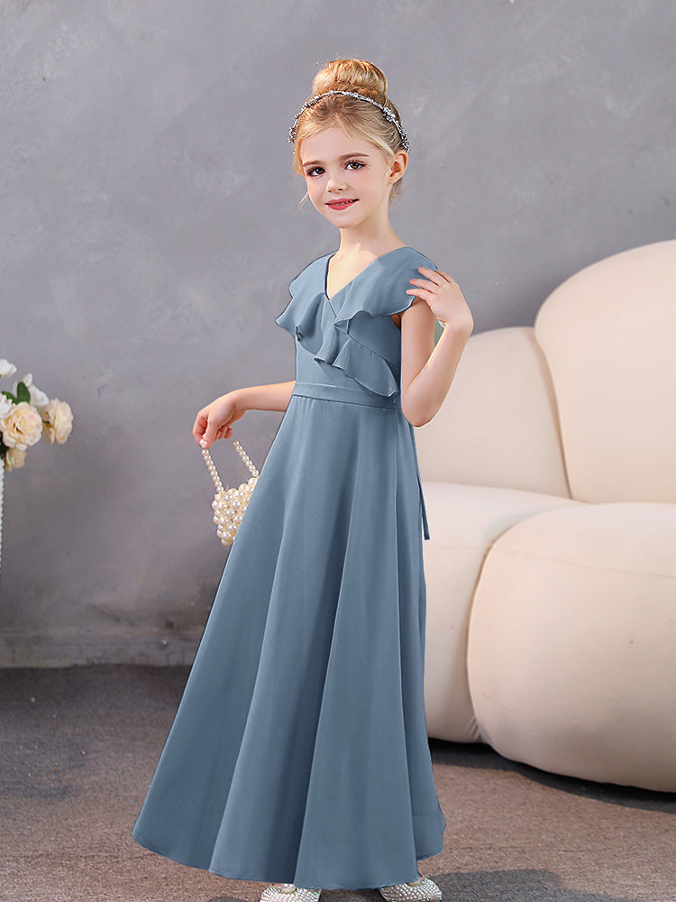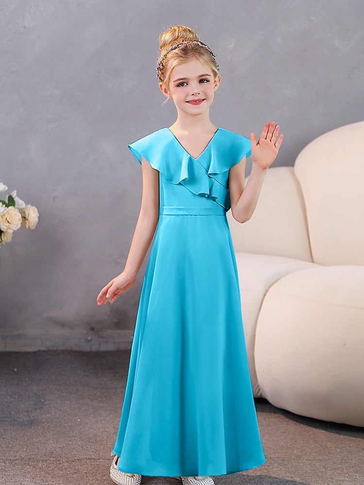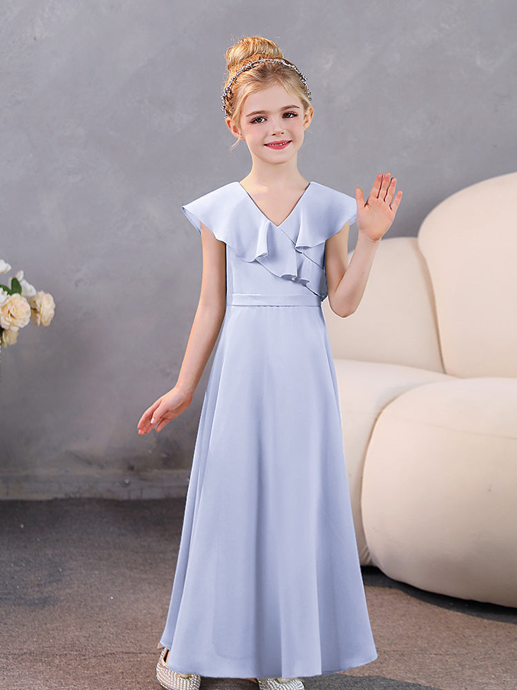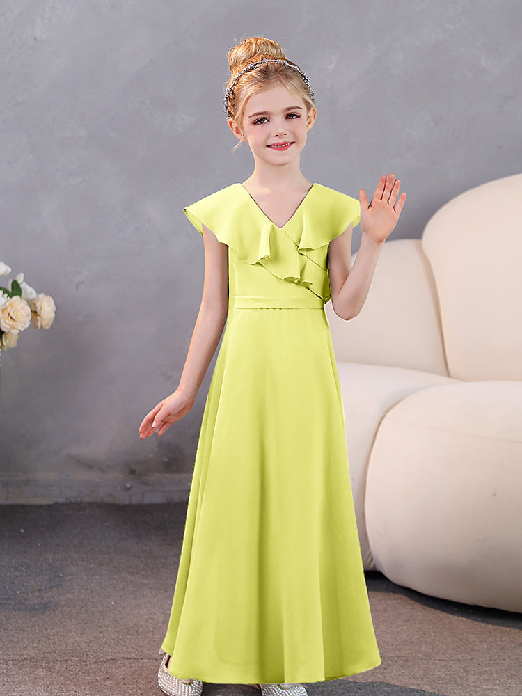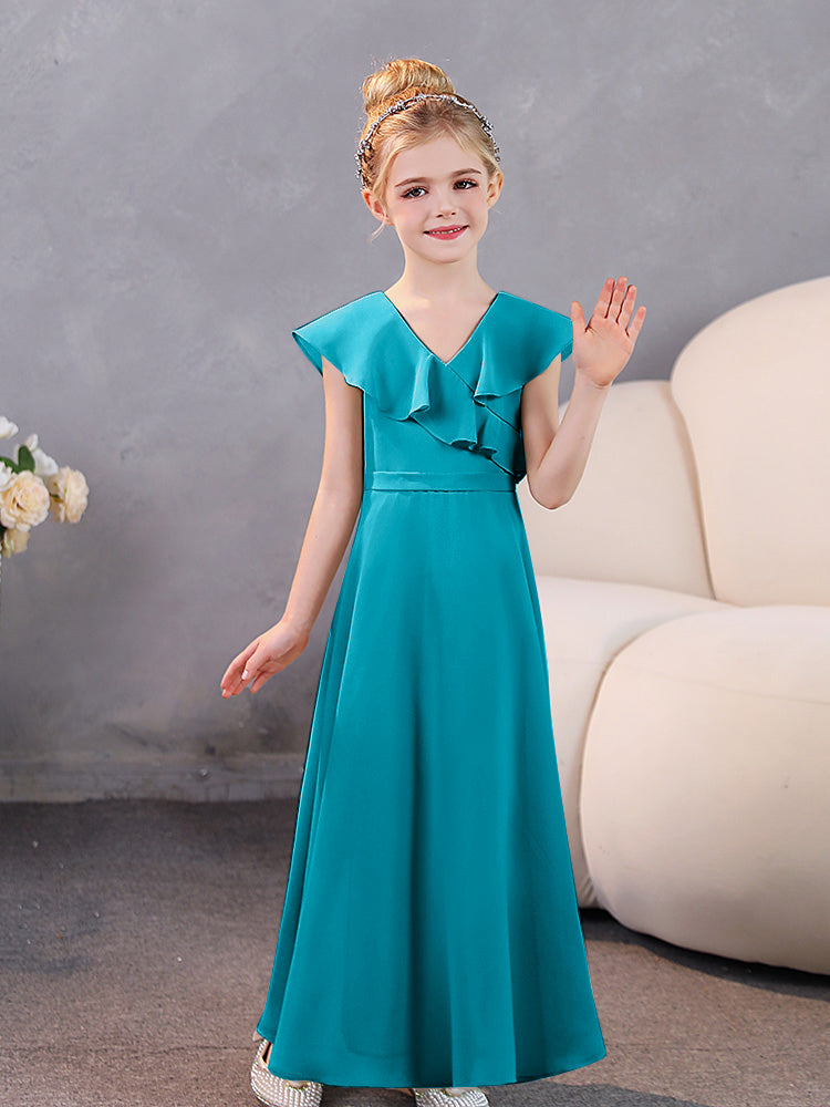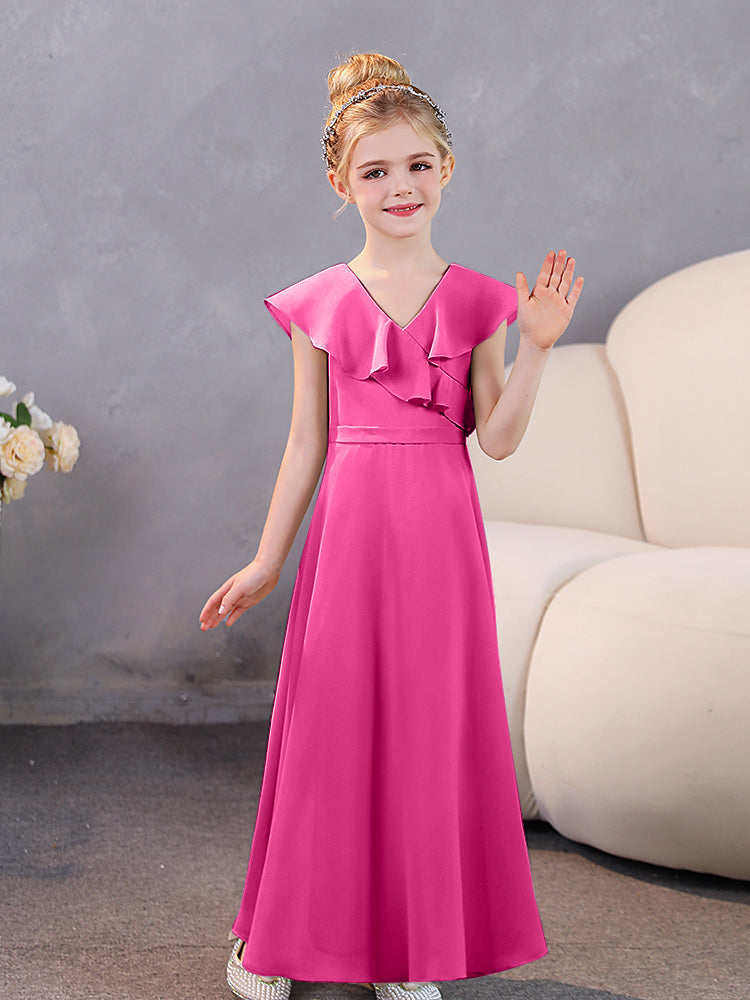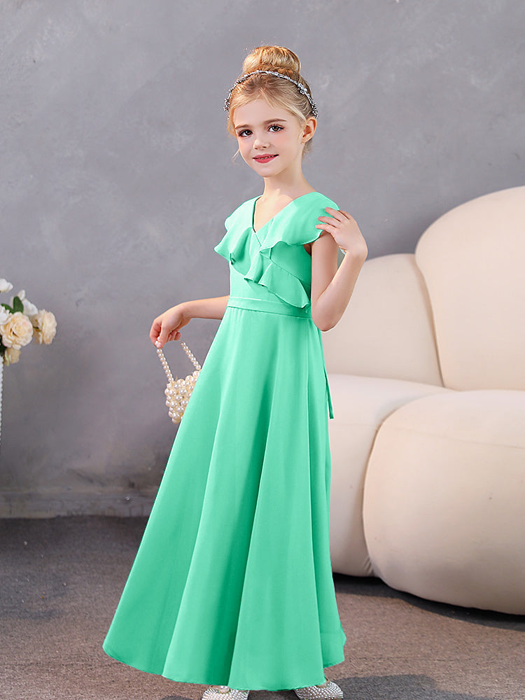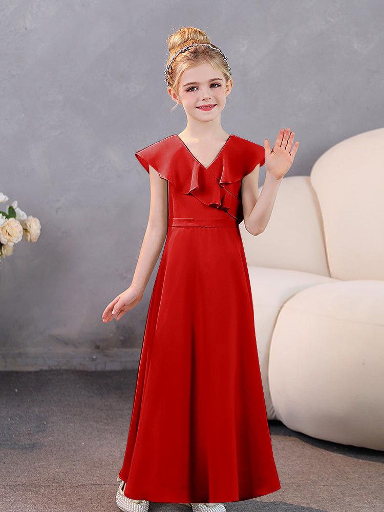 V-Ausschnitt Rüschen Chiffon Junior Brautjungfernkleider