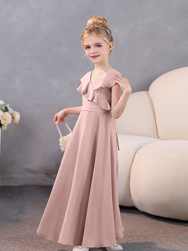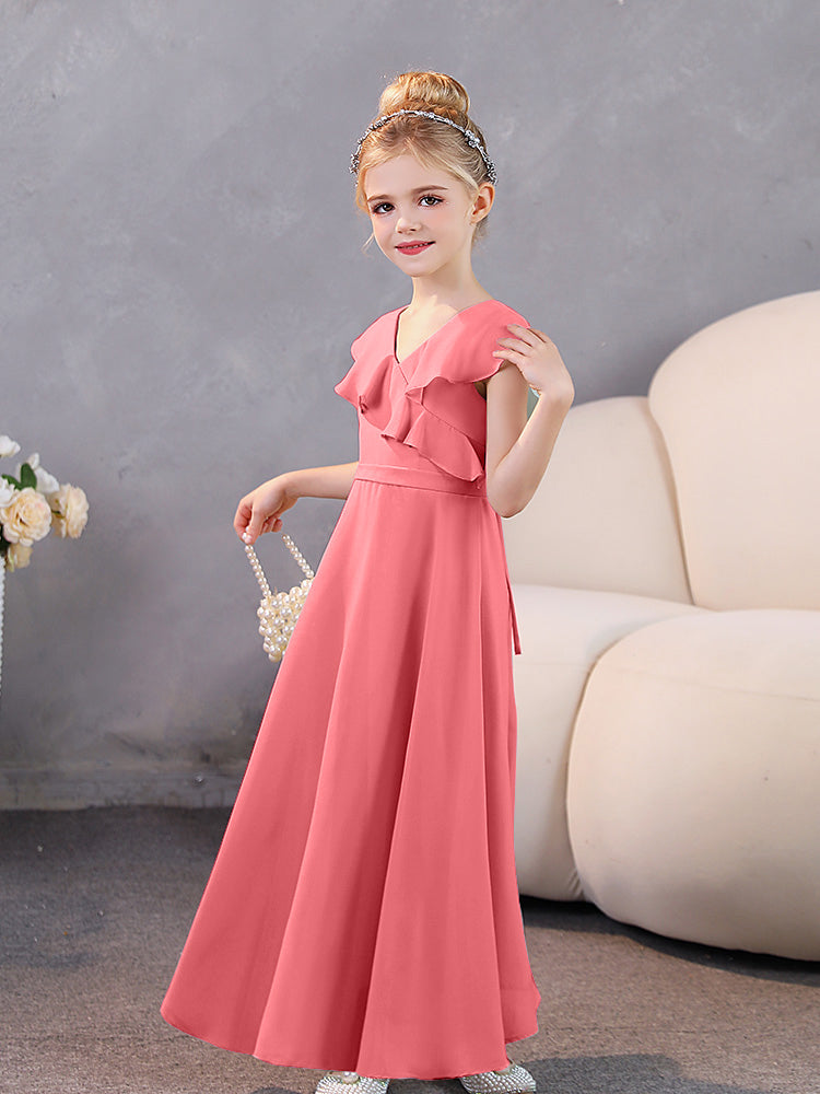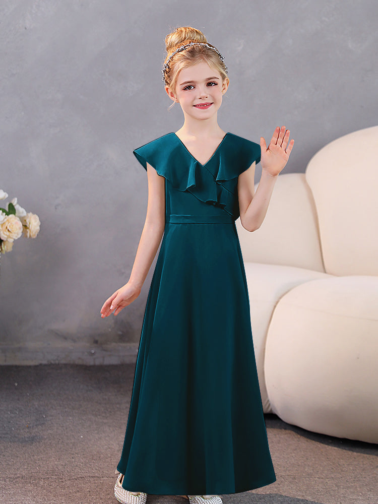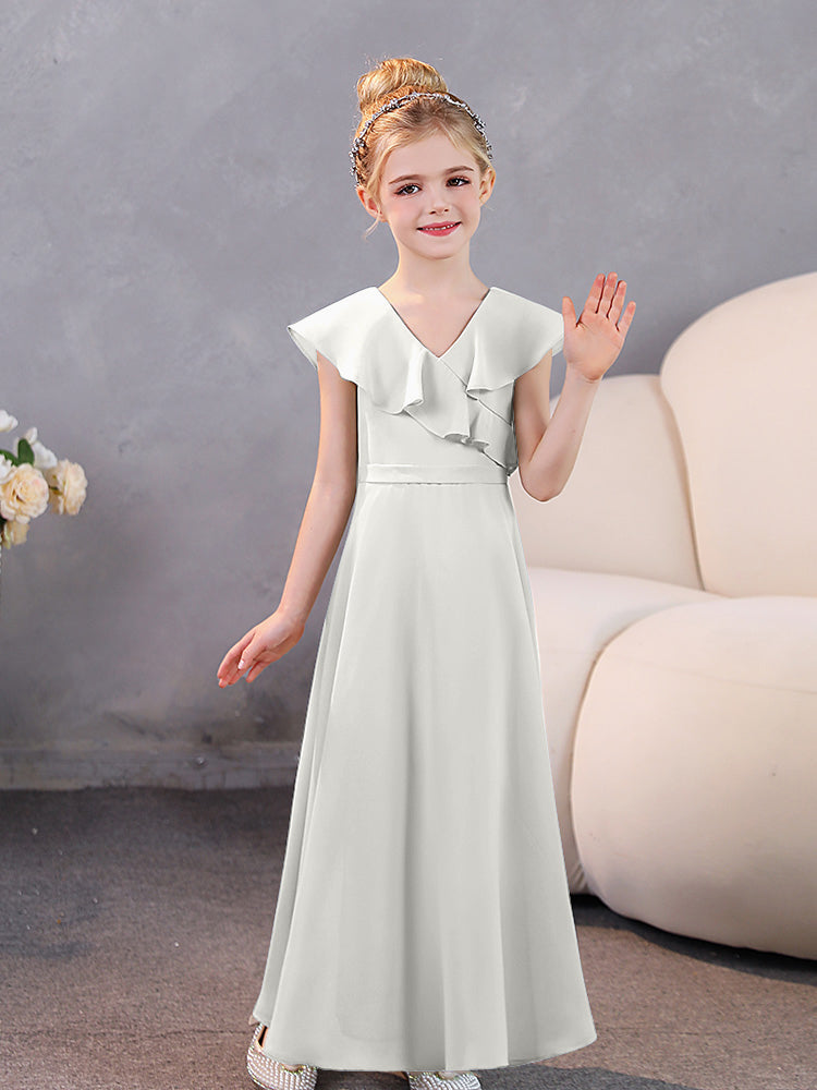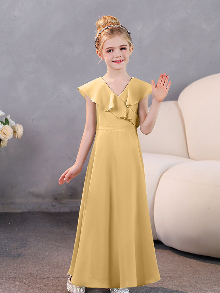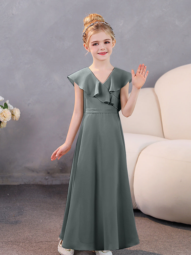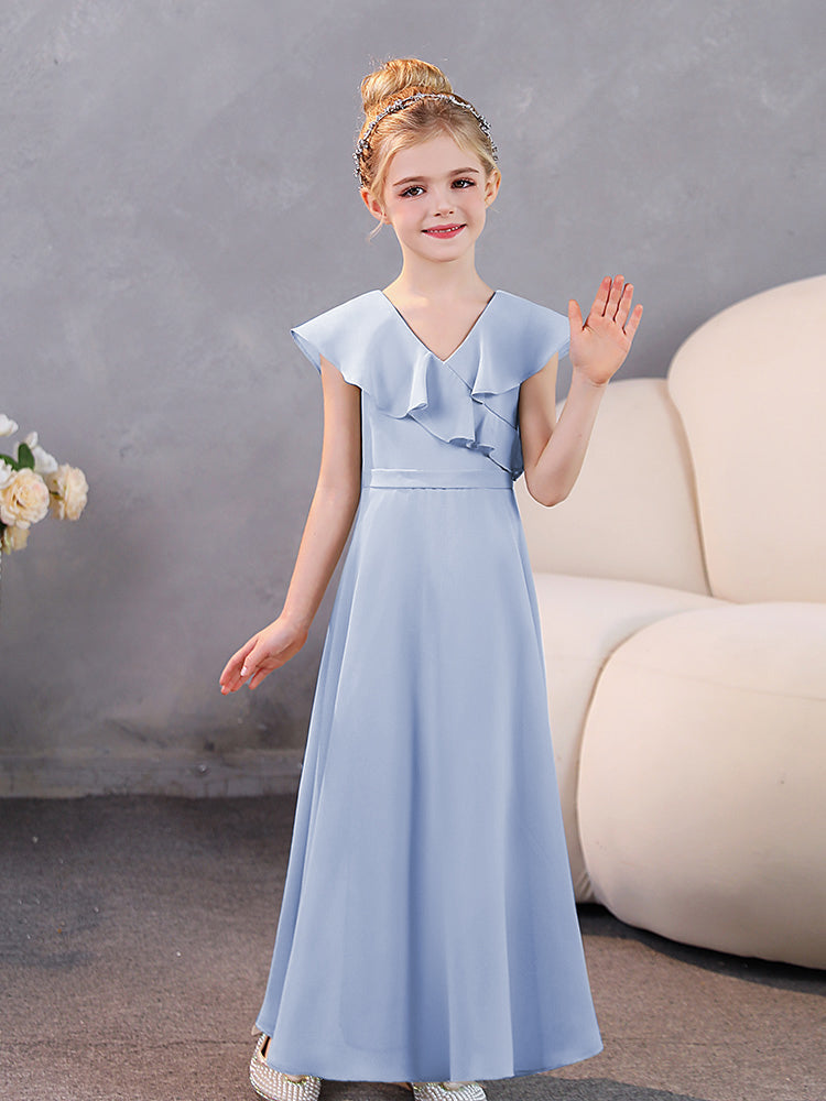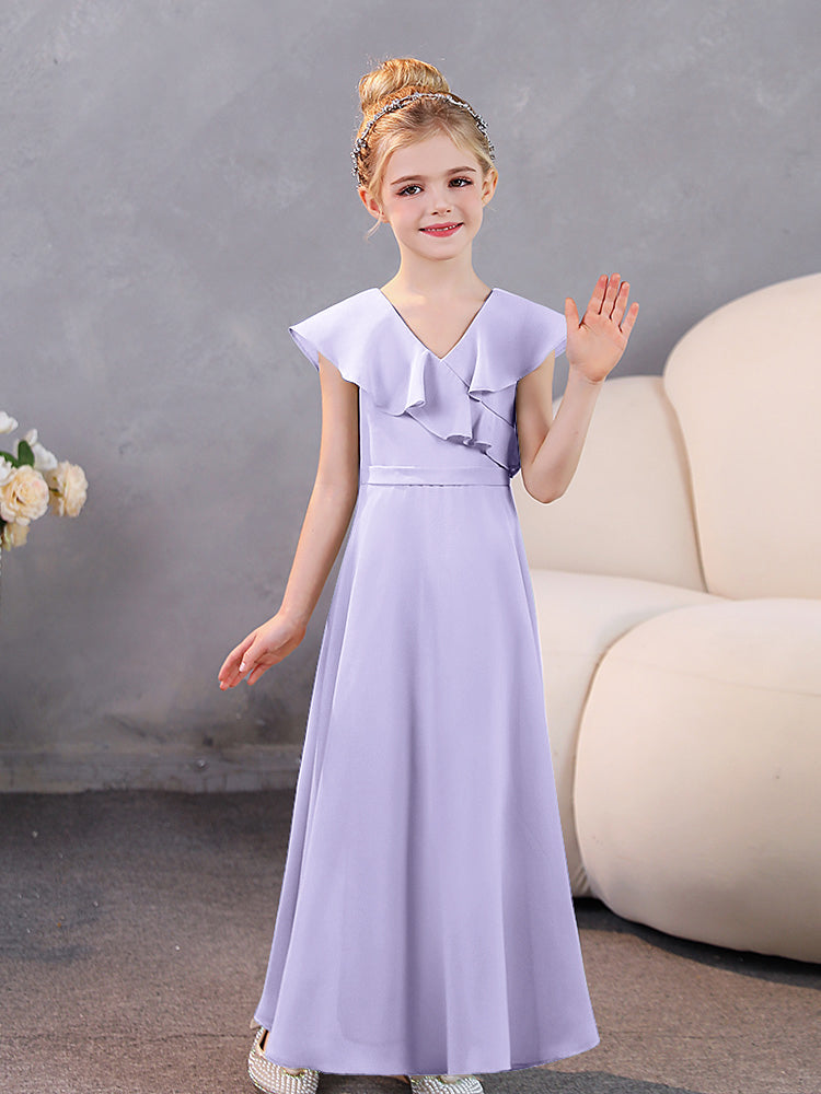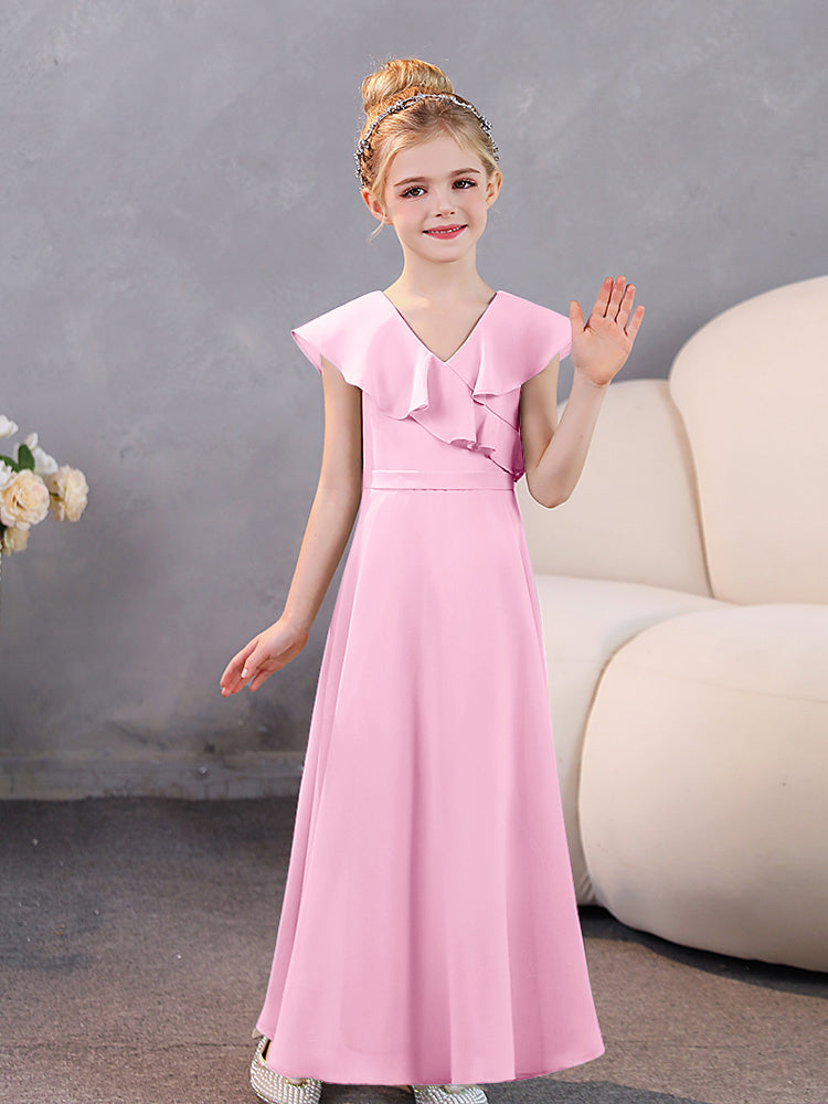 V-Ausschnitt Rüschen Chiffon Junior Brautjungfernkleider