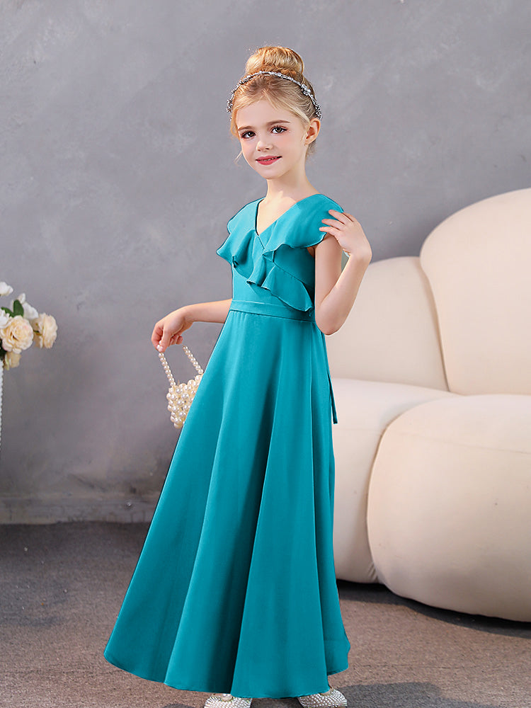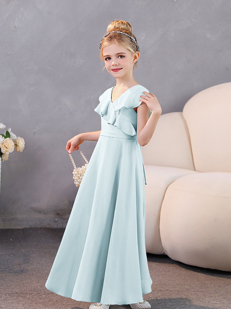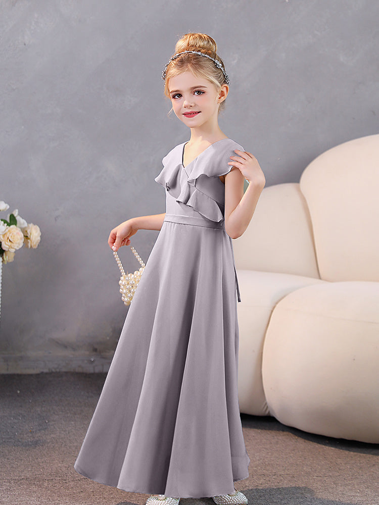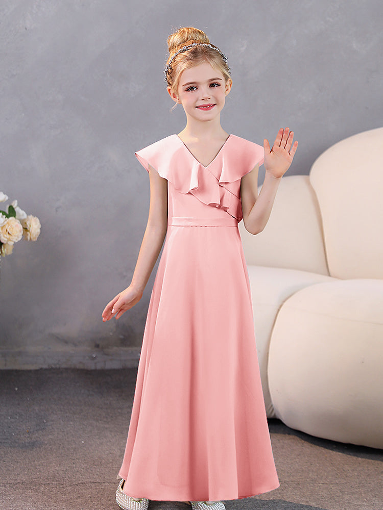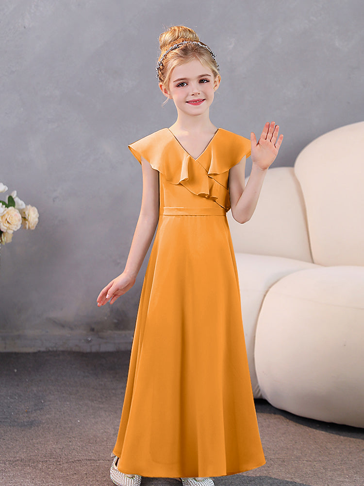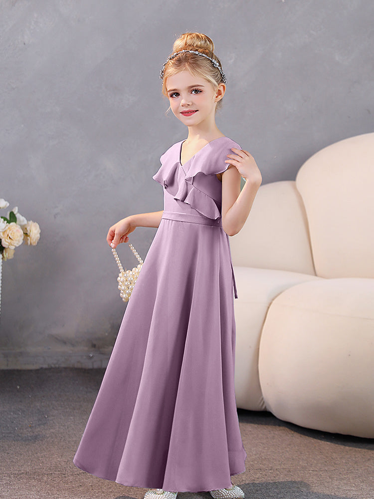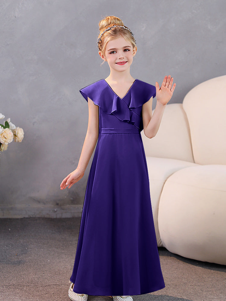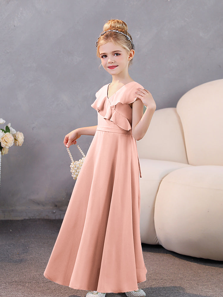 V-Ausschnitt Rüschen Chiffon Junior Brautjungfernkleider