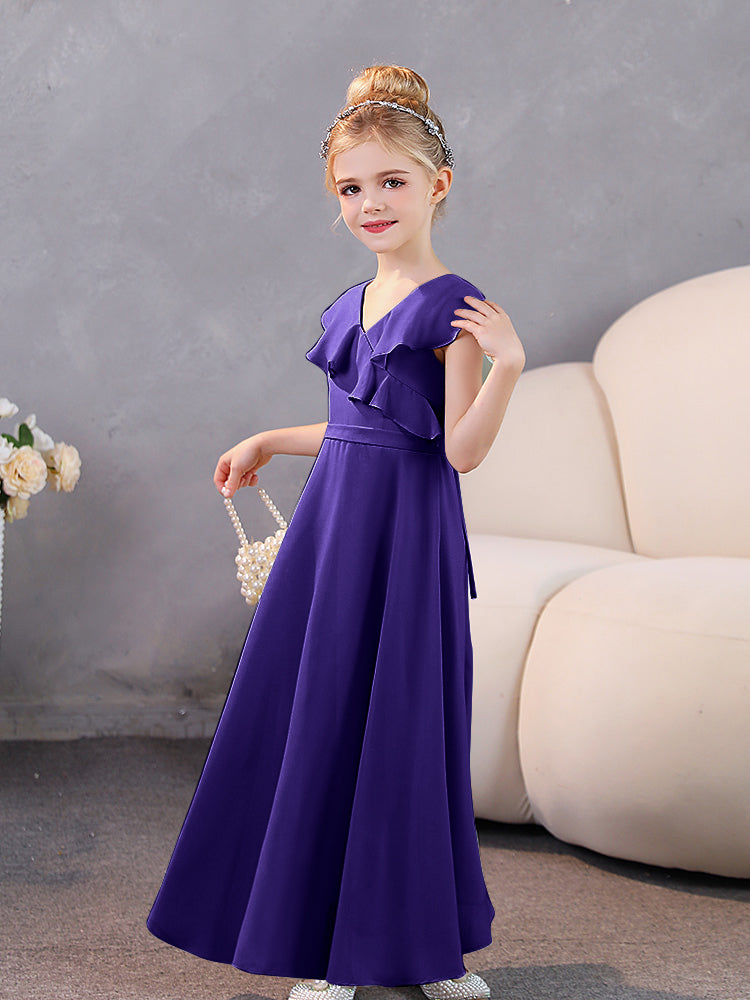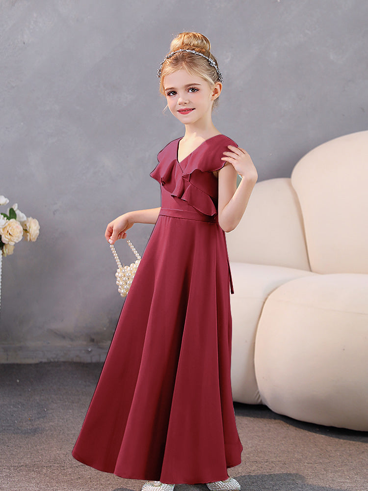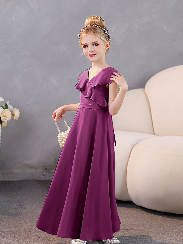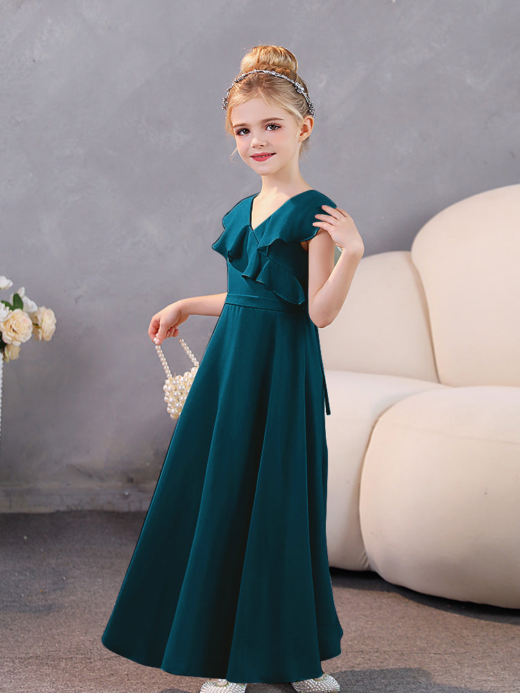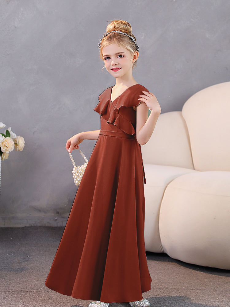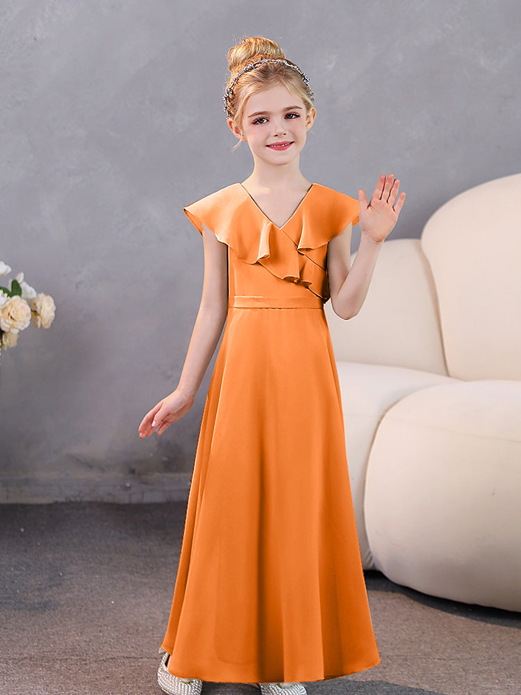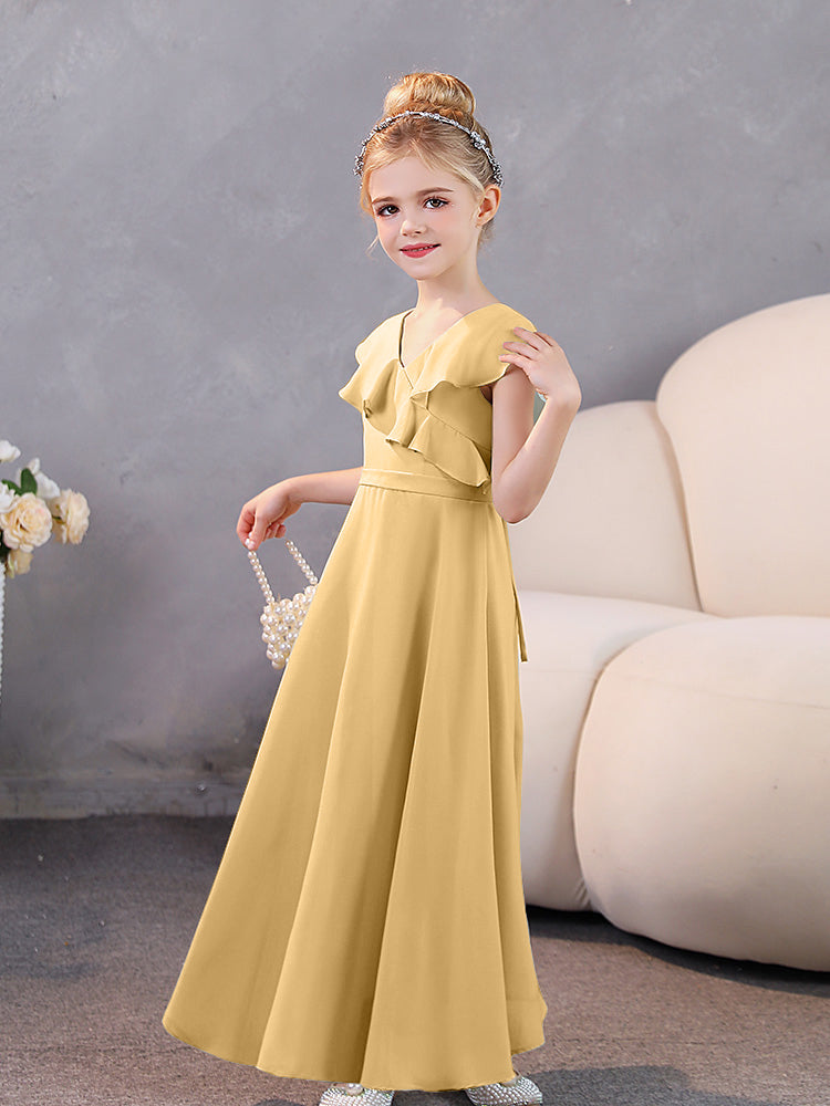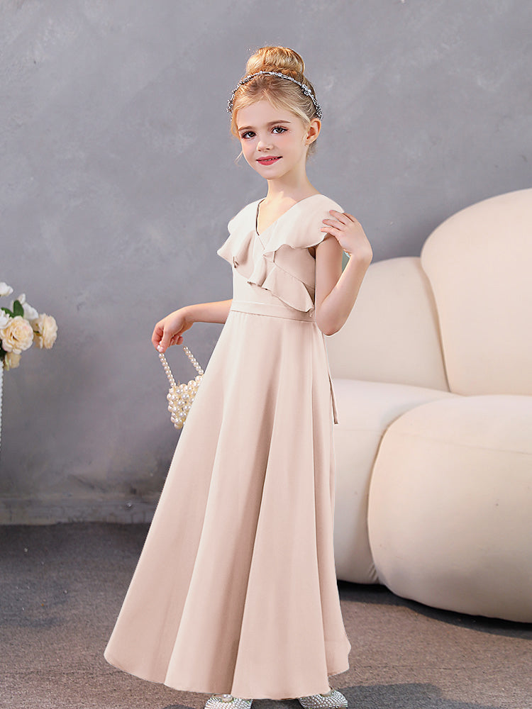 V-Ausschnitt Rüschen Chiffon Junior Brautjungfernkleider