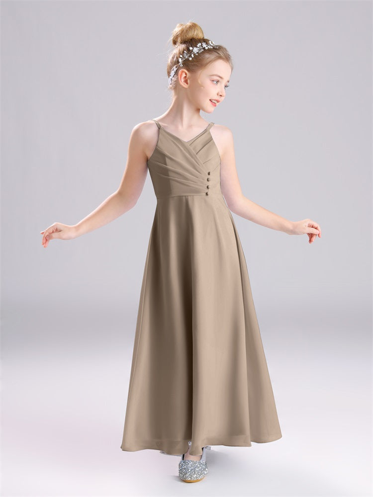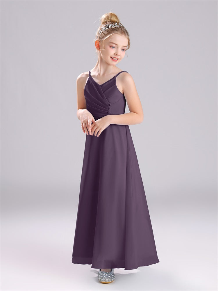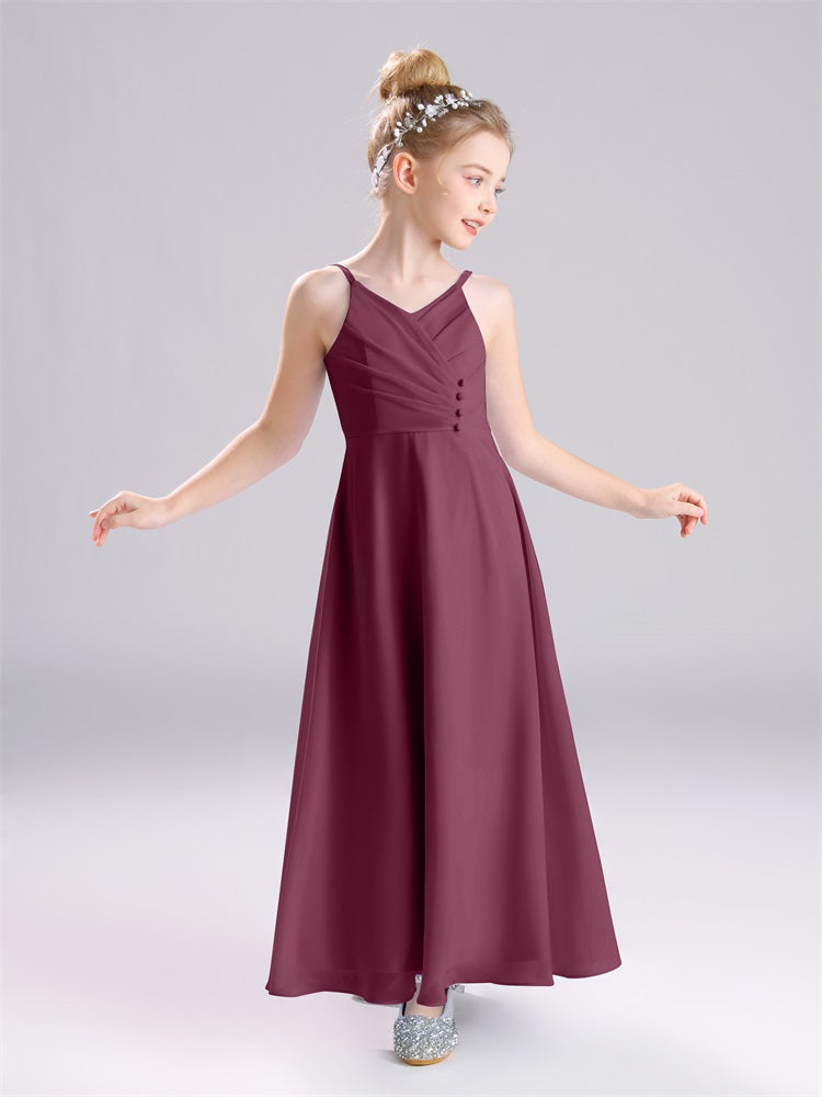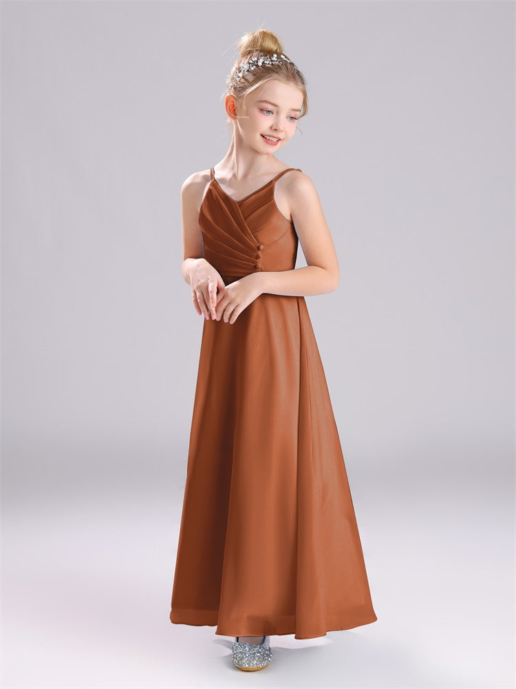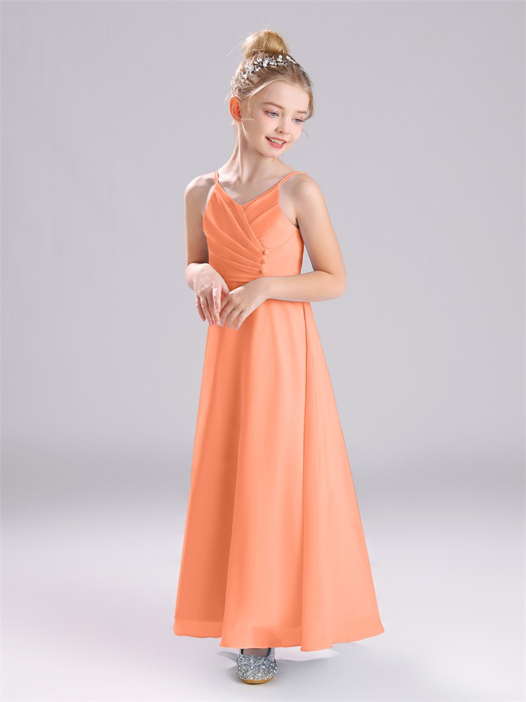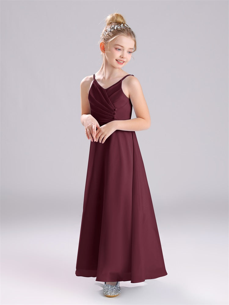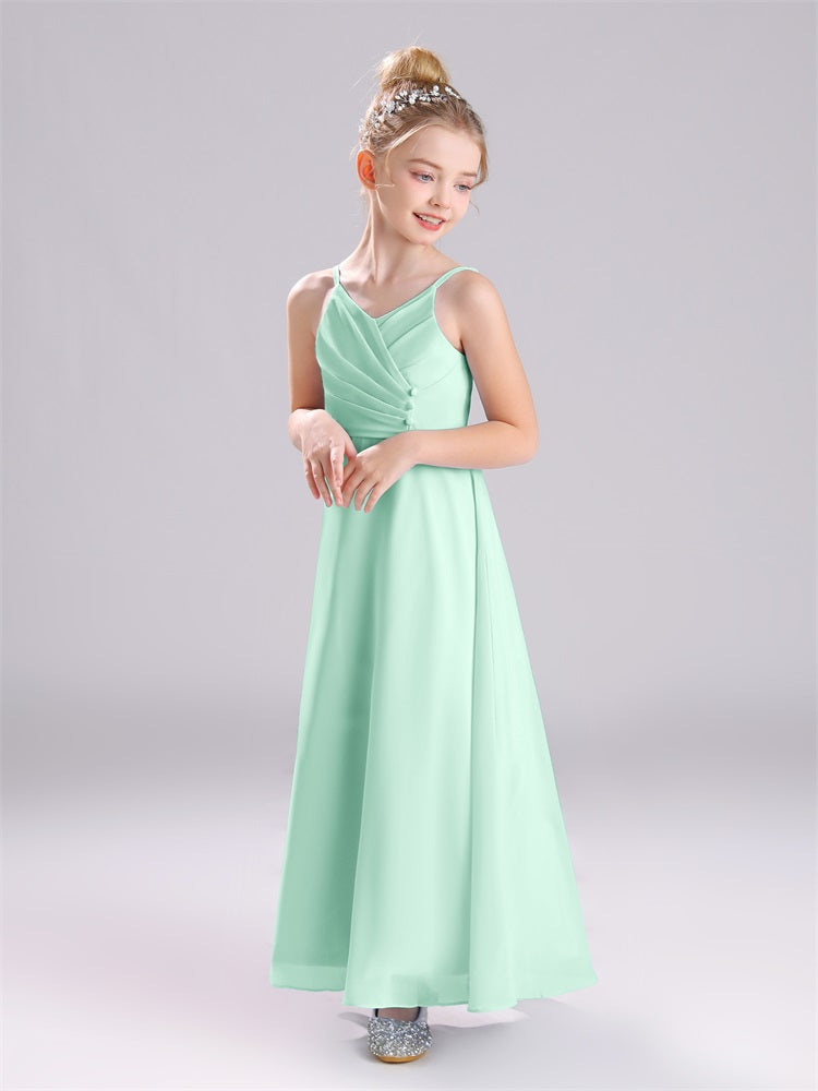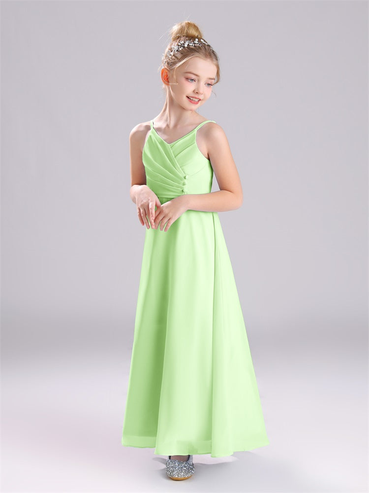 V-Ausschnitt Spaghetti-Träger Falten Chiffon Junior Brautjungfernkleider