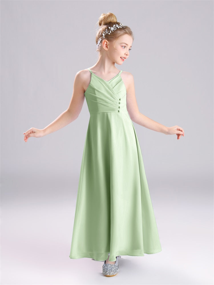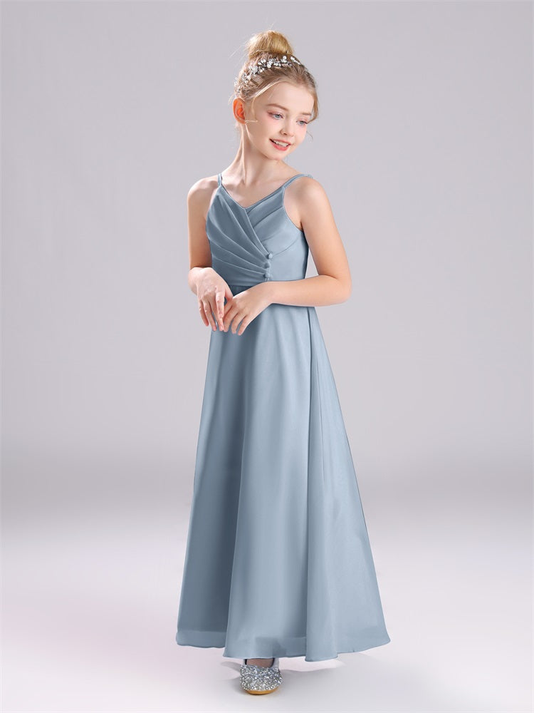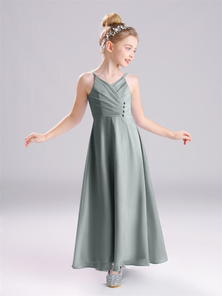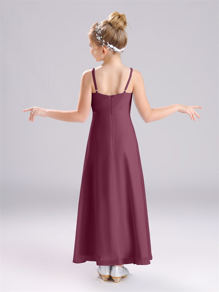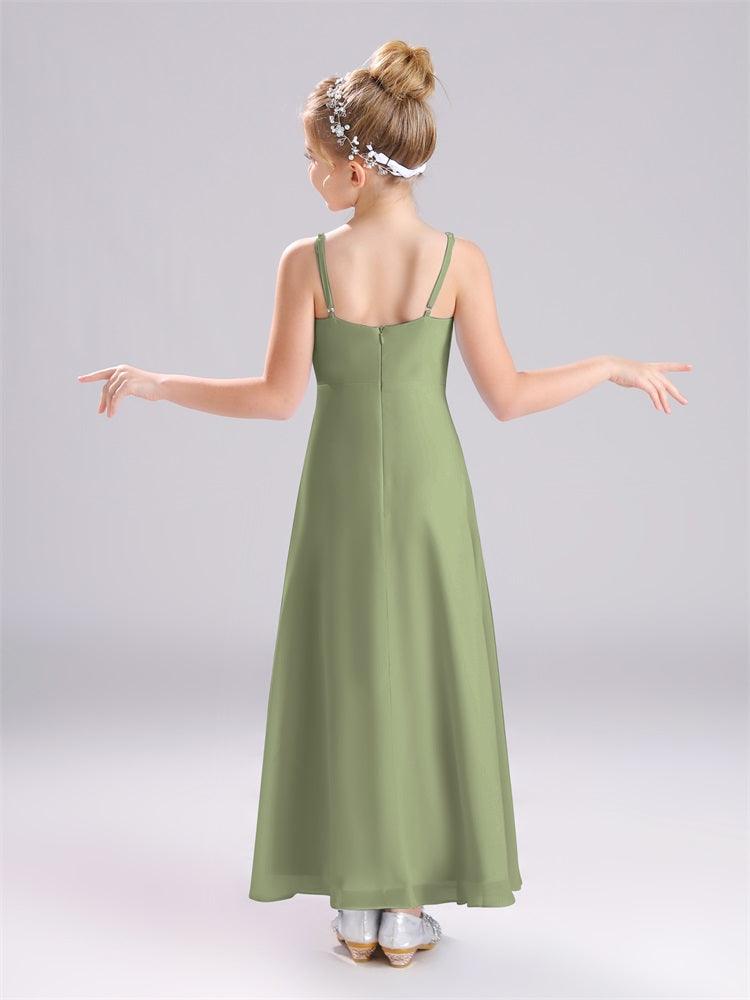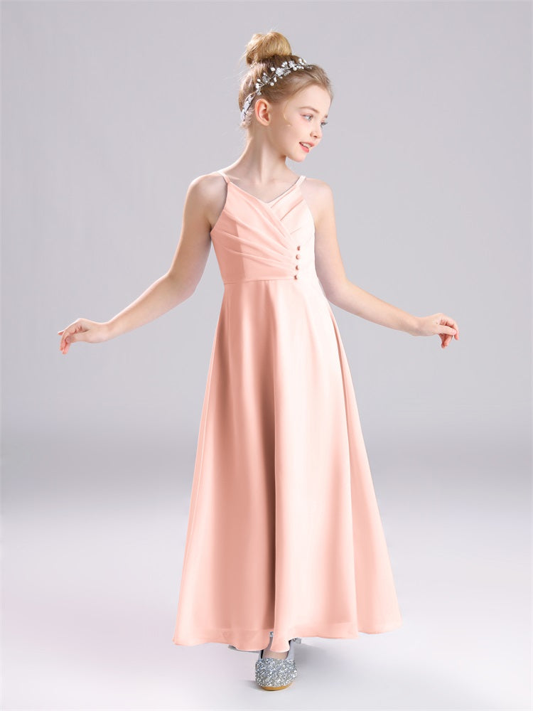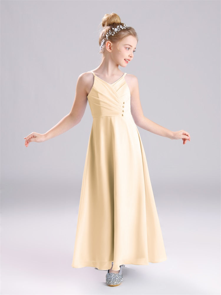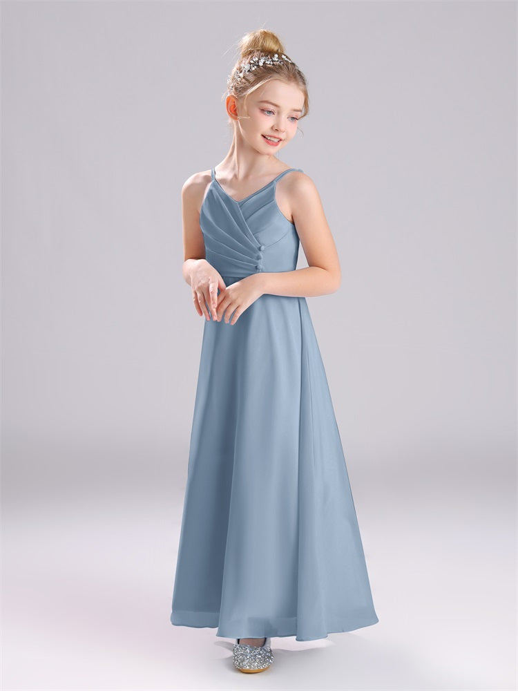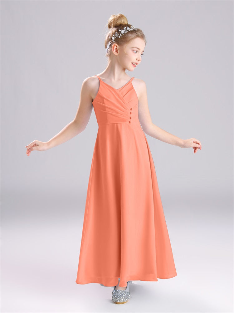 V-Ausschnitt Spaghetti-Träger Falten Chiffon Junior Brautjungfernkleider