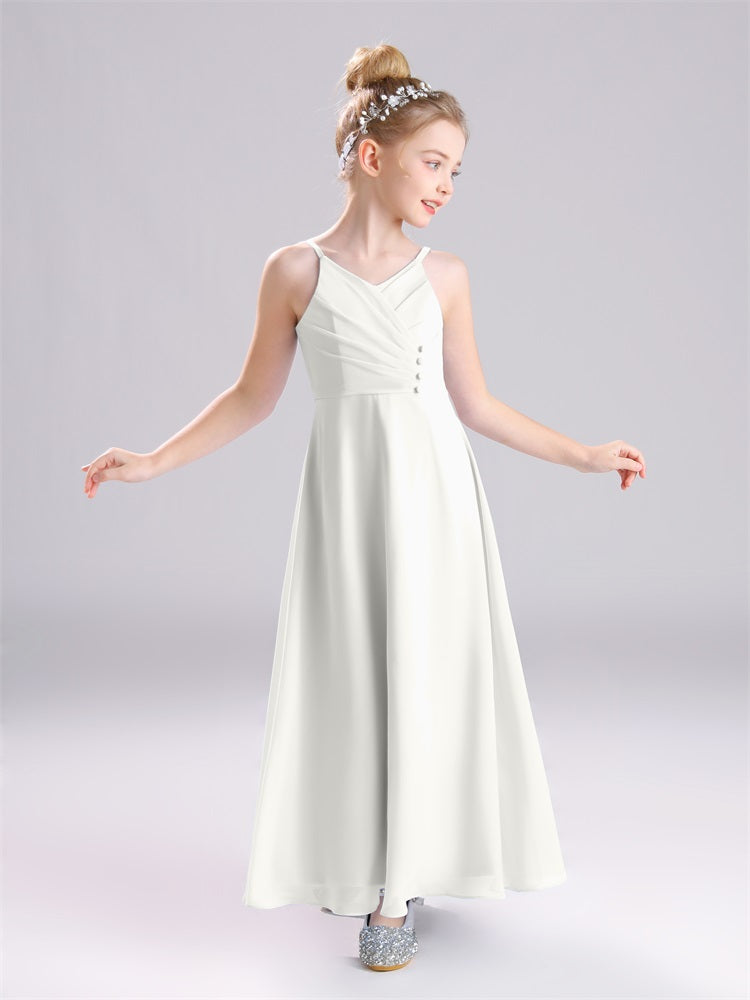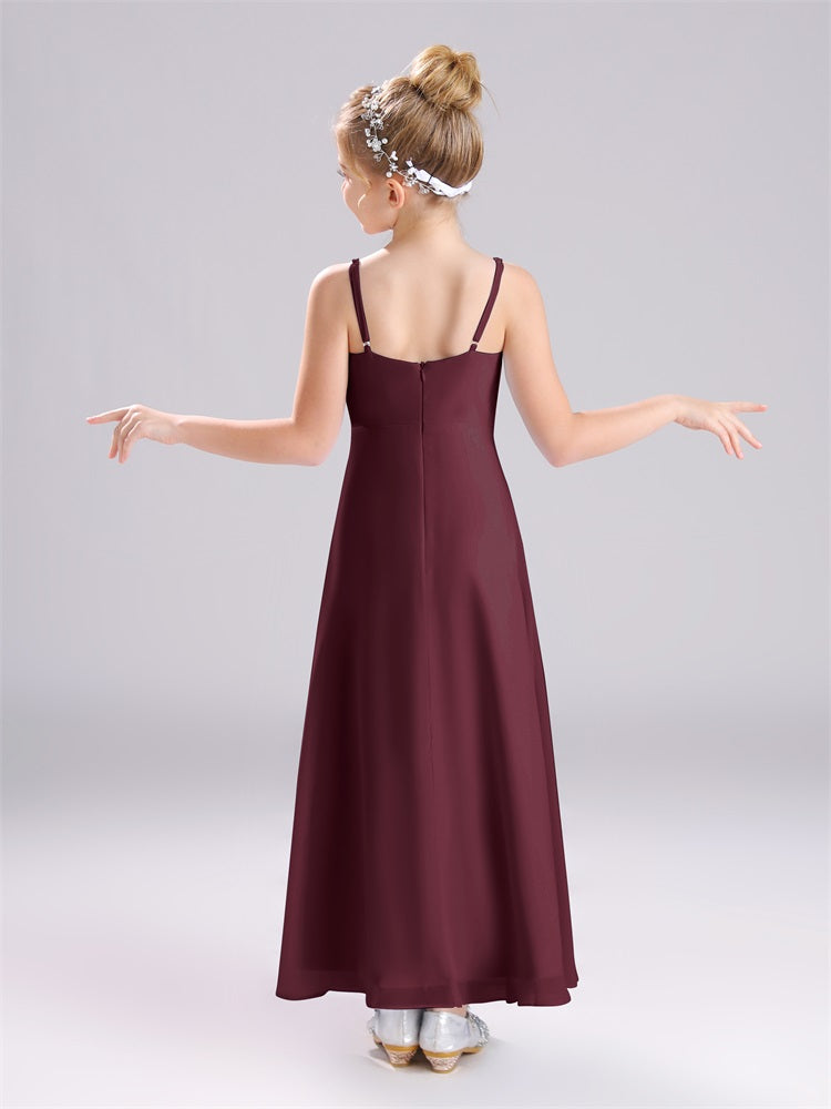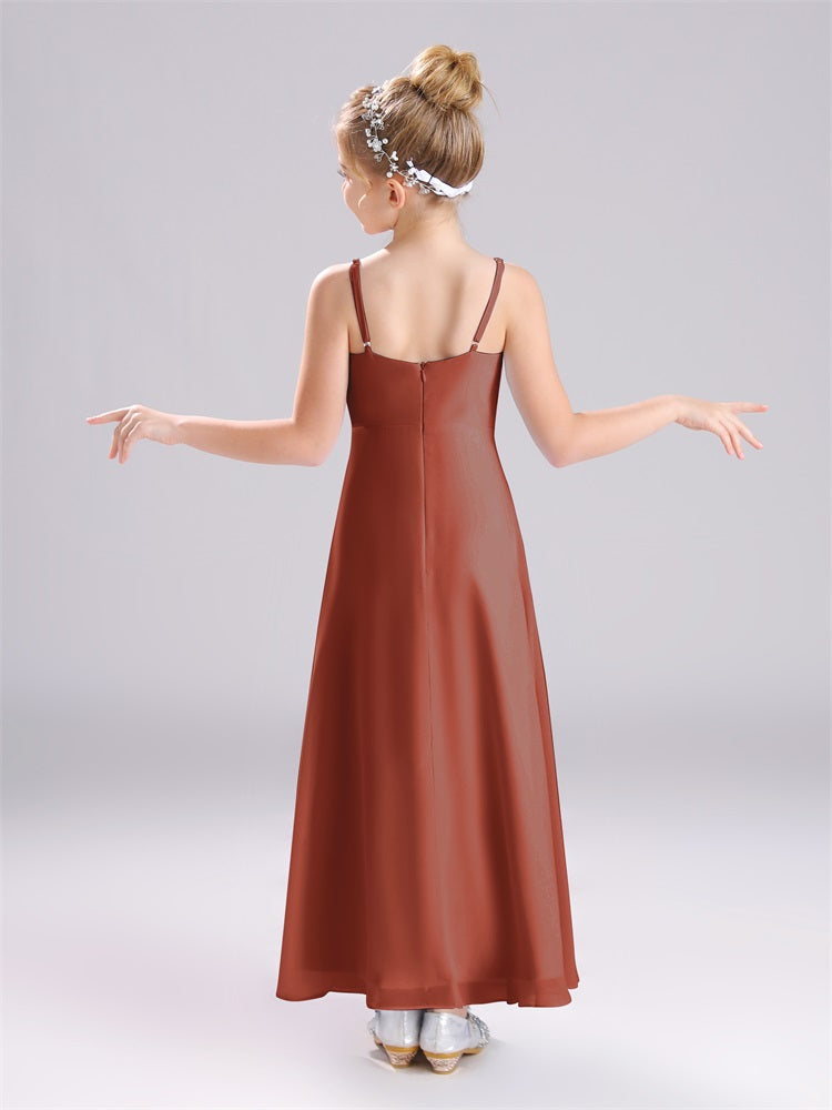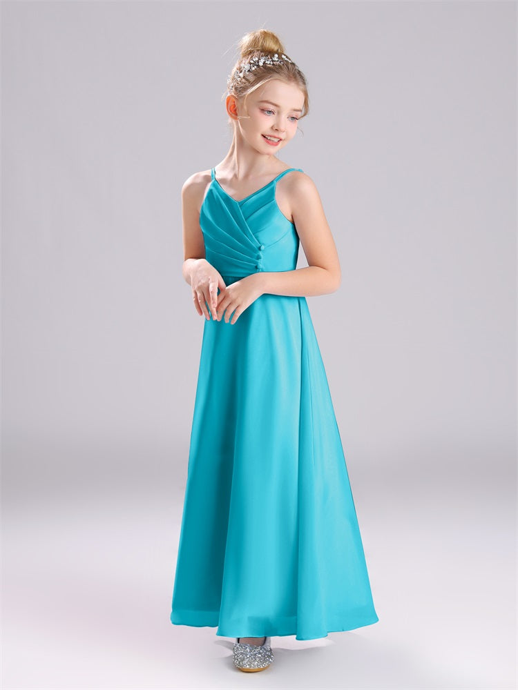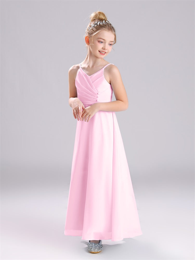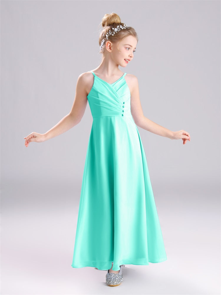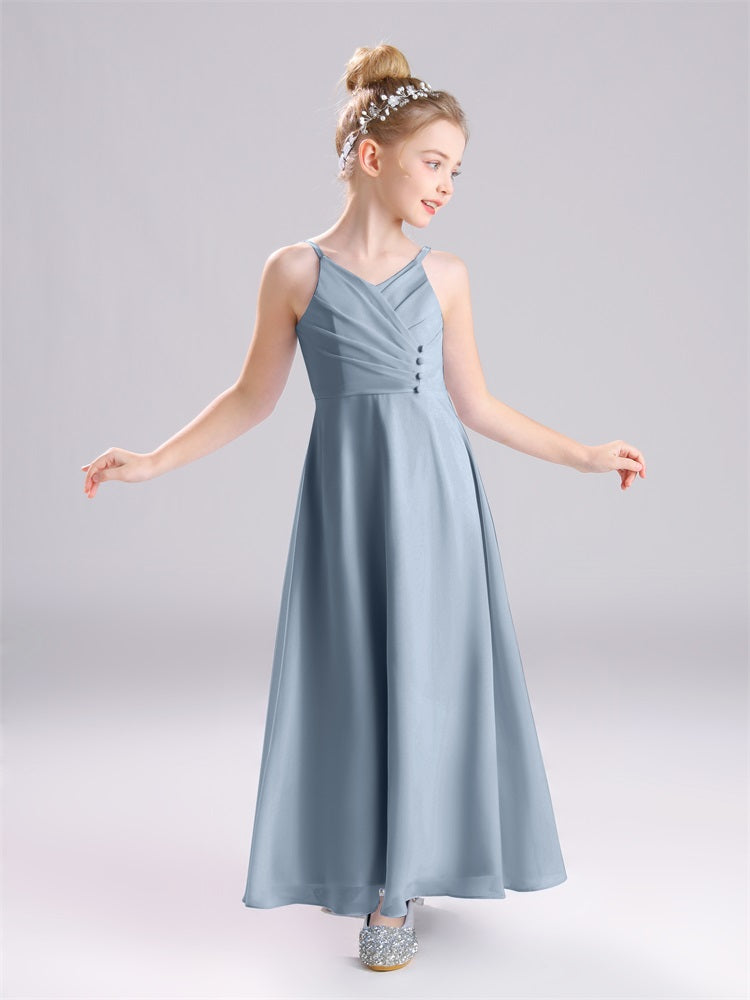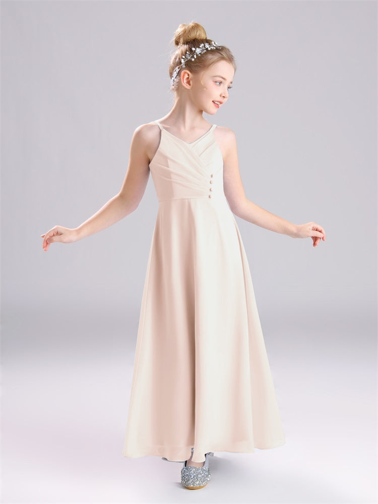 V-Ausschnitt Spaghetti-Träger Falten Chiffon Junior Brautjungfernkleider