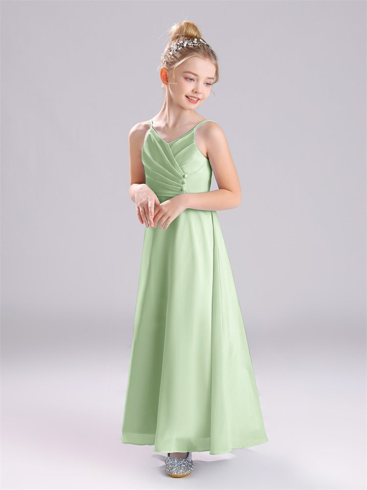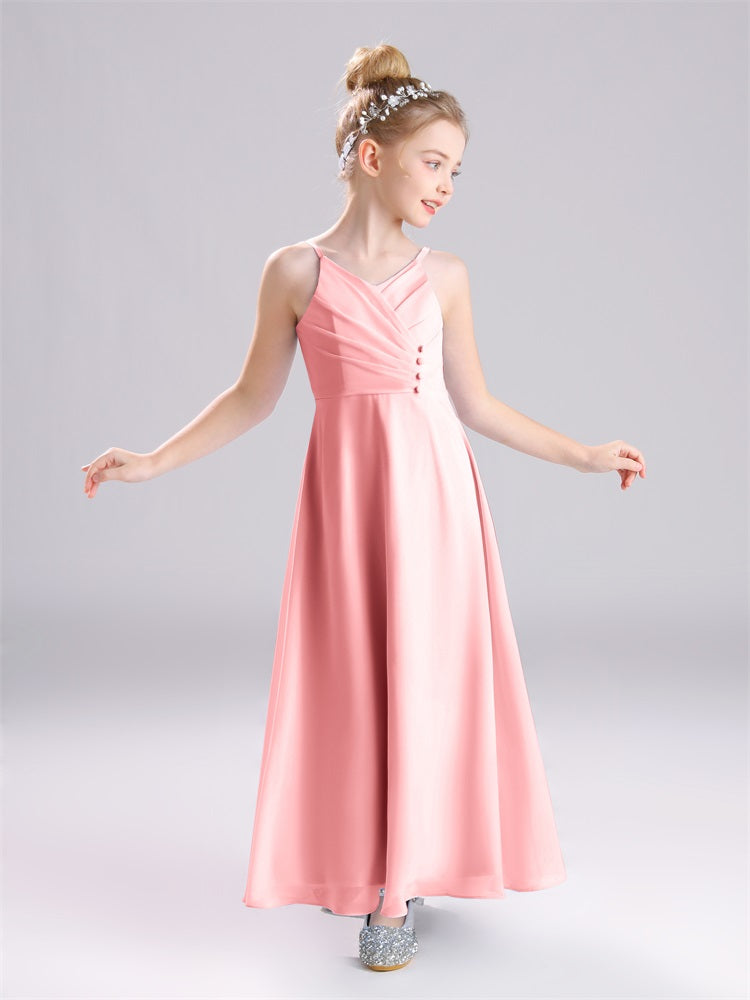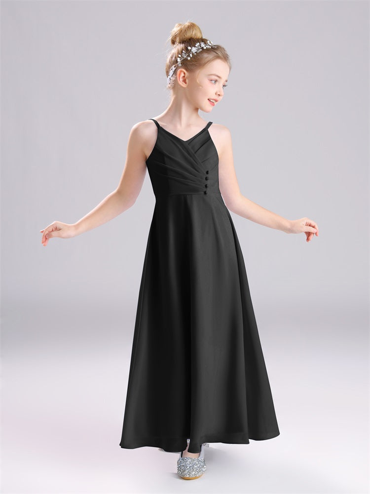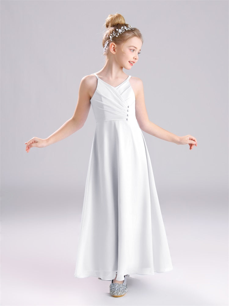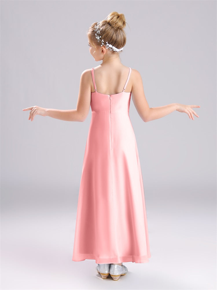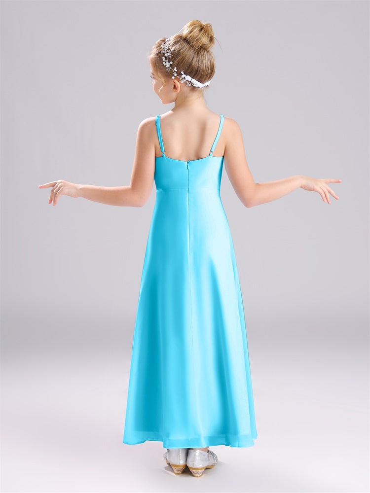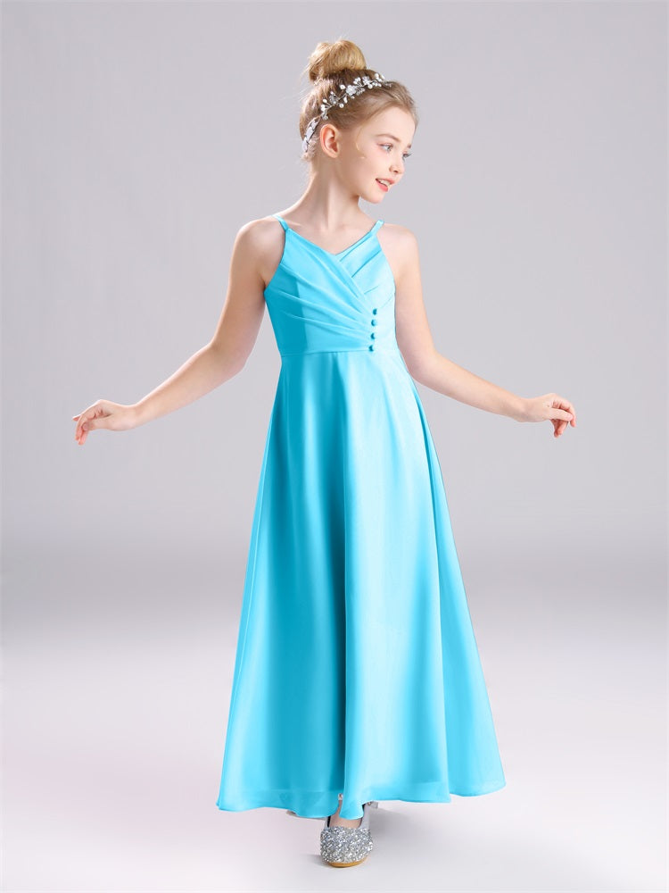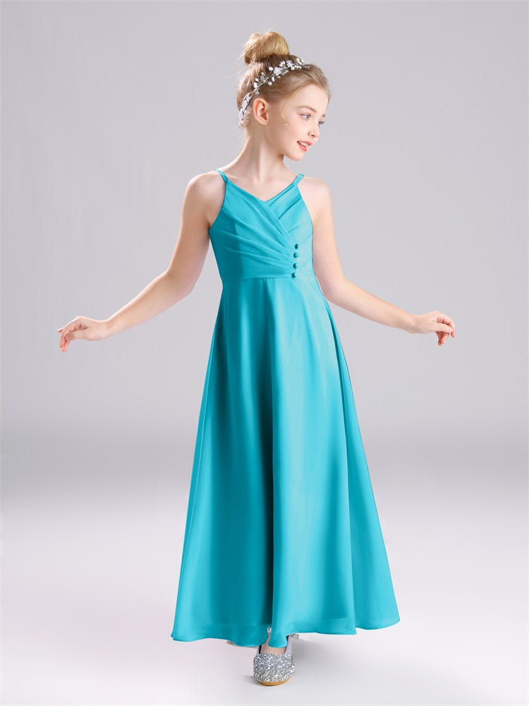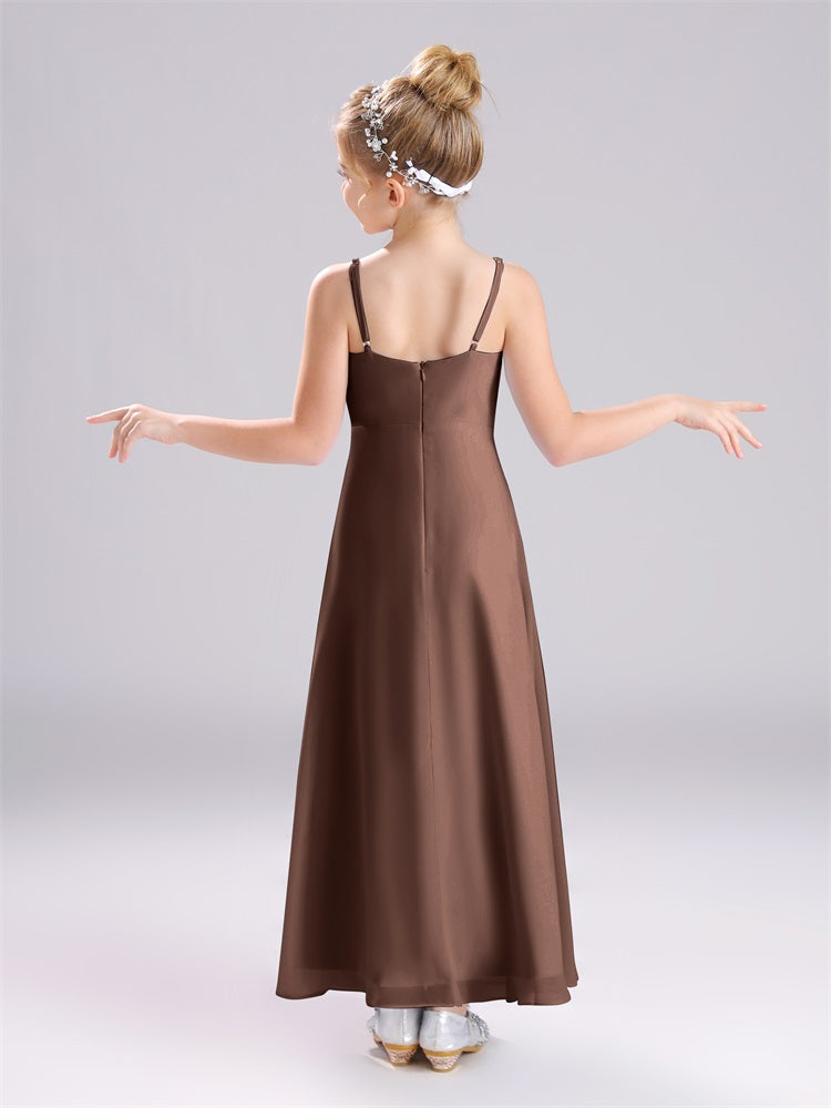 V-Ausschnitt Spaghetti-Träger Falten Chiffon Junior Brautjungfernkleider
