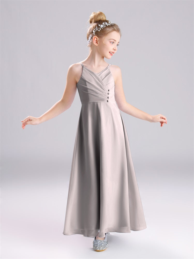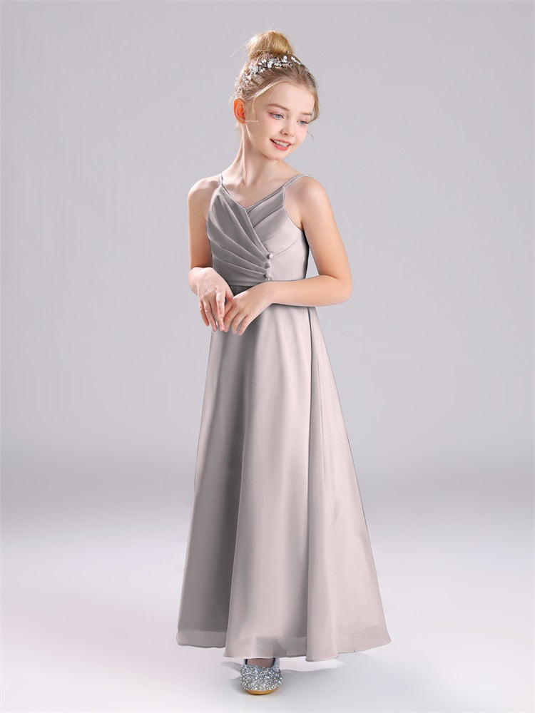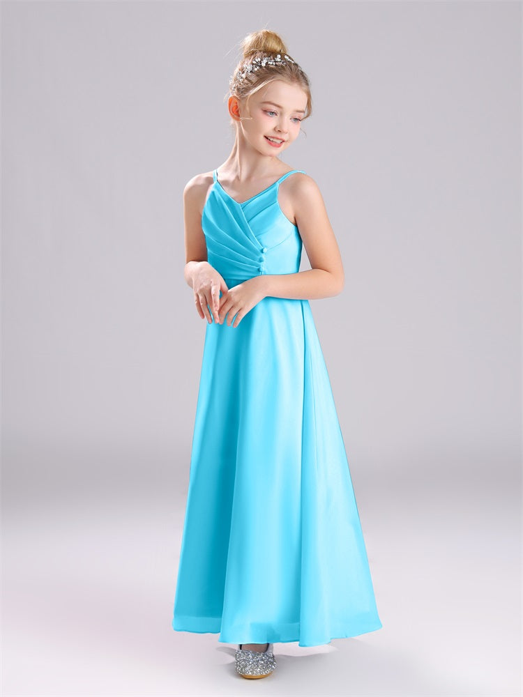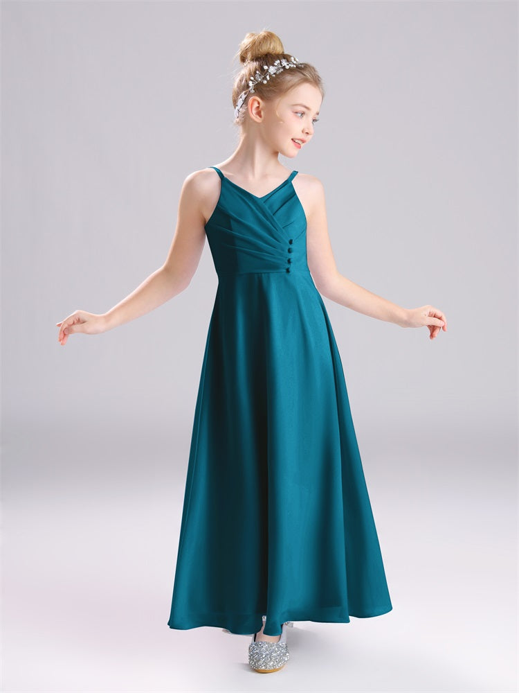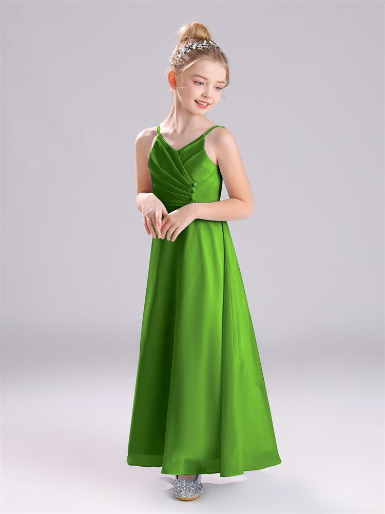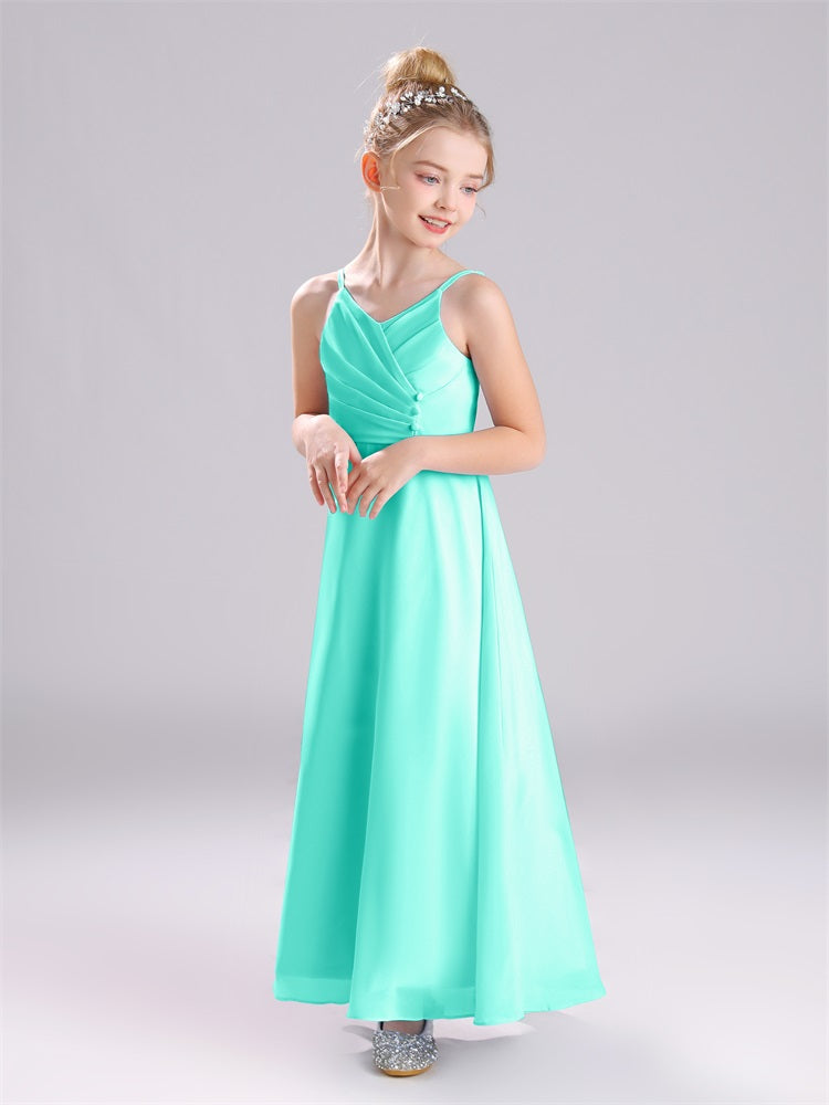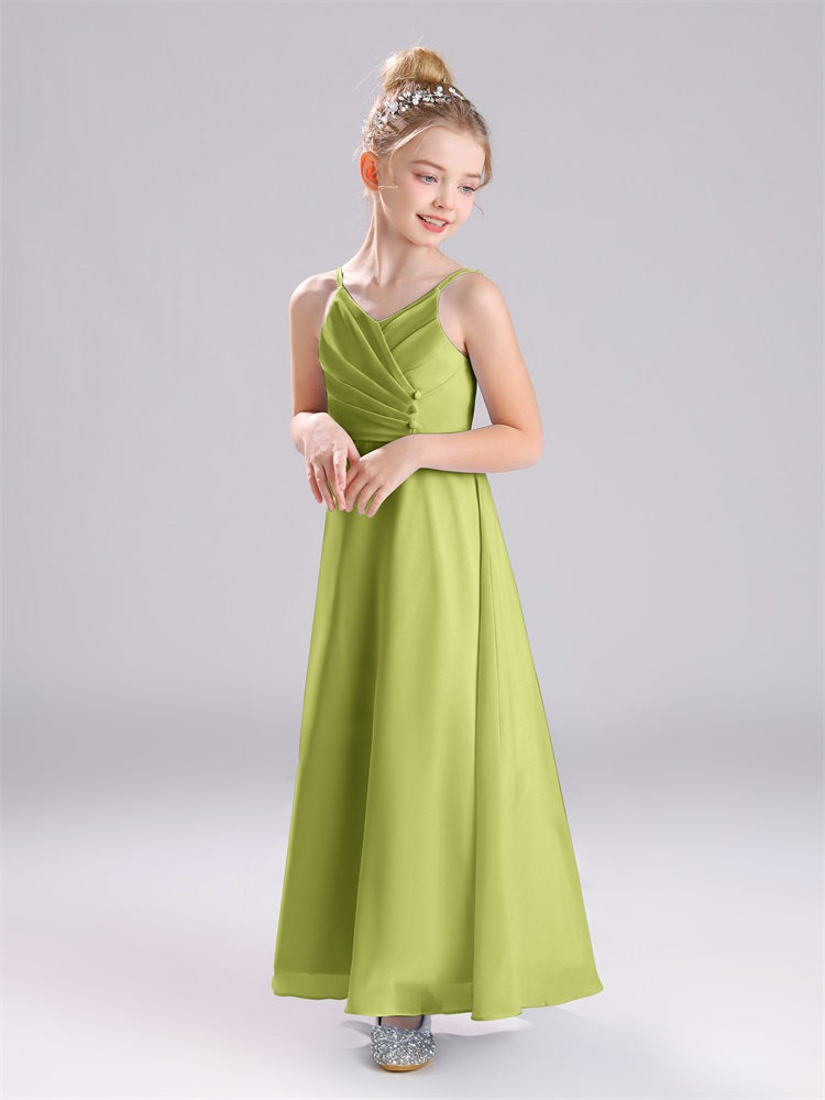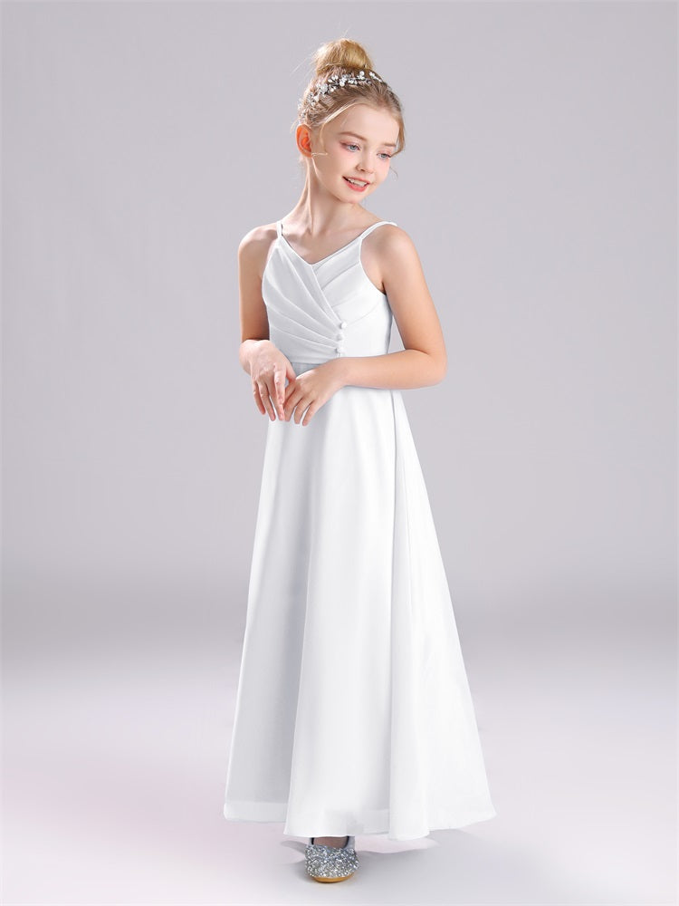 V-Ausschnitt Spaghetti-Träger Falten Chiffon Junior Brautjungfernkleider