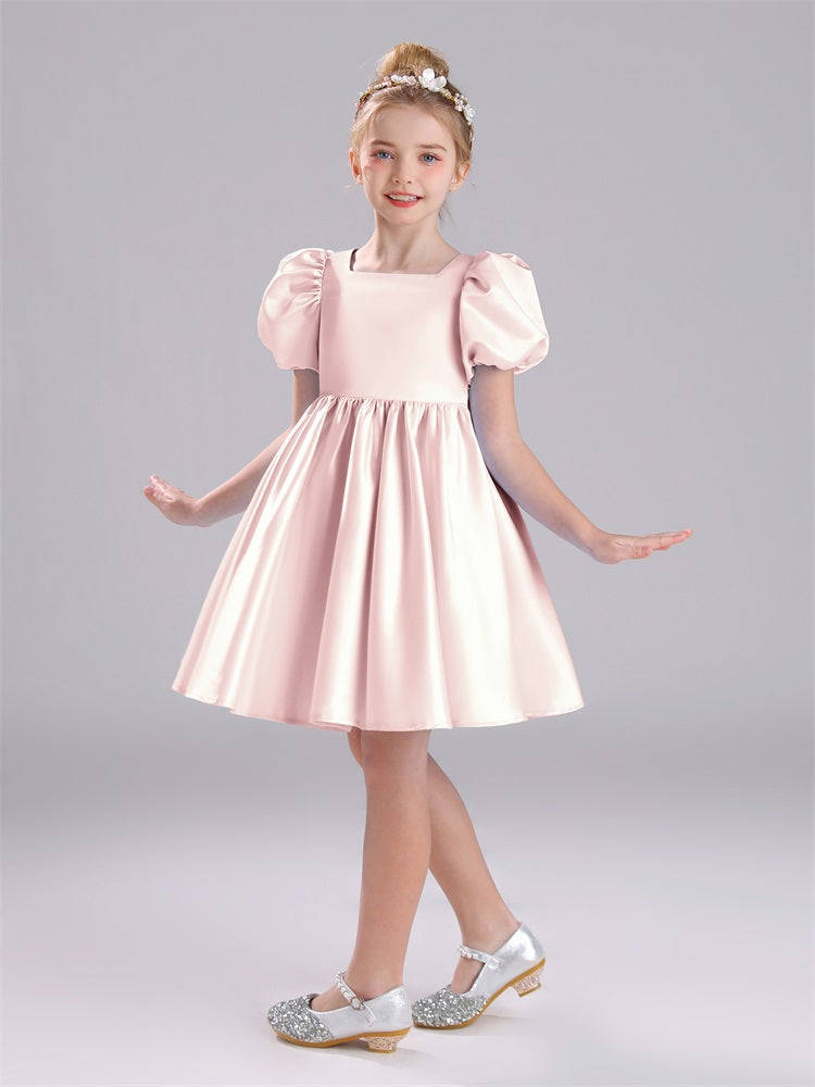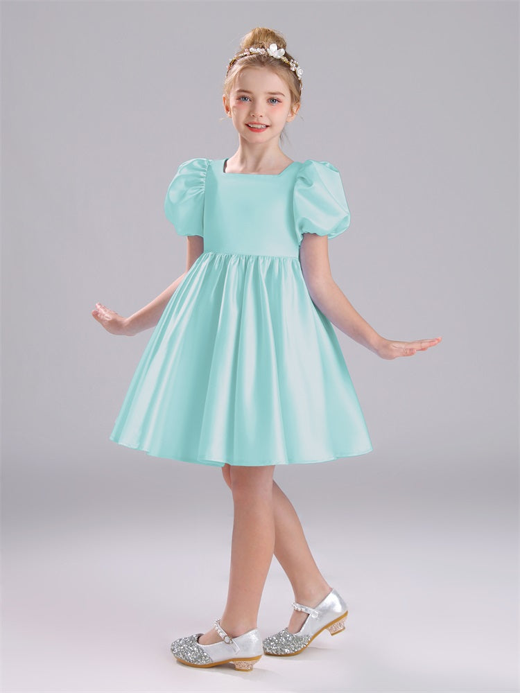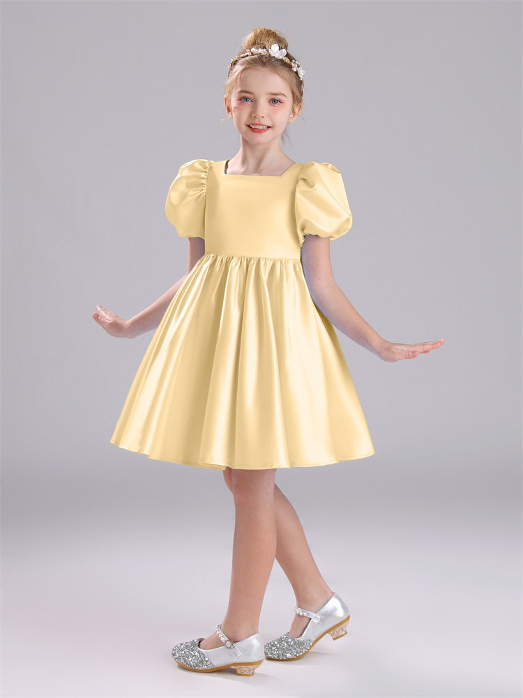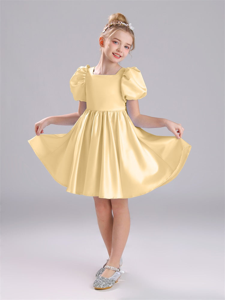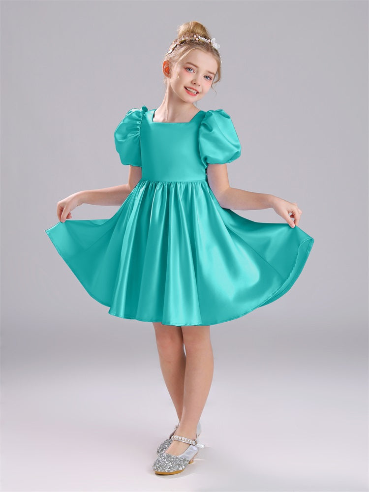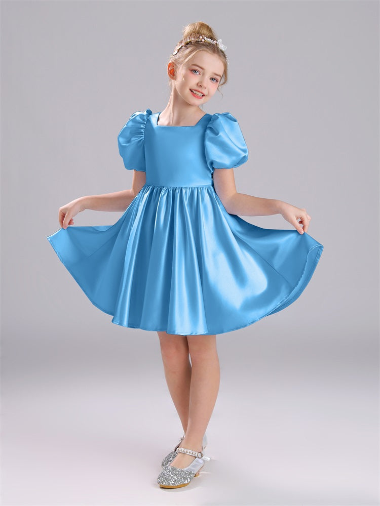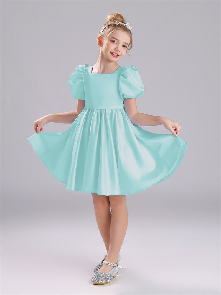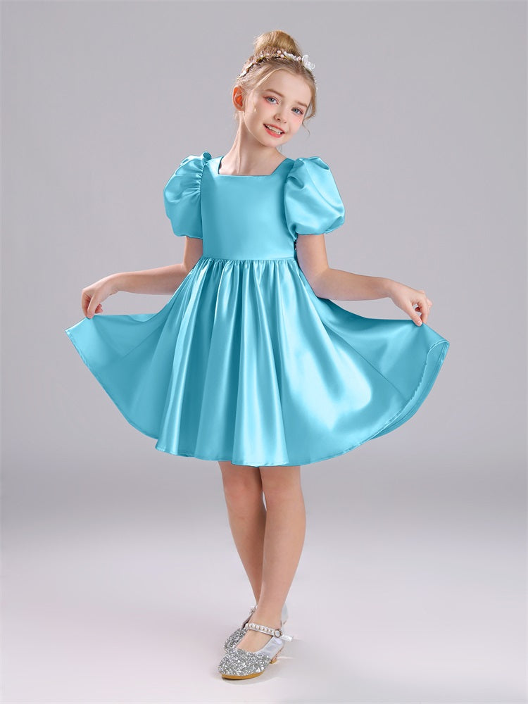 Viereckiger Ausschnitt Satin Ärmel Kurz Kleid für Mädchen