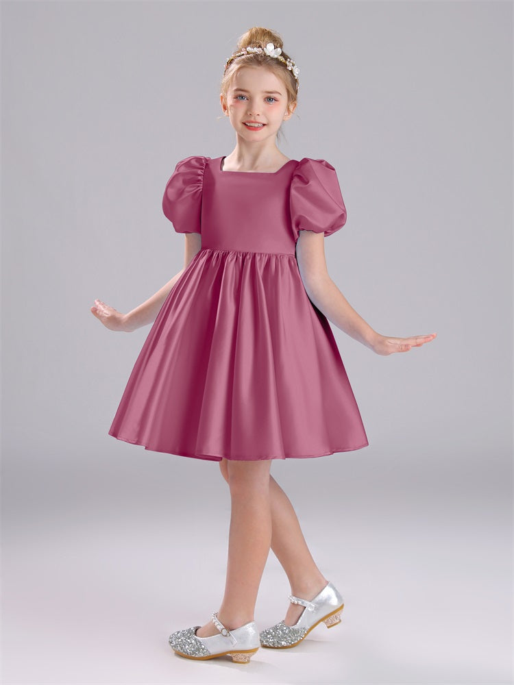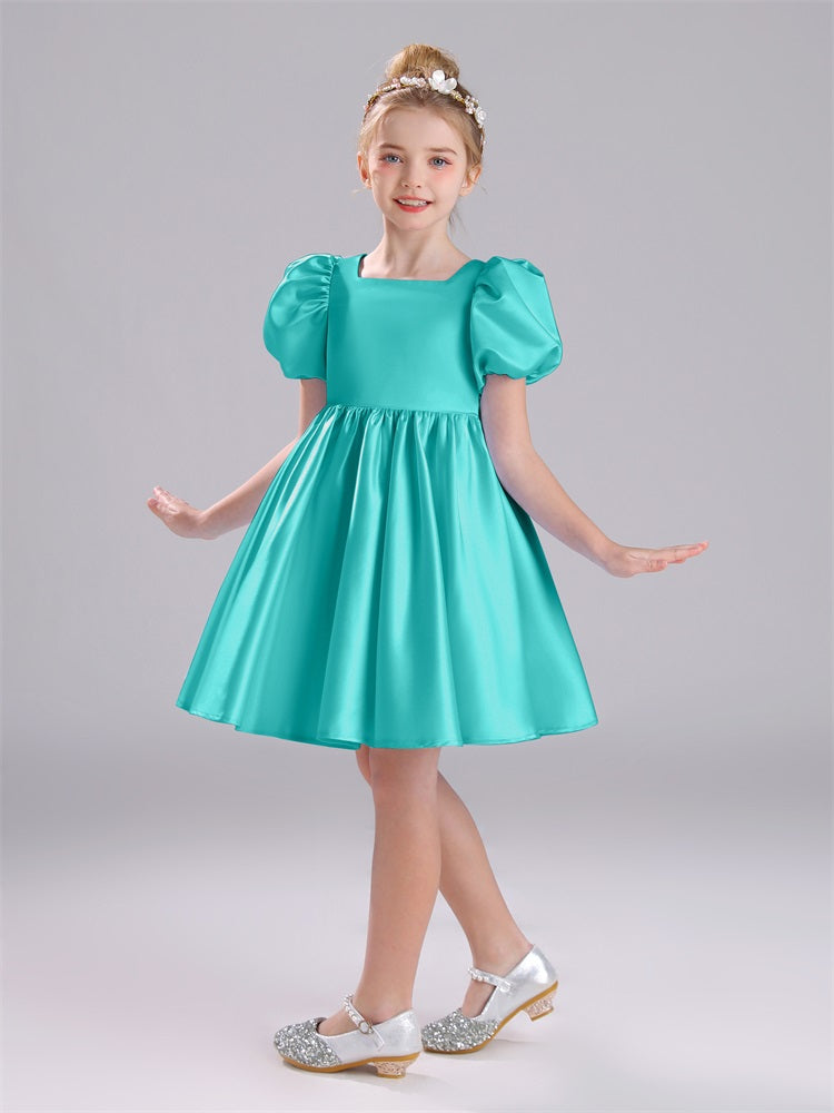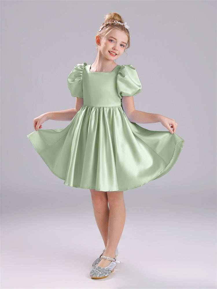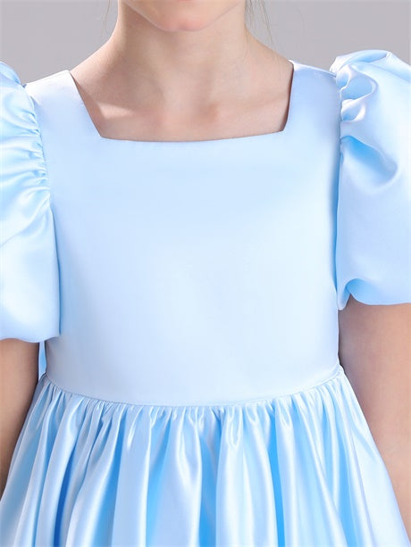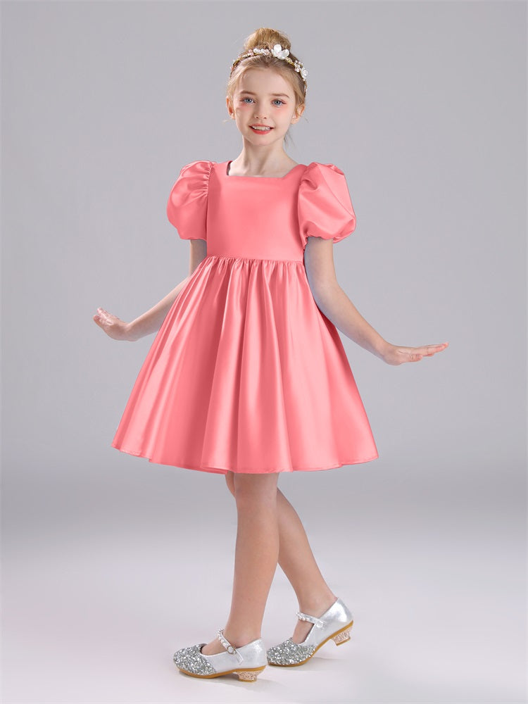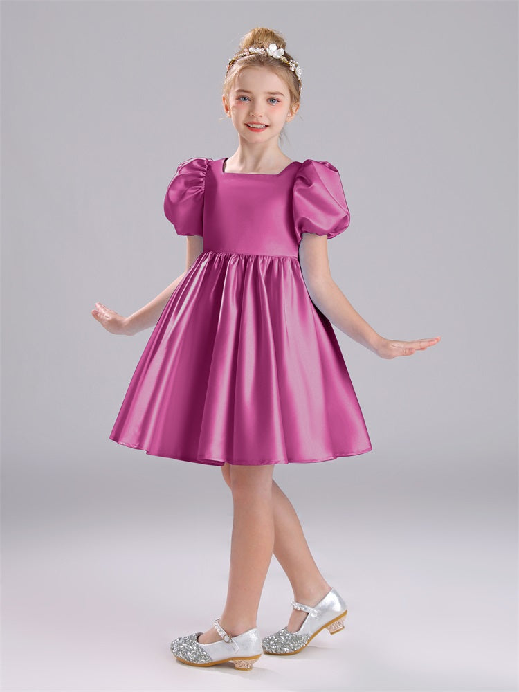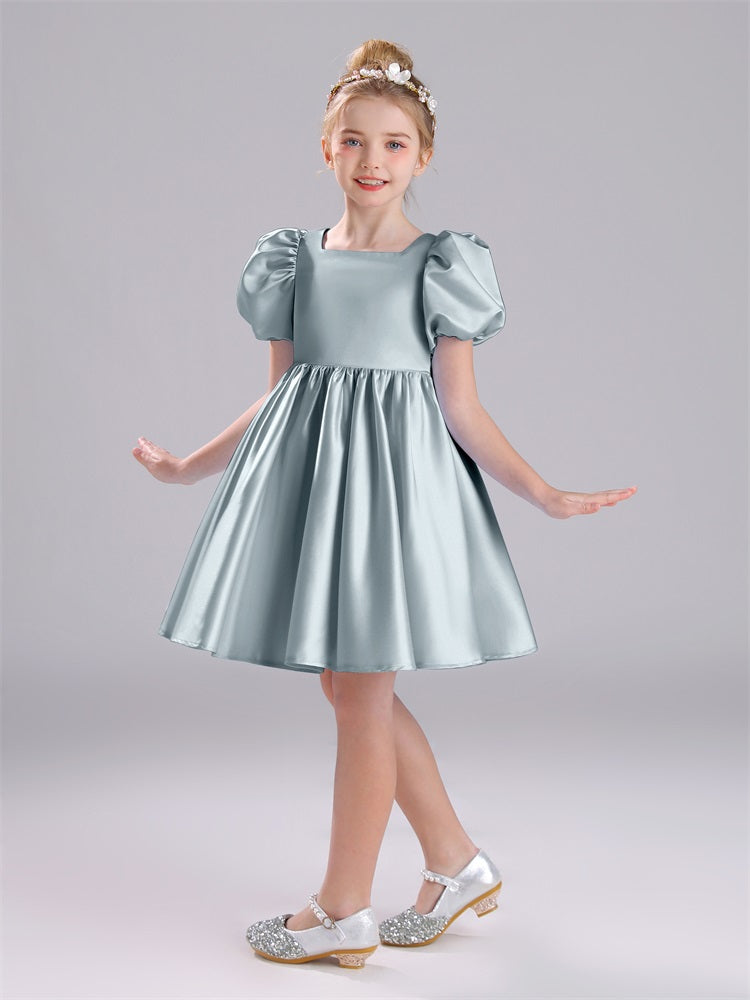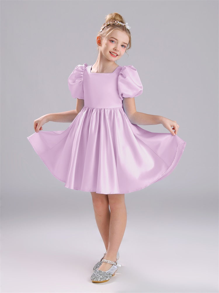 Viereckiger Ausschnitt Satin Ärmel Kurz Kleid für Mädchen