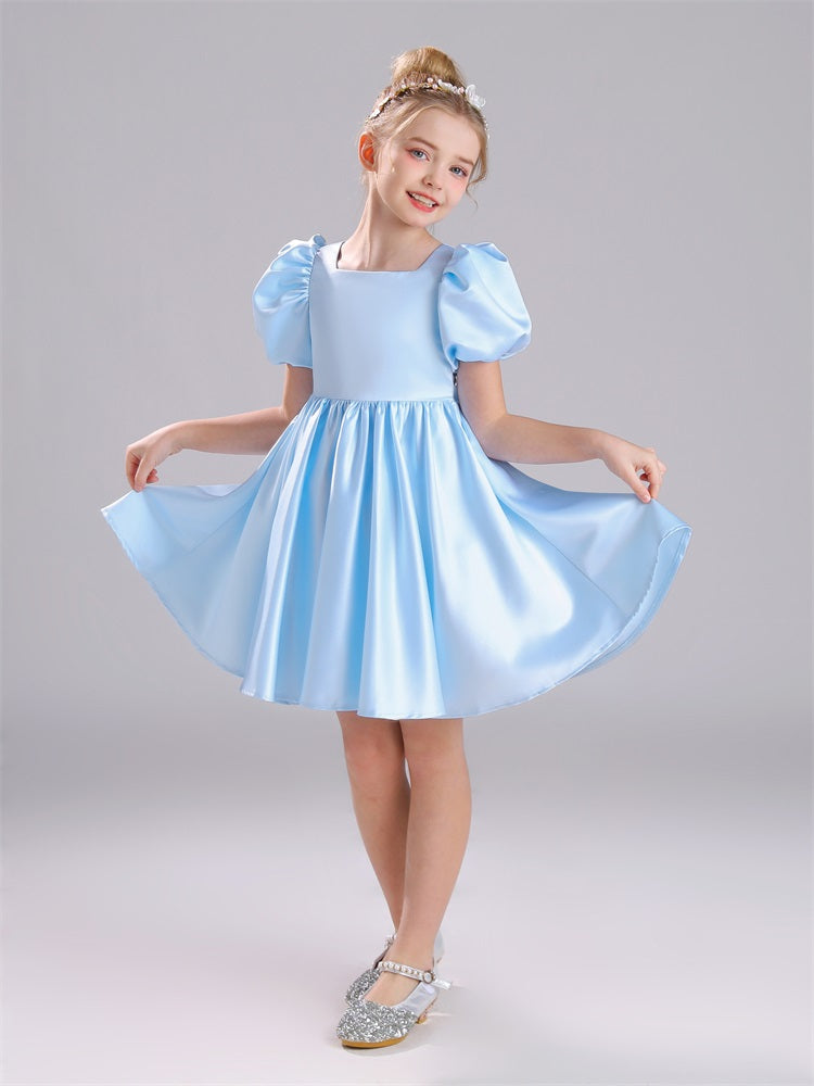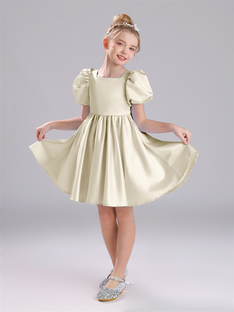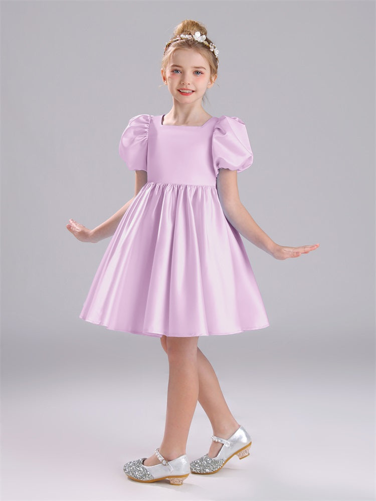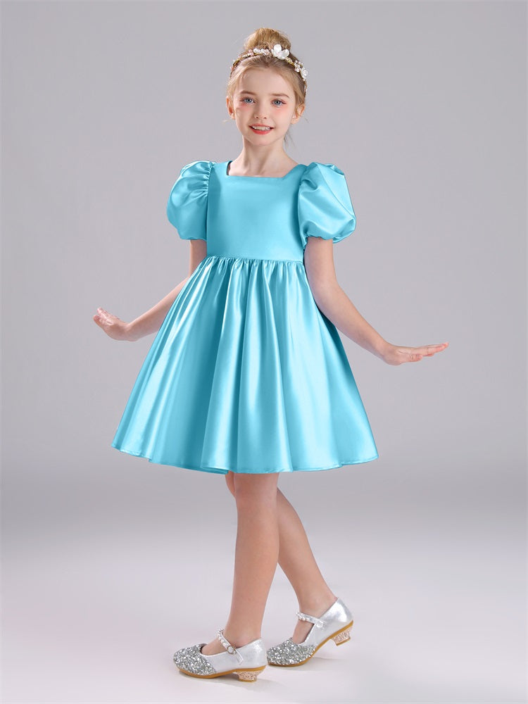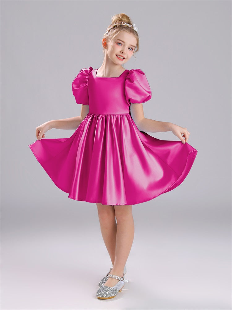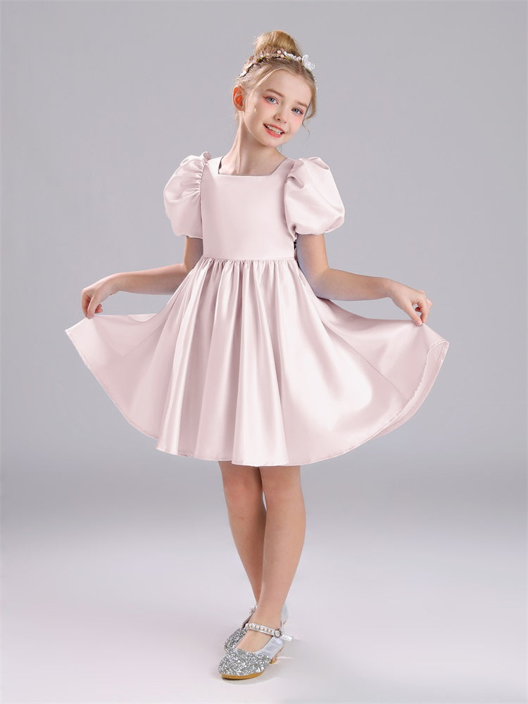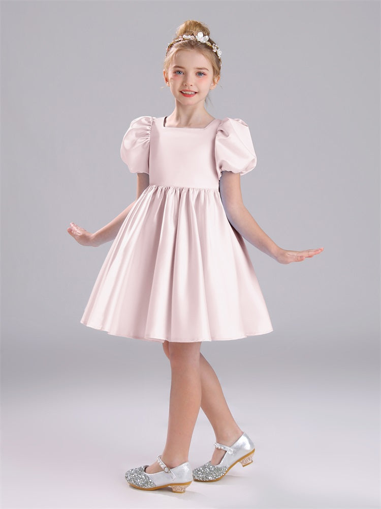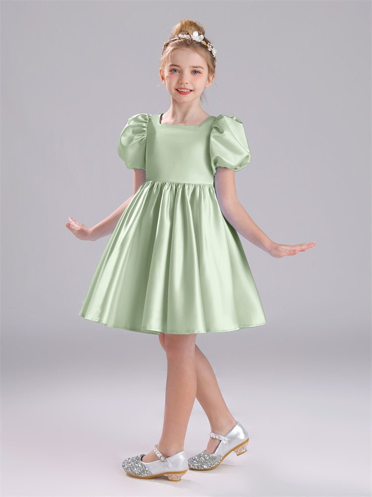 Viereckiger Ausschnitt Satin Ärmel Kurz Kleid für Mädchen