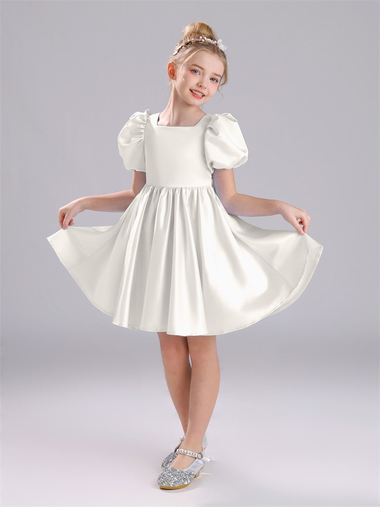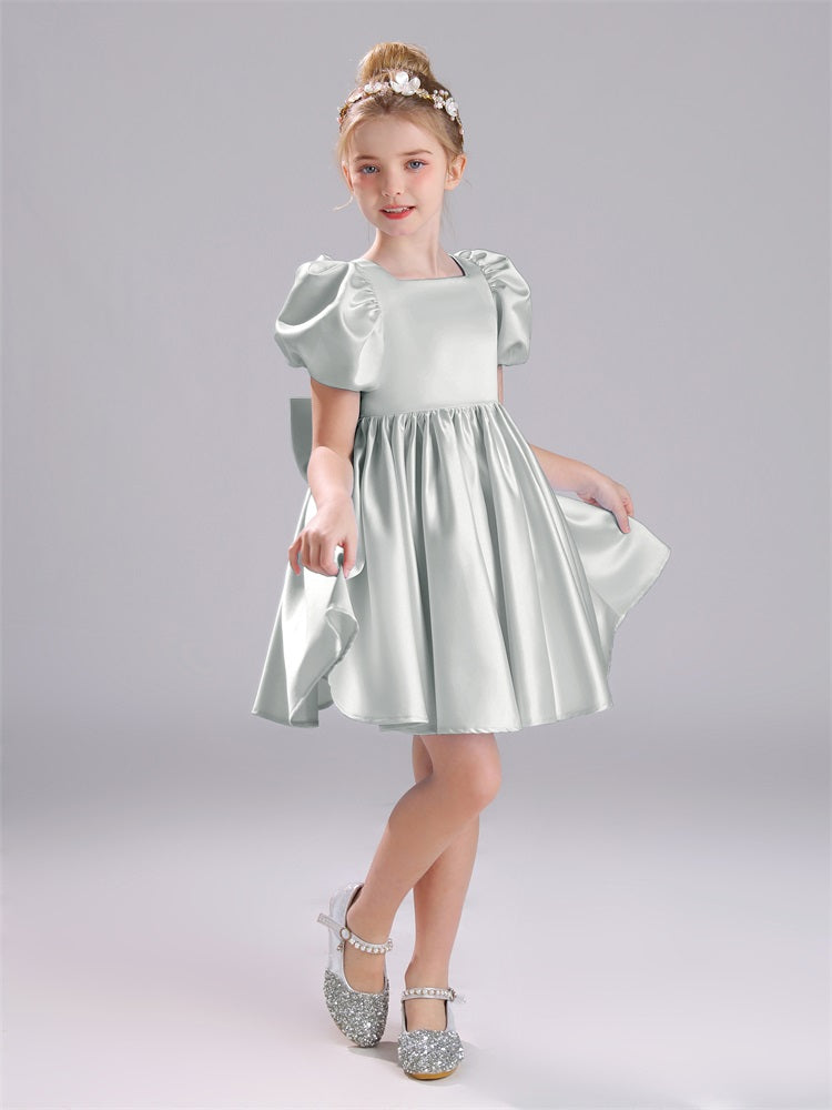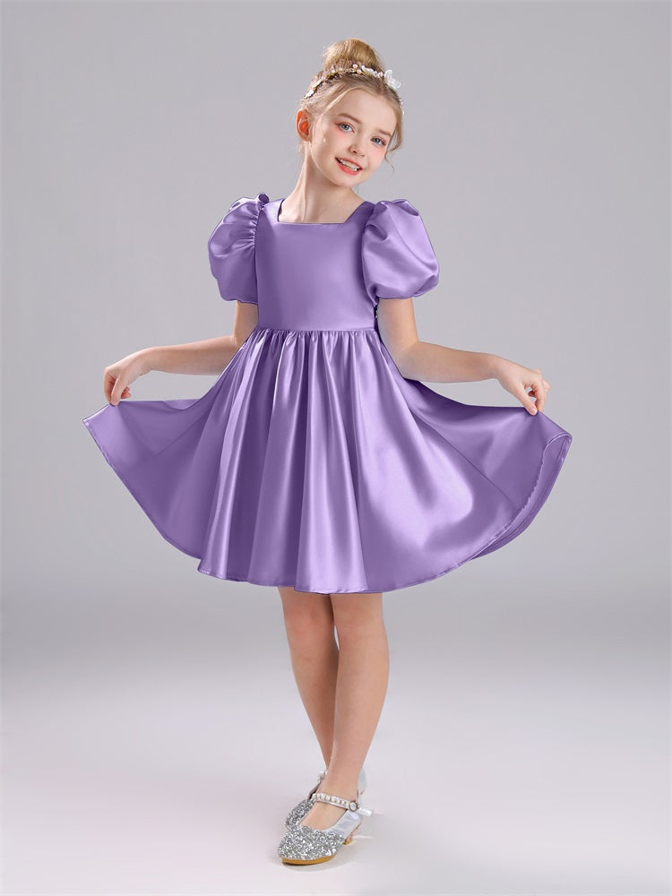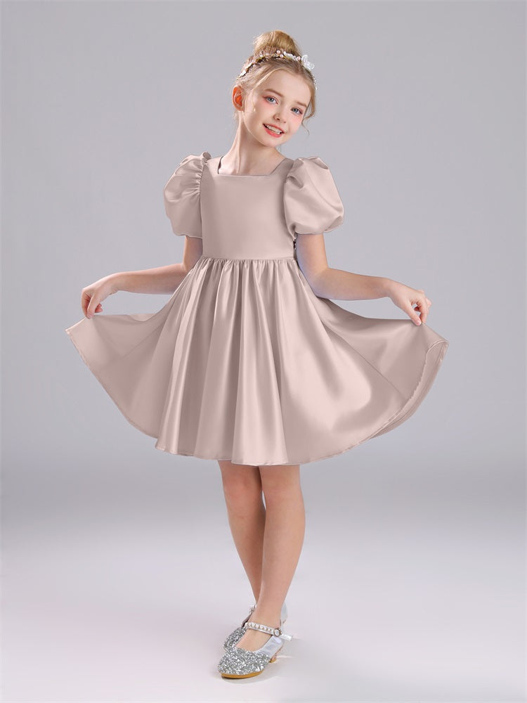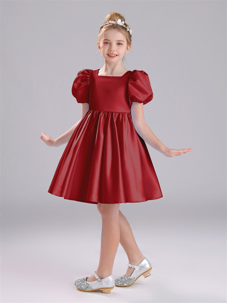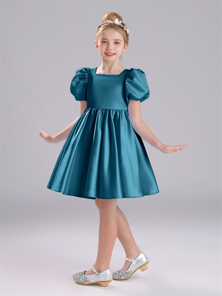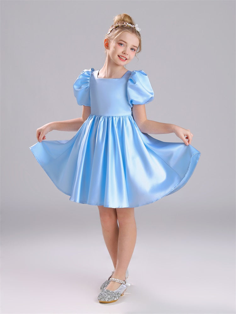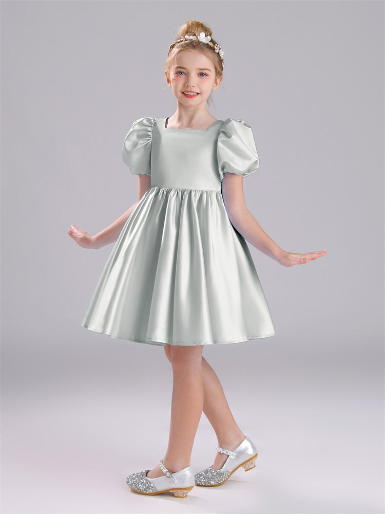 Viereckiger Ausschnitt Satin Ärmel Kurz Kleid für Mädchen