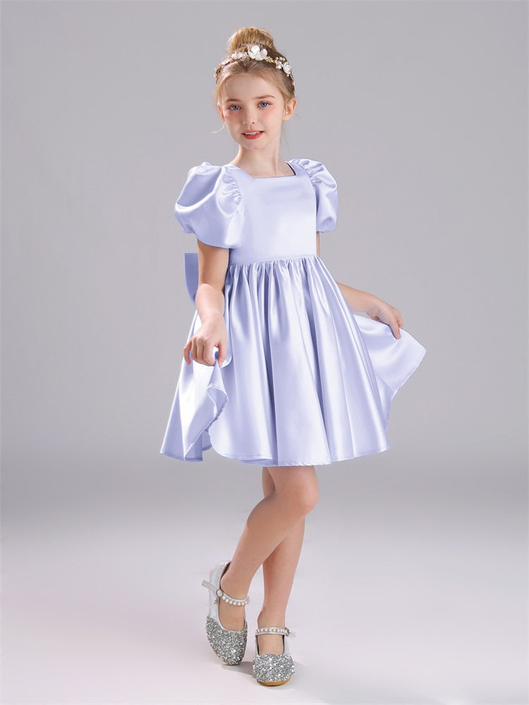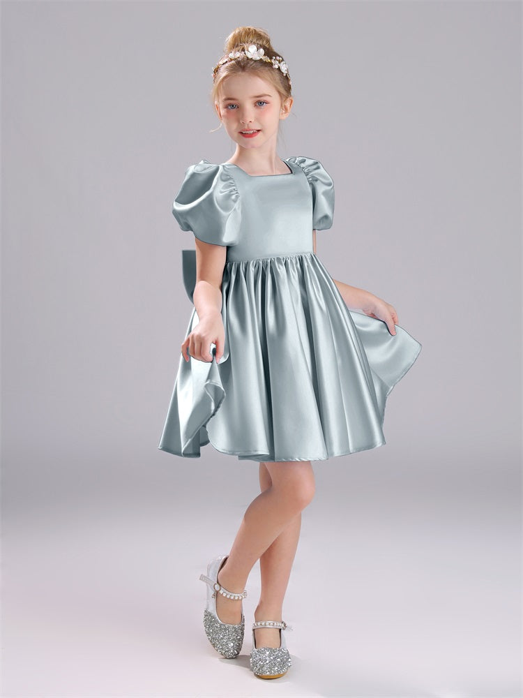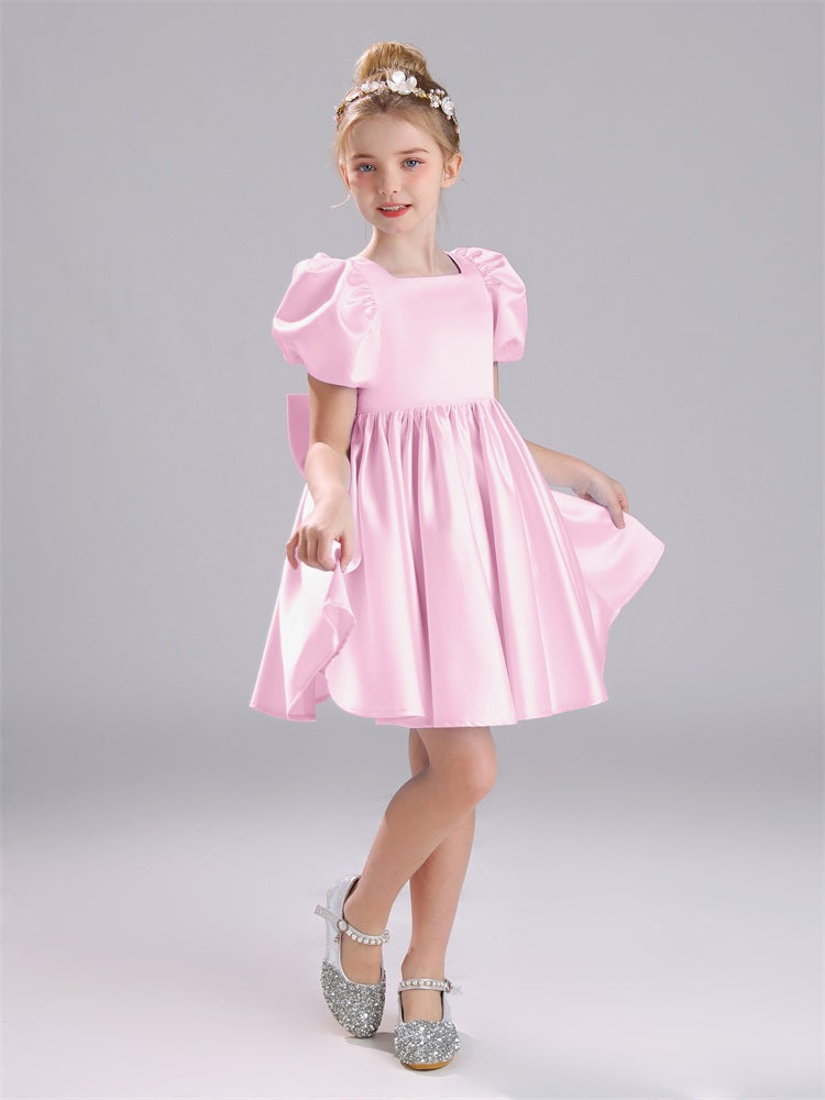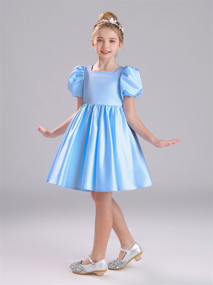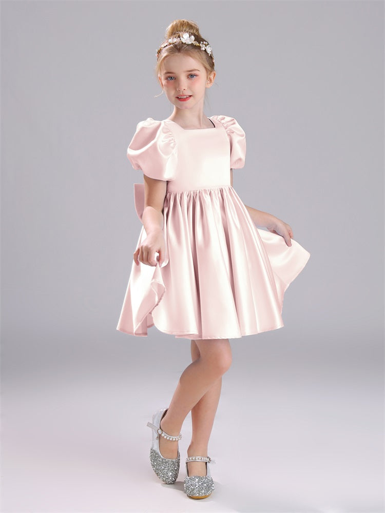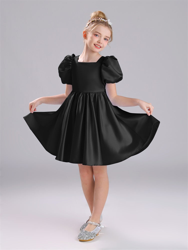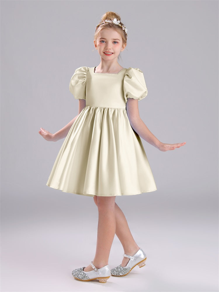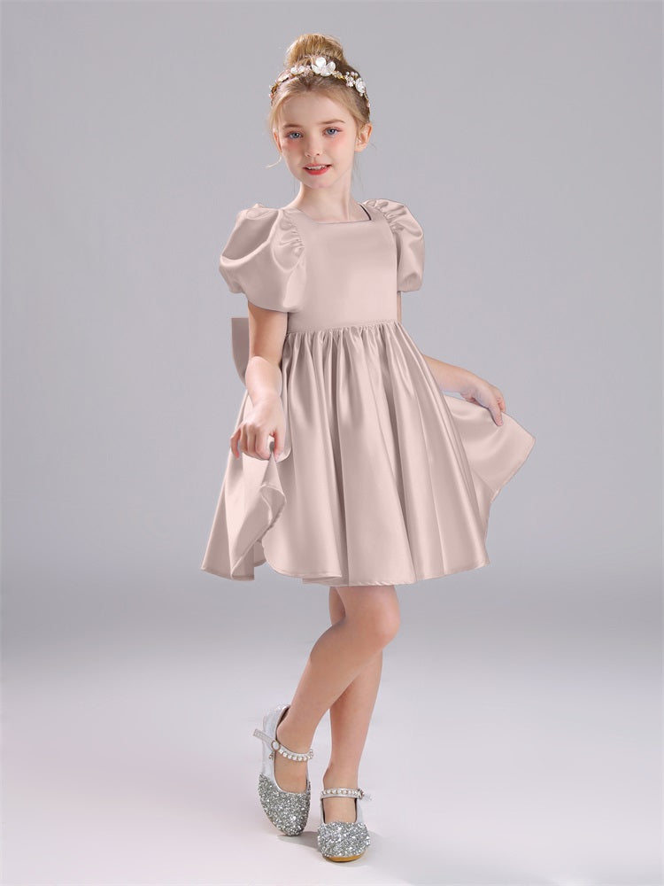 Viereckiger Ausschnitt Satin Ärmel Kurz Kleid für Mädchen