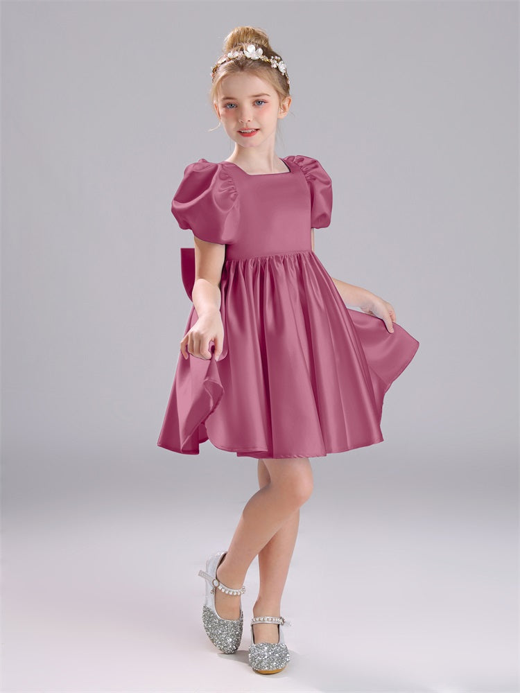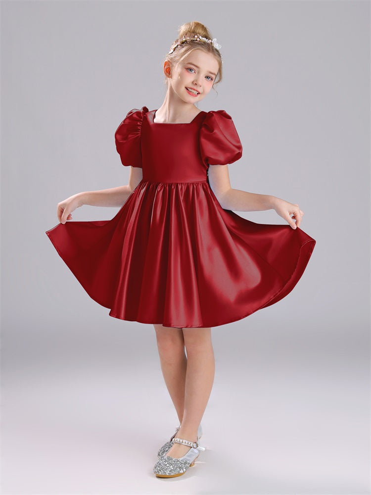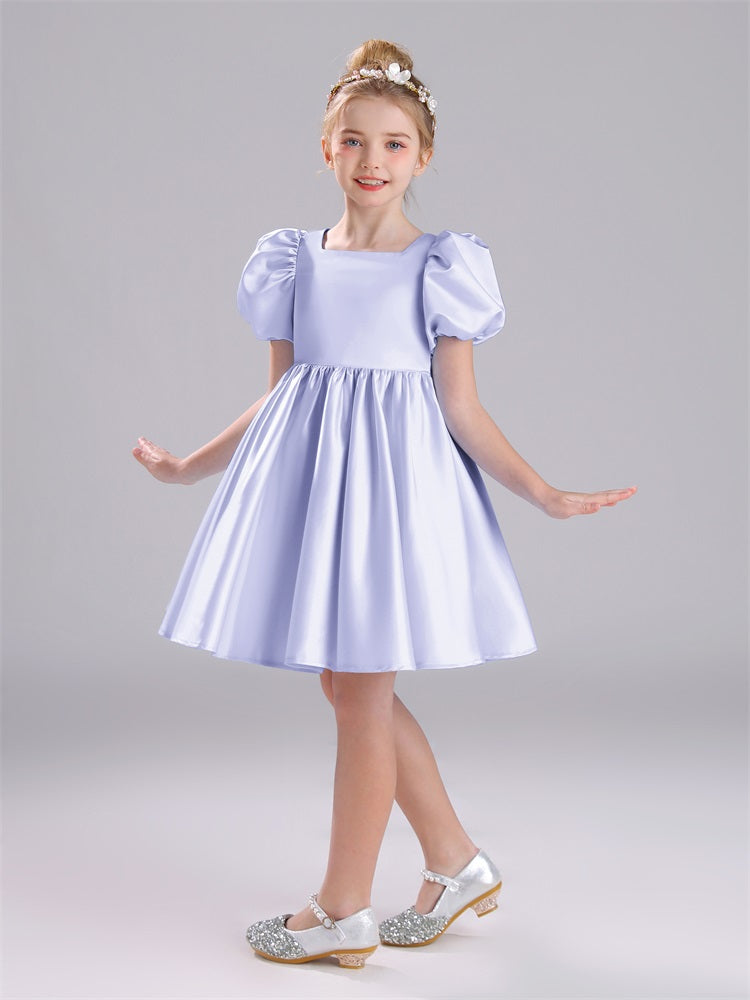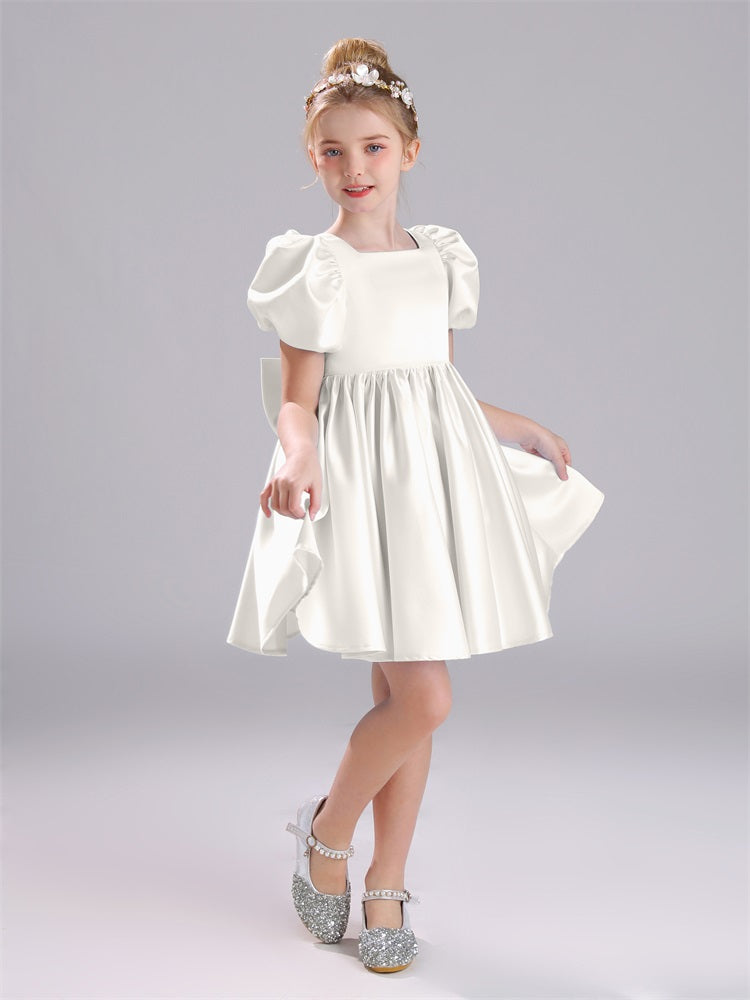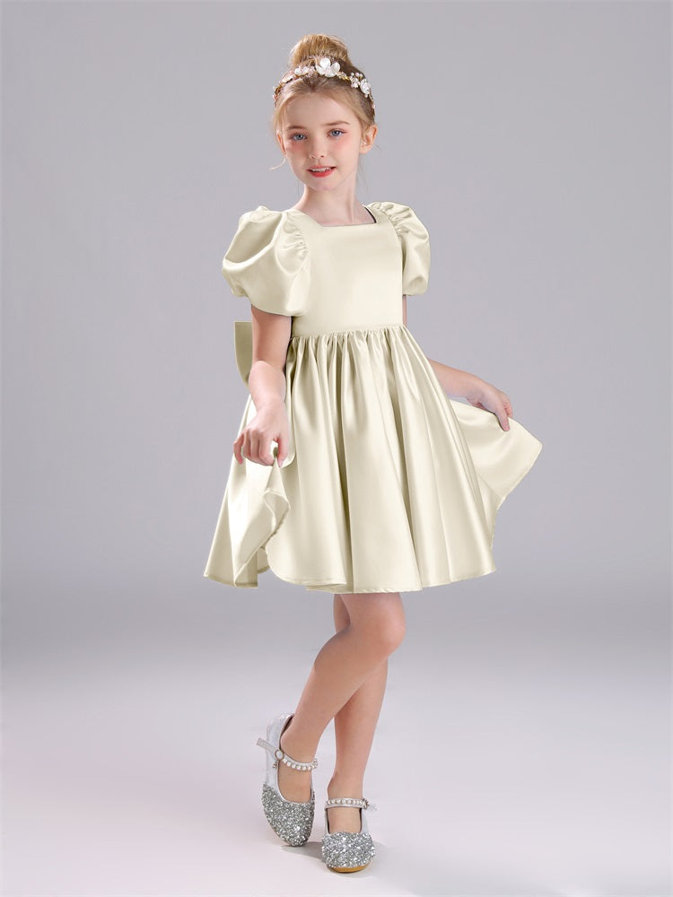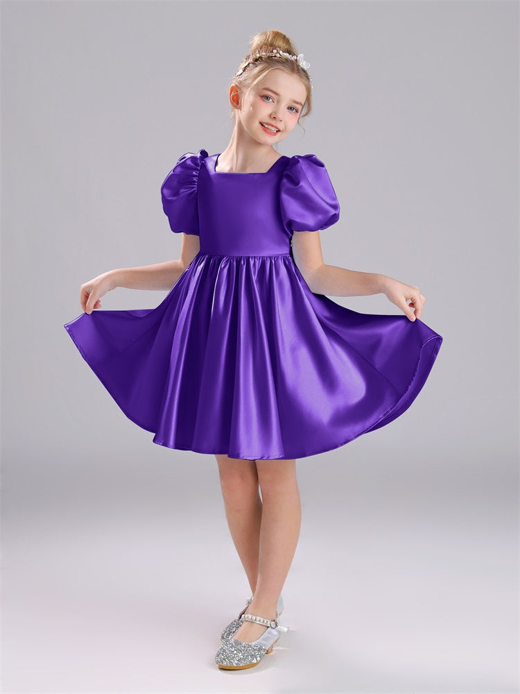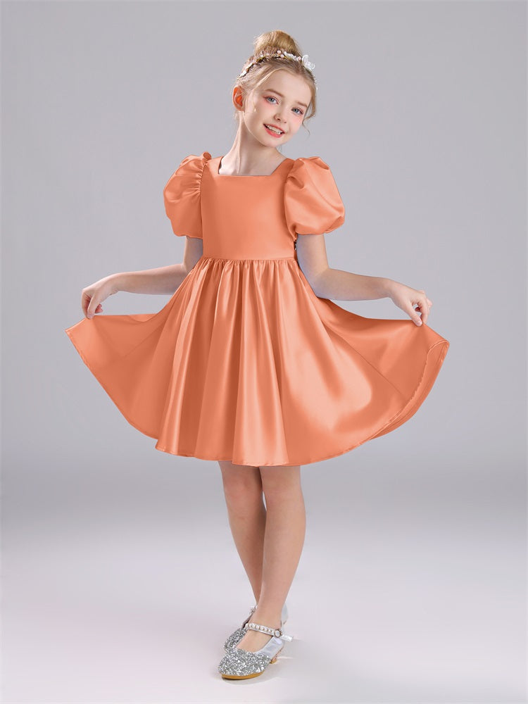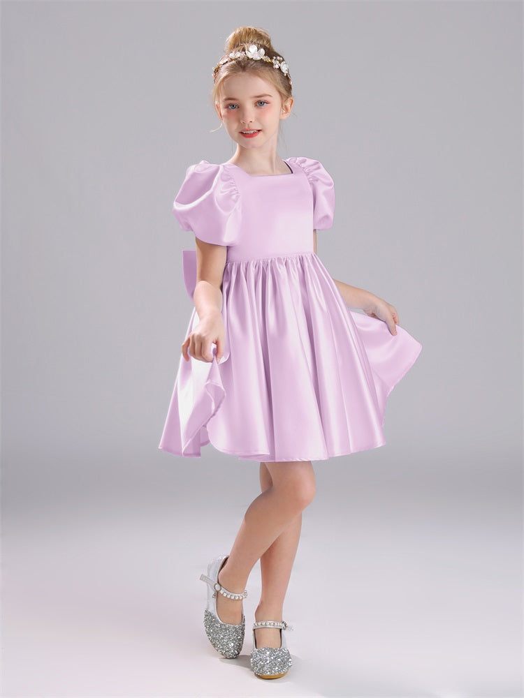 Viereckiger Ausschnitt Satin Ärmel Kurz Kleid für Mädchen