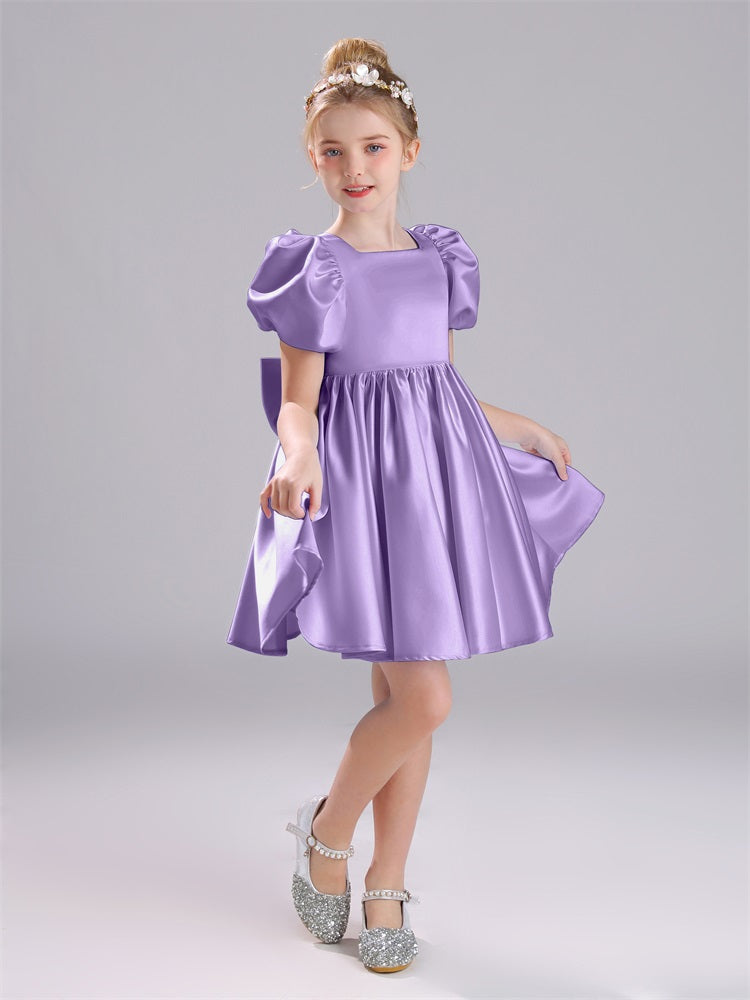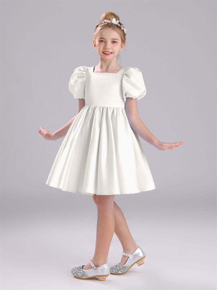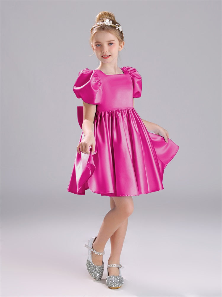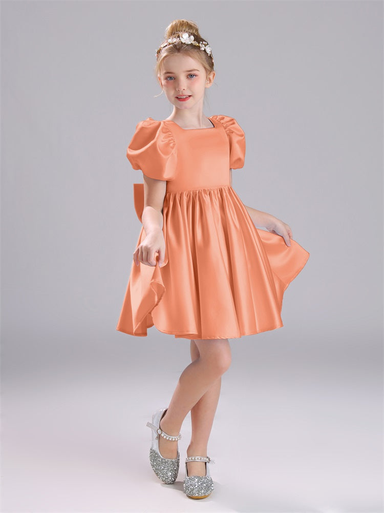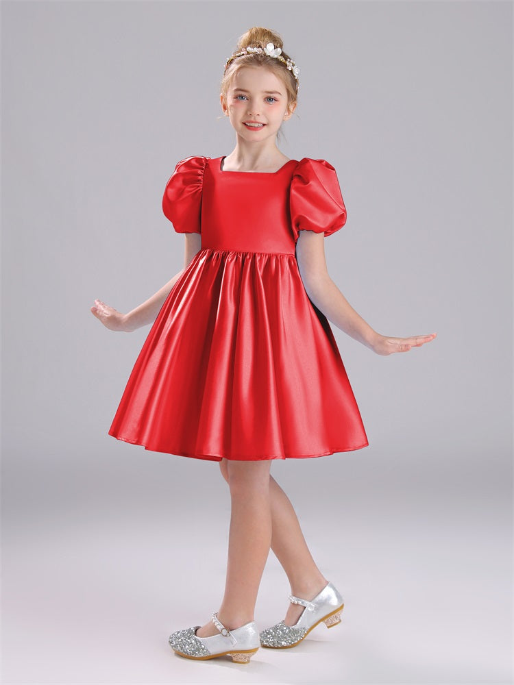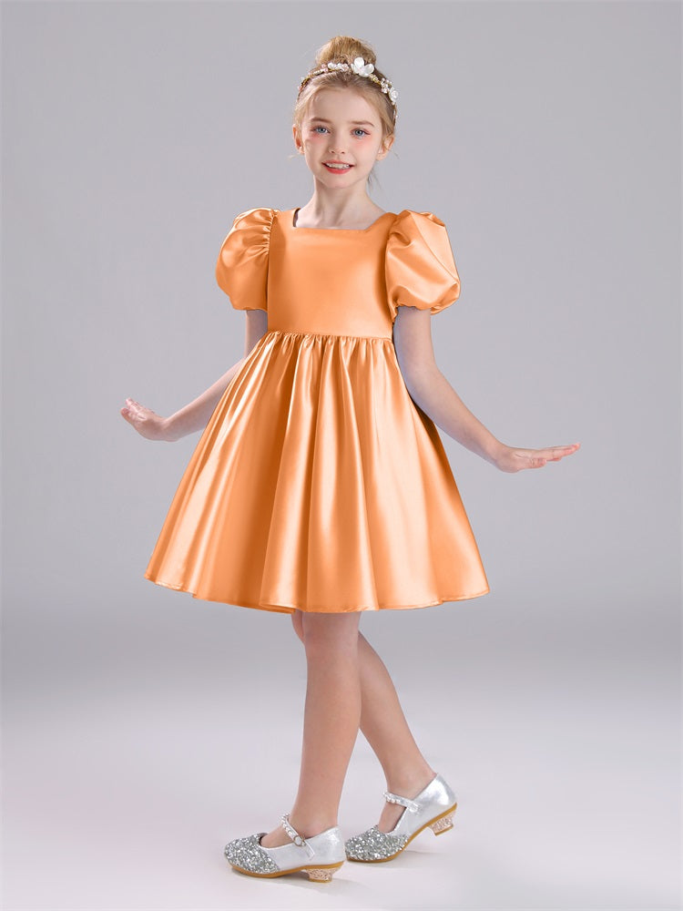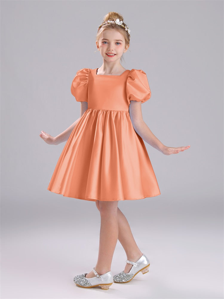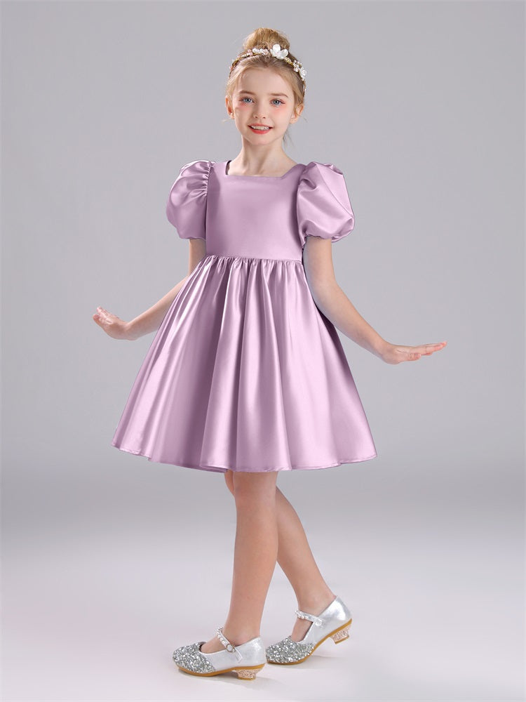 Viereckiger Ausschnitt Satin Ärmel Kurz Kleid für Mädchen