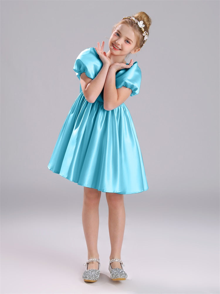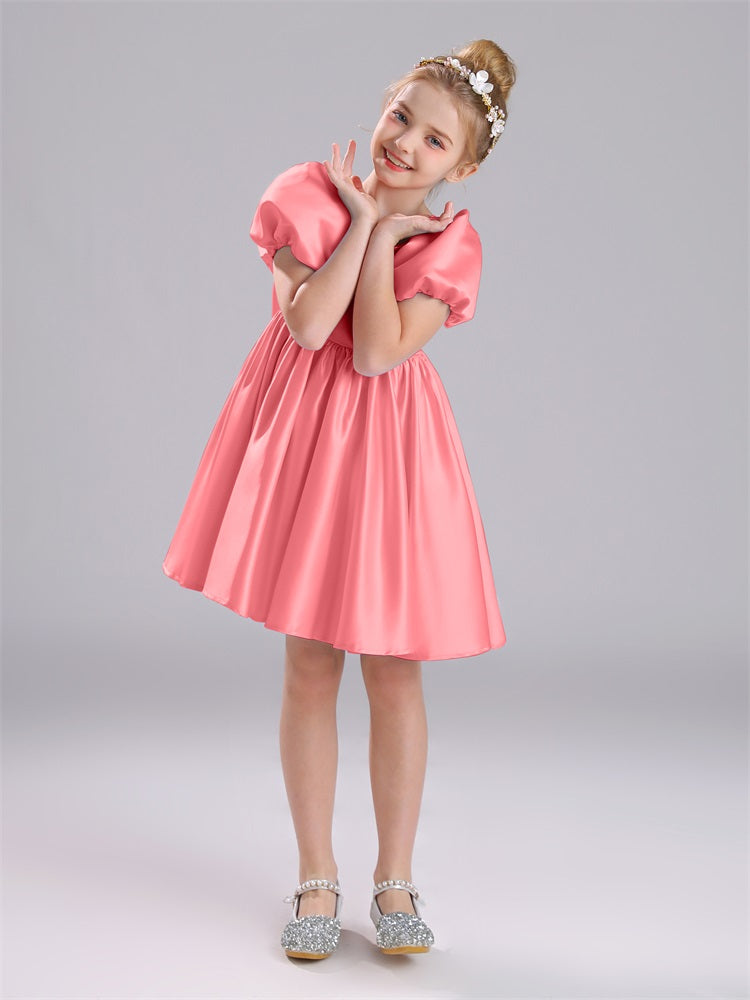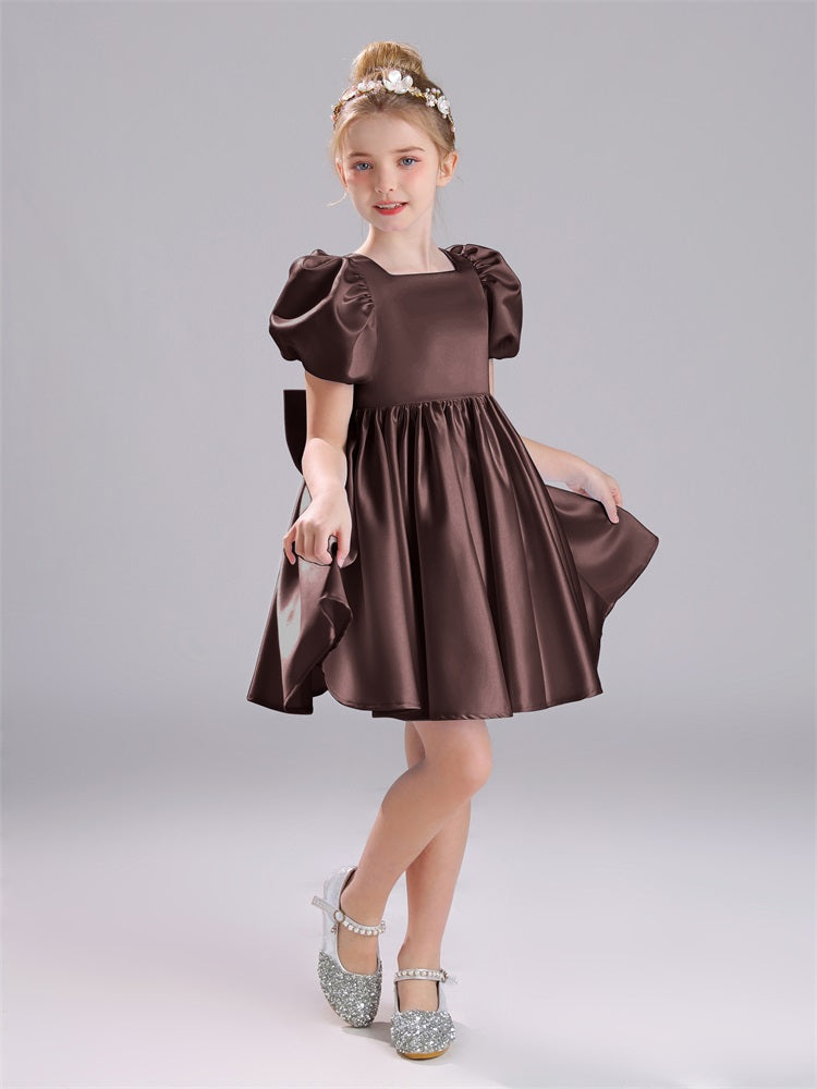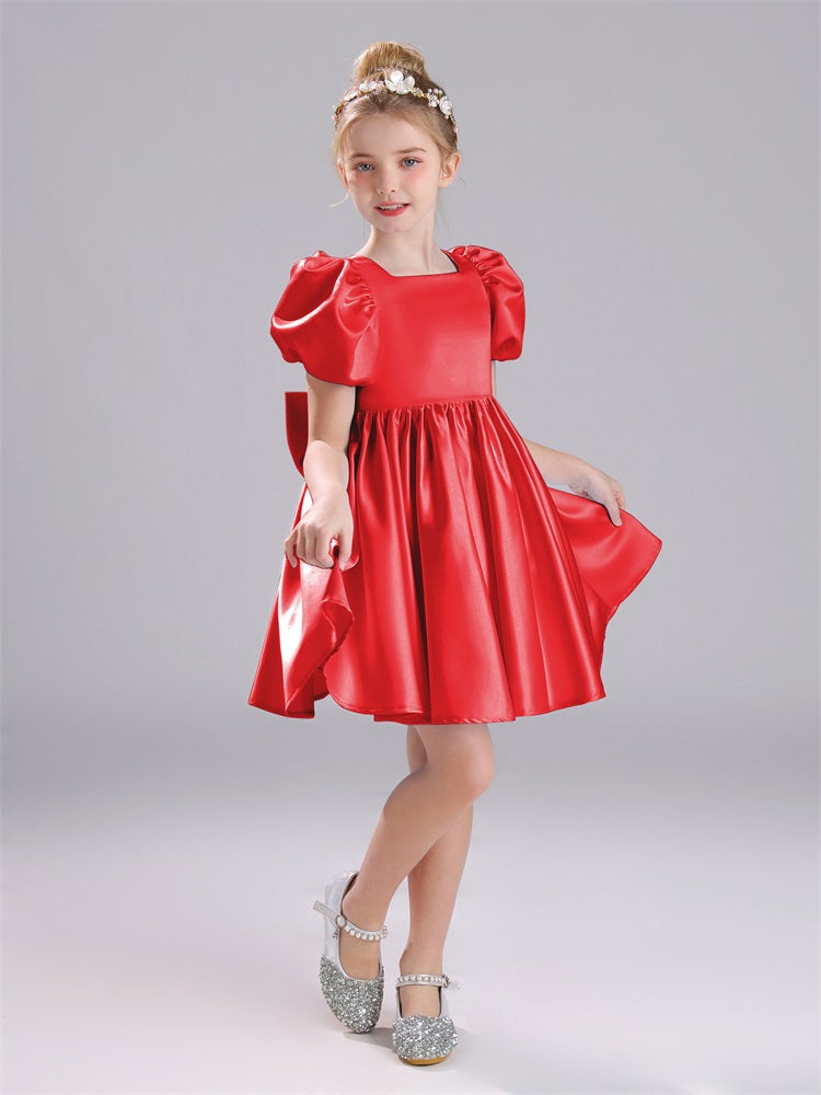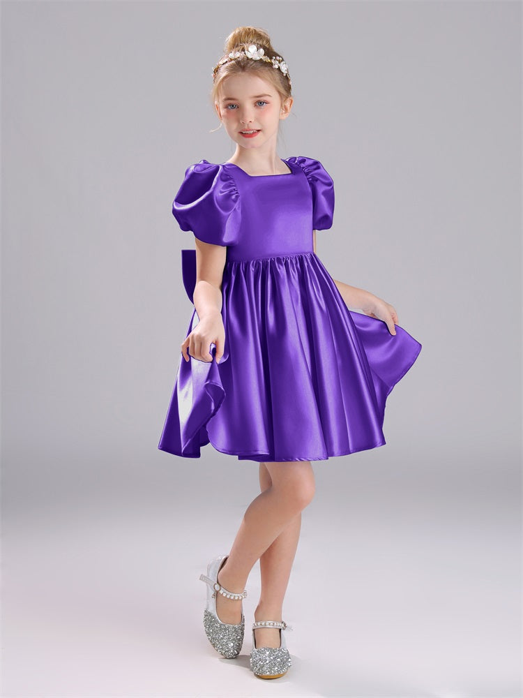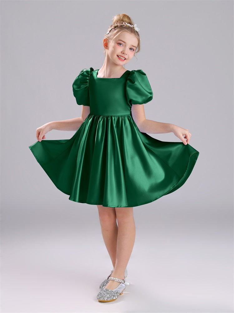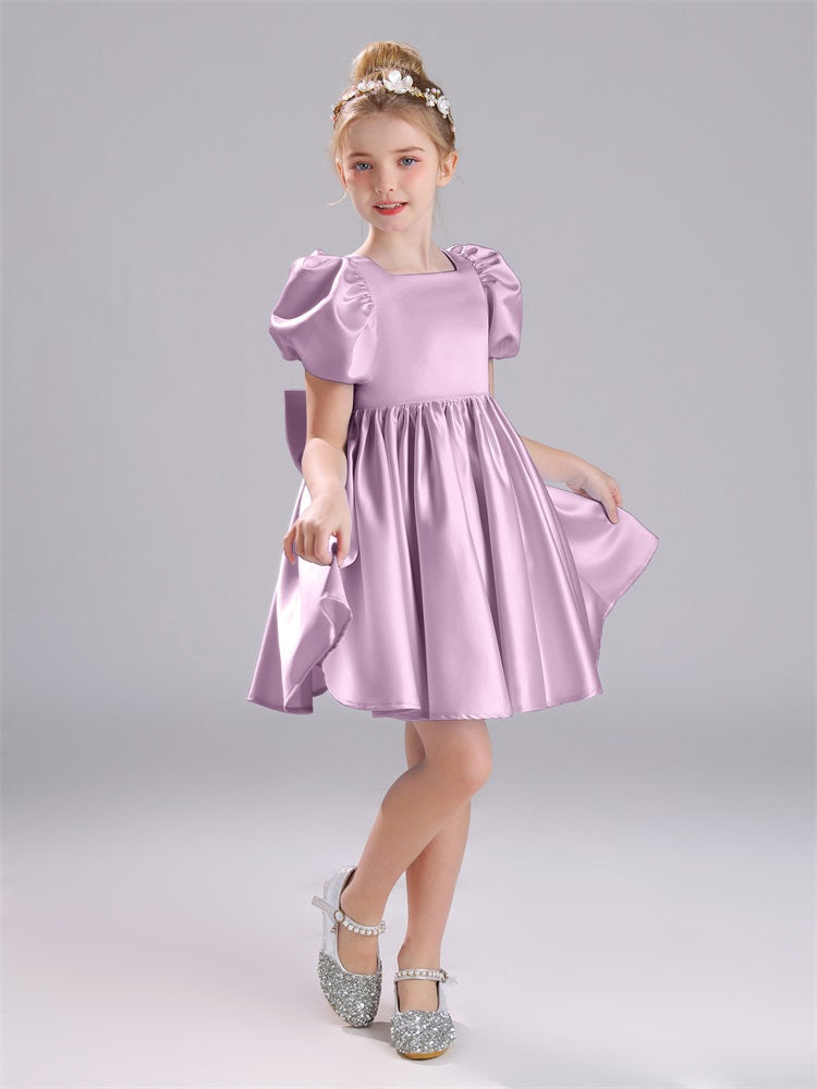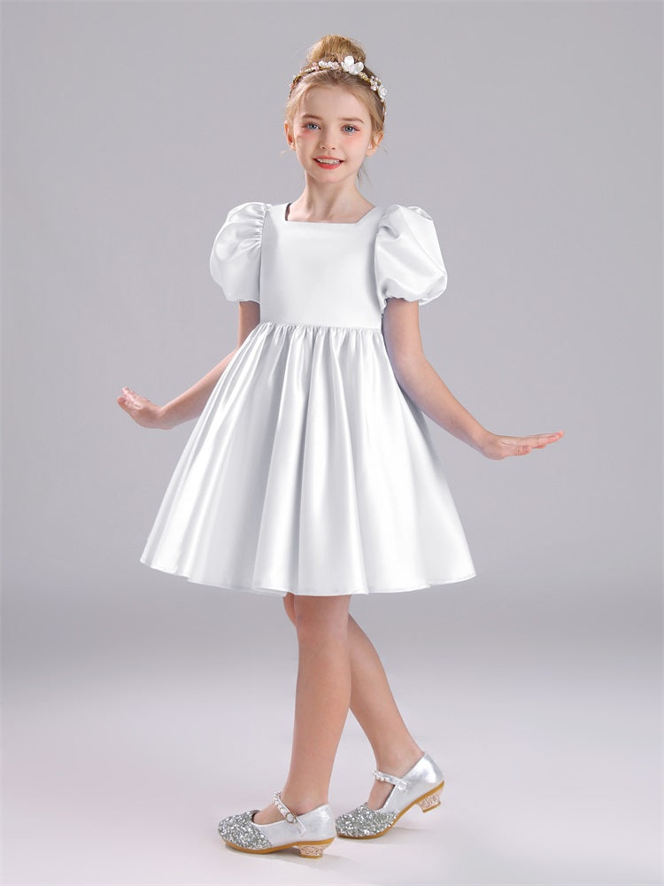 Viereckiger Ausschnitt Satin Ärmel Kurz Kleid für Mädchen