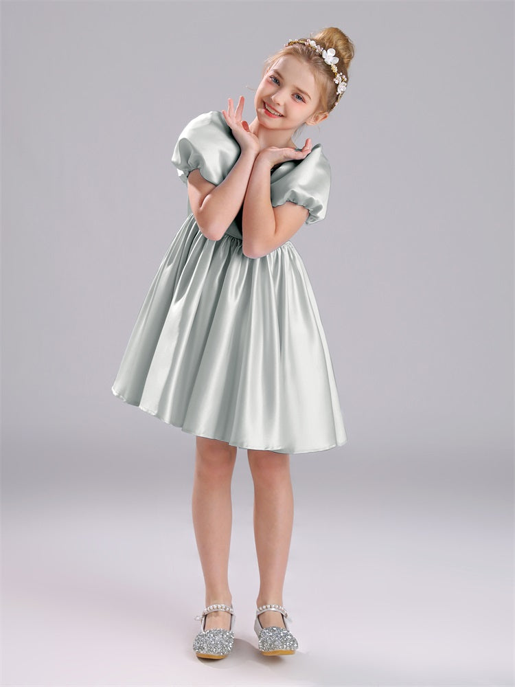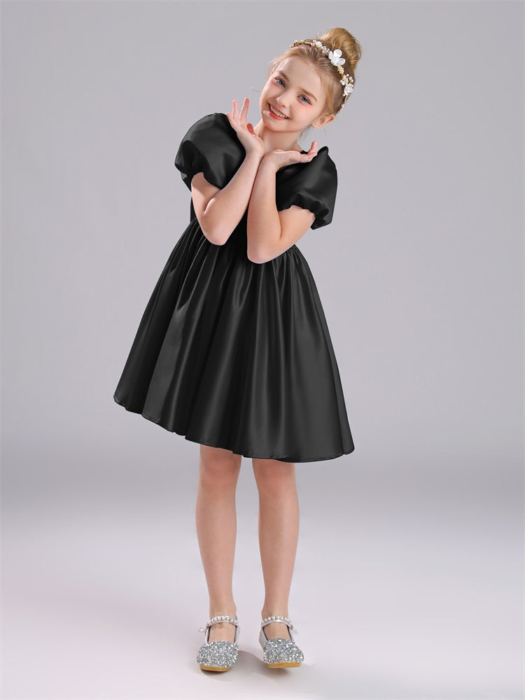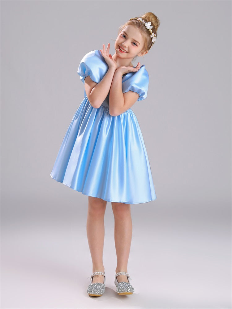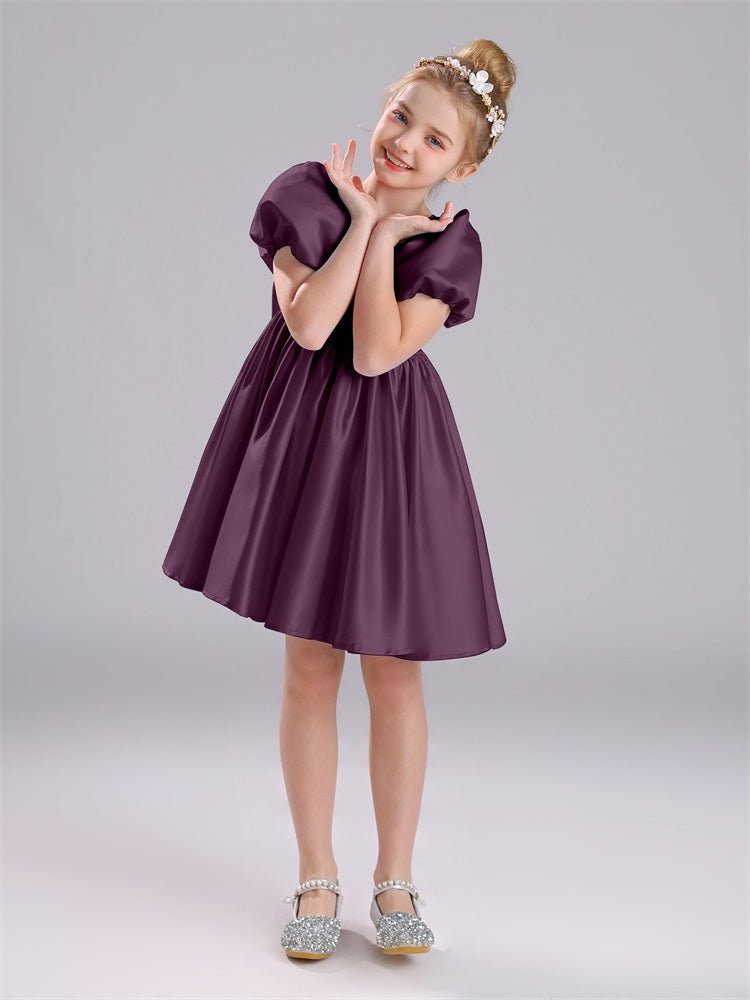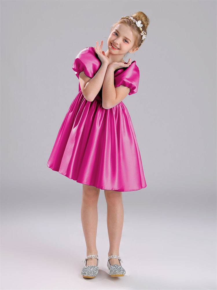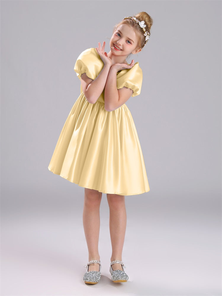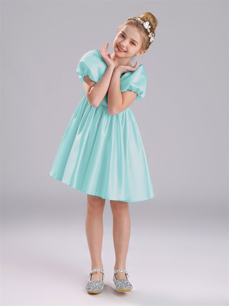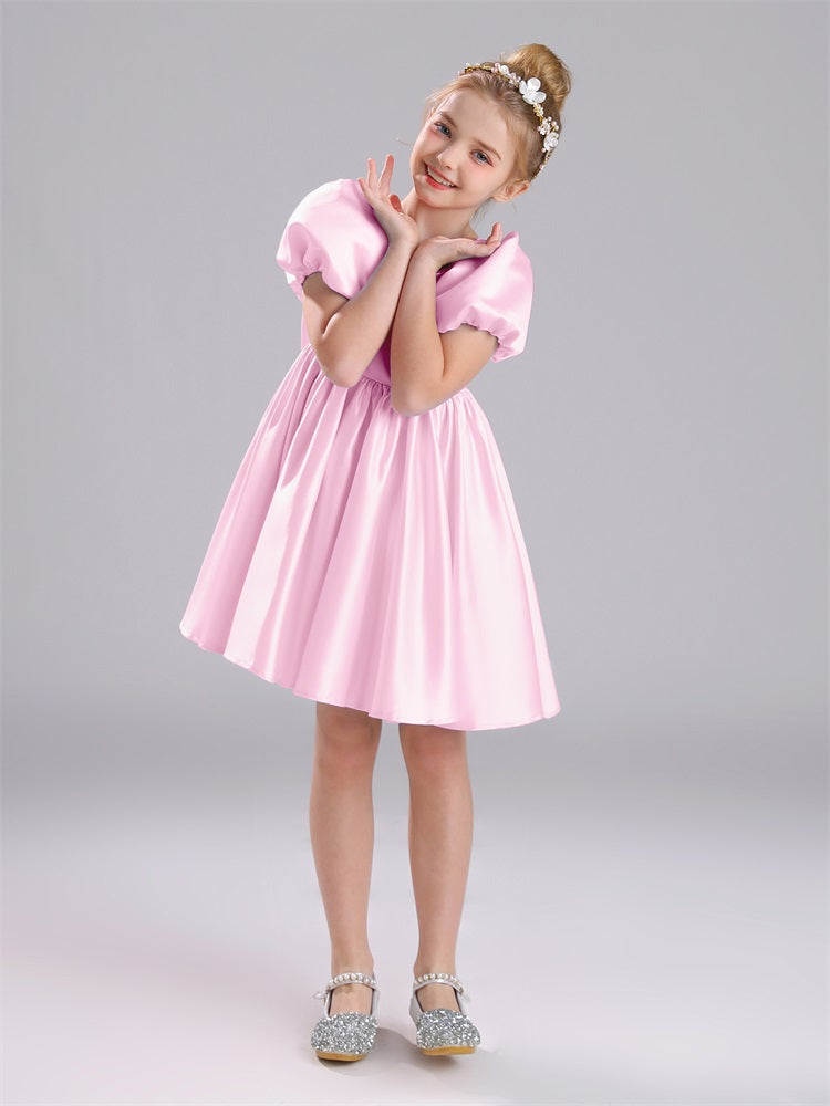 Viereckiger Ausschnitt Satin Ärmel Kurz Kleid für Mädchen