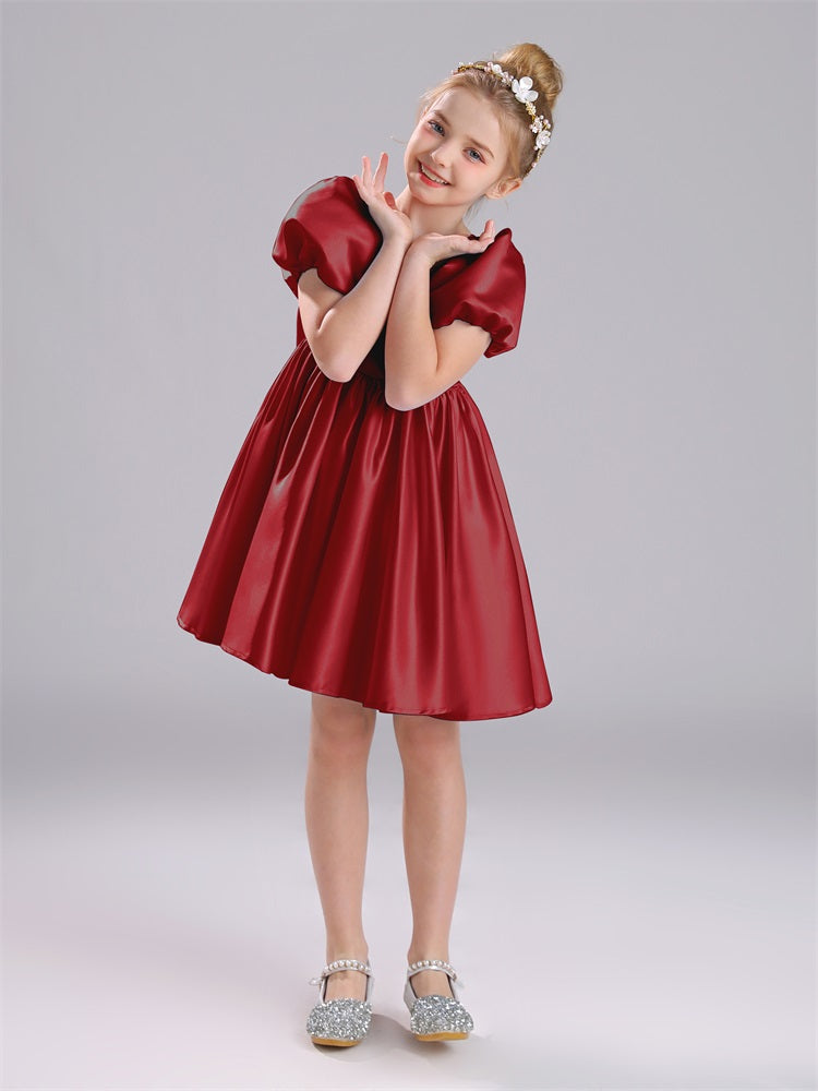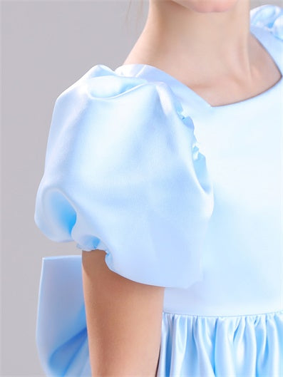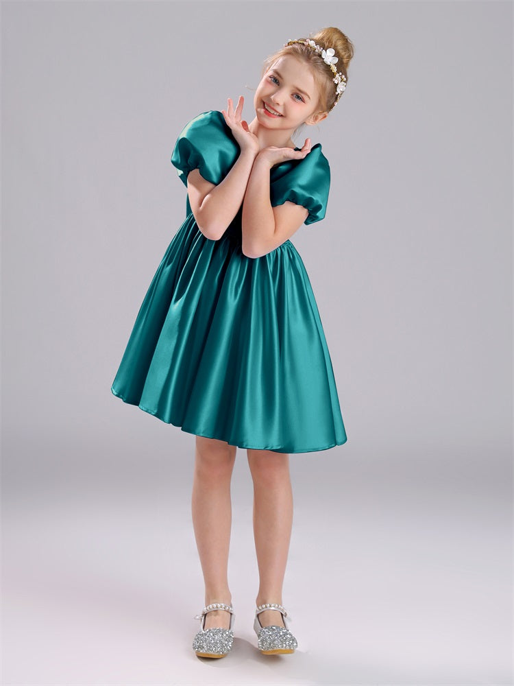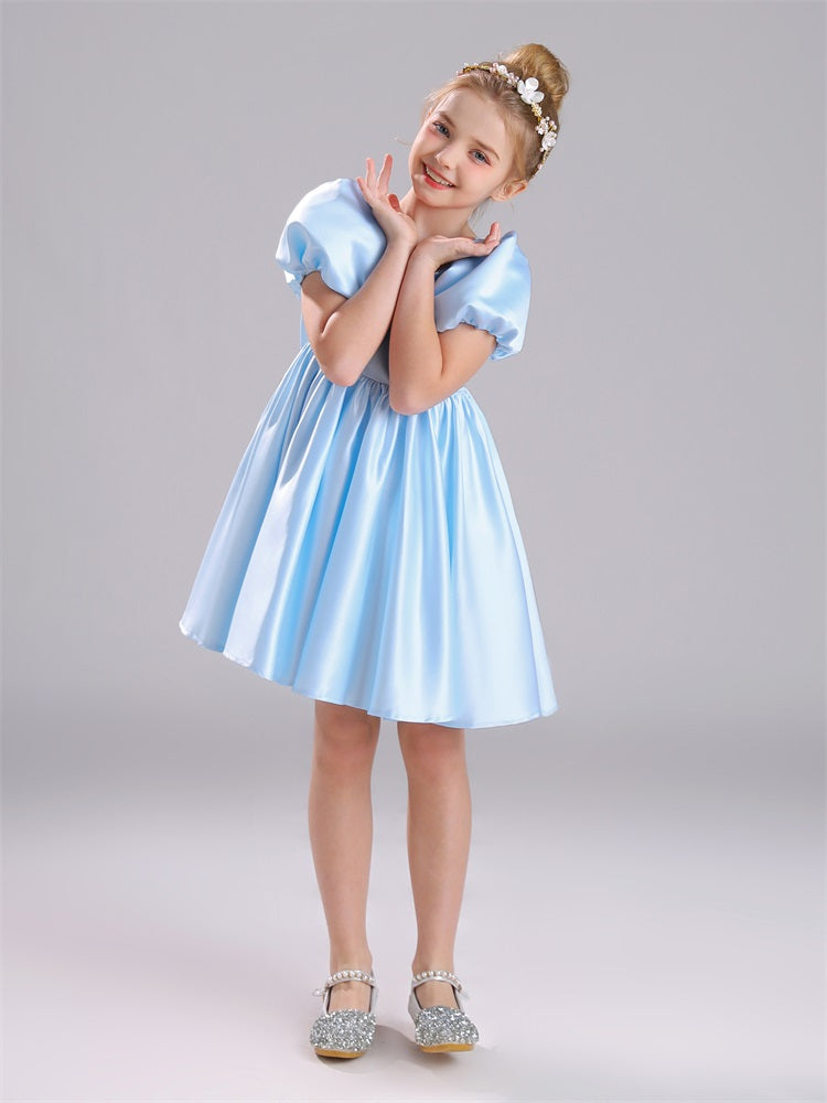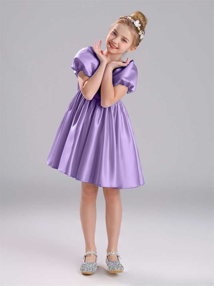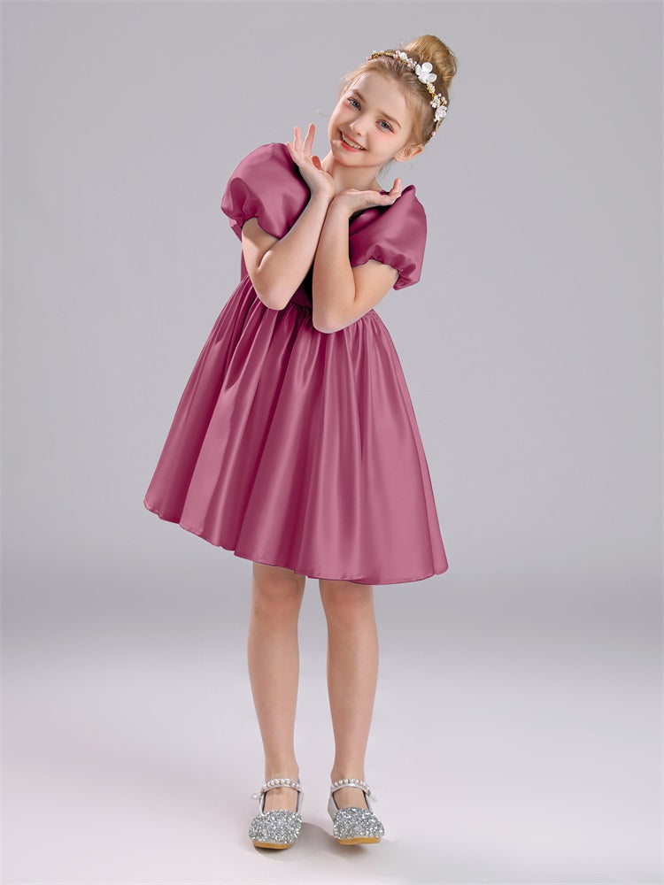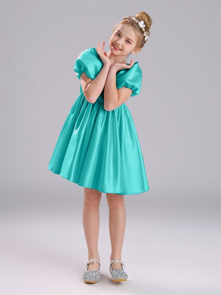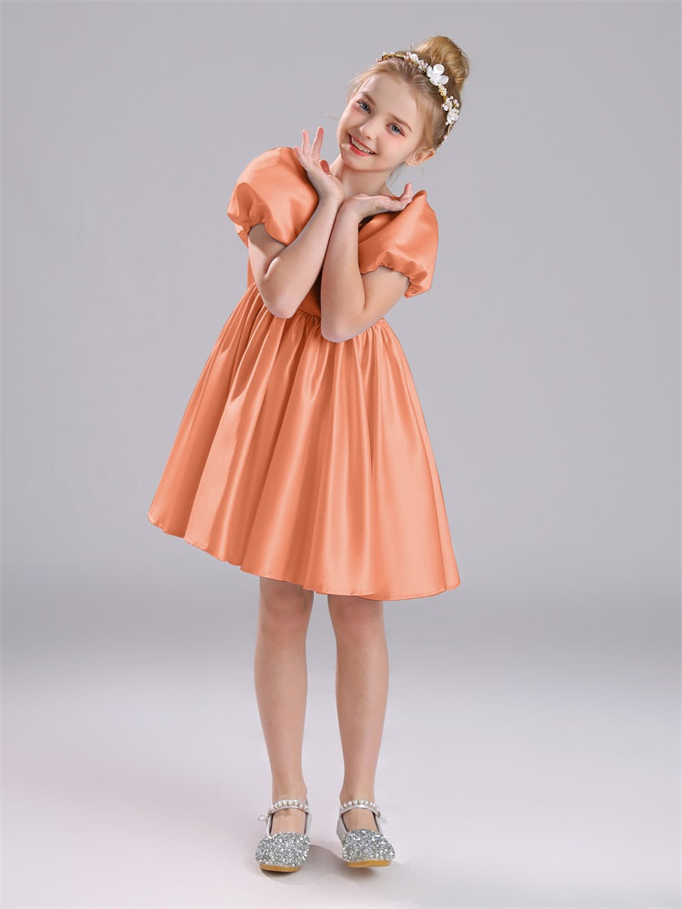 Viereckiger Ausschnitt Satin Ärmel Kurz Kleid für Mädchen